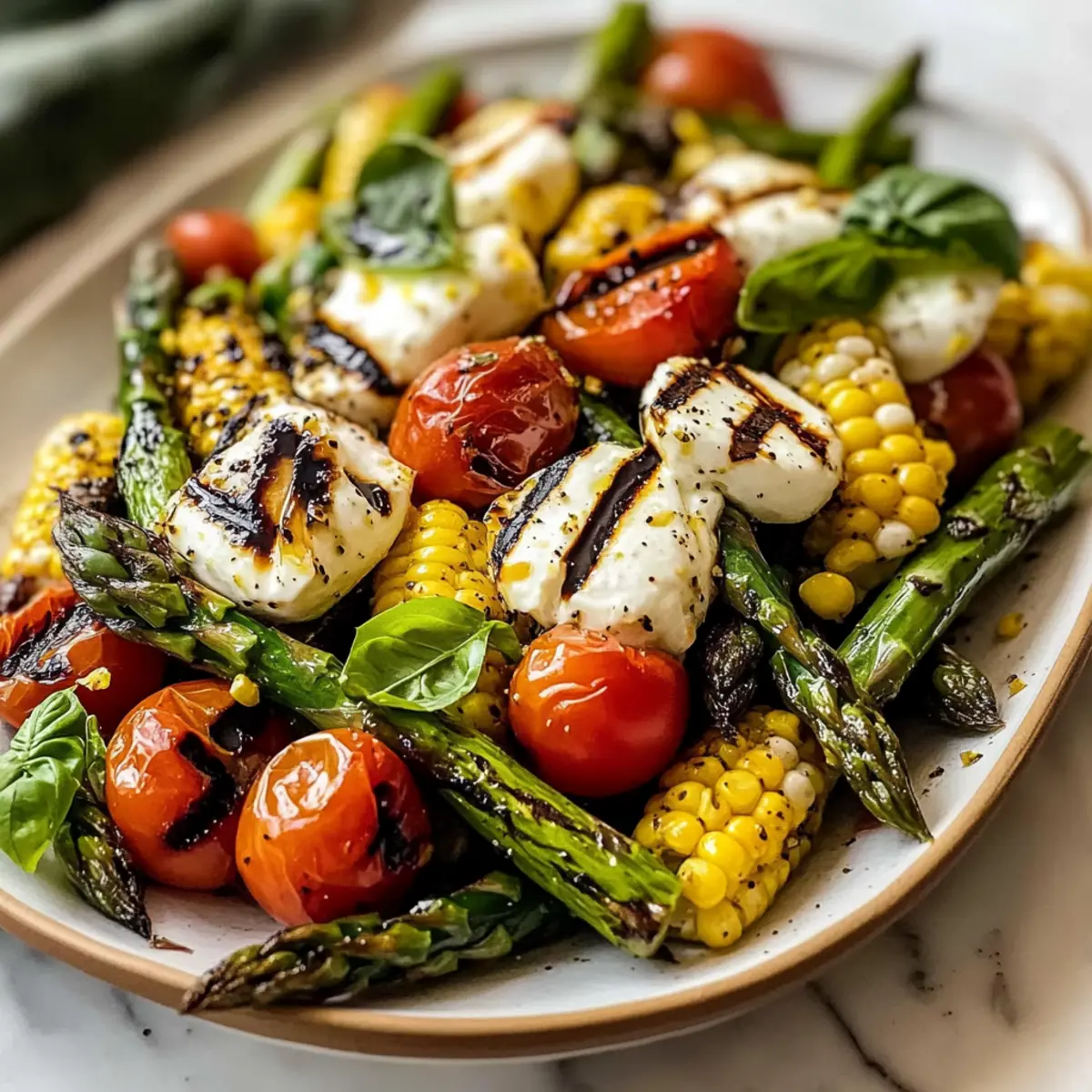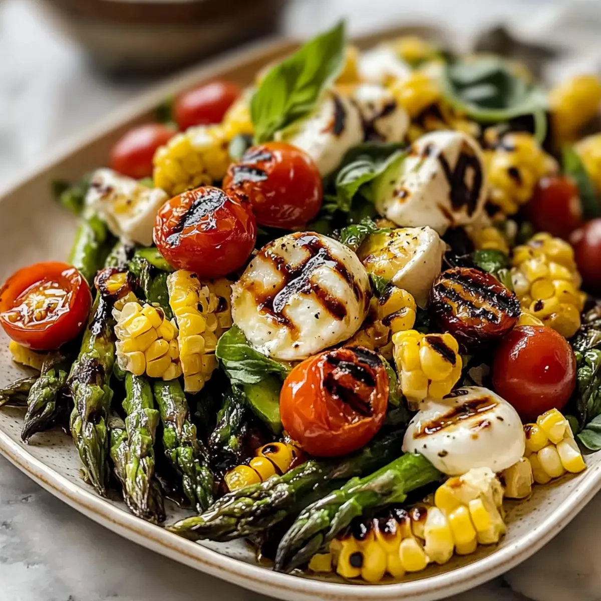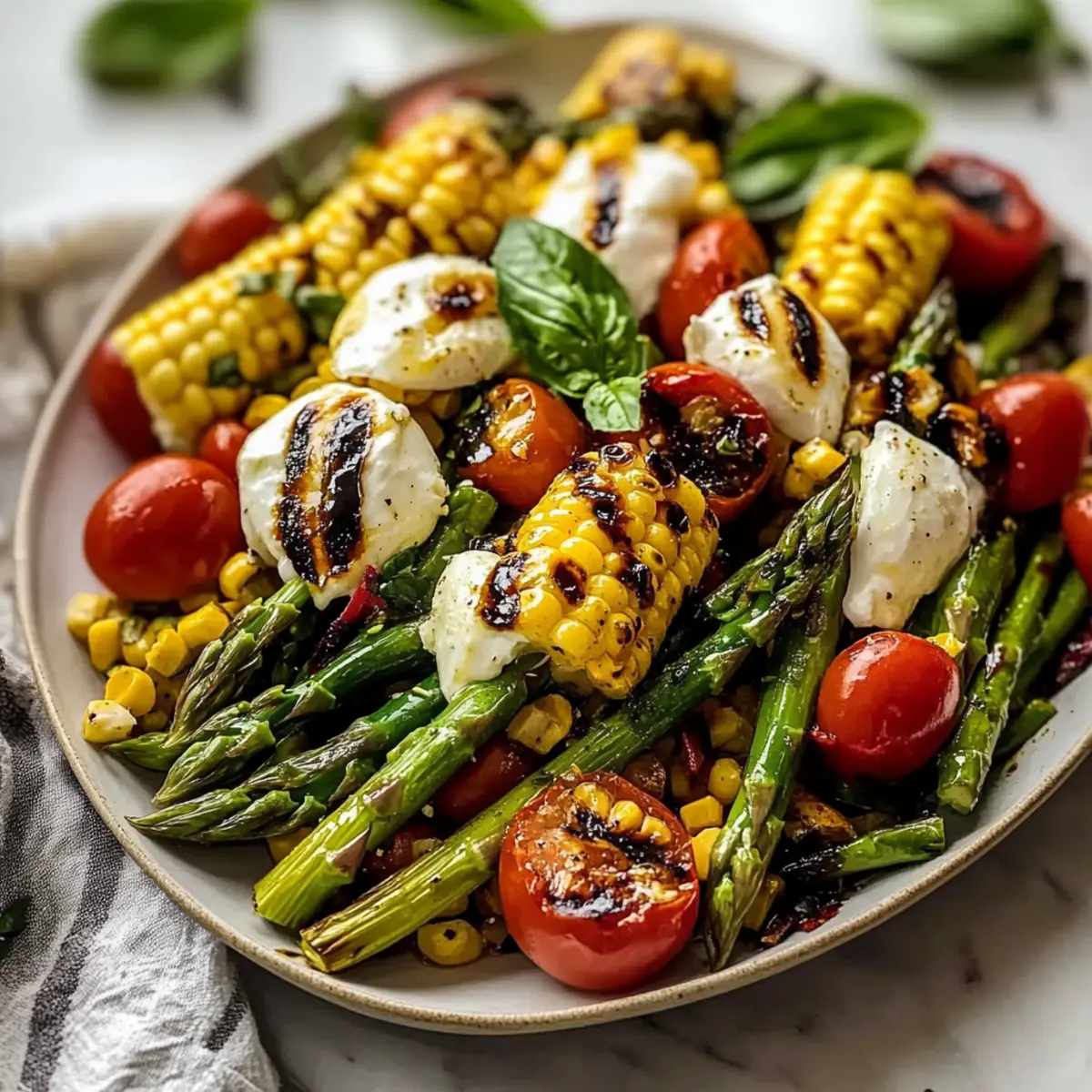 This Grilled Asparagus and Corn Salad is a vibrant summer dish featuring smoky asparagus, sweet corn, and fresh mozzarella.