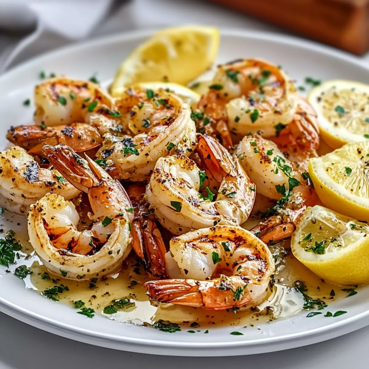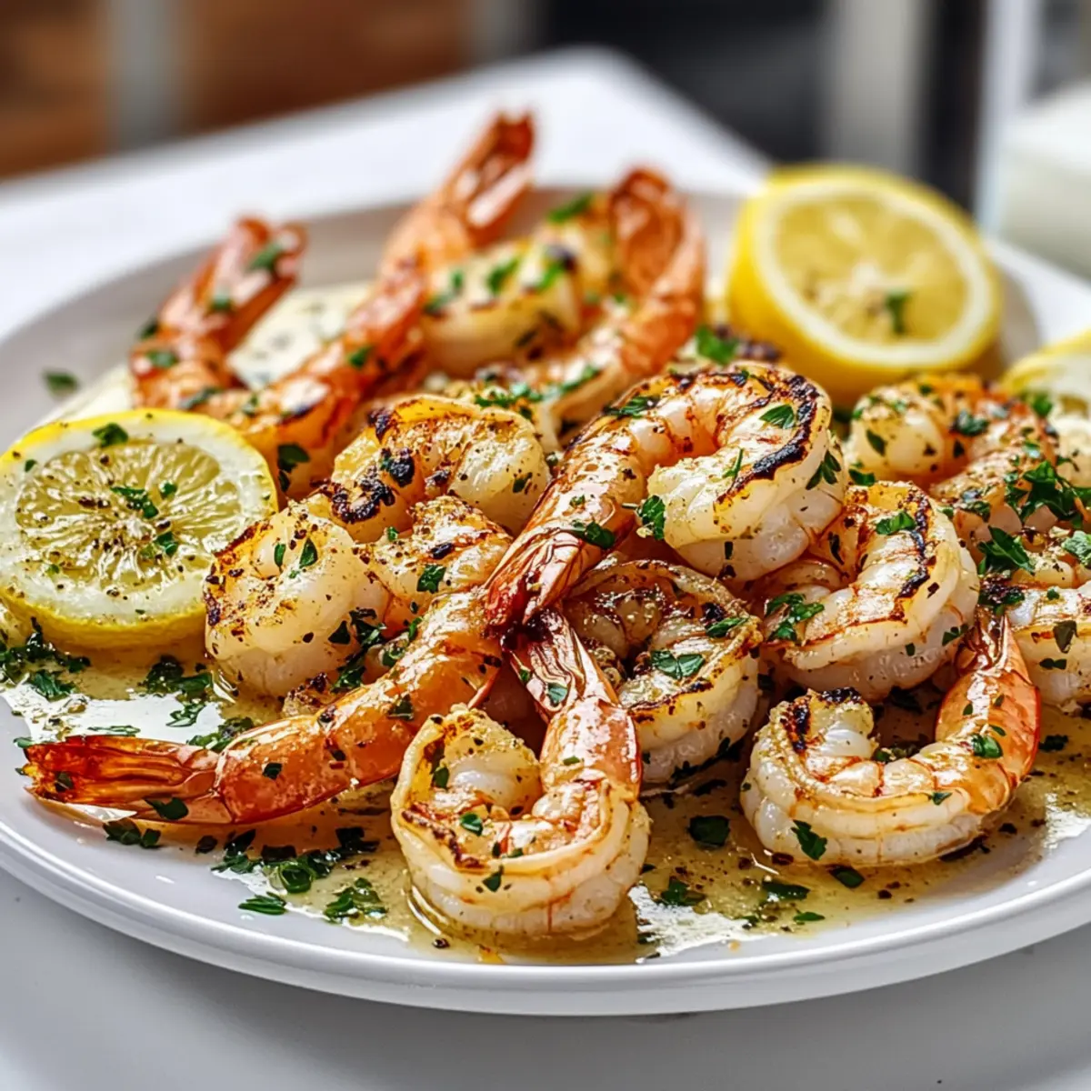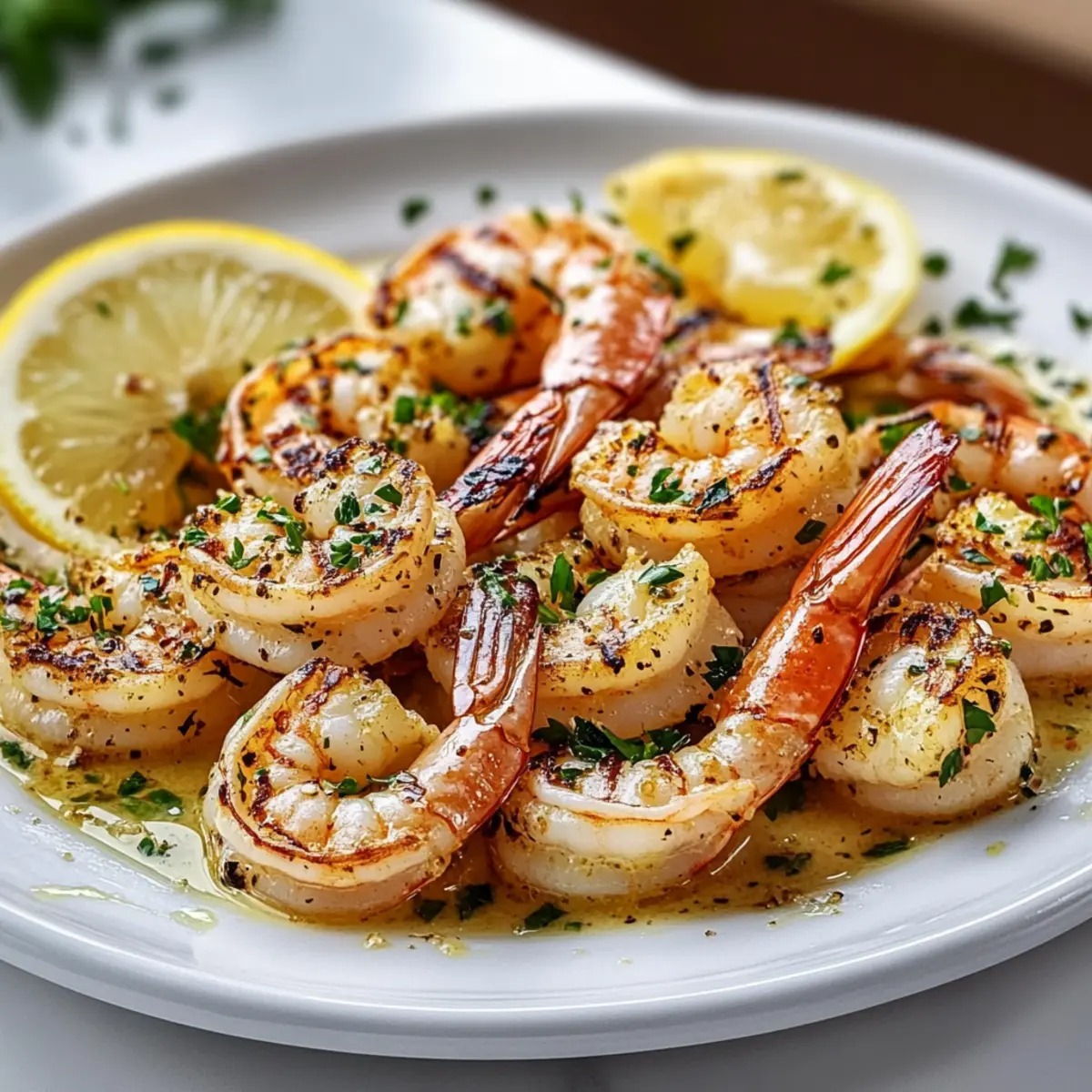 As I stood by the grill, a gentle breeze carried the tangy aroma of lemon and garlic, igniting memories of summer evenings spent by the sea. This Grilled Shrimp Scampi with Garlic Butter Sauce is my go-to for quick, effortless cooking that still feels like a special occasion. With just a handful of fresh ingredients and a few minutes of prep, you can delight your family or impress friends with a dish that’s sure to become a favorite. The recipe is not only gluten-free (especially with the right bread) but also accommodates various tastes—feel free to swap in cilantro for parsley or lime juice for lemon. Whether you’re carving out time on a busy weeknight or planning a casual dinner gathering, this shrimp scampi is both satisfying and simple. Are you ready to elevate your dinner game and make your taste buds dance? Let’s dive in! Why is Grilled Shrimp Scampi a Must-Try? Quick, Easy Dinner: With just about 30 minutes from start to finish, dinner is ready in no time! Flavor Explosion: The mouthwatering combination of garlic, lemon, and fresh herbs creates a dish bursting with vibrant, savory tastes. Customizable Options: Swap ingredients based on your preference! Whether you choose cilantro over parsley or lime instead of lemon, the flavor remains delightful. Kid-Friendly: The dish has a mild flavor profile that appeals to both kids and adults alike—perfect for family mealtime! Beautiful Presentation: Served atop crispy grilled bread, this dish is not only delicious but also visually stunning, sure to impress your guests. Want to pair it with something more extraordinary? Try serving it with a side of Garlic Bread Grilled Cheese or a fresh salad! Grilled Shrimp Scampi Ingredients For the Marinade • Extra virgin olive oil – Provides moisture and carries flavor; substitute with avocado oil for a different profile. • Fresh lemon juice – Adds brightness and acidity; lime juice can be used for a different citrus flavor. • Fresh chopped parsley – Brings freshness and color; cilantro can be swapped for a unique twist. • Garlic (minced) – Infuses the marinade with bold, savory flavor; fresh garlic is essential for the best taste. • Black pepper – Adds mild heat and depth; adjust the quantity for desired spiciness. • Red pepper flakes – Gives a touch of heat; omit or reduce for a milder dish, especially for kids. For the Shrimp • Large shrimp (peeled and deveined) – Key protein; use large shrimp for the best texture. Opt for shrimp with the shell for added flavor; peel after cooking if preferred. For the Grilled Bread • Baguette-style bread – Used for grilling; provides a crunch; substitute with gluten-free bread if necessary. This Grilled Shrimp Scampi not only delights your taste buds but also ensures a quick and easy dinner experience that’s gluten-free and customizable for the whole family! Step‑by‑Step Instructions for Grilled Shrimp Scampi Step 1: Make the marinade In a resealable bag, combine extra virgin olive oil, fresh lemon juice, chopped parsley, minced garlic, black pepper, and red pepper flakes. Seal the bag and shake gently to mix the ingredients well. This flavorful marinade will coat your shrimp, ensuring a delightful Grilled Shrimp Scampi that bursts with savory aromas. Step 2: Marinate the shrimp Add the peeled and deveined shrimp into the marinade bag, ensuring each shrimp is evenly coated for maximum flavor. Seal the bag again and place it in the refrigerator to marinate for 15-20 minutes. As it marinates, the shrimp will soak up those wonderful garlic and lemon notes, preparing them for the grill. Step 3: Preheat the grill While the shrimp marinates, preheat your grill to high heat, aiming for around 450°F. Once warmed, use a paper towel dipped in oil to wipe down the grates thoroughly. This step is crucial for preventing the shrimp from sticking and ensuring they achieve that beautiful char when grilling, creating an irresistible Grilled Shrimp Scampi. Step 4: Prepare the sauce Before grilling, pour the leftover marinade from the bag into a small saucepan. Bring it to a boil over medium heat, allowing it to simmer for about 2 minutes to eliminate any bacteria. This garlic butter sauce will later drizzle beautifully over your finished dish, enhancing the flavor of the Grilled Shrimp Scampi. Step 5: Skewer the shrimp Carefully thread the marinated shrimp onto skewers, leaving a little space between each piece for even cooking. This not only makes it easier to handle on the grill but also ensures that your juicy shrimp cook evenly. Aim for about 4 to 5 shrimp per skewer for a perfect presentation. Step 6: Grill the shrimp Place the skewered shrimp on the preheated grill and cook for 2-3 minutes on each side. Watch closely as they turn opaque and firm to the touch, indicating they are done. Remove the skewers and set aside on a plate. The grill will impart a smoky flavor that complements the lemon and garlic marinade, creating a mouthwatering Grilled Shrimp Scampi. Step 7: Grill the bread While the shrimp rests, brush slices of baguette-style bread with extra olive oil on both sides. Place them on the grill for 1-2 minutes per side until golden brown and crispy. The toasted bread will be perfect for soaking up the warm garlic butter sauce, adding a delightful crunch to your Grilled Shrimp Scampi. Step 8: Serve Plate the succulent grilled shrimp alongside the crispy grilled bread and generously drizzle the garlic sauce over the top. If desired, garnish with additional fresh parsley for a pop of color. Enjoy your Grilled Shrimp Scampi warm, taking in the delightful aroma and flavors of this quick and delicious dish! What to Serve with Grilled Shrimp Scampi? Enhance your dining experience with delightful pairings that complement the vibrant flavors of your shrimp dish. Garlic Bread: The buttery, crunchy texture perfectly contrasts the tender shrimp, allowing you to savor every zesty bite. It’s a classic side that never fails to impre