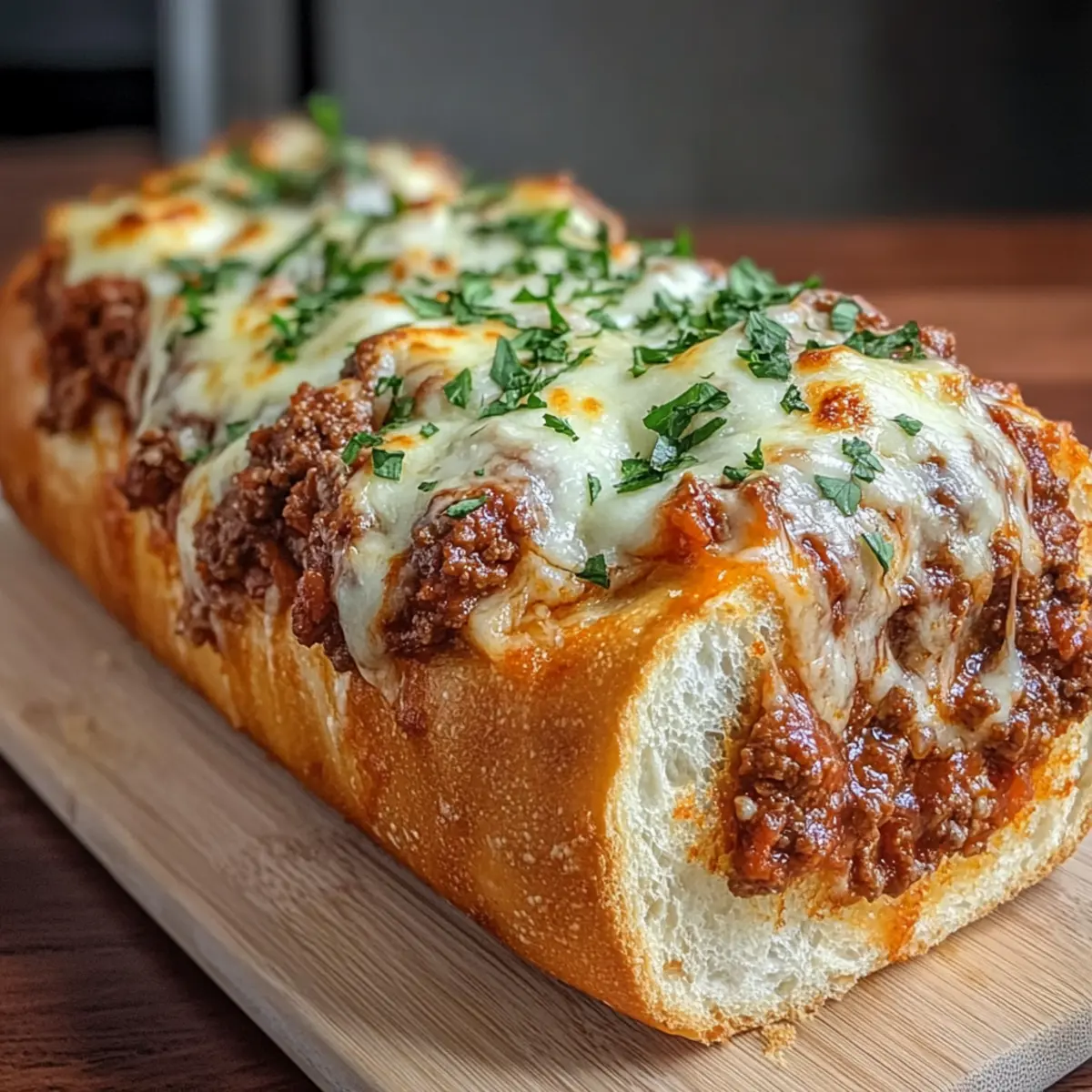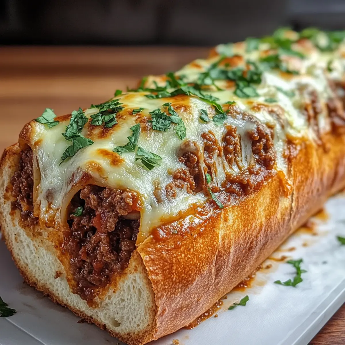As the aroma of garlic butter wafts through my kitchen, I’m reminded of those cozy family dinners where everyone gathers around, eager for a hearty meal. Enter the Ground Beef Lasagna Stuffed Garlic Bread, a delightful twist on a classic comfort food that packs all the satisfying layers of lasagna into a crusty loaf of Italian bread. This easy meal not only saves time spent layering a traditional dish but also provides a customizable canvas for your culinary creativity—perfect for impressing guests or simply treating yourself! With its gooey cheese and savory beef, each bite delivers a comforting embrace that’ll warm your heart and please your taste buds. Are you ready to bring this cheesy creation to your table? Why is this recipe a game-changer? Simplicity: This recipe combines the comfort of lasagna with the ease of garlic bread, allowing even novice cooks to shine. Customization: Tailor the ingredients to your taste, whether you prefer ground turkey, extra veggies, or a cheese mix that sings to your palate. Gooey Goodness: Revel in every bite of ooey-gooey cheese and juicy beef, a combination that satisfies even the heartiest appetites. Crowd-Pleaser: Perfect for family gatherings or casual get-togethers, this dish is sure to become a new favorite among friends and loved ones. Make Ahead: Save time on busy nights by prepping in advance and popping it into the oven when you’re ready—perfect for those on-the-go evenings. This Ground Beef Lasagna Stuffed Garlic Bread is a delicious transformation of a beloved classic that guarantees everyone will be clamoring for more! Try serving it alongside a crisp green salad to balance the flavors. Ground Beef Lasagna Stuffed Garlic Bread Ingredients For the Bread Italian Bread – A large loaf provides stability and a delicious, crispy exterior. For the Filling Ground Beef – This main protein can be swapped for ground turkey or sausage for variation. Marinara Sauce (24 oz) – Enhances flavor and adds moisture; go for your favorite brand or homemade. Ricotta Cheese (15 oz) – Offers a creamy richness; cottage cheese or vegan ricotta are great alternatives. Parmesan Cheese (1/2 cup) – Adds depth and tang; Grana Padano works as a similar substitute. Fresh Parsley (1/4 cup) – Gives freshness and color; basil or spinach makes a lovely replacement. Egg (1) – Binds the filling for consistency; consider a flax egg for a vegan option. Garlic Powder (1 tsp) – Provides a concentrated garlic flavor without the moisture; fresh minced garlic is a delicious alternative. Dried Oregano (1/2 tsp) – Imparts an herbaceous kick; if you have fresh, use 1 tsp instead. Mozzarella Cheese (8 oz) – Melts beautifully for that gooey texture; mixing in provolone adds variety. For the Topping Butter (1/2 cup, melted) – Adds richness while creating a flavorful top layer; try flavored butter for an extra zing. Garlic (2 cloves, minced) – Brings forth a fresh, aromatic flavor; roasted garlic provides a milder alternative. Embrace the joy of this Ground Beef Lasagna Stuffed Garlic Bread as you customize it to your liking, crafting a warm, comforting dish for all to enjoy! Step‑by‑Step Instructions for Ground Beef Lasagna Stuffed Garlic Bread Step 1: Preheat the Oven Begin by preheating your oven to 375°F (190°C). This temperature ensures that your Ground Beef Lasagna Stuffed Garlic Bread will bake evenly, resulting in a golden and crispy crust. While the oven heats, gather your ingredients and prepare your baking dish for the perfect cheesy comfort food experience. Step 2: Cook the Ground Beef In a large skillet over medium heat, brown 1 pound of ground beef until fully cooked, about 7-10 minutes, stirring occasionally to break it apart. Drain any excess grease to keep your filling from becoming soggy. Once cooked, you’ll find the beef beautifully browned—that’s when it’s ready for the next step! Step 3: Prepare the Meat Sauce Stir in 24 ounces of marinara sauce, along with 1 teaspoon of garlic powder and ½ teaspoon of dried oregano into the skillet with the beef. Reduce the heat to low and let it simmer for about 10 minutes, allowing the flavors to meld together beautifully. You should see the sauce bubbling gently; that indicates it’s perfectly ready to be layered inside the bread! Step 4: Mix the Cheese Filling In a mixing bowl, combine 15 ounces of ricotta cheese, ½ cup of grated Parmesan cheese, ¼ cup of chopped fresh parsley, and 1 beaten egg. Stir until smooth and well mixed; the mixture should have a creamy consistency. This cheese filling will lend a rich and satisfying flavor to your Ground Beef Lasagna Stuffed Garlic Bread. Step 5: Prepare the Bread Take a large loaf of Italian bread and cut it lengthwise in half. Carefully hollow out the insides of both halves, leaving about ½ inch of bread around the edges. Reserve the removed bread for future use, perhaps for breadcrumbs or croutons. The hollowed-out bread will create the perfect vessel for your filling! Step 6: Layer the Cheese and Meat Begin layering your fillings by spreading half of the ricotta mixture into the bottom half of the hollowed bread. Top it with half of the ground beef mixture, followed by half of the 8 ounces of shredded mozzarella cheese. Repeat the layers for the top half with the remaining ingredients, creating a hearty filling that resembles all the classic flavors of lasagna. Step 7: Cover and Brush the Bread Place the top half of the bread over your layered fillings, sealing it like a sandwich. In a small bowl, combine ½ cup of melted butter with 2 minced garlic cloves and brush this mixture generously over the top of the loaf. This garlic butter will create an enticing aroma and add immense flavor to your creation. Step 8: Bake the Stuffed Bread Wrap the entire loaf in aluminum foil, ensuring it’s completely covered to retain moisture. Place it on a baking sheet and bake for 20 minutes in your preheated oven. The bread will soften while the f