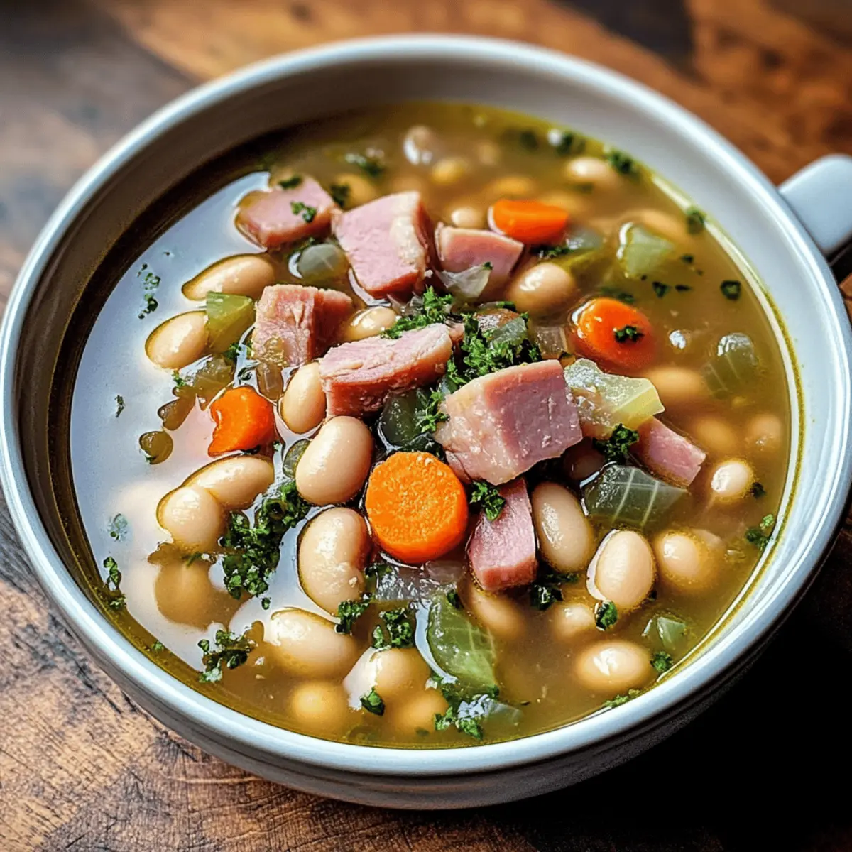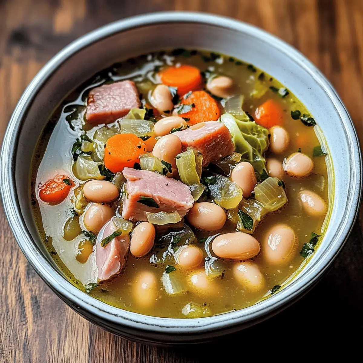 As the chilly winds begin to whistle through the trees, I find myself yearning for the hearty embrace of comfort food. That’s when I turn to my timeless recipe for Hearty Smoked Ham Hock and Bean Cabbage Soup, or Garbure, a rustic dish steeped in French tradition. This soup doesn’t just fill your belly; it fills your home with warmth and the inviting aroma of smoked ham mingling with tender white beans and seasonal vegetables. It’s incredibly nourishing and low-fat while remaining high in protein, making it a perfect choice for those cozy evenings in. So why not gather your loved ones around the table and serve up a bowl of this soul-soothing delight? What could be more comforting than sharing stories over a steaming pot of Garbure? Let’s dive in and discover how easy it is to create this delicious dish! Why is Ham Hock and Bean Cabbage Soup amazing? Comforting warmth: The rich, smoky flavor of ham hock perfectly complements the tenderness of white beans and vegetables, creating a dish that feels like a cozy hug. Hearty and nourishing: Packed with protein and fiber, this soup satisfies hunger while keeping things low-fat, making it a fantastic option for health-conscious diners. Easily customizable: You can swap in seasonal veggies or even add a splash of white wine for a personal touch; every pot can have its own unique twist. Effortless and forgiving: Using just one pot, you’ll have a delicious meal with minimal cleanup, perfect for busy weekdays or lazy weekends. Crowd-pleasing appeal: Ideal for gatherings, this Garbure invites family and friends to share laughter and stories, creating memorable moments around the dinner table. Serve it alongside a simple salad or crusty bread for a complete meal—just like with my Chicken Ranch Macaroni, you can enjoy flavorful dishes made with love. Ham Hock and Bean Cabbage Soup Ingredients • Perfect for a wholesome, comforting meal! For the Soup Base Smoked Ham Hock – Provides deep, smoky flavor and tender meat; substitute with bacon for a similar depth. Dried White Beans – Adds protein and fiber; soak overnight for the best texture, with options like Great Northern or Cannellini. Water or Chicken Broth – Forms the soup base; choose broth for enhanced flavor. Onion – Offers aromatic depth to the broth, enhancing overall flavor. Garlic – Adds robust flavor and a delightful aroma. For the Veggies Carrots – Contributes natural sweetness and a pop of color. Potatoes – Provides heartiness and helps thicken the soup. Green Cabbage – Enhances rustic appeal and adds a slight hint of sweetness. Leek – Delivers a mild onion-like flavor, enriching the soup. For Seasoning and Flavor Thyme – Infuses herbal notes, making the broth aromatic. Bay Leaf – Adds depth and complexity to the flavor profile. Salt and Pepper – Essential for seasoning to taste. Olive Oil – Used for sautéing aromatics, elevating the flavors. With these simple yet magical ingredients, your Ham Hock and Bean Cabbage Soup will not only nourish your body but also warm your soul on those chilly nights. Gather everything you need, and let’s cook up some comfort! Step‑by‑Step Instructions for Ham Hock and Bean Cabbage Soup Step 1: Sauté the Aromatics In a large pot or Dutch oven, heat a couple of tablespoons of olive oil over medium heat. Once shimmering, add chopped onion, minced garlic, and sliced leek. Sauté for about 5–7 minutes or until the onions become translucent and fragrant, filling your kitchen with a comforting aroma. This step forms the flavorful base of your Ham Hock and Bean Cabbage Soup. Step 2: Add the Ham Hock and Liquid Next, stir in your smoked ham hock, ensuring it’s positioned in the center of the pot. Pour in enough water or chicken broth to cover the ham hock completely, then bring the mixture to a rolling boil. You’ll notice steam rising and the sound of bubbling; this indicates your soup base is beginning to form. Step 3: Incorporate the Beans and Vegetables Once boiling, reduce the heat to low, then carefully stir in your soaked white beans, fresh thyme, bay leaf, sliced carrots, and diced potatoes. Allow everything to simmer gently for about 1 hour, with a lid slightly ajar. You’ll see the ingredients softening, and the broth will turn rich and hearty as flavors meld beautifully together in the Ham Hock and Bean Cabbage Soup. Step 4: Shred the Ham Hock After an hour, use tongs to remove the ham hock from the pot; let it rest on a cutting board. Once cool enough to handle, shred the tender meat using two forks, discarding any bones or excess fat. Return the shredded ham to the pot, stirring well to incorporate it back into the soup, enhancing its comforting texture. Step 5: Add Cabbage and Final Simmer Add the chopped green cabbage to the pot and increase the heat slightly. Cover the pot and continue to simmer for an additional 20–30 minutes, allowing the cabbage to soften and all the flavors to meld together. You’ll notice the vibrant color of the cabbage contrasting with the soup, making it even more inviting. Step 6: Season and Serve Once the vegetables are tender, taste the soup and season with salt and pepper as needed. Remove the bay leaf before serving. Ladle the comforting Ham Hock and Bean Cabbage Soup into bowls and pair it with some crusty bread for a wholesome experience. Enjoy the heartwarming flavors and the joyful moments it brings around your table! What to Serve with Hearty Smoked Ham Hock and Bean Cabbage Soup? Indulging in a bowl of warm, hearty soup feels like a comforting embrace, especially when complemented by delightful sides. Crusty French Bread: Perfect for dipping, this bread absorbs the smoky flavors beautifully and adds a satisfying crunch. Fresh Arugula Salad: Tossed with a zingy vinaigrette, it offers a fresh contrast to the soup’s richness, balancing every bite. Roasted Root Vegetables: Their natural sweetness enhances the savory profile of the soup while providing a warm, rust