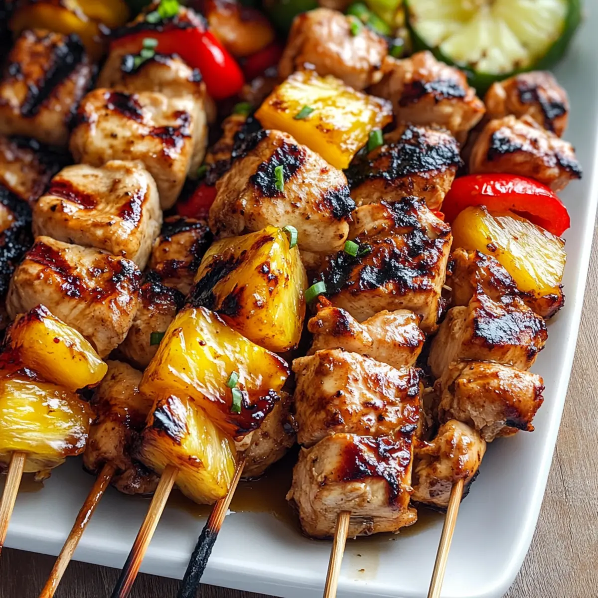 Enjoy a tropical paradise with Hawaiian Chicken Skewers, featuring marinated chicken and sweet pineapple.