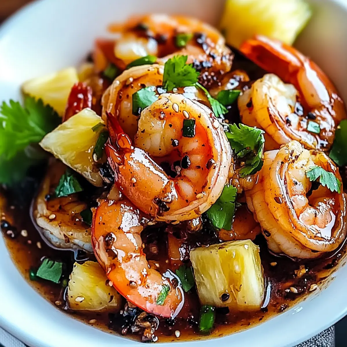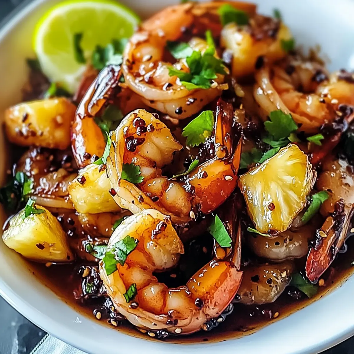 Tropical scents wafted through the air, immediately transporting me to sun-drenched beaches as I crafted my latest culinary creation. This Hawaiian Garlic Shrimp with a Sweet Twist became my go-to weeknight dinner—an effortless yet impressive dish that perfectly balances savory garlic, zesty ginger, and the delightful sweetness of pineapple. Not only does this recipe come together in just 25 minutes, making it an ideal choice for busy evenings, but it also offers a delicious way to enjoy succulent shrimp, whether you opt for fresh or frozen! The vibrant flavors and quick preparation make it a crowd-pleaser for everyone—family and guests alike. Curious about how to bring a taste of the islands to your kitchen? Let’s dive into this quick and satisfying recipe together! Why is This Recipe a Game Changer? Quick and Easy: This Hawaiian Garlic Shrimp comes together in just 25 minutes, making it perfect for those hectic weeknights when you want a satisfying meal without the hassle. Flavor Explosion: The delightful combination of garlic, ginger, and fresh pineapple creates a vibrant flavor profile that will transport your taste buds straight to the tropics. Versatile Ingredients: Use fresh or frozen shrimp based on what you have on hand, and feel free to swap in veggies like bell peppers for added nutrition. Crowd-Pleasing Appeal: Whether you’re feeding the family or impressing guests, this dish is guaranteed to be a hit. Serve it with some coconut rice or a fresh green salad to create a complete meal. Healthy and Balanced: Each serving is around 320 calories, so you can indulge without the guilt! It’s a delightful way to enjoy the health benefits of seafood paired with fresh flavors. Ready for a bite of this tropical delight? Try serving it alongside Garlic Butter Shrimp for an irresistible feast! Hawaiian Garlic Shrimp Ingredients For the Sauce Soy Sauce – Provides umami and saltiness; enhances the sweet glaze. Opt for low-sodium if preferred. Honey – Adds sweetness and glossiness to the sauce. Agave syrup can be used for a vegan option. Brown Sugar – Deepens sweetness and helps thicken the glaze. Coconut sugar works as a less refined alternative. Rice Vinegar – Adds acidity to balance flavors. Apple cider vinegar can be used if rice vinegar is unavailable. Pineapple Juice – Delivers natural sweetness and tropical flavor. Fresh juice yields the best taste. Red Pepper Flakes – Adds optional heat; adjust based on your spice preference. Omit for a milder sauce. Salt and Black Pepper – Essential seasonings to enhance the overall flavors. Adjust according to taste. For the Shrimp Shrimp – The star of the meal; sweet and succulent. Use fresh or thawed frozen shrimp for convenience. Olive Oil – Cooking fat that helps achieve a golden crust on the shrimp. Any neutral oil can be used as a substitute. For the Aromatics Garlic – Provides warmth and depth to the dish. Finely minced garlic releases maximum flavor. Ginger – Adds a bright, spicy kick that complements garlic. Ground ginger can be used as an alternative (1/4 tsp for every tbsp). For the Finishing Touches Pineapple – Fresh and chopped for fruity bursts of flavor. Other tropical fruits like mango can be swapped in. Cilantro – Adds a fresh herbal note to lighten the dish. Parsley can be used if you’re not a fan of cilantro. Sesame Oil – Drizzle it in for a nutty flavor. Omit if you want a lighter finish or if there’s an allergy. Lime Juice – Brightens the dish right before serving; essential for balancing sweetness. Don’t skip this step! Green Onions – Garnish for added freshness and crunch. Feel free to omit if you don’t have any on hand. Step‑by‑Step Instructions for Hawaiian Garlic Shrimp with a Sweet Twist Step 1: Prepare the Sauce In a medium bowl, combine soy sauce, honey, brown sugar, rice vinegar, pineapple juice, red pepper flakes, salt, and black pepper. Whisk together until the mixture is smooth and well blended, ensuring there are no lumps from the sugar. This flavorful sauce will serve as the delicious base for your Hawaiian Garlic Shrimp. Step 2: Cook the Shrimp Heat a large skillet over medium-high heat and drizzle in olive oil. Once the oil is shimmering, add the shrimp in a single layer. Sauté the shrimp for about 2-3 minutes on each side, or until they turn pink and opaque, indicating they are cooked through. Remove the shrimp from the skillet and set them aside on a plate. Step 3: Sauté the Aromatics In the same skillet, still over medium heat, add the minced garlic and ginger. Stir the garlic and ginger for approximately 30 seconds until they become fragrant, being careful not to let them burn. The aromatic scent will fill your kitchen, creating a perfect backdrop for your Hawaiian Garlic Shrimp dish. Step 4: Simmer the Sauce Pour the prepared sauce into the skillet with the garlic and ginger, and bring it to a gentle simmer. Let the sauce cook for about 1-2 minutes, stirring occasionally, until it thickens slightly. This enhances the flavors and creates a delicious coating for your shrimp. Step 5: Combine Shrimp and Sauce Return the sautéed shrimp to the skillet, tossing them gently to ensure they are thoroughly coated in the sticky sauce. Allow the mixture to simmer together for an additional 1-2 minutes, letting the shrimp soak up the sweet and savory flavors of the sauce while ensuring they stay warm. Step 6: Add Pineapple Stir in the chopped pineapple and continue to cook for another minute. The heat will soften the pineapple slightly, allowing its natural sweetness to blend beautifully with the sauce while adding a delightful fruity burst to the Hawaiian Garlic Shrimp. Step 7: Finish with Sesame Oil Drizzle sesame oil over the shrimp mixture, tossing everything gently to combine and enhance the dish with a nutty flavor. This finishing touch elevates your Hawaiian Garlic Shrimp, creating depth in flavor and a glossy finish to the sauce. Step 8: Final Brightness Remo