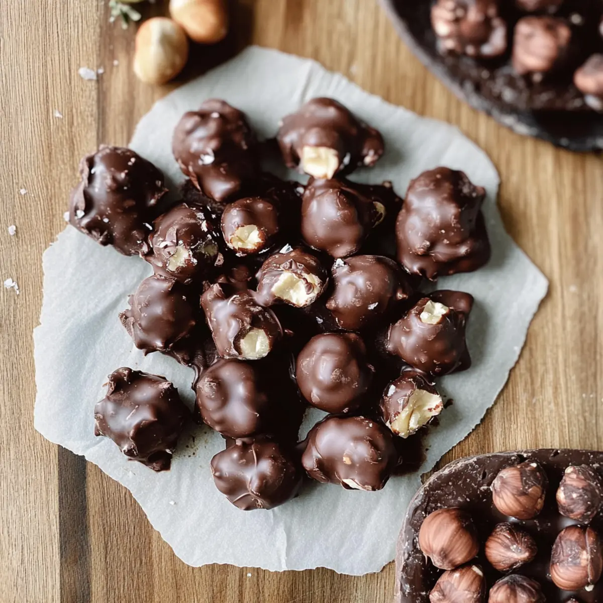 As I stood in my kitchen, the familiar aroma of toasted hazelnuts wafted through the air, instantly transforming my space into a cozy haven. This enchanting sensory experience led me to create my latest obsession: 3-Ingredient Crunchy Chocolate Hazelnut Clusters. With only three simple ingredients, this gluten-free and dairy-free recipe offers the perfect quick snack solution for those looking to ditch fast food without sacrificing taste. Not only do these delightful clusters provide a satisfying crunch alongside rich chocolate goodness, but they also make for an energizing boost any time of day. They’re an irresistible treat to share or savor alone, embodying the best of homemade indulgence. Ready to discover how to whip up these delectable bites in no time? Let’s dive in! Why are Hazelnut Clusters So Irresistible? Simplicity at its finest: With only three ingredients, these clusters are incredibly easy to whip up, making snack time effortless and enjoyable. Health-Conscious choice: Gluten-free, dairy-free, and refined sugar-free, they cater to various dietary needs without compromising on flavor. Flavor Explosion: You’ll love the delightful crunch of toasted hazelnuts paired with the rich, velvety chocolate that binds them together. Versatile snacking: Enjoy these clusters as a quick snack, dessert, or post-workout treat, versatile enough to please anyone’s cravings. Crowd-Pleaser: Perfect for sharing, these delightful bites are sure to impress friends and family, making them a hit at gatherings. Get ready to experience these heavenly hazelnut clusters that satisfy sweet cravings without the guilt! Hazelnut Clusters Ingredients For the Clusters • Hazelnuts – Toasted for maximum flavor and crunch, these are the star of the show! • Chocolate (dark or milk) – Rich and smooth, this binds the hazelnuts and adds a sweet touch; opt for dairy-free chocolate for a vegan-friendly version. Enjoy whipping up these delightful hazelnut clusters with just three ingredients! Step‑by‑Step Instructions for Crunchy Chocolate Hazelnut Clusters Step 1: Preheat the Oven Begin by preheating your oven to 350°F (175°C). This ensures that your hazelnuts will roast evenly and achieve that perfect golden color. While the oven heats, prepare a baking sheet by lining it with parchment paper, ready to showcase those lovely hazelnuts. Step 2: Toast the Hazelnuts Spread the hazelnuts in a single layer on the prepared baking sheet. Bake them in the preheated oven for about 10 minutes, allowing the warm aroma to fill your kitchen. Watch closely for a light golden color and a slightly nutty fragrance, which signal that they are perfectly toasted. Step 3: Cool and Skin the Hazelnuts Once the hazelnuts are toasted, remove them from the oven and let them cool for 20 minutes. To remove the skins, place the hazelnuts in a clean dish towel and rub them together gently. This will help loosen the skins, leaving you with beautifully toasted hazelnuts, ideal for your crunchy chocolate hazelnut clusters. Step 4: Melt the Chocolate In a small saucepan, add your preferred chocolate (either dark or milk). Heat the chocolate over low heat, stirring continuously until it becomes fully melted and smooth; this should take about 5 minutes. Be careful to prevent burning by keeping the temperature low, creating the perfect smooth coating for your clusters. Step 5: Combine Hazelnuts and Chocolate In a mixing bowl, pour the melted chocolate over the toasted hazelnuts. Gently mix the two together until all the hazelnuts are fully coated in chocolate, creating a delightful and uniform mixture. This chocolate-hazelnut combination is what makes your crunchy chocolate hazelnut clusters so irresistible. Step 6: Form the Clusters Using an ice cream scoop or a tablespoon, drop spoonfuls of the chocolate-coated hazelnut mixture onto the parchment-lined baking sheet. Space them out to avoid overcrowding, as they will spread slightly as they cool. This is the moment when your tantalizing clusters begin to take shape. Step 7: Set the Clusters Allow the clusters to sit at room temperature for approximately 30 minutes, or until the chocolate hardens. For quicker results, you can also pop them in the refrigerator for about 15-20 minutes. This sets the clusters, giving them that lovely, crisp texture that everyone will adore. Step 8: Store for Freshness Once your crunchy chocolate hazelnut clusters are completely set, store any leftovers in an airtight container in the refrigerator. They will maintain their deliciousness for up to two weeks, ensuring you have a quick snack on hand whenever the craving strikes. Enjoy these delightful clusters anytime! Hazelnut Clusters: Easy Twists Await Feel free to unleash your creativity and customize these delightful clusters with simple swaps and tweaks! Nut Variety: Substitute hazelnuts with almonds or pecans for a different crunch and flavor profile. Flavor Boost: For an extra kick, add a pinch of sea salt or sprinkle some on top before the chocolate hardens for a sweet and salty surprise. Dried Fruit: Consider folding in dried cranberries or chopped apricots to introduce a chewy texture that pairs beautifully with the clusters’ crunch. Nut Butter: Stir in a tablespoon of creamy almond or peanut butter into the melted chocolate for an enriching twist that adds creaminess and flavor. Spicy Kick: If you love a bit of heat, add a dash of cayenne pepper or cinnamon to the chocolate for a surprising burst of warmth. Coconut Flakes: Toss in unsweetened coconut flakes with the hazelnuts before coating them for a tropical flair that harmonizes with the chocolate. Frozen Treat: Transform your clusters into a delicious frozen snack by setting them in the freezer for a chilled, refreshing treat on hot days. Additional Nutrition: Enhance your clusters with a handful of chia seeds or flaxseeds stirred in for an extra nutrient boost. These variations will make your hazelnut clusters even more irresistible; don