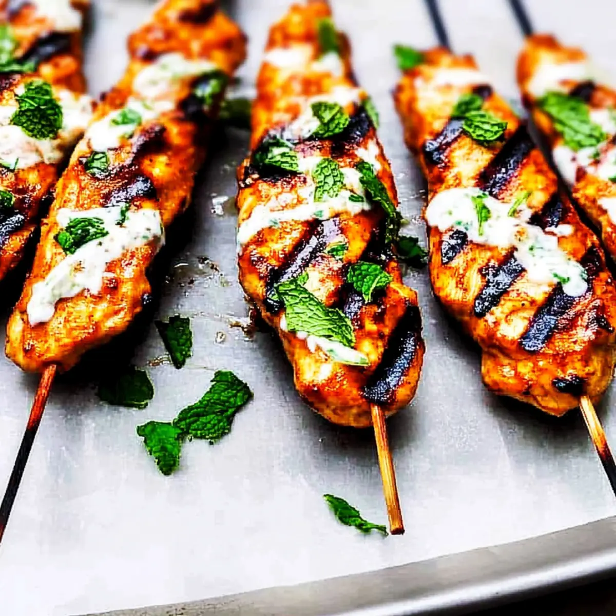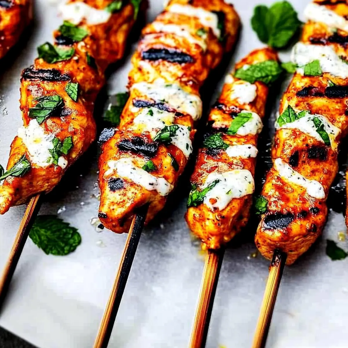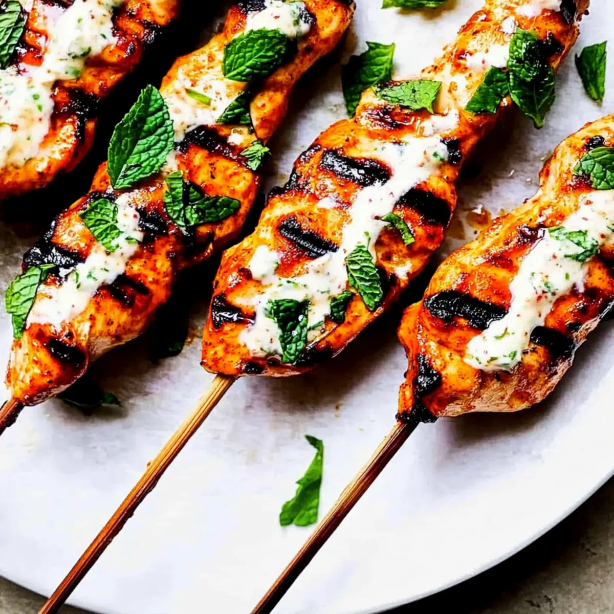 The vibrant aroma of summer grilling fills the air as I twirl these juicy Honey Harissa Chicken Skewers atop the flames, envisioning long evenings spent chatting with loved ones. This Mediterranean-inspired recipe is not only a feast for the senses but also a quick prep solution for those busy nights when takeout just won’t do. With tender chicken marinated in a spicy-sweet harissa blend and served with a refreshing garlic mint sauce, you’ll bring a taste of the Mediterranean right to your backyard. Plus, these skewers are gluten-free, making them a versatile hit for everyone at the table. Ready to elevate your grilling game and impress your guests? Let’s get cooking! Why Choose Honey Harissa Chicken Skewers? Elevated Flavors: The perfect fusion of sweet honey and spicy harissa creates an unforgettable taste that will have your family asking for seconds! Quick Preparation: With just a few simple steps and minimal hands-on time, you’ll have these skewers ready for the grill in no time. Gluten-Free Goodness: A fantastic option for those avoiding gluten, satisfying all dietary needs without sacrificing flavor. Crowd-Pleasing Delight: Ideal for gatherings, these skewers stand out at barbecues and weekend get-togethers, becoming the star of any meal. Versatile for All: Pair with a fresh Panzanella salad or crusty garlic bread for a complete Mediterranean feast! Check out my other recipes like Honey Bourbon Chicken for more delicious ideas. Honey Harissa Chicken Skewers Ingredients For the Chicken Marinade • Chicken Breasts – Boneless and skinless, cut into strips to ensure juicy, flavorful skewers. • Mild Harissa – Adds a spicy, aromatic kick; use mild to keep it family-friendly. • Olive Oil – Helps to marinate and grill, keeping the chicken moist throughout cooking. • Honey – Sweetens the marinade, balancing the harissa’s spice perfectly; substitute with maple syrup for a vegan twist. • Salt and Pepper – Essential for seasoning; don’t skimp on these basics to elevate overall flavors. For the Garlic Mint Sauce • Garlic – Freshly crushed for depth of flavor and a fragrant note in the dipping sauce. • Lemon Juice – Brightens the sauce, enhancing the garlic and providing a zesty finish. • Yogurt (natural or Greek) – Adds creaminess to the sauce, smoothing the garlic’s bite; opt for non-dairy yogurt for a vegan version. • Fresh Mint – Provides a refreshing contrast to the marinade; feel free to swap in cilantro for a different twist. Enjoy crafting these Honey Harissa Chicken Skewers with Garlic Mint Sauce that are bursting with flavors and perfect for summer grilling! Step‑by‑Step Instructions for Honey Harissa Chicken Skewers with Garlic Mint Sauce Step 1: Marinate Chicken In a mixing bowl, whisk together mild harissa, honey, olive oil, salt, and pepper until well combined. Add the chicken strips, ensuring each piece is thoroughly coated with the marinade. Cover the bowl with plastic wrap and refrigerate for at least 3 hours or overnight for maximum flavor infusion. Step 2: Soak Skewers If using wooden skewers, soak them in water for at least 30 minutes to prevent burning during grilling. This simple step not only helps maintain the integrity of the skewers but also ensures your Honey Harissa Chicken Skewers cook evenly and remain juicy. Step 3: Thread Chicken Once marinated, take the soaked skewers and thread the chicken strips onto them, securing each piece horizontally. Aim for a snug fit without overcrowding, allowing heat to circulate. This preparation step ensures even cooking and that every bite is infused with the delightful honey harissa marinade. Step 4: Grill Preheat your grill to medium heat, around 350°F (175°C). Place the chicken skewers on the grill and cook for 3-4 minutes on each side, flipping carefully. Grill until the exterior is beautifully charred and the internal temperature reaches 165°F (75°C). This ensures your Honey Harissa Chicken Skewers are juicy and safe to eat. Step 5: Prepare Sauce While the skewers are grilling, prepare the garlic mint sauce by blending together crushed garlic, lemon juice, olive oil, yogurt, and fresh mint in a food processor. Process until the mixture is smooth and creamy, creating a vibrant sauce that perfectly complements the skewers. Step 6: Serve Once the chicken skewers are ready, drizzle the garlic mint sauce generously over them. Garnish with additional mint or parsley if desired, adding a pop of color and fresh flavor. Serve immediately and enjoy the delightful combination of Honey Harissa Chicken Skewers with Garlic Mint Sauce that’s perfect for your next gathering! Make Ahead Options These Honey Harissa Chicken Skewers with Garlic Mint Sauce are fantastic for meal prep, saving you precious time on busy weeknights! You can marinate the chicken strips up to 24 hours in advance for maximum flavor; simply combine the marinades and refrigerate the coated chicken in an airtight container. The garlic mint sauce can also be prepared ahead and stored in the refrigerator for up to 3 days—just give it a good stir before serving to refresh its creamy texture. When ready to cook, thread the marinated chicken onto skewers and grill as directed. This way, you’ll have juicy, delicious skewers ready to impress your family without all the last-minute rush! Expert Tips for Honey Harissa Chicken Skewers • Marinate Well: Ensure you marinate the chicken for at least 3 hours or overnight to deepen the flavors of the honey harissa. • Skewer Size Matters: Use 6-inch skewers for perfect portions. Avoid overcrowding to allow even cooking and a beautiful char. • Temperature Check: Always check the internal temperature of the chicken to reach 165°F for safe and juicy results. • Sauce Variations: Feel free to customize the garlic mint sauce by adding a pinch of chili flakes for an extra kick that complements the skewers beautifully. • Grill Technique: Keep a close eye on the skewers while