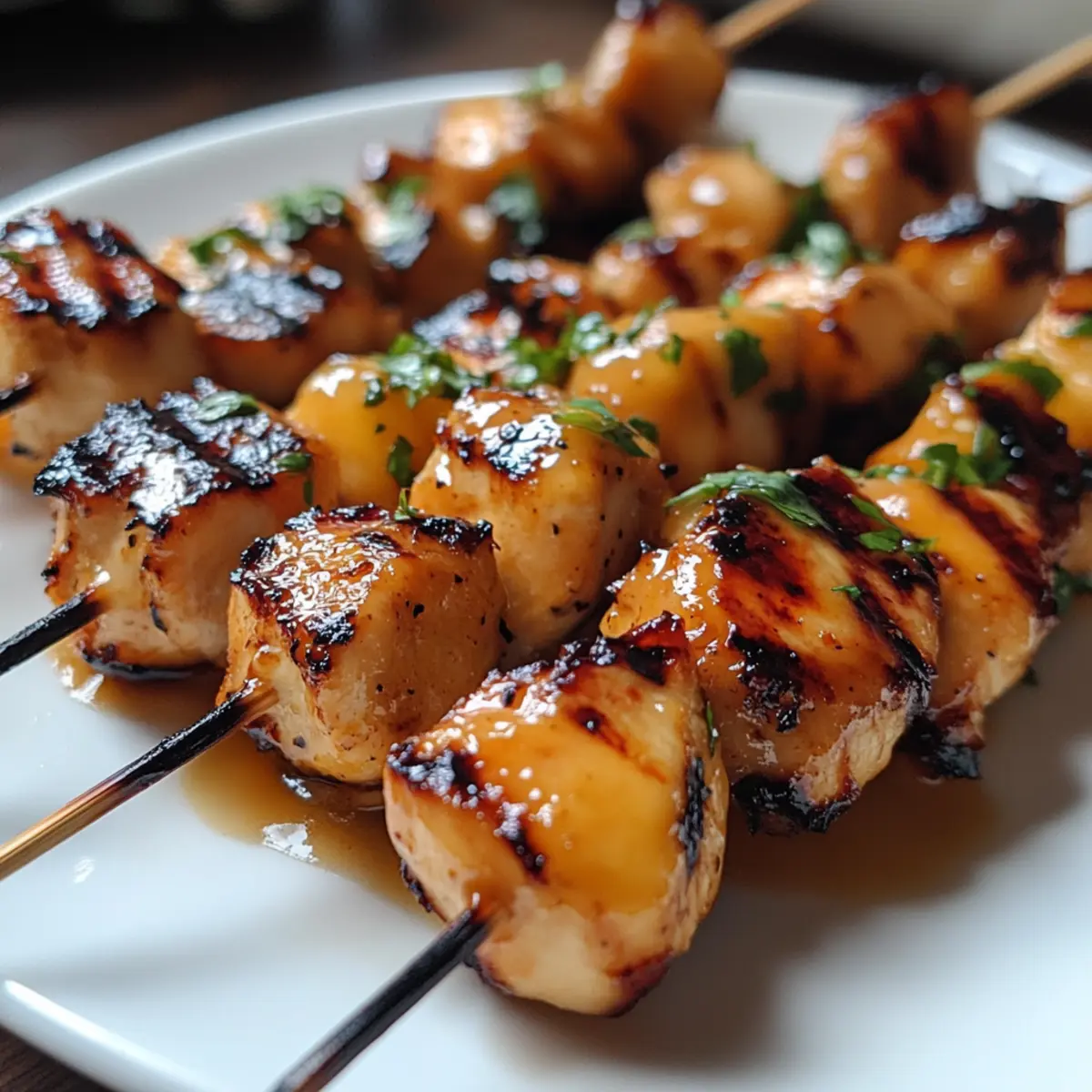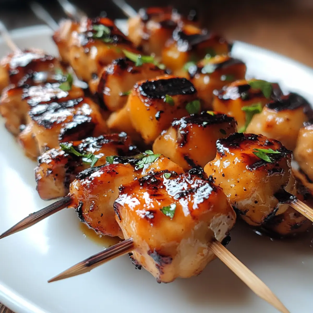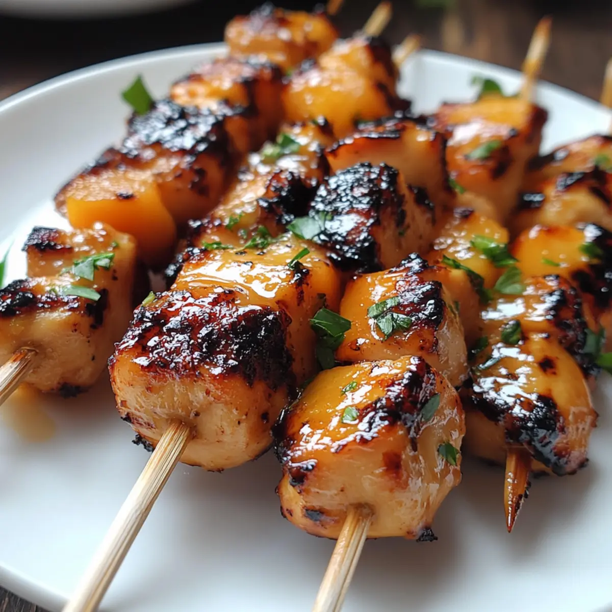 As I stood by the grill, the sweet aroma of peach mingled with a spicy kick wafted through the air, instantly transporting me to a sun-soaked summer afternoon. That’s precisely what my Jalapeno Peach Chicken Skewers deliver—an explosion of flavor that perfectly captures the essence of outdoor gatherings. In just 30 minutes, you can whip up these skewers that are not only a crowd-pleaser but also incredibly adaptable for your guests’ heat preferences. Whether you’re grilling under the stars or baking indoors, these juicy delights come with a sticky glaze that bridges sweet and spicy flawlessly. Ready to impress your friends and family? Let’s dive into this delicious recipe together! Why are these skewers a must-try? Deliciously Unique: These Jalapeno Peach Chicken Skewers combine the unexpected duo of peaches and jalapeños, delivering a sweet-spicy experience that’s hard to resist. Quick Prep: You can bring this flavorful dish to life in just 30 minutes, perfect for impromptu gatherings or busy weeknights. Adaptable Heat: Whether you love a fiery kick or prefer milder flavors, this recipe lets you adjust the heat by modifying jalapeño usage. Versatile Cooking Methods: Grill or bake for your desired style; each method offers a delightful flavor while keeping cleanup easy. Crowd-Pleaser: These skewers are not only a feast for the taste buds but look stunning on the table, making them a showstopper for any summer party—or serve them alongside Grilled Chicken Bacon for an effortless spread! Jalapeno Peach Chicken Skewers Ingredients For the Skewers • Chicken Breast – A lean protein; opt for boneless, skinless for a lighter bite. • Peach Preserves – Adds a sticky sweetness; fresh peaches can be used with honey for a homemade touch. • Jalapeños – Brings heat and flavor; remove seeds for a milder profile or substitute with mild poblano if desired. • Soy Sauce – Introduces savory depth; coconut aminos work well for a gluten-free option. • Olive Oil – Helps keep everything moist while adding flavor; avocado oil is a great alternative. • Garlic Powder – Enhances overall taste; fresh minced garlic can elevate the flavor even more. • Salt & Pepper – Essential for flavor enhancement; adjust according to your taste preferences. Feel the excitement build as you gather these ingredients for your irresistible Jalapeno Peach Chicken Skewers! Step‑by‑Step Instructions for Jalapeno Peach Chicken Skewers Step 1: Prepare the Skewers Cut the chicken breast into 1-inch cubes for even cooking and uniform tenderness. Meanwhile, soak wooden skewers in water for at least 30 minutes to prevent burning while grilling. This essential step ensures that your Jalapeno Peach Chicken Skewers stay intact and juicy during the cooking process. Step 2: Mix the Glaze In a medium bowl, combine the peach preserves, chopped jalapeños, soy sauce, olive oil, garlic powder, salt, and pepper. Stir until the mixture is well blended and smooth, tasting for the right balance of sweetness and heat. This sticky glaze will be key to adding that sweet-spicy flavor profile that makes your skewers irresistible. Step 3: Preheat the Grill Preheat your grill to medium-high heat, around 375°F to 400°F. This ensures a perfect sear on your Jalapeno Peach Chicken Skewers, giving them that gorgeous, caramelized exterior. While the grill heats up, it’s the perfect time to thread your chicken onto the skewers. Step 4: Assemble the Skewers Thread the marinated chicken cubes onto the skewers, leaving a little space between each piece to allow for even cooking. Once assembled, brush the skewers generously with half the peach glaze. This will help lock in flavor as they grill, creating a delectable crust on your skewers. Step 5: Grill the Skewers Place the skewers on the preheated grill and cook for 5-6 minutes on each side. Baste the skewers with the remaining glaze when flipping to enhance the flavor and create a shiny exterior. Cook until the internal temperature of the chicken reaches 165°F, ensuring they are safely cooked through. Step 6: Rest and Serve Once cooked, remove the Jalapeno Peach Chicken Skewers from the grill and allow them to rest for 2 minutes. This resting period helps the juices redistribute throughout the chicken, making each bite even more succulent. Serve them on a platter and enjoy the compliments from your gathered friends and family! Storage Tips for Jalapeno Peach Chicken Skewers Fridge: Store leftover skewers in an airtight container in the fridge for up to 3 days. For best results, remove the chicken from the skewers before refrigerating, making it easier to add to salads or wraps. Freezer: If you want to save them for later, freeze the cooked skewers for up to 2 months. Wrap each skewer tightly in foil or plastic wrap before placing them in a freezer-safe bag to prevent freezer burn. Reheating: To reheat, bake the frozen skewers in a preheated oven at 375°F for about 15-20 minutes or until heated through. Alternatively, grill them briefly over medium heat, brushing with any remaining glaze. Room Temperature: If serving for a party, avoid leaving these Jalapeno Peach Chicken Skewers out at room temperature for more than 2 hours to ensure food safety. What to Serve with Jalapeno Peach Chicken Skewers Bring your summer meal together with these complementary sides that elevate the skewers’ flavors and textures. Zesty Coleslaw: The crunchy, creamy textures of coleslaw balance the spicy sweetness, offering refreshing bites alongside your skewers. Grilled Corn on the Cob: Sweet corn, grilled to perfection, enhances the summer vibe and adds a smoky, juicy component. Cilantro Lime Rice: This fragrant rice dish adds a zesty flair that pairs beautifully with the peach and jalapeño flavor profile. Roasted Vegetables: A medley of roasted seasonal vegetables adds earthy flavors and contrast, making your meal colorful and nutrient-rich. Watermelon Salad: A cool and juicy watermelon s