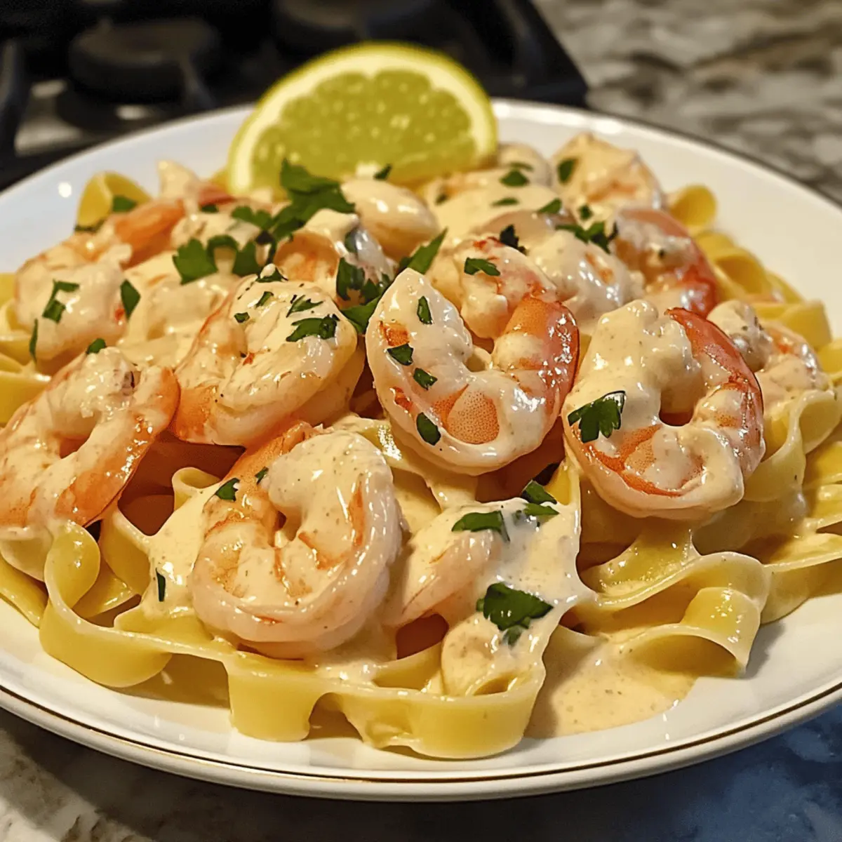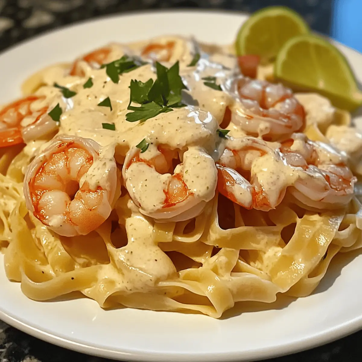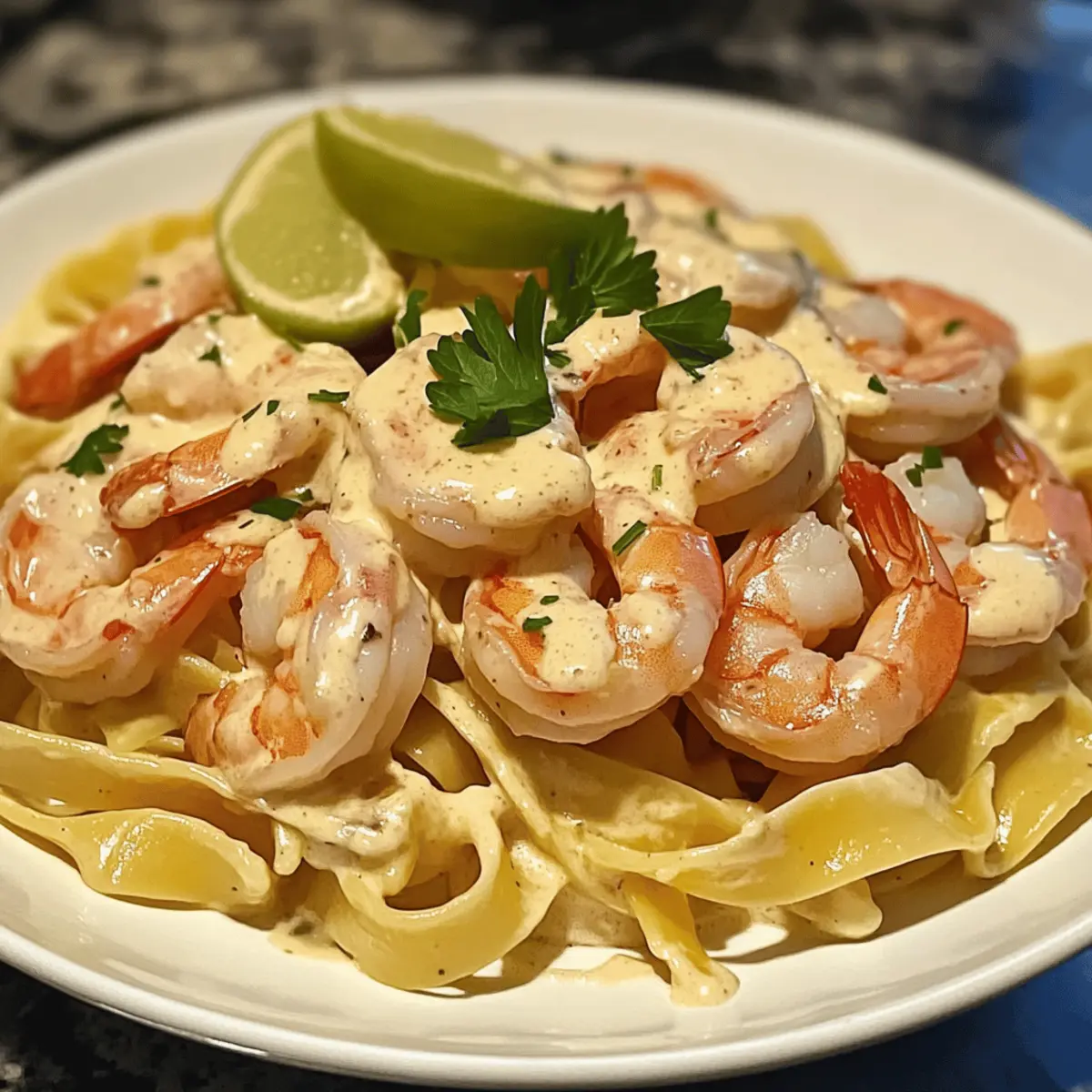 As the scent of warming spices envelops my kitchen, I can’t help but feel transported to the sun-drenched shores of the Caribbean. This Jamaican Shrimp Pasta is not just a dish; it’s a joyful culinary escape that combines rich, creamy fettuccine with succulent shrimp, brought to life by the vibrant flavors of jerk seasoning and coconut milk. Perfect for a quick weeknight meal or a special gathering, this dish is incredibly satisfying and easy to whip up in under 30 minutes. The delightful interplay of spices and creamy texture makes it a true crowd-pleaser. Are you ready to bring a taste of the islands to your table? Why is Jamaican Shrimp Pasta a Must-Try? Taste Explosion: Each bite offers a delicious combination of creamy and spicy flavors, akin to a mini Caribbean vacation. Quick and Easy: You can whip this up in under 30 minutes, making it ideal for those busy weeknights. Crowd-Pleasing: Perfect for entertaining, this dish impresses guests without requiring gourmet skills. Versatile Options: Customize your meal by swapping shrimp for chicken or adding fresh veggies like spinach for extra nutrition. Nutritious and Flavorful: Packed with protein from shrimp and healthy fats from coconut milk, this dish doesn’t skimp on taste while keeping nutrition in mind. Whether you’re craving a comforting meal after a long day or looking to impress at your next dinner party, this Jamaican Shrimp Pasta will deliver! For more delightful seafood dishes, don’t miss our Baked Stuffed Shrimp or Seafood Lasagna Shrimp. Jamaican Shrimp Pasta Ingredients For the Pasta Fettuccine or Spaghetti – The base of the dish; feel free to swap with your favorite pasta for a personal touch. For the Protein Large Shrimp – Delivers sweetness and tender texture; opt for fresh wild-caught when possible, thaw properly if frozen. For Sautéing Olive Oil – Ideal for sautéing aromatics to add rich depth; other cooking oils can work too if preferred. Garlic – A wonderful flavor enhancer; fresh is best, but garlic powder can suffice in a pinch. Red Bell Pepper – Adds vibrant color, sweetness, and crunch; substitute with other bell peppers or leave out entirely if desired. Onion – Brings sweetness and richness to the dish; any variety works, shallots are also a great alternative. For the Sauce Coconut Milk – The secret to creaminess and a Caribbean twist; full-fat for the richest flavor. Heavy Cream – Enhances the sauce’s richness; swap with more coconut milk for a dairy-free option. Jamaican Jerk Seasoning – Infuses the dish with its signature spicy, aromatic flavor profile; adjust to your spice tolerance. For the Finishing Touches Fresh Parsley – Garnish and adds a fresh flavor note; can be swapped with cilantro for a different taste. Salt and Black Pepper – Essential for enhancing all flavors; season to your personal preference. Lime Wedges – Optional for a zesty brightness that wakes up the dish. Grated Parmesan Cheese – Adds extra creaminess and flavor if desired; entirely optional. Gather these ingredients to create your luscious Jamaican Shrimp Pasta, a delightful blend of creamy, spicy, and Caribbean-inspired flavors! Step‑by‑Step Instructions for Jamaican Shrimp Pasta Step 1: Cook Pasta Bring a large pot of salted water to a rapid boil over high heat. Add your choice of fettuccine or spaghetti and cook according to package instructions until al dente, usually about 8-10 minutes. Once cooked, reserve a cup of the pasta water to adjust sauce consistency later, then drain the pasta in a colander and set aside. Step 2: Sauté Aromatics In a large skillet, heat 2 tablespoons of olive oil over medium heat. Add chopped onions and diced red bell peppers, sautéing them for about 3–4 minutes until they soften and become fragrant. Once they’re translucent, stir in minced garlic and cook for an additional minute, watching closely to avoid burning. Step 3: Add Shrimp Introduce the large shrimp to the skillet, evenly seasoning them with Jamaican jerk seasoning. Cook for about 2–3 minutes, flipping them halfway through until they turn pink and opaque. Once cooked, remove the shrimp from the skillet and set aside, leaving the flavorful juices and aromatics in the pan. Step 4: Make Sauce In the same skillet, pour in the coconut milk and heavy cream, stirring to combine with the remaining vegetables. Bring the mixture to a gentle simmer over medium-low heat, allowing it to heat through for about 5–7 minutes. If the sauce appears too thick, gradually add some reserved pasta water until the desired creaminess is achieved. Step 5: Combine Once the sauce is creamy and aromatic, add the drained pasta directly into the skillet. Stir gently to coat the pasta in the sauce, ensuring it absorbs all the rich flavors. Add the cooked shrimp back to the skillet, folding them in carefully to combine and heat through. Step 6: Season and Serve Taste your Jamaican Shrimp Pasta and season with salt and black pepper as needed to enhance the flavors. Serve the dish in warm bowls, garnishing with freshly chopped parsley and lime wedges for a bright finish. Optional: sprinkle grated Parmesan cheese on top for added richness. Jamaican Shrimp Pasta Variations Feel free to experiment with these fun variations that can elevate your Jamaican Shrimp Pasta and cater to your unique taste preferences! Protein Swap: Swap shrimp for scallops or grilled chicken for a tasty twist. Both options deliver a satisfying protein boost while adding their own distinct flavors. Veggie Loading: Add vegetables like fresh spinach, zucchini, or cherry tomatoes for extra nutrition and color. Mix them in when sautéing the aromatics for a vibrant dish that brings life to every bite. Dairy-Free Delight: Substitute heavy cream with additional coconut milk for a completely dairy-free version. The extra coconut will keep that creamy texture intact while enhancing the tropical flavor. Spicy Kick: Increase the heat by adding a pinch of cayenne 