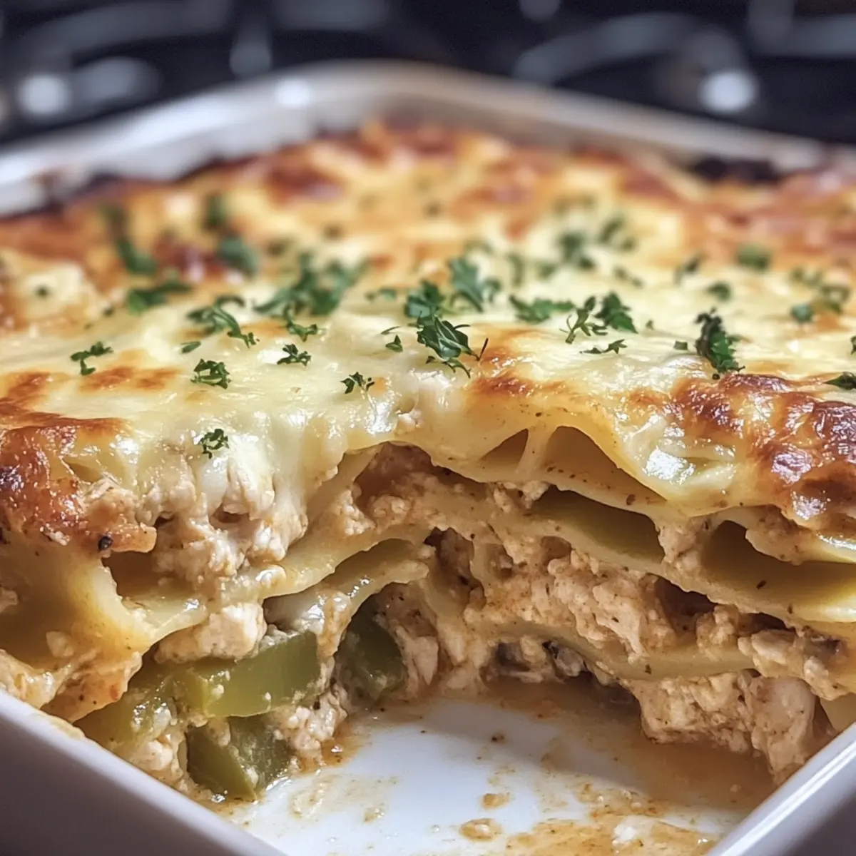 As I was sifting through my collection of cherished recipes, a vibrant memory came flooding back—a delightful dinner where spicy aromas danced in the air. That night, I discovered the magic of Jerk Chicken Lasagna, a dish that fuses the tropical warmth of Caribbean spices with the comforting layers of traditional Italian lasagna. This unique recipe offers a fun culinary twist that is both customizable and full of flavors—perfect for those busy nights when you want to impress without spending hours in the kitchen. With just a few simple ingredients, you can easily whip up this crowd-pleaser that will have everyone coming back for seconds. Are you ready to embark on a flavorful adventure that will change your dinner routine? Let’s dive into making this irresistible Jerk Chicken Lasagna! Why Is Jerk Chicken Lasagna So Special? Fusion of Flavors: This dish brilliantly combines Caribbean and Italian cuisines, bringing a delightful spice that will awaken your taste buds. Customizable: With various options for proteins and cheeses, feel free to make it your own, whether you choose shrimp for a seafood twist or a blend of cheeses for added depth. Time-Saving: Quick prep and easy assembly mean you’ll have a hearty meal on the table without the fuss. Perfect for those busy evenings! Crowd-Pleaser: Impress family and friends with this unique lasagna that’s sure to become a favorite. Serve it alongside a refreshing salad or garlic bread for a complete feast! Jerk Chicken Lasagna Ingredients • Dive into this flavorful adventure with the perfect blend of spices and hearty layers! For the Chicken • Boneless, Skinless Chicken Breasts – The main protein source; feel free to swap with shrimp or tofu for a different take. • Jerk Seasoning – Infuses that signature spicy, smoky flavor essential for Jerk Chicken Lasagna; use store-bought for convenience. • Olive Oil – Enhances the chicken’s flavor when cooking; avocado oil is a great alternative. For the Sauce • Onion (diced) – Adds sweetness and aroma to your sauce; ensures a robust base. • Garlic (minced) – Amplifies flavor; reduce for a milder taste if preferred. • Red Bell Pepper (diced) – Offers sweetness and vibrant color; green bell peppers can substitute. • Green Bell Pepper (diced) – Adds crunch; swap with any preferred type of bell pepper. • Canned Diced Tomatoes – Provides acidity and moisture; fresh tomatoes work well too. • Chicken Broth – Creates richer flavor; vegetable broth makes this dish vegetarian-friendly. • Tomato Sauce – Serves as the base of the sauce; consider crushed tomatoes for texture. • Dried Thyme – Adds earthiness; use fresh thyme when available for enhanced flavor. • Paprika – Introduces warmth and color to the dish; smoked paprika elevates depth. • Cayenne Pepper (optional) – Adds heat if you desire more kick; can be omitted for a milder sauce. • Salt & Black Pepper – Fundamental seasonings; adjust to taste based on personal preference. For the Lasagna • Lasagna Noodles – This structural component holds everything together; no-boil noodles reduce prep time. • Shredded Mozzarella Cheese – Provides that creamy stretch; experiment with cheddar or pepper jack for a twist. • Grated Parmesan Cheese – Adds a nutty flavor; pecorino cheese can be a delightful substitute. • Fresh Parsley – For garnishing and a fresh touch; basil or cilantro can also work beautifully. Get ready to enjoy a deliciously spicy Jerk Chicken Lasagna that will transform your dinner experience! Step‑by‑Step Instructions for Jerk Chicken Lasagna Step 1: Marinate the Chicken Begin by rubbing jerk seasoning evenly over the boneless, skinless chicken breasts. Allow the chicken to marinate for at least 30 minutes in the refrigerator to absorb those spicy flavors, making sure it’s well-coated. This step is vital to ensure each bite of your Jerk Chicken Lasagna bursts with authentic Jamaican taste. Step 2: Cook the Chicken Heat 2 tablespoons of olive oil in a skillet over medium-high heat. Add the marinated chicken breasts and cook for about 6-7 minutes on each side until they are golden brown and cooked through, reaching an internal temperature of 165°F. Once done, set the chicken aside to cool before shredding it into bite-sized pieces. Step 3: Sauté the Vegetables In the same skillet, using the leftover flavor, add diced onions and minced garlic, sautéing them for about 2-3 minutes until they become fragrant and translucent. Incorporate diced red and green bell peppers and continue cooking for another 4-5 minutes until the peppers soften and develop vibrant colors, enhancing the base for your sauce. Step 4: Prepare the Sauce Add canned diced tomatoes, chicken broth, and tomato sauce to the skillet, followed by dried thyme, paprika, optional cayenne pepper, and season with salt and black pepper to taste. Bring the mixture to a simmer over medium heat, and let it cook for about 15 minutes, allowing the flavors to meld and the sauce to thicken slightly, making it perfect for your luscious Jerk Chicken Lasagna. Step 5: Cook the Lasagna Noodles While the sauce simmers, bring a large pot of salted water to a boil and cook the lasagna noodles according to package instructions, typically around 8-10 minutes until they are al dente. Drain the noodles and lay them flat on a clean surface to prevent them from sticking together as you prepare to layer your delicious Jerk Chicken Lasagna. Step 6: Layer the Lasagna In a greased 9×13 inch baking dish, spread a spoonful of the sauce at the bottom to prevent sticking. Begin layering with lasagna noodles, followed by shredded chicken, a generous amount of the vegetable sauce, and a sprinkle of shredded mozzarella and grated Parmesan cheese. Repeat this layering process until you have at least two complete layers, finishing with a layer of sauce and a topping of cheese. Step 7: Bake the Lasagna Preheat your oven to 375°F (190°C). Cover t
