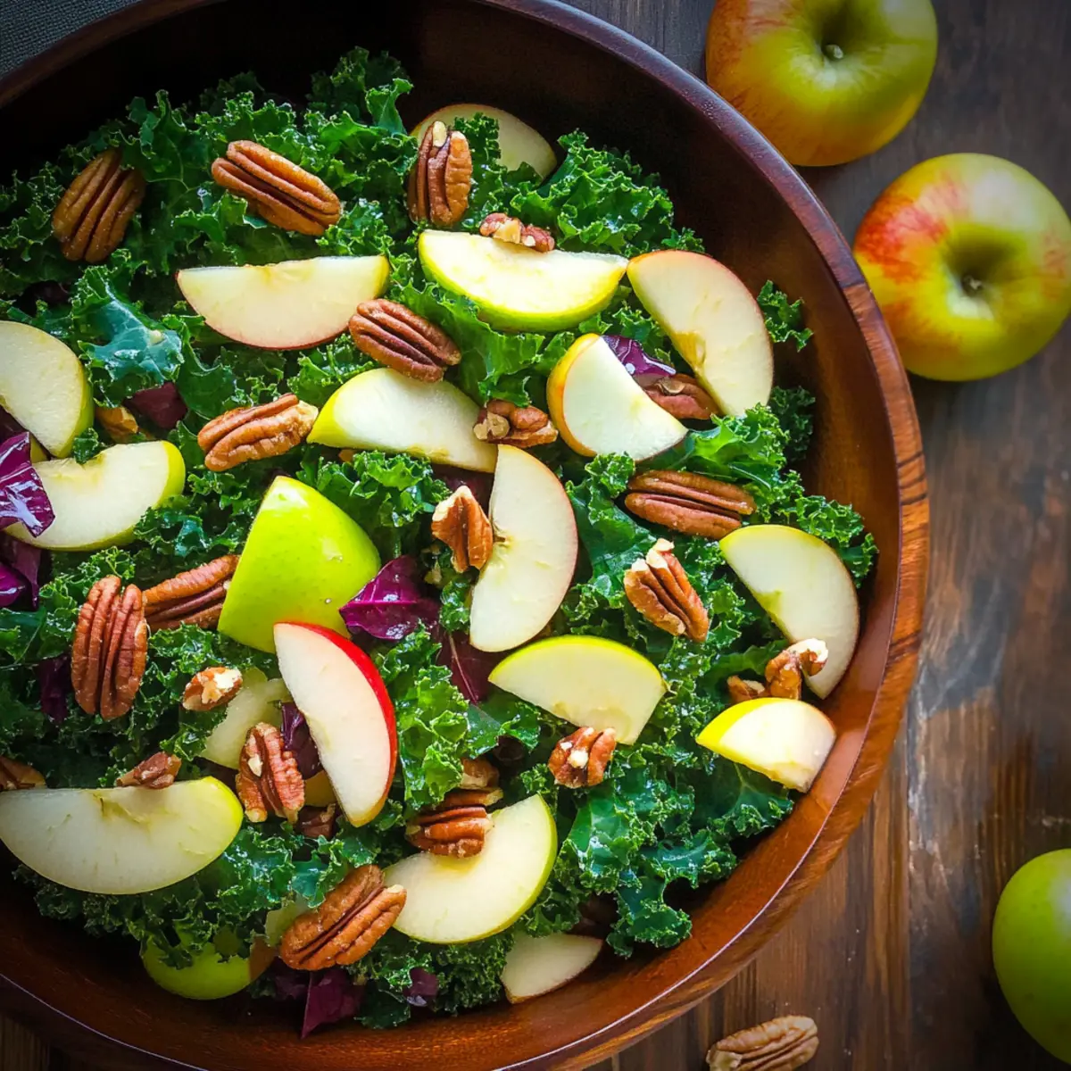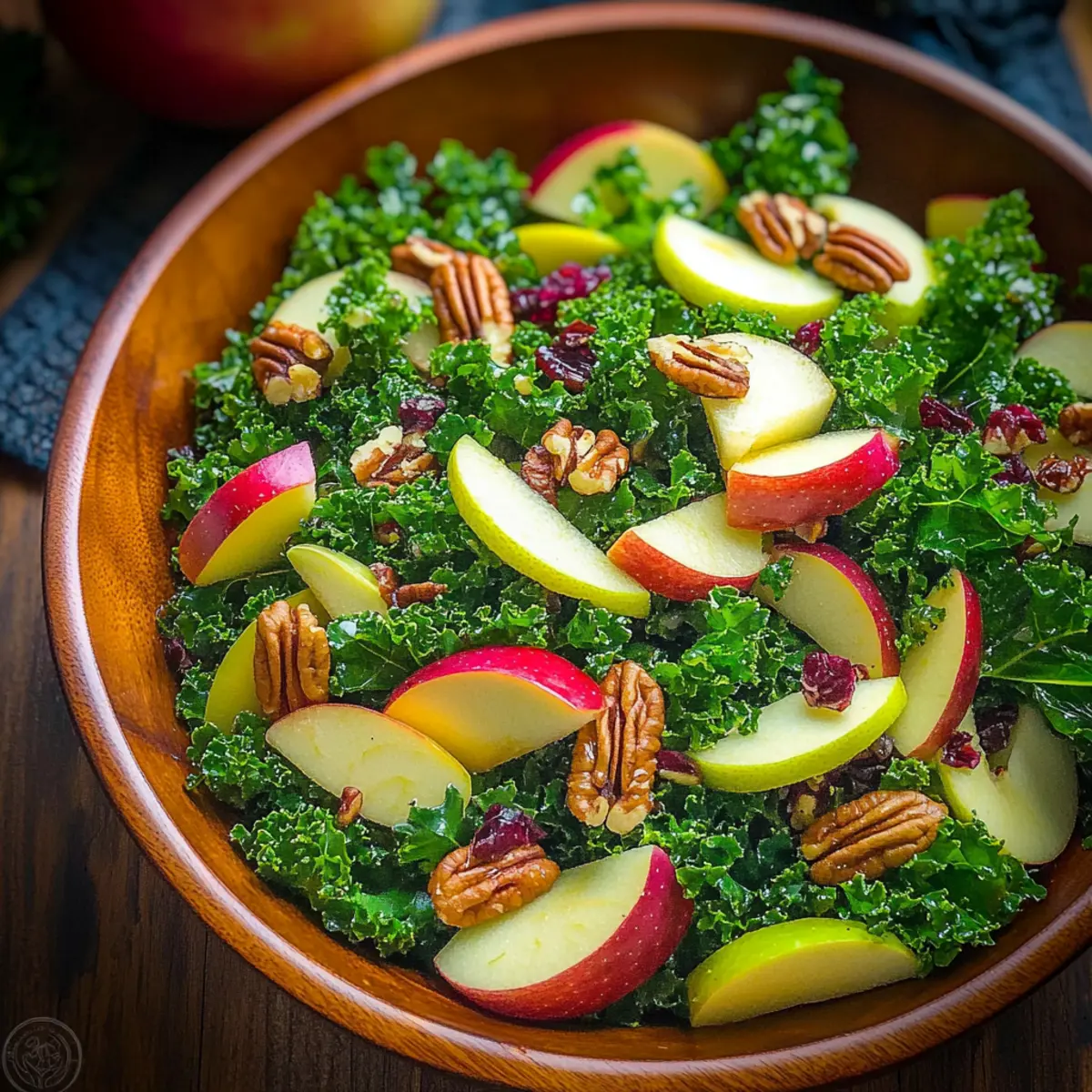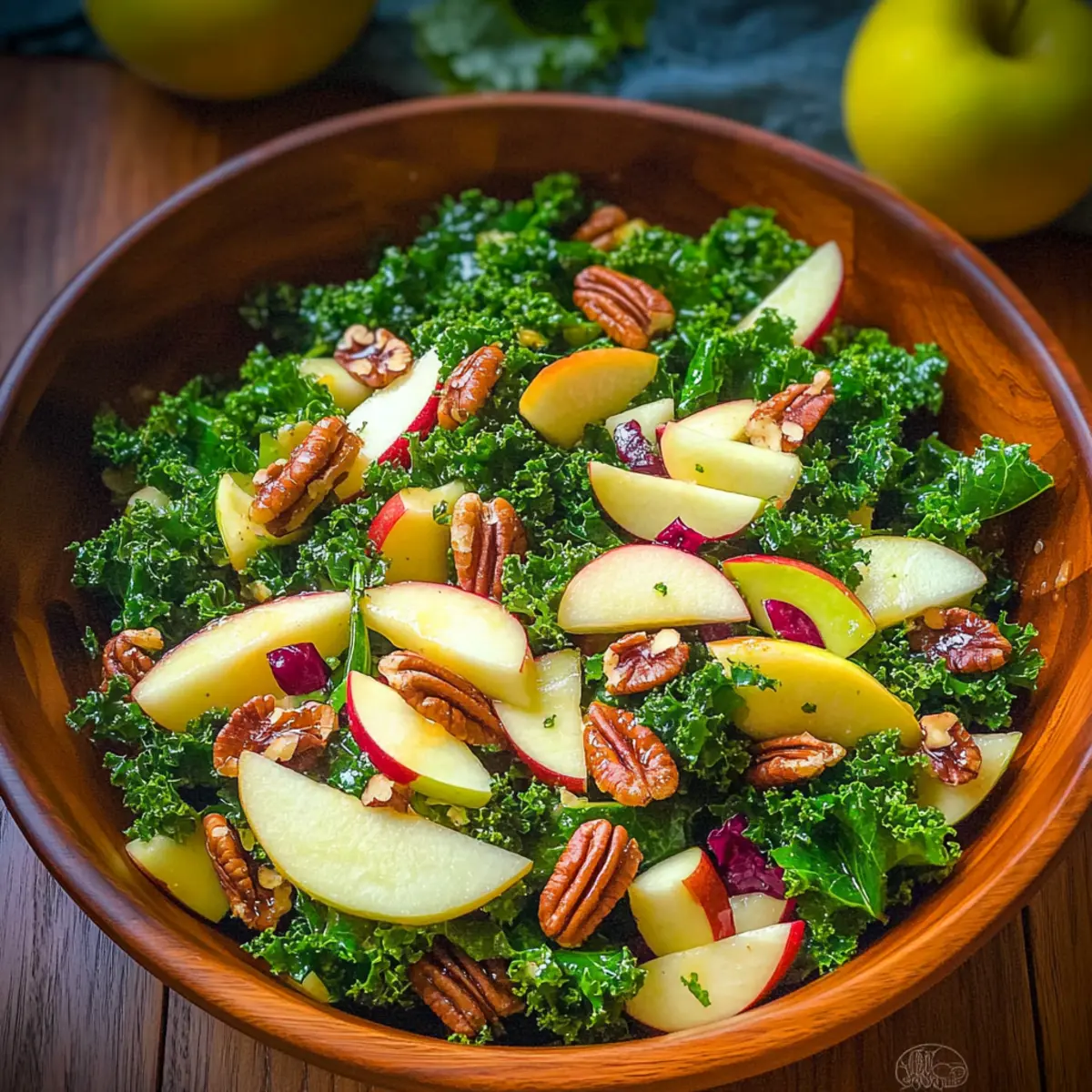 As the leaves turn golden and the air carries a hint of crispness, I can’t help but crave something fresh yet hearty for my meals. Enter my Autumn Kale Apple Salad with Honey Lemon Dressing — a delightful combination of crisp apples, chewy cranberries, and crunchy toasted pecans, all brought together with a zesty dressing that dances on your taste buds. This Kale Apple Salad recipe is not only a feast for the eyes but also a breeze to prepare, making it a perfect make-ahead option for busy days or autumn gatherings. Plus, it’s gluten-free and loaded with nutrients, so you can savor it guilt-free. Trust me, your family will be reaching for seconds! Ready to discover how to create this seasonal sensation? Why Is This Salad a Must-Try? Vibrant Flavors: This Kale Apple Salad bursts with sweet and tart notes from the apples and cranberries, perfectly balanced by a zesty honey-lemon dressing that elevates every bite. Quick Preparation: With easy-to-follow steps, you’ll have this beauty ready in under 20 minutes—ideal for anyone pressed for time! Make-Ahead Friendly: Prepare it a day in advance; the flavors deepen and create a delicious dish that’s perfect for meals or gatherings. Nutritious and Guilt-Free: Packed with vitamins A and C, healthy fats, and fiber, this salad is not only delicious but also good for you. Crowd-Pleasing Appeal: A fantastic addition to your fall dinner tables, it pairs well with roasted meats and soups, or even stands alone as a satisfying lunch. Kale Apple Salad Recipe Ingredients For the Dressing Fresh lemon juice – Provides acidity and brightness; use lime juice as a substitute for a different flavor. Extra virgin olive oil – Adds richness and a smooth texture; can be replaced with avocado oil for a different taste. Honey (or sugar) – Sweetens the dressing; maple syrup can be used as a vegan alternative. Salt – Enhances overall flavor; adjust to taste or omit for low-sodium diets. Black pepper – Adds mild, warming spice; white pepper can be used for a subtler flavor. For the Salad Kale (8 cups, well rinsed) – The base of the salad, providing nutrients and texture; substitute with baby kale or spinach for a milder flavor. Craisins (dried cranberries) – Adds sweetness and chewiness; can replace with raisins or dried cherries. Small red onion (thinly sliced) – Provides a sharp flavor profile; use green onions for a milder taste. Apple (crisp Fuji recommended) – Adds crunch and sweetness; any firm apple variety works well. Pear (firm) – Provides additional sweetness and a soft texture; substitute with additional apple or quince. Pecans (toasted on a dry skillet) – Adds crunch and a nutty flavor; walnuts or almonds can be used as alternatives. This Kale Apple Salad recipe is designed to be delightful and fresh, perfect for autumn gatherings or as a nutritious everyday meal! Step‑by‑Step Instructions for Kale Apple Salad Recipe Step 1: Prepare the Dressing Start by gathering a medium-sized measuring cup. Combine the fresh lemon juice, extra virgin olive oil, honey (or sugar), salt, and pepper in the cup. Whisk the ingredients together vigorously until the honey is fully dissolved, creating a smooth dressing with a bright, zesty aroma. Set it aside while you prepare the kale. Step 2: Prepare the Kale Take 8 cups of fresh kale and rinse it thoroughly under cold water to remove any dirt. Next, strip the leaves from the stems and chop them into bite-sized pieces. Using a salad spinner or a clean dish towel, dry the kale thoroughly to ensure that the dressing adheres well when tossed together. Step 3: Massage the Kale Place the prepared kale in a large mixing bowl. Add 1 cup of craisins to the bowl, then drizzle about half of the honey lemon dressing over the kale and cranberries. With clean hands, gently massage the kale for about 2-3 minutes until it begins to soften and wilt slightly—the color will brighten, and it will become tender yet still crisp. Cover the bowl with plastic wrap and refrigerate for at least 4 hours, or overnight to enhance the flavor. Step 4: Add Additional Ingredients When you’re ready to serve the Kale Apple Salad, remove it from the refrigerator. Sprinkle in the thinly sliced red onion, diced apple, and diced pear, along with the toasted pecans. Drizzle the remaining honey lemon dressing over the top. Gently toss everything together until well combined, ensuring that each ingredient is coated with dressing and ready to deliver a fresh burst of flavors. Kale Apple Salad Recipe Variations Feel free to explore these exciting variations to make your Kale Apple Salad even more delightful and tailored to your taste! Tropical Twist: Add diced pineapple or mango for a sweet, sunny flavor burst. The bright tropical fruit will transform your salad into a vacation for your taste buds! Nut-Free Option: Simply omit the nuts or swap them for seeds like pumpkin or sunflower for a satisfying crunch. This makes the salad accessible for nut allergies while still enjoyable. Protein Boost: Incorporate grilled chicken or tofu for a heartier dish. With the addition of protein, this kale salad becomes a complete meal that will leave you feeling full and satisfied! Cheesy Delight: Sprinkle in feta or goat cheese for a creamy, tangy flavor that complements the sweet fruits. The richness of cheese takes this salad to another level of indulgence! Spicy Kick: Add thinly sliced jalapeños or a sprinkle of red pepper flakes to turn up the heat. Just a hint of spice can elevate your kale salad from ordinary to extraordinary! Herb Fusion: Toss in fresh herbs like basil or mint for a refreshing twist. The aromatic notes will keep each bite lively and aromatic, reminding you of vibrant summer days. Seasonal Additions: Experiment with other seasonal fruits like pomegranate seeds or persimmons during autumn. These will bring a colorful and festive flair to your salad, making it irresistible to your guests. Vegan Dressing: For an entirely vegan