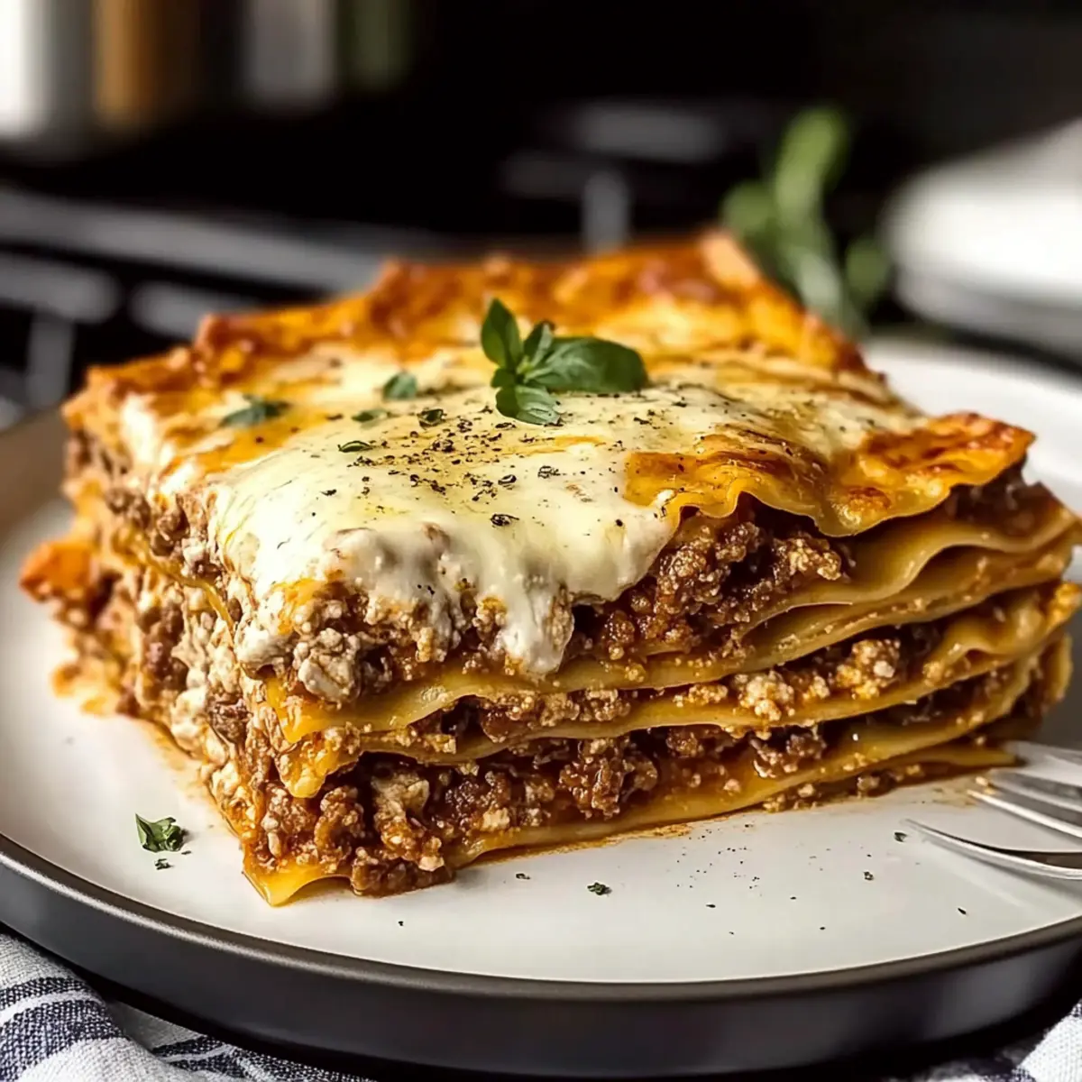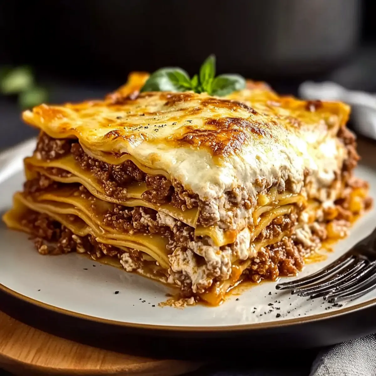 As I stirred the bubbling pot of savory Bolognese sauce, the kitchen filled with a warmth that felt like home. Lasagna Bolognese is the ultimate comfort food, a classic Italian dish that invites you to gather around the table and share moments with loved ones. This recipe beautifully showcases layers of tender pasta, rich meat sauce, and creamy béchamel, making it a crowd-pleaser for any occasion. Not only is it surprisingly easy to prepare, but it also makes an excellent make-ahead option for busy weeknights or festive gatherings. So grab your apron and prepare to create a hearty masterpiece that brings joy to every bite! Are you ready to dive into a world of rich flavors and comforting aromas? Why Is This Lasagna Bolognese a Must-Try? Comforting and satisfying, this Lasagna Bolognese is more than just a meal; it’s a delicious experience that brings warmth to your table. Layered goodness of pasta, meat, and béchamel creates a mouthwatering profile that’s hard to resist. Versatile options allow for tweaks, whether you’re embracing a vegetarian lifestyle or gluten-free needs. And with its make-ahead nature, it’s perfect for busy weeknights or gatherings. Plus, this dish pairs wonderfully with a crisp salad or garlic bread for a complete Italian feast. Treat yourself and your loved ones to a slice of joy; it’s a recipe that’ll keep them coming back for more! If you enjoy Italian cuisine, check out my Seafood Lasagna Shrimp for another crowd-pleaser! Lasagna Bolognese Ingredients • Get ready to make this comforting dish famous! For the Bolognese Sauce Ground Beef – The primary meat source that adds depth of flavor; consider using ground turkey for a lighter option. Ground Pork – Enhances the richness of the sauce; can be replaced with more ground beef or turkey if desired. Pancetta – Adds smokiness and depth; substitute with bacon if needed. Onion – Provides a fragrant base; ensure it’s finely minced for even cooking. Carrot – Introduces natural sweetness to balance acidity; fresh is best for maximum flavor. Celery – Contributes a subtle earthiness; make sure it’s finely chopped for texture. Garlic – Boosts overall flavor; fresh garlic is ideal, adjust according to your taste. Tomato Paste – Thickens and deepens the sauce color. Red Wine – Brings acidity and depth; substitute with beef broth for a non-alcoholic option. Crushed Tomatoes – The sauce’s base; opt for high-quality canned tomatoes for the best taste. Bay Leaves – Infuses aromatic flavors during cooking; don’t forget to remove them before serving. Salt & Pepper – Essential ingredients for seasoning the sauce. For the Lasagna Assembly Egg Lasagna Noodles – Key for layering; fresh noodles are preferred for a tender dish. Unsalted Butter – Foundation for the creamy béchamel sauce. All-Purpose Flour – Thickens the béchamel; feel free to use gluten-free flour as a substitute. Whole Milk – Creates a wonderfully creamy béchamel; almond milk is a great alternative for dairy-free versions. Nutmeg – Adds a traditionally warm depth to the béchamel sauce. Freshly Grated Parmesan – Essential for flavoring; reserve some for layering. Fresh Mozzarella – Brings creaminess and an excellent melt; dice for even distribution. Step‑by‑Step Instructions for Lasagna Bolognese Step 1: Prepare Bolognese Sauce In a large pot, cook diced pancetta over medium heat until crispy, about 5 minutes. Add minced onion, carrot, and celery, sautéing until softened, around 7 minutes. Incorporate the ground beef and pork, browning for about 10 minutes. Stir in tomato paste, red wine, and crushed tomatoes, along with bay leaves, salt, and pepper. Bring to a simmer, then cover and cook on low for 2.5 to 3 hours, stirring occasionally until thickened. Step 2: Cook Lasagna Noodles In a large pot, bring salted water to a rolling boil. Carefully add the egg lasagna noodles, cooking for about 4 minutes until al dente. Drain the noodles and immediately toss with a drizzle of olive oil to prevent sticking. Set aside the cooked noodles while you prepare the béchamel sauce, ensuring they don’t clump together. Step 3: Make Béchamel Sauce In a saucepan over medium heat, melt 4 tablespoons of unsalted butter. Once melted, whisk in 4 tablespoons of all-purpose flour and cook for 2 to 3 minutes until golden and bubbly. Gradually add 4 cups of warmed whole milk, whisking continuously until thickened, about 5-7 minutes. Integrate a pinch of nutmeg and half a cup of freshly grated Parmesan, stirring until smooth and creamy. Step 4: Assemble Lasagna Preheat your oven to 375°F (190°C). Grease a 9×13-inch baking dish with cooking spray or butter. Start layering by spreading a thin layer of béchamel sauce on the bottom. Add a layer of noodles, followed by a generous spread of Bolognese sauce, more béchamel, and a sprinkle of mozzarella and Parmesan. Repeat the layers, finishing with béchamel and a final topping of cheese on the top layer. Step 5: Bake Cover the assembled Lasagna Bolognese with aluminum foil and place it in the preheated oven. Bake for 1 hour, then carefully remove the foil and bake for an additional 15 minutes until the cheese is golden and bubbling. Allow the lasagna to rest for 20-30 minutes before slicing, ensuring the layers hold beautifully when served. Lasagna Bolognese Itself: Variations & Substitutions Feel free to explore these delightful twists on Lasagna Bolognese that will elevate your dish and cater to your taste. Vegetarian: Swap out the meat for a mixture of sautéed mushrooms and lentils for a hearty, plant-based option. The earthy flavors will keep the comfort intact! Gluten-Free: Use gluten-free lasagna noodles and flour to accommodate dietary needs. You won’t sacrifice flavor here! Dairy-Free: Replace cow’s milk in the béchamel with almond milk and use cashew cream instead of cheese. A creamy texture with a nutty twist awaits you! Spicy: Add a dash of crushed red pepper f