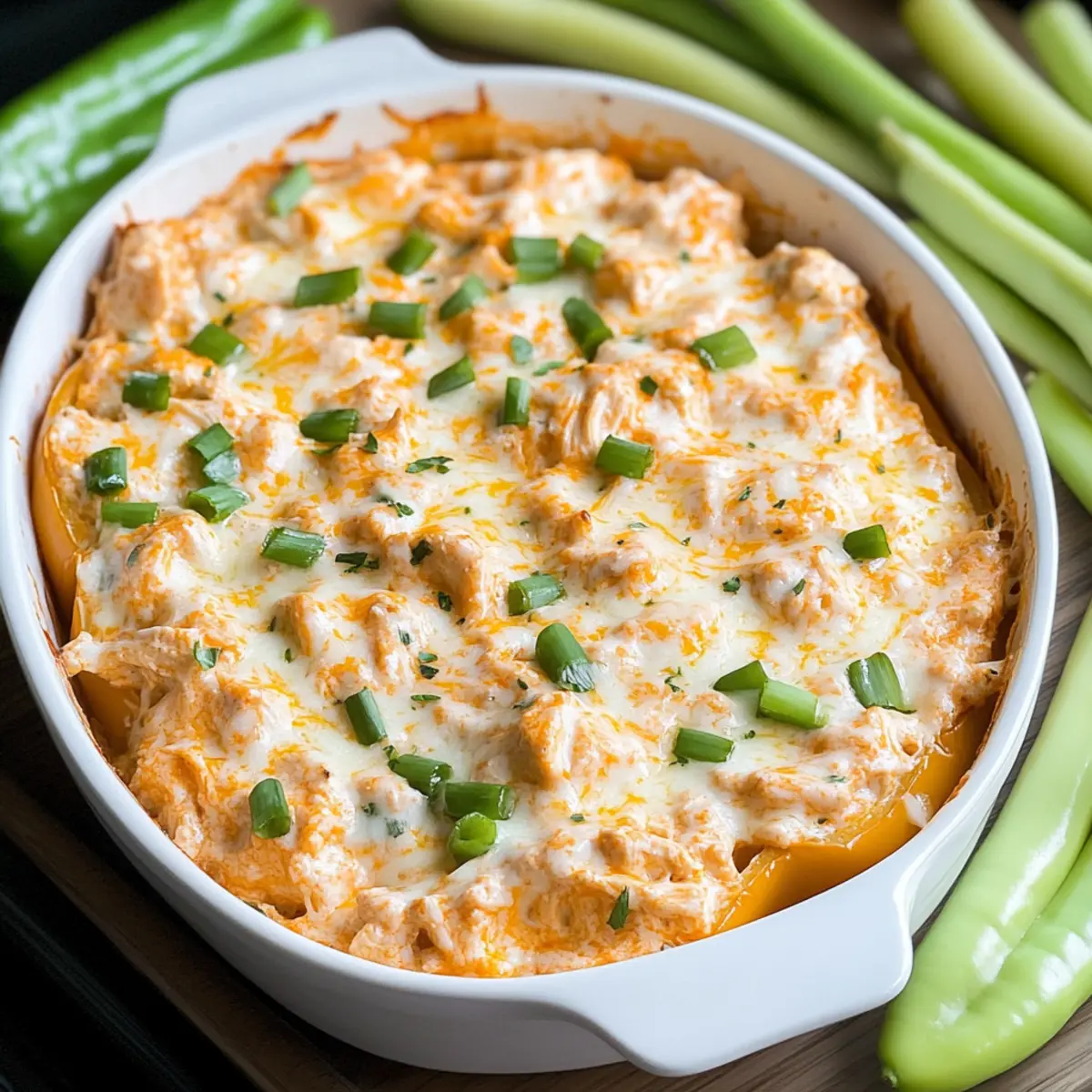 As I rummaged through my fridge after last weekend’s party, the remains of a spicy buffalo chicken dip caught my eye, tempting me with its bold flavors. It got me thinking: what if I could transform this leftover buffalo chicken dip into exciting, new meals? I learned that it’s not just a dip; it can be the star of a variety of quick, satisfying recipes that are perfect for any occasion. Whether it’s a hearty stuffed pepper or a crispy sheet pan nacho feast, every dish promises to deliver robust taste with minimal effort. Plus, they’re gluten-free and low-carb, making them ideal for those who crave flavor without the guilt. Ready to dive into these culinary delights? Let’s turn those leftovers into something extraordinary together! What to make with leftover buffalo chicken dip? Transformative, Wholesome Meals: Your leftover buffalo chicken dip is not just a party leftover; it’s a versatile ingredient that brings excitement to your meals! Quick and Easy: These recipes are designed for those busy weeknights, requiring minimal prep while delivering maximum flavor. Nutrient-rich Options: From Cheesy Buffalo Chicken Spaghetti Squash to Buffalo Chicken Stuffed Sweet Potatoes, each dish is gluten-free and low-carb, perfect for health-conscious eaters. Crowd-Pleasing Flavor: Impress your family and friends with delicious creations like Buffalo Chicken Taco Salad, ensuring there’s something for everyone at the table. Comfort Food Reinvented: Enjoy the comforting, spicy goodness in unique forms – think Sheet Pan Nachos or hearty stuffed peppers that are sure to become new favorites! Turn your dip leftovers into a culinary adventure that everyone will love! Leftover Buffalo Chicken Dip Ingredients Transform your leftover buffalo chicken dip into incredible meals! For the Spaghetti Squash • Spaghetti squash – a low-carb base that adds a nutritious twist to your dish. For the Stuffed Peppers • Bell peppers – these serve as colorful, hearty vessels for your flavorful filling. • Cheese – enhances creaminess and adds a delightful gooey texture on top. For the Taco Salad • Lettuce – provides a fresh base that complements the richness of the buffalo chicken dip. • Tomatoes – add a burst of flavor while balancing the spiciness of the dip. • Optional toppings – consider adding avocado or crunchy tortilla strips for extra texture. For the Nachos • Tortilla chips – create a crispy layer to hold all the savory goodness of your dip. • Additional cheese – a must-have for melty, delicious nachos. For the Stuffed Sweet Potatoes • Sweet potatoes – nutrient-dense and naturally sweet, they complement the spiciness beautifully. • Optional toppings – coleslaw or jalapeños add a pop of freshness or heat, enhancing the overall experience. For the Sandwiches • Bread – your choice of bread makes it the perfect canvas for a satisfying sandwich or panini. • Fresh veggies – layer in extra crunch and nutrition to elevate your sandwich. Your leftover buffalo chicken dip is the star of these delightful recipes, ensuring every bite is packed with flavor! Step‑by‑Step Instructions for Transforming Leftover Buffalo Chicken Dip Step 1: Roast the Spaghetti Squash Preheat your oven to 400°F (200°C). Carefully slice the spaghetti squash in half lengthwise and scoop out the seeds. Drizzle with olive oil and sprinkle with salt before placing the halves cut-side down on a baking sheet. Roast for 40 minutes or until the flesh is fork-tender and easily shreds into strands, creating a delightful base for your Cheesy Buffalo Chicken Spaghetti Squash. Step 2: Prepare the Stuffed Peppers While the squash is roasting, preheat your oven to 350°F (175°C). Cut the tops off the bell peppers and remove seeds. In a mixing bowl, combine your leftover buffalo chicken dip with some shredded cheese and mix until well combined. Fill each pepper generously with this mixture and place them upright in a baking dish. Bake for 25-30 minutes, or until the peppers are tender and the cheese is bubbly and golden on top. Step 3: Assemble the Taco Salad In a large serving bowl, add a bed of fresh lettuce and chopped tomatoes as your base. Gently fold in the leftover buffalo chicken dip to distribute the flavors throughout. For added crunch, top with optional ingredients like avocado, black beans, or crispy tortilla strips. Mix well and serve immediately for a refreshing and satisfying Buffalo Chicken Taco Salad. Step 4: Create the Sheet Pan Nachos Preheat your oven to 400°F (200°C). Spread a generous layer of tortilla chips across a baking sheet, ensuring they are evenly spaced. Spoon dollops of your leftover buffalo chicken dip over the chips and sprinkle with additional cheese. Bake for 5-10 minutes, keeping an eye out until the cheese is melted and bubbly. Once done, finish with fresh toppings like diced tomatoes or green onions before serving. Step 5: Prepare the Stuffed Sweet Potatoes To start, bake or microwave whole sweet potatoes until they are fork-tender, about 45 minutes for oven baking or 5-8 minutes in the microwave. After they cool slightly, slice them open and fluff the insides with a fork. Fill each potato generously with your leftover buffalo chicken dip, top with crisp coleslaw or sliced jalapeños, and serve for a nutritious meal. Step 6: Make the Sandwiches Toast your favorite bread until golden brown. Spread a thick layer of leftover buffalo chicken dip on one slice, and layer with fresh veggies like lettuce, tomatoes, and cucumbers for crunch. Top with another slice of bread and grill the sandwich in a pan over medium heat until the bread is crispy and the inside is heated through, creating a warm and delicious buffalo chicken dip sandwich to savor. Make Ahead Options These recipes using leftover buffalo chicken dip are perfect for busy weeknights and can significantly streamline your meal prep! You can prepare the stuffed peppers and taco salad up to 24 hours in advance