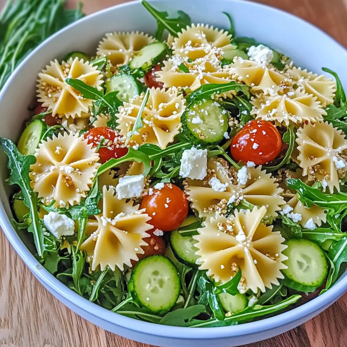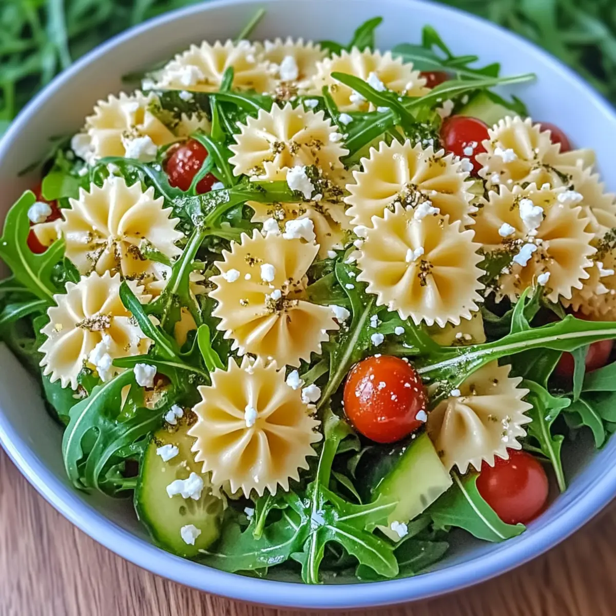As I was tossing together the ingredients, the vibrant colors of the Lemon Arugula Pasta Salad practically danced in the bowl. This salad is a delightful balance of zesty lemon and peppery arugula that transforms a simple meal into a refreshing experience. Ready in under 30 minutes, it’s perfect for those hectic weekdays or lazy weekends when you crave something light yet satisfying. Plus, it’s a healthy make-ahead option that keeps beautifully in the fridge, making it an ideal companion for picnics or barbecues. Imagine the satisfaction of serving a dish that not only looks stunning but also tastes amazing—your taste buds are in for a treat! Are you curious about how to create this deliciously colorful dish? Let’s dive into the recipe! Why is this pasta salad a must-try? Quick and Easy: This Lemon Arugula Pasta Salad comes together in under 30 minutes, making it a go-to option for busy weeknights. Fresh and Vibrant: Each ingredient bursts with flavor, bringing together zesty lemon and peppery arugula for a delightful balance. Versatile Serving Options: Enjoy it as a light main dish or a side at your next barbecue, ensuring everyone leaves satisfied. Make-Ahead Friendly: Prepare it in advance and let the flavors meld for an even tastier result. Perfect for meal prepping! Health-Conscious Choice: With its nutrient-packed ingredients, you can indulge guilt-free, knowing you’re treating your body well. Want more refreshing ideas? Check out the Crab Salad Refreshing for another light meal! Lemon Arugula Pasta Salad Ingredients • Get ready to create a refreshing dish! For the Salad Whole Wheat Pasta – Provides hearty structure; feel free to switch to gluten-free pasta for a lighter option. Fresh Arugula – Adds a peppery kick; spinach or mixed greens are delightful substitutes. Cherry Tomatoes – Bursting with sweetness; try any small and ripe tomato for similar taste. Cucumber – Brings a crisp, refreshing crunch; zucchini works nicely if you prefer a swap. Red Onion – Offers a sharpness that elevates flavors; substitute with green onions for milder notes. Feta Cheese – Provides creaminess and tang; goat cheese can add a different twist to your salad. For the Dressing Extra Virgin Olive Oil – Forms the rich base of the dressing; you can use avocado oil as an alternative. Lemon Juice – Brightens up the dish with a zesty punch; lime juice is an excellent substitute if needed. Dijon Mustard – Adds a touch of tang; yellow mustard can bring a different flair to the dressing. Salt and Pepper – Essential seasonings to enhance flavor; adjust to your personal preference. Red Pepper Flakes (optional) – Sprinkle for a hint of heat; skip if you prefer a milder taste. Each of these ingredients in the Lemon Arugula Pasta Salad comes together beautifully, ensuring a light meal that’s quick and easy to prepare! Step‑by‑Step Instructions for Lemon Arugula Pasta Salad Step 1: Cook the Pasta Start by bringing a large pot of salted water to a rolling boil. Once it’s bubbling, add the whole wheat pasta and cook for 8-10 minutes until al dente, stirring occasionally. Drain the pasta in a colander and rinse it under cold water for about 1-2 minutes to cool it down and stop the cooking process. Step 2: Mix Ingredients In a spacious bowl, combine the cooled pasta with fresh arugula, halved cherry tomatoes, diced cucumber, thinly sliced red onion, and crumbled feta cheese. Toss everything gently to blend the flavors, ensuring the vibrant colors of your Lemon Arugula Pasta Salad are well-distributed throughout the mix and creating an inviting presentation. Step 3: Prepare Dressing In a small mixing bowl, whisk together extra virgin olive oil, freshly squeezed lemon juice, Dijon mustard, salt, pepper, and optional red pepper flakes. Aim for a smooth consistency and taste your dressing, adjusting seasoning as needed. This zesty dressing will enhance the flavors of your Lemon Arugula Pasta Salad beautifully. Step 4: Combine Salad Pour the freshly prepared dressing over the pasta salad mixture. Using tongs, gently toss the salad together, being careful not to bruise the arugula. Each ingredient should be evenly coated in the dressing, making this Lemon Arugula Pasta Salad enticing and flavorful. Step 5: Chill Cover the bowl with plastic wrap or a lid and refrigerate the salad for at least 30 minutes. This chilling time allows the flavors to meld together beautifully, resulting in a more refreshing Lemon Arugula Pasta Salad that’s bursting with flavor when served. Step 6: Serve Before serving, toss the salad lightly once more to redistribute any settled dressing. Serve it chilled or at room temperature, garnished with additional feta cheese or fresh lemon slices for an extra pop. Your Lemon Arugula Pasta Salad is now ready for everyone to enjoy! How to Store and Freeze Lemon Arugula Pasta Salad Fridge: Store the Lemon Arugula Pasta Salad in an airtight container in the refrigerator for up to 3 days. Give it a quick toss before serving to mix the dressing again. Make-Ahead: This salad is perfect for meal prep—make it a day in advance to allow the flavors to meld, ensuring a tastier result for your next meal. Freezer: While the salad is best fresh, if you need to freeze it, consider omitting the arugula and dressing before freezing. Store components separately for up to 1 month; add arugula and dressing when ready to serve. Reheating: If you prefer to enjoy it warm, heat the pasta separately and mix with fresh ingredients before serving. Enjoy the vibrant flavors even after storage! Expert Tips for Lemon Arugula Pasta Salad Chill for Flavor: Allow the salad to sit in the fridge for a few hours or overnight. Chilling enhances the flavors and makes the dish even more refreshing. Avoid Over-Tossing: Be gentle when mixing the salad. Over-tossing can bruise the arugula, causing it to wilt and lose its vibrant color. Quality Olive Oil Matters: Use high-quality extra virgin olive oil for t