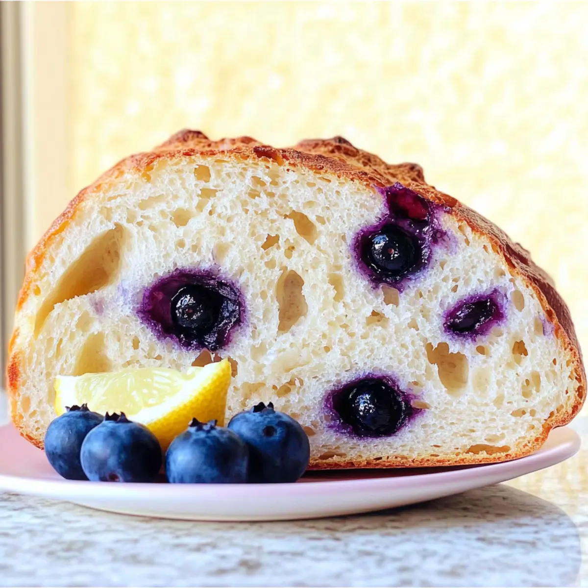 The aroma of fresh-baked bread wafting through my kitchen always sparks joy, but when it’s infused with vibrant lemon and juicy blueberries, that’s a whole new level of bliss! My Lemon Blueberry Sourdough Bread showcases the bright flavors of spring, delivering a light, fluffy loaf with a crispy crust that’s perfect at breakfast or as an invigorating afternoon snack. With a simple preparation that fits seamlessly into your busy day, this recipe not only tantalizes your taste buds but also transports you to a sunny summer afternoon with every slice. Plus, it’s a wonderful choice for impressing friends and family alike! Are you ready to bring a touch of sunshine into your kitchen? Why is this bread so special? Vibrant flavors: The tangy lemon and sweet blueberries create a refreshing taste that perfectly captures the essence of spring. Simple process: With straightforward steps, you can easily make this bread at home, whether you’re an experienced chef or a baking novice. Fluffy texture: The combination of crispy crust and soft crumb makes each slice a delightful experience, ideal for breakfast or a tasty snack. Versatile enjoyment: It pairs wonderfully with butter, cream cheese, or even a dollop of lemon curd, making every bite a unique delight. Impressive outcome: This Lemon Blueberry Sourdough Bread is sure to wow your guests and family, earning you accolades as a home baker, just like the flavors in my Lemon Chicken Orzo dish. Lemon Blueberry Sourdough Bread Ingredients For the Dough • 330 grams water – Room temperature water is crucial for activating your yeast and ensuring the dough hydrates properly. • 20 grams lemon juice – Fresh lemon juice adds a vibrant tang that enhances the overall flavor of the Lemon Blueberry Sourdough Bread. • 50 grams sourdough starter – Ensure your starter is active and bubbly for best rising results – it’s the magic behind the sourdough texture! • 500 grams bread flour – This high-gluten flour gives structure and chewiness, making your bread irresistibly delicious. • 10 grams salt – Essential for flavor and controlling yeast activity; don’t skip this ingredient for the best bread structure. • 50 grams sugar – Adds a touch of sweetness to balance the tartness of the lemon and blueberries; can be replaced with honey or maple syrup if desired. • 1 tablespoon lemon zest – Using zest from organic lemons intensifies the lemon flavor without the pesticides. • 200 grams blueberries – Fresh blueberries bring natural moisture and sweetness; if using frozen, thaw and drain them for best results. Optional Add-ins • Lemon curd – A delightful addition for an extra zesty burst; just remember to adjust your baking time by an additional 5-10 minutes for moisture. • Poppy seeds – Sprinkle some into the dough for added crunch and flavor that beautifully complements the lemon and blueberries. Step‑by‑Step Instructions for Lemon Blueberry Sourdough Bread Step 1: Prep Dough In a large bowl, combine 330 grams of room temperature water with 20 grams of fresh lemon juice. Gently stir in 50 grams of your bubbly sourdough starter until fully combined, creating a lovely, frothy mixture. This initial step is crucial as it activates the starter and begins the process of making your Lemon Blueberry Sourdough Bread. Step 2: Combine Dry Ingredients In a separate bowl, rub 1 tablespoon of lemon zest into 50 grams of sugar until fragrant. Then, add 500 grams of bread flour and 10 grams of salt to the bowl, whisking until blended. The sugar and zest will infuse the flour with a refreshing citrus aroma that will elevate the flavor profile of your sourdough bread. Step 3: Mix and Autolyse Incorporate the dry mixture into the wet mixture, stirring gently until no dry flour remains. This will create a shaggy dough. Cover the bowl with a damp cloth and let the dough rest for 30 minutes. This autolyse phase allows the flour to hydrate fully and begins gluten development, essential for that chewy texture in your Lemon Blueberry Sourdough Bread. Step 4: Stretch and Fold After the 30-minute rest, perform a series of stretch and folds right in the bowl. Grab one edge of the dough, stretch it up, and fold it over itself. Turn the bowl 90 degrees and repeat the process until the dough feels stronger, about 4 times. Let it rest for another 30 minutes before gently incorporating 200 grams of blueberries into the dough. Step 5: Bulk Fermentation Cover the bowl with plastic wrap or a damp kitchen towel and let the dough rise at room temperature, ideally around 75°F, for 10-14 hours. The dough should expand to about 75% rise, with bubbles forming on the surface. This slow fermentation enhances the flavors in your Lemon Blueberry Sourdough Bread. Step 6: Shape Dough Once the dough has risen, turn it onto a floured surface. Gently shape it into a tight ball, being careful to retain air bubbles for that airy crumb. Transfer the shaped dough into a floured banneton, seam side up, allowing it to prepare for the next proofing stage. This careful shaping is key to achieving a beautiful rise and structure in the final loaf. Step 7: Cold Proof Place the banneton with the shaped dough in the refrigerator and allow it to cold proof for 8 hours or up to 2 days. This extended time enhances the flavor and texture of your Lemon Blueberry Sourdough Bread, giving it an artisan quality that will impress any guest. Step 8: Preheat Oven About 30 minutes before baking, begin preheating your Dutch oven to 450°F. This step ensures that the pot is hot enough to create steam, resulting in a crispy crust and perfect rise. Preheating is essential for achieving the ideal baking environment for your delicious sourdough. Step 9: Bake Carefully transfer the dough onto a sheet of parchment paper. Score the top with a sharp knife to encourage even rising. Place the loaf into the hot Dutch oven and cover it with the lid. Bake for 25 minutes, then remove the lid and bake for an a