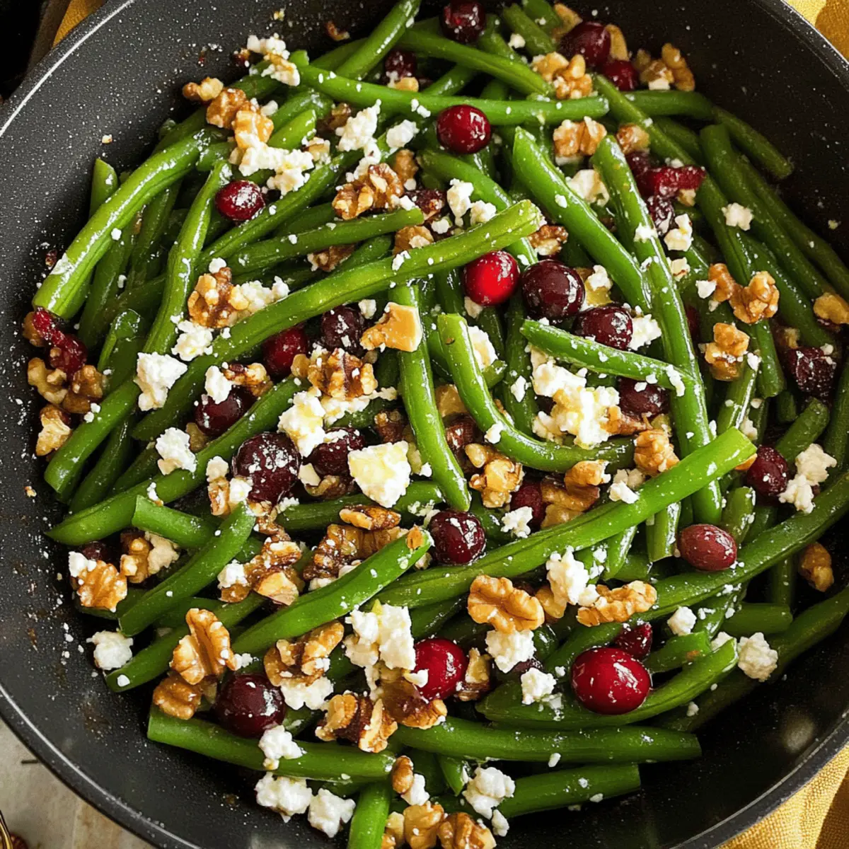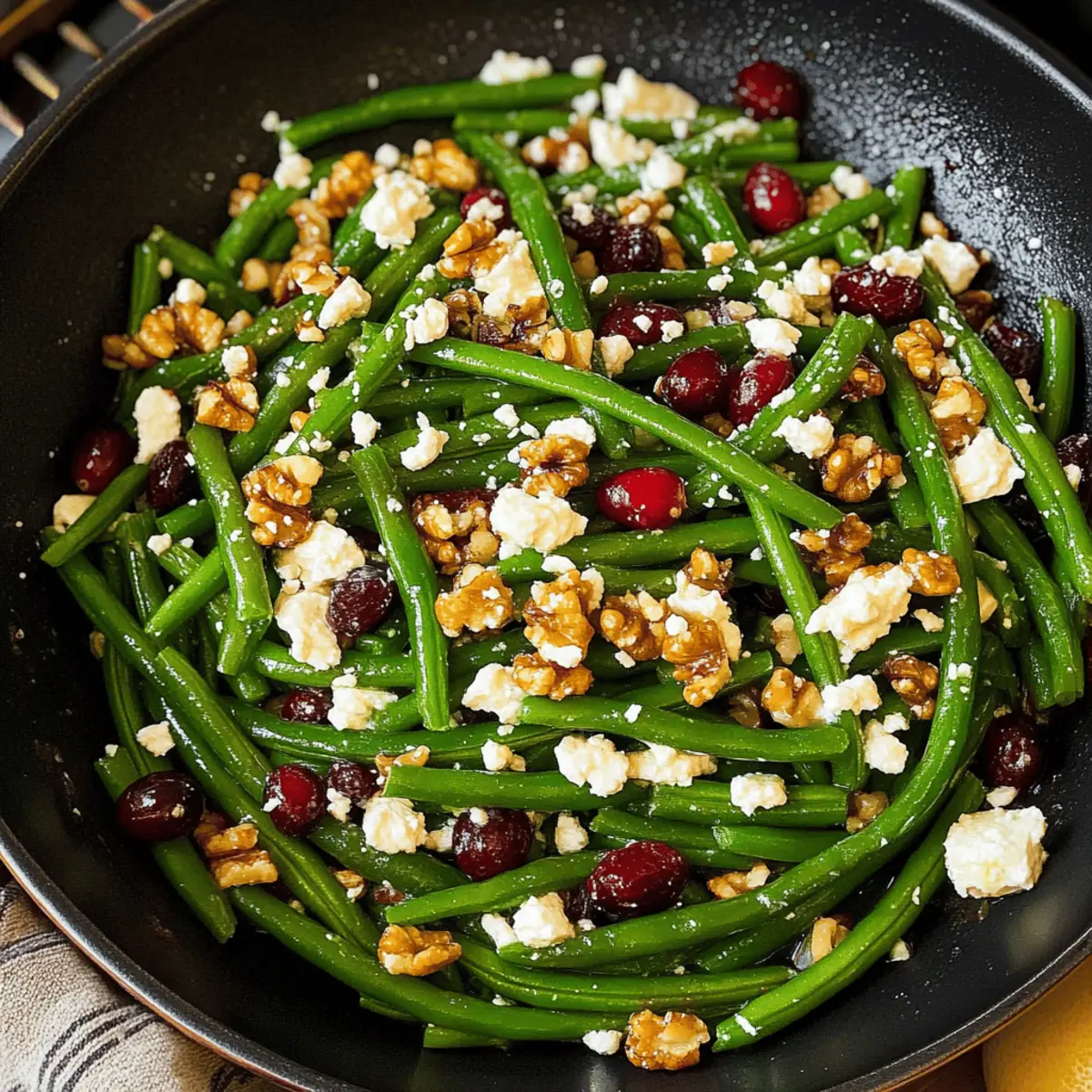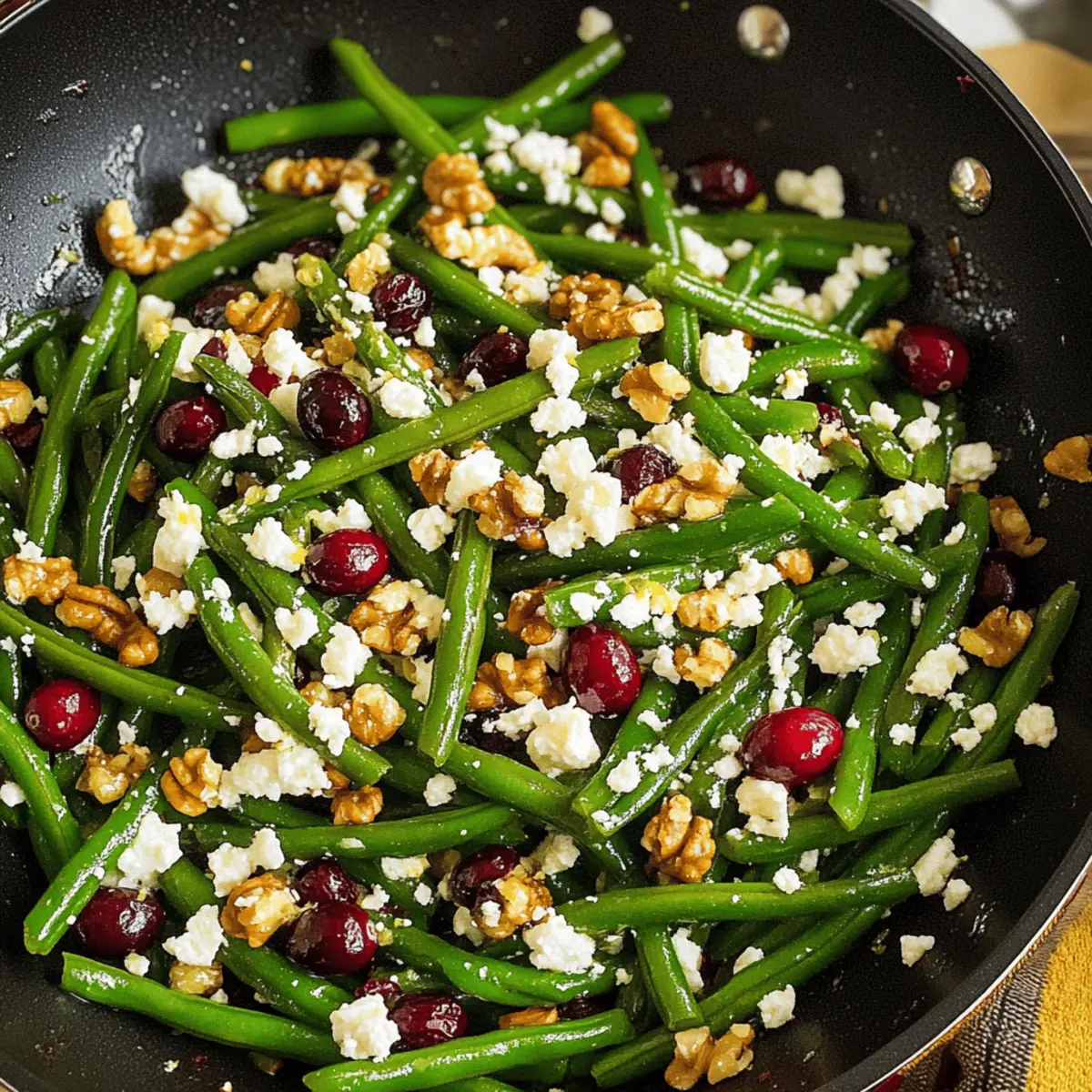 As I stood in the kitchen, the sizzle of melting butter wafted through the air, instantly lifting my spirits. It was the perfect time to whip up a batch of Lemon Butter Green Beans with Cranberries, Walnuts, and Feta—a side dish that’s quickly become a favorite in my home. This delightful recipe combines tender-crisp green beans with the sweetness of dried cranberries, the crunch of toasted walnuts, and the tanginess of feta cheese, transforming a simple vegetable into a vibrant feast for the eyes and palate. It’s not only a quick prep that fits easily into busy weeknights but also a stunning centerpiece for any festive gathering. Are you ready to elevate your holiday table and impress your loved ones? Let’s dive into making this mouthwatering dish! Why Choose Lemon Butter Green Beans? Bright, Vibrant Appeal: This dish dazzles with its colorful blend of green beans, cranberries, and feta, making it a feast for the eyes. Quick and Easy: Whipping up Lemon Butter Green Beans is a breeze, taking only about 15 minutes, perfect for busy weeknights or unexpected guests. Flavor Explosion: The tangy lemon contrasts beautifully with sugary cranberries and rich feta, creating a taste that will have everyone coming back for seconds. Versatile Side Dish: Complement your favorite roasted meats or even pasta dishes like Lemon Chicken Orzo for a delightful dining experience. Healthy and Tasty: Packed with vitamins, this dish showcases nutritious ingredients without compromising on flavor, making it a guilt-free choice. Lemon Butter Green Beans Ingredients For the Green Beans • Green Beans – Fresh and tender-crisp, ideal for a vibrant dish. • Butter – Adds rich flavor; substitute olive oil for a dairy-free option. • Minced Garlic – Aromatic base for sautéing; fresh garlic ensures the best flavor. For the Toppings • Walnuts – Crunchy and nutty; toast them for enhanced flavor and texture. • Dried Cranberries – Sweet and chewy, balancing the savory green beans; feel free to use dried cherries as a substitute. • Feta Cheese – Creamy and tangy; crumbled for easy mixing, or try goat cheese for a twist. For Flavor Enhancements • Lemon Juice – Brightens the dish; freshly squeezed is recommended for optimal taste. • Lemon Zest – Adds extra lemon flavor and aroma; use freshly grated for the best results. • Salt – Essential for enhancing flavors; adjust to taste, especially considering the feta’s saltiness. Step‑by‑Step Instructions for Lemon Butter Green Beans with Cranberries Walnuts and Feta Step 1: Boil the Green Beans Bring a large pot of salted water to a rolling boil over high heat. Once boiling, add the fresh green beans and cook for 3-5 minutes until they are tender-crisp—they should be bright green and still slightly firm. Carefully drain the beans in a colander and immediately rinse them under cold water to stop the cooking process and retain their vibrant color. Step 2: Sauté the Garlic In a large skillet, melt 2 tablespoons of butter over medium heat until it begins to foam. Add 2 cloves of minced garlic and sauté for about 1 minute or until fragrant, stirring continuously to prevent burning. The garlic should turn a light golden color and release a savory aroma, setting a delicious base for your Lemon Butter Green Beans with Cranberries Walnuts and Feta. Step 3: Cook the Green Beans in the Skillet Add the drained green beans to the skillet, tossing them gently to coat them in the garlic butter. Sauté the beans for approximately 1 minute until they are heated through and well combined with the garlic. At this point, they should be tender yet still maintain a slight crunch, inviting you to add the delightful toppings next. Step 4: Add the Toppings Stir in the toasted walnuts and dried cranberries, followed by the juice of half a lemon, seasoning with salt to taste. Continue to sauté for another 1-2 minutes, allowing the flavors to meld. The nuts should provide a satisfying crunch, while the cranberries will soften slightly and add a sweet touch to the green beans. Step 5: Finish with Feta and Lemon Zest Remove the skillet from heat and sprinkle the crumbled feta cheese and freshly grated lemon zest over the warm mixture. Gently toss everything together until evenly distributed. The creamy feta will melt slightly, blending beautifully with the vibrant Lemon Butter Green Beans with Cranberries Walnuts and Feta, creating a tantalizing side dish that’s ready to serve warm. How to Store and Freeze Lemon Butter Green Beans Fridge: Keep leftover Lemon Butter Green Beans in an airtight container for up to 3 days. This will help retain their vibrant color and fresh flavors. Freezer: For longer storage, freeze the green beans without the toppings. Place in a freezer-safe bag and enjoy within 2 months for optimal taste. Reheating: When ready to enjoy, thaw in the fridge overnight and reheat gently on the stove over low heat to avoid overcooking the beans. Freshness Tip: This dish is best enjoyed fresh, but proper storage allows you to savor these flavorful green beans later! Expert Tips for Lemon Butter Green Beans • Color Preservation: Rinse immediately: Rinsing green beans under cold water after boiling helps retain their vibrant green color and tender-crisp texture. • Non-Stick Advantage: Use the right skillet: A non-stick skillet is ideal for this recipe, ensuring easy release and cleanup while sautéing the green beans. • Feta Adjustment: Salt awareness: Since feta cheese can vary in saltiness, adjust the amount of added salt according to your taste preference to avoid overpowering the dish. • Toasting Walnuts: Enhance flavor: Toasting walnuts in advance brings out their nutty flavor and adds a satisfying crunch to your Lemon Butter Green Beans with Cranberries Walnuts and Feta. • Fresh Ingredients: Choose wisely: Always use fresh garlic and lemon juice for the best flavor infusion; they make a world of difference in your dish’s taste. Lem