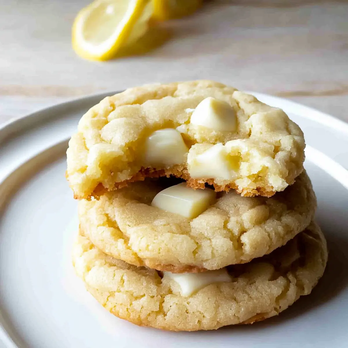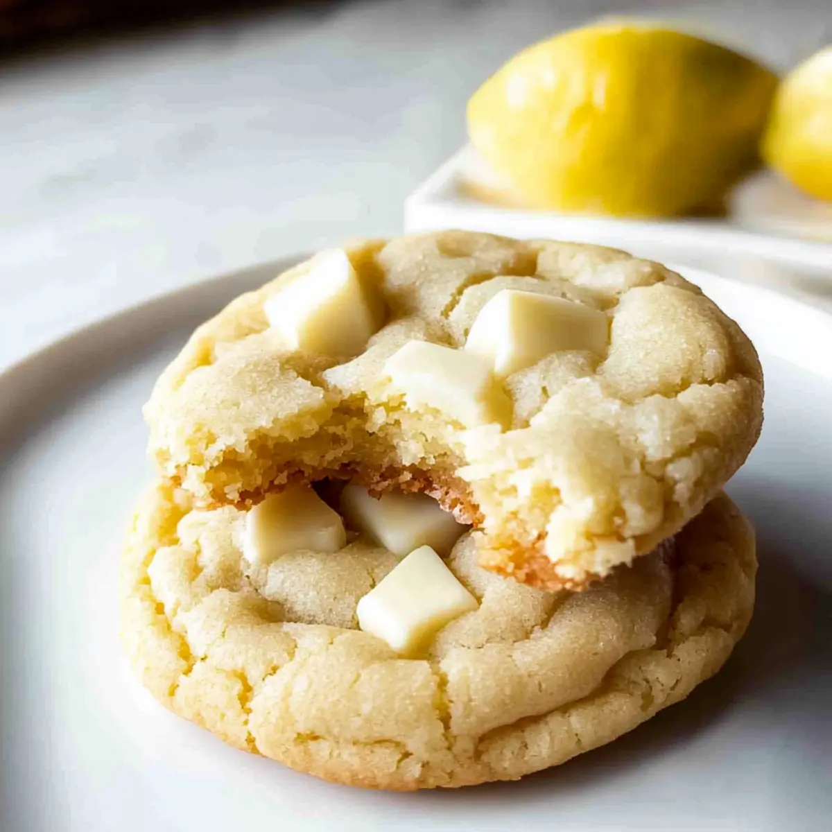 As I walked through the vibrant farmers’ market last weekend, the scent of fresh lemons caught my attention. Those bright, zesty orbs whispered promises of sunshine and sweetness, inspiring my latest creation: Lemon White Chocolate Chip Cookies. These delightful cookies are not just any treat; they’re a homemade gem that’s a perfect blend of soft and chewy textures, with a vibrant lemony flavor that dances on your taste buds. Made from scratch—no cake mix here—this easy recipe is ideal for busy bakers looking for a quick crowd-pleaser or a delightful finish to a family meal. Plus, they can be made ahead and stored for later, making them perfect for spontaneous gatherings. Curious how to bring this refreshing experience into your kitchen? Let’s dive in! Why Are These Cookies So Special? Unforgettable Flavor: The vibrant lemon zest combined with creamy white chocolate creates a taste explosion that’s nothing short of divine. Chewy Perfection: Baked to a soft, chewy texture, every bite melts in your mouth, leaving you wanting more. Quick and Easy: This no-fuss recipe requires simple ingredients and minimal prep time—perfect for busy bakers! Versatile Treat: Whether for a summer potluck or a cozy family dinner, these cookies are a showstopper. They also pair beautifully with a cup alongside some Lemon Chicken Orzo or impress with a sweet touch after enjoying Lemon Meringue Pie. Make-Ahead Convenience: Prepare the dough in advance; you can have fresh-baked cookies at a moment’s notice. These delightful treats will surely brighten any gathering! Lemon White Chocolate Chip Cookies Ingredients For the Dough Butter – Provides richness and moisture; can swap for margarine, but it may alter texture. Granulated Sugar – Adds sweetness and helps achieve a chewy texture; no direct substitution, but can reduce for less sweetness. Light Brown Sugar – Contributes to texture and a slight caramel flavor; can be replaced with all granulated sugar for a different texture. Eggs – Binds ingredients and adds moisture; can use flax eggs as a vegan alternative. Vanilla Extract – Enhances flavor complexity; can omit for a more straightforward flavor. Fresh Lemon Zest – Provides intense lemon flavor; lemon extract can be used, but adjust quantity as it is more concentrated. All-Purpose Flour – Forms the structure of the cookies; gluten-free flour blend can be used for a gluten-free version. Baking Powder – Provides leavening for a lighter cookie; no direct substitutions recommended. Baking Soda – Aids in leavening and browning; no direct substitutions recommended. Salt – Balances sweetness and enhances overall flavor; can omit for a low-sodium option. White Chocolate Chips – Adds sweetness and creaminess, complementing the lemon; can use dark chocolate chips for a different flavor profile or leave out for a lemon-only cookie. Enjoy crafting your Lemon White Chocolate Chip Cookies with these ingredients, and let the delightful aromas fill your kitchen! Step‑by‑Step Instructions for Lemon White Chocolate Chip Cookies Step 1: Preheat and Prepare Begin by preheating your oven to 350°F (175°C). While it warms up, line your baking trays with parchment paper to prevent sticking. This will make it easier to transfer your freshly baked Lemon White Chocolate Chip Cookies off the tray later. Set your trays aside while you prepare the cookie dough. Step 2: Melt the Butter In a microwavable bowl, place the butter and microwave it for 40–45 seconds until it’s partially melted but not completely liquid. This step ensures the butter is soft enough to blend well with the sugars. Carefully check that it has a smooth, creamy texture before moving on to the next step. Step 3: Cream the Sugars In the same bowl, use a mixer to beat the melted butter with both granulated and brown sugars. Continue mixing for about one minute until the mixture is light and fluffy, signaling that the sugars are well combined with the butter. This creaming process is essential for achieving the right chewy texture in your Lemon White Chocolate Chip Cookies. Step 4: Incorporate Eggs and Vanilla Add the eggs and vanilla extract to your butter-sugar mixture. Increase the mixer speed to high and blend for about two minutes until the mixture is fully combined and has a smooth consistency. The eggs will help bind the ingredients together, providing moisture to your cookie dough. Step 5: Add Lemon Zest Once the egg and vanilla mixture is ready, gently fold in the fresh lemon zest. This addition is key for infusing your cookie dough with that vibrant lemon flavor. Make sure the zest is evenly distributed throughout the dough for a consistent taste in each of your homemade Lemon White Chocolate Chip Cookies. Step 6: Mix Dry Ingredients In a separate bowl, whisk together the all-purpose flour, baking powder, baking soda, and salt until thoroughly combined. This step ensures that all leavening agents are evenly distributed, which is crucial for achieving the perfect rise and texture in your cookies. Step 7: Combine Wet and Dry Mixtures Slowly add the dry ingredient mixture into the wet ingredients while mixing on low speed. Continue until everything is just combined, being careful not to overmix. The dough should come together nicely without any visible flour remaining. This step is essential for keeping your Lemon White Chocolate Chip Cookies tender and chewy. Step 8: Fold in the Chocolate Chips Gently incorporate the white chocolate chips into the dough using a spatula or wooden spoon. Aim to distribute the chips evenly throughout the dough without overworking it. This will ensure that each Lemon White Chocolate Chip Cookie is bursting with creamy sweetness. Step 9: Scoop the Dough Using a cookie scoop or tablespoon, drop the dough onto the prepared baking trays, spacing each scoop a few inches apart. For added indulgence, press a few reserved white chocolate chips gently on top of each mound of dough. This will creat