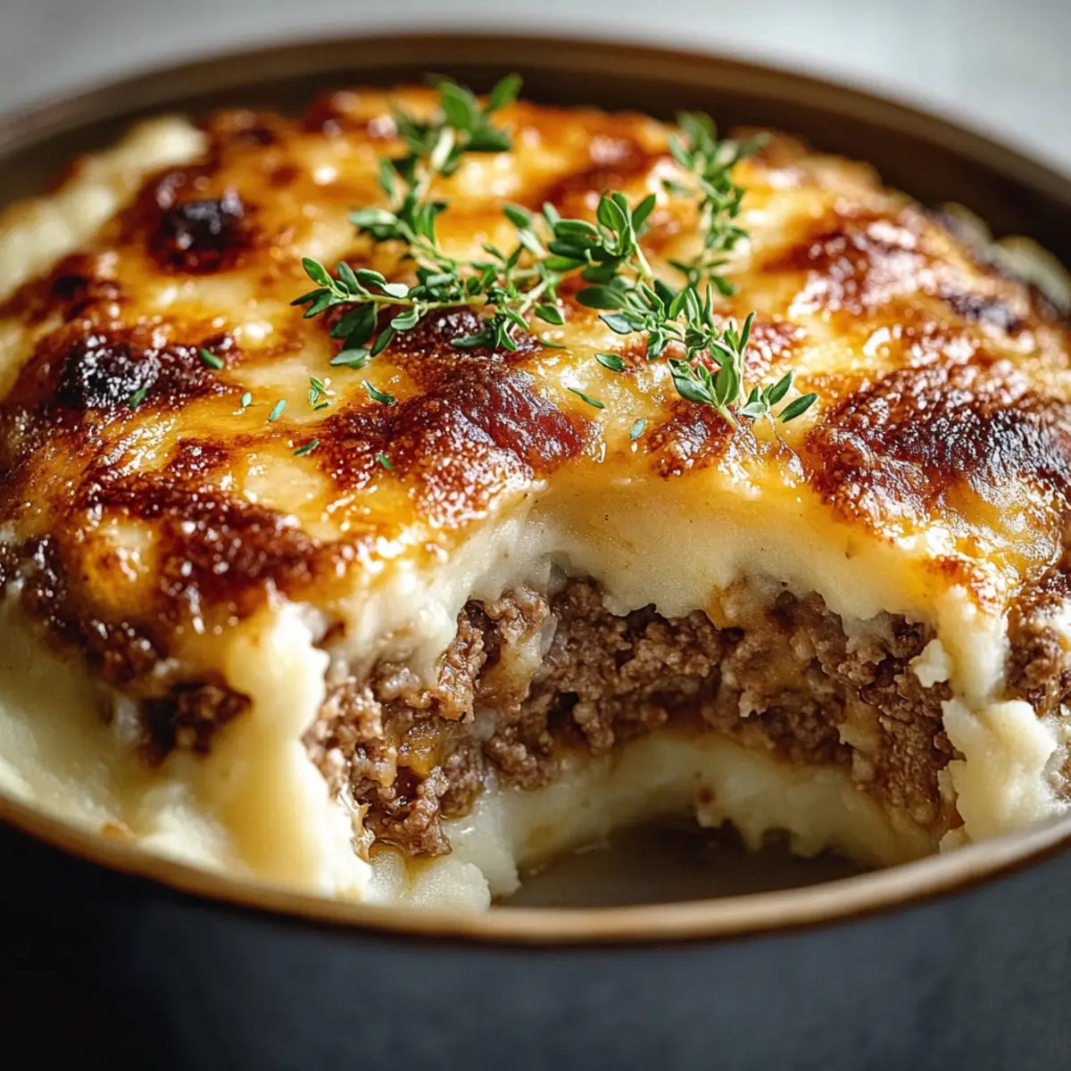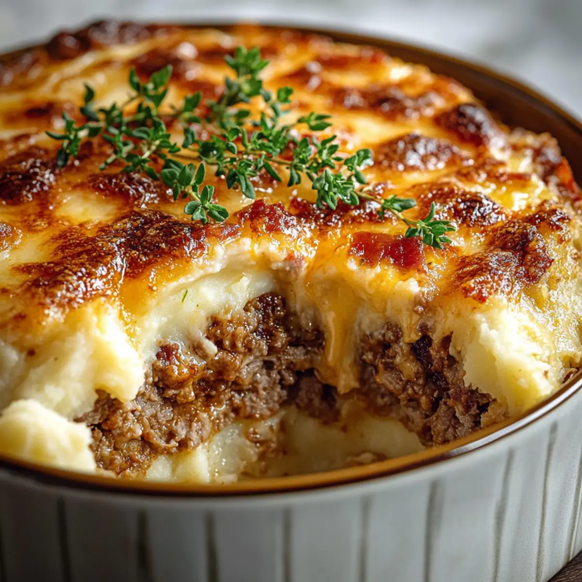 As the savory aroma of a bubbling casserole fills the kitchen, I can’t help but feel a wave of nostalgia wash over me. There’s something incredibly comforting about a dish that brings the best of both worlds together, just like this Loaded Meatloaf and Potato Casserole. Combining the rich, hearty flavors of traditional meatloaf with creamy mashed potatoes, melted cheddar cheese, and a sprinkle of crispy bacon, this one-pan winner is a family-friendly favorite that’s sure to impress. Not only does it feed a crowd with minimal prep time, but it also transforms busy weeknight dinners into something special and satisfying. So, whether you’re trying to win over picky eaters or craving that comforting hug-in-a-bowl, this dish has got you covered. What secret ingredient do you think I added to elevate this classic? What makes this casserole a must-try? Comforting, Hearty Flavors: This Loaded Meatloaf and Potato Casserole is a delightful fusion of two classic dishes, making it perfect for cozy family nights. One-Pan Wonder: Clean-up is a breeze as everything bakes beautifully together in one dish, saving you time after a busy day. Kid-Approved Delight: Even the pickiest eaters will love the cheesy, savory goodness, making it a hit with everyone at the table. Versatile Ingredients: Feel free to swap in your favorite vegetables or alternative proteins, giving you the freedom to customize according to your family’s tastes. Nostalgic Experience: With the mouthwatering aroma wafting through your home, this casserole transforms your kitchen into a warm haven of comfort, reminiscent of home-cooked meals. Pair it with a simple green salad for a complete meal or explore stuffed shrimp casserole for another crowd-pleaser. Loaded Meatloaf and Potato Casserole Ingredients For the Meatloaf Layer • Ground Beef (80/20) – Acts as the protein base for the meatloaf; ground turkey is a lighter alternative but requires an extra egg for moisture. • Plain Dry Breadcrumbs – Provides structure to the meatloaf; panko can be used for a lighter texture. • Ketchup – Enhances flavor in the meatloaf; barbecue sauce offers a smoky twist if desired. • Worcestershire Sauce – Adds depth of flavor; soy sauce can be a substitute in a pinch. • Finely Chopped Onion – Infuses flavor; shallots are a sweeter alternative. • Garlic Powder – Boosts overall flavor; feel free to use fresh minced garlic for an extra kick. • Kosher Salt – Essential for seasoning; sea salt can be used as an alternative. • Black Pepper – Adds heat; freshly cracked pepper enhances the dish even more. • Smoked Paprika – Provides a smoky note; regular paprika is a suitable substitute. For the Mashed Potato Layer • Russet Potatoes – These make the creamy mashed base; Yukon Gold potatoes work well too. • Unsalted Butter – Adds richness to your mashed miracle; substitute with margarine for a dairy-free option. • Sour Cream – Creates an incredibly creamy texture; Greek yogurt offers a lighter version. • Whole Milk – Ensures a creamy consistency; you can also use half-and-half or non-dairy milk. For the Topping • Shredded Sharp Cheddar Cheese – Adds creaminess and robust flavor to the casserole; replace with pepper jack for extra heat. • Cooked Bacon, Crumbled – Provides a crunchy, flavorful topping; diced ham can be used instead if desired. • Sliced Green Onions – Adds freshness and a bit of crunch; chives or shallots make great alternatives. • Chopped Fresh Parsley (optional) – Brightens the flavor and garnishes the dish; consider fresh herbs like thyme or basil for variety. • Barbecue Sauce (optional drizzle) – Adds a touch of sweetness; drizzle if you want to elevate the flavor. With these ingredients, you’re well on your way to creating a Loaded Meatloaf and Potato Casserole that will quickly become a family favorite! Step‑by‑Step Instructions for Loaded Meatloaf and Potato Casserole Step 1: Preheat the Oven Begin by preheating your oven to 375°F (190°C) to ensure even cooking. While your oven heats up, grease a 9×13-inch baking dish with a little cooking spray or butter. This will help the Loaded Meatloaf and Potato Casserole release easily after baking. Step 2: Prepare the Potatoes Peel and chop your russet potatoes into even-sized chunks, then place them in a large pot of salted water. Bring the water to a boil over medium-high heat and cook the potatoes for 12–15 minutes, or until they’re tender enough to easily pierce with a fork. Drain the potatoes and set them aside. Step 3: Make the Meatloaf Mixture In a large bowl, combine the ground beef, plain dry breadcrumbs, 0.33 cup of whole milk, ketchup, Worcestershire sauce, finely chopped onion, garlic powder, kosher salt, black pepper, and smoked paprika. Gently mix with your hands until combined, being careful not to overmix. This flavorful mixture forms the base of your Loaded Meatloaf and Potato Casserole. Step 4: Bake the Meatloaf Layer Take the meatloaf mixture and press it evenly into the prepared baking dish. Place the dish in the preheated oven and bake for 20 minutes, or until the edges are just beginning to set but the center remains slightly soft. This initial baking helps enhance the flavors before adding the creamy potatoes. Step 5: Mash the Potatoes While the meatloaf is baking, prepare your mashed potatoes. In a large bowl, combine the drained potatoes with unsalted butter, sour cream, the remaining milk, and a pinch of salt and pepper. Mash the mixture until it’s creamy and smooth, then spread this luscious layer over the cooked meatloaf, ensuring it covers it completely. Sprinkle half of the shredded cheddar cheese on top. Step 6: Final Bake Return the Loaded Meatloaf and Potato Casserole to the oven and bake for an additional 20–25 minutes. Look for bubbling edges and a golden color on top, signaling that it’s ready. After this, add the remaining cheddar cheese and crumbled bacon, and bake for a