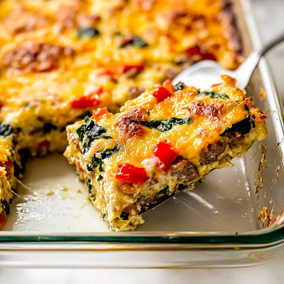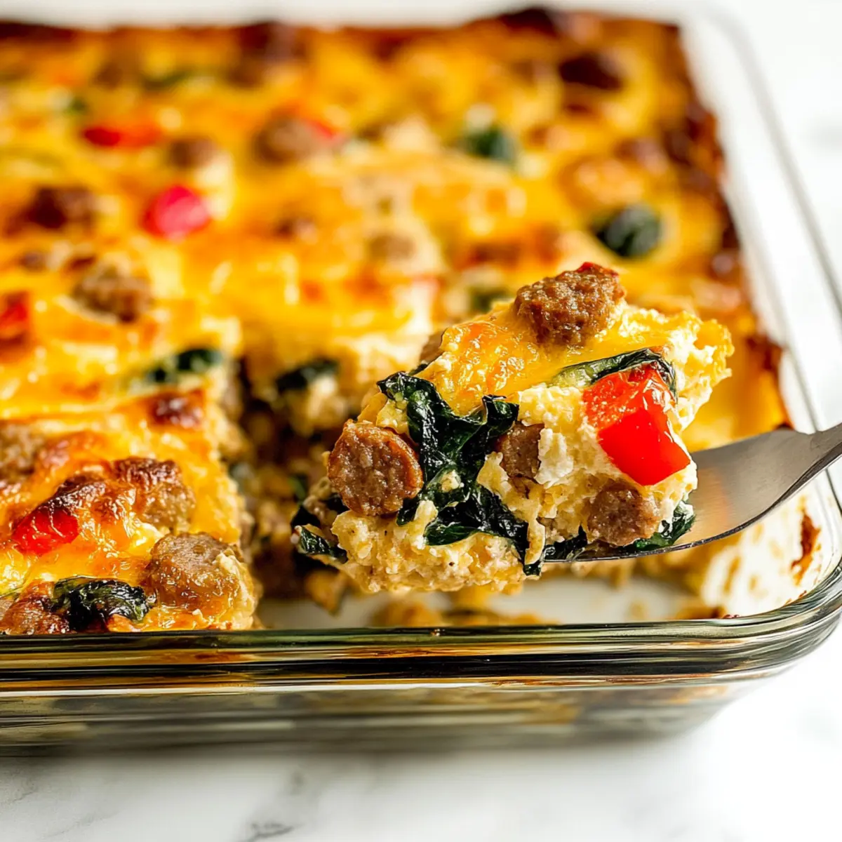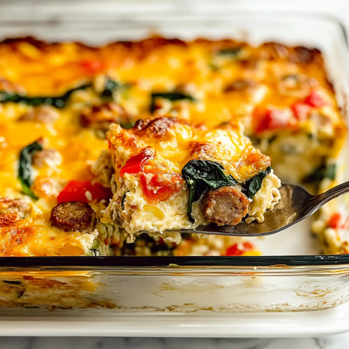 Early mornings can often feel like a race against the clock, but with my Make-Ahead Breakfast Casserole, you’ll be rewarded with a hearty, satisfying meal that takes the stress out of breakfast. This dish is a delightful blend of savory sausage, vibrant veggies, and fluffy eggs, all coming together for a delicious start to your day. Perfect for busy weekdays or leisurely weekend brunches, it’s freezer-friendly and fully customizable to match your cravings. You can whip it up in advance, pop it in the fridge, and bake it fresh whenever you’re ready to dig in! Curious about how this comforting dish can transform your mornings? Let’s dive into the recipe! Why Will You Love This Casserole? Simplicity at Its Best: The Make-Ahead Breakfast Casserole is a straightforward recipe, perfect for anyone—whether you’re a seasoned chef or a busy parent juggling morning routines. Endless Customization: With options to mix and match proteins like sausage or bacon, and veggies such as bell peppers or spinach, you can tailor it to fit your family’s tastes. Freezer-Friendly: Prepare it ahead of time and freeze for those mornings when you need a quick, satisfying meal. Just bake it fresh, and you’re good to go! Comforting Flavors: Each bite offers a pleasing combination of savory sausage, creamy eggs, and fresh produce, reminiscent of your favorite brunch spot but made right in your kitchen. Crowd-Pleaser: Ideal for family gatherings or brunch parties, this casserole is sure to impress your guests and leave them asking for seconds! Whether you’re looking for something similar to my delicious Eggplant Casserole Savory or ready to explore a comforting low-carb option like my Comforting Low Carb Vegetarian Casserole, this Make-Ahead Breakfast Casserole will quickly become a staple in your meal rotation. Make Ahead Breakfast Casserole Ingredients For the Casserole • Sausage – Use 10-12 ounces of your choice (e.g., chicken, pork, or turkey) for protein and flavor; leave out for a vegetarian option. • Olive Oil – Helps sauté the vegetables; omit if there’s enough fat from the sausage. • Garlic – Adds aromatic flavor; substitute with garlic powder if necessary. • Fresh Spinach – Brings nutrients and vibrant color; you can replace it with kale or omit for simplicity. • Bell Peppers – Offers crunch and sweetness; swap for zucchini or any preferred veggie. • Yellow Onion – Provides a savory flavor base; can be replaced with shallots or omitted. • Salt and Pepper – Enhance the dish’s flavor; adjust according to your taste. • Eggs – Essential for the custard-like base; use 12 large eggs. Consider substituting some with egg whites for a lower cholesterol option. • Milk – Contributes creaminess; any type will work, including almond or oat milk for a dairy-free choice. • Shredded Cheese – Adds richness and flavor; feel free to use your favorite type or skip for a dairy-free version. For the Topping • Additional Shredded Cheese – Top with more cheese for extra melty goodness; this really ties the dish together. With these simple ingredients for your Make-Ahead Breakfast Casserole, you can easily prepare a meal that makes your mornings a joy, whether fresh from the oven or pre-prepared and waiting for a busy day! Step‑by‑Step Instructions for Make Ahead Breakfast Casserole Step 1: Preheat the Oven Begin by preheating your oven to 375°F (191°C). While the oven warms up, take a moment to generously spray a 9×13-inch casserole dish with non-stick spray. This ensures your Make Ahead Breakfast Casserole slides right out after baking, keeping all the delicious layers intact. Step 2: Cook the Sausage In a large skillet, over medium heat, add your choice of 10-12 ounces of sausage. Cook it until it’s beautifully browned and no longer pink, which should take about 5-7 minutes. Allow the sausage to release its savory aroma, as it will be the heart of your casserole. If you’re using pre-cooked sausage, skip this step. Step 3: Sauté the Vegetables Next, add minced garlic, fresh spinach, diced bell peppers, and chopped onion to the skillet. Sauté the mixture for about 6-7 minutes until the veggies are tender and the spinach wilts down to a vibrant green. Season this colorful veggie medley with salt and pepper to enhance the flavors, creating a delightful base for your Easy Make Ahead Breakfast Casserole. Step 4: Combine Ingredients in Casserole Dish Once the sausage and vegetable mixture is ready, transfer everything into the prepared casserole dish. Use a spatula to spread it evenly across the bottom. This combination will form a hearty foundation, ensuring each bite of your Make Ahead Breakfast Casserole is bursting with flavor. Step 5: Prepare the Egg Mixture In a large mixing bowl, whisk together 12 large eggs, a cup of milk, and ¼ cup of shredded cheese until well combined and frothy. The mixture should be smooth with a creamy texture. Pour this egg concoction evenly over the sausage and vegetables, enveloping them in a savory custard. Step 6: Add Topping and Chill (Optional) Sprinkle the remaining shredded cheese on top for a gooey finish. At this point, you can either bake the Make Ahead Breakfast Casserole immediately or cover it with plastic wrap and refrigerate it for up to 24 hours. Chilling it allows flavors to meld together beautifully, making it perfect for busy mornings. Step 7: Bake to Perfection When you’re ready to bake, place the casserole in the preheated oven and let it bake for about 45 minutes. Keep an eye out for golden edges and a set center as visual cues that it’s done. The aroma wafting through your kitchen will be irresistible! Step 8: Cool and Serve Once baked, remove the casserole from the oven and let it cool for 15 minutes. This resting time helps the layers to firm up slightly, making it easier to slice. Serve warm and enjoy this comforting and satisfying Make Ahead Breakfast Casserole with your loved ones! What to Serve