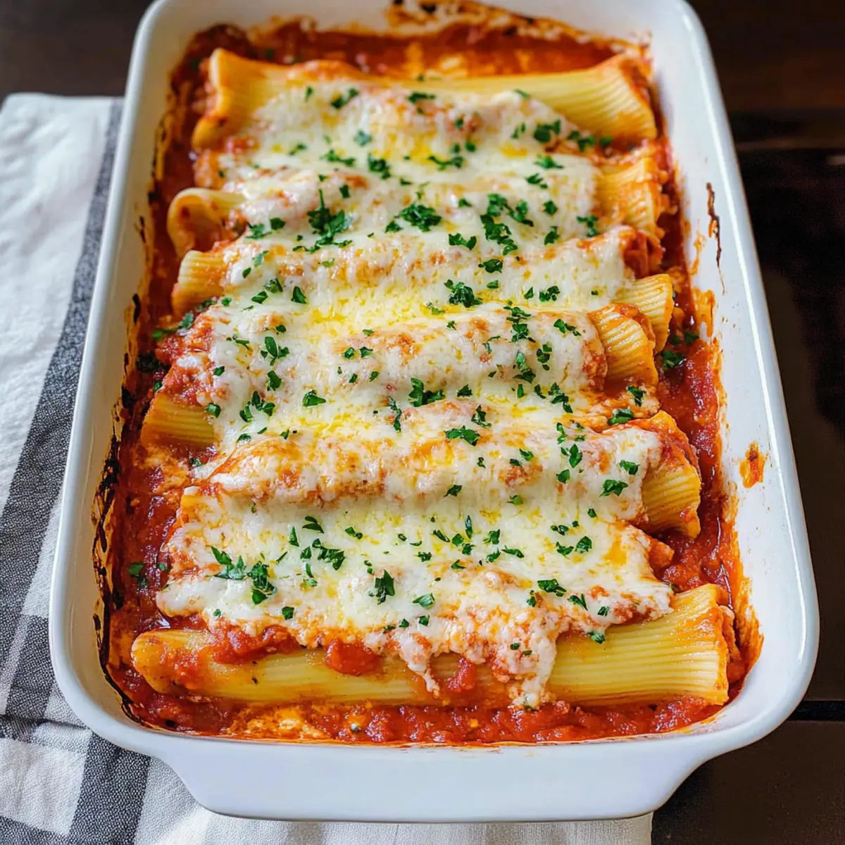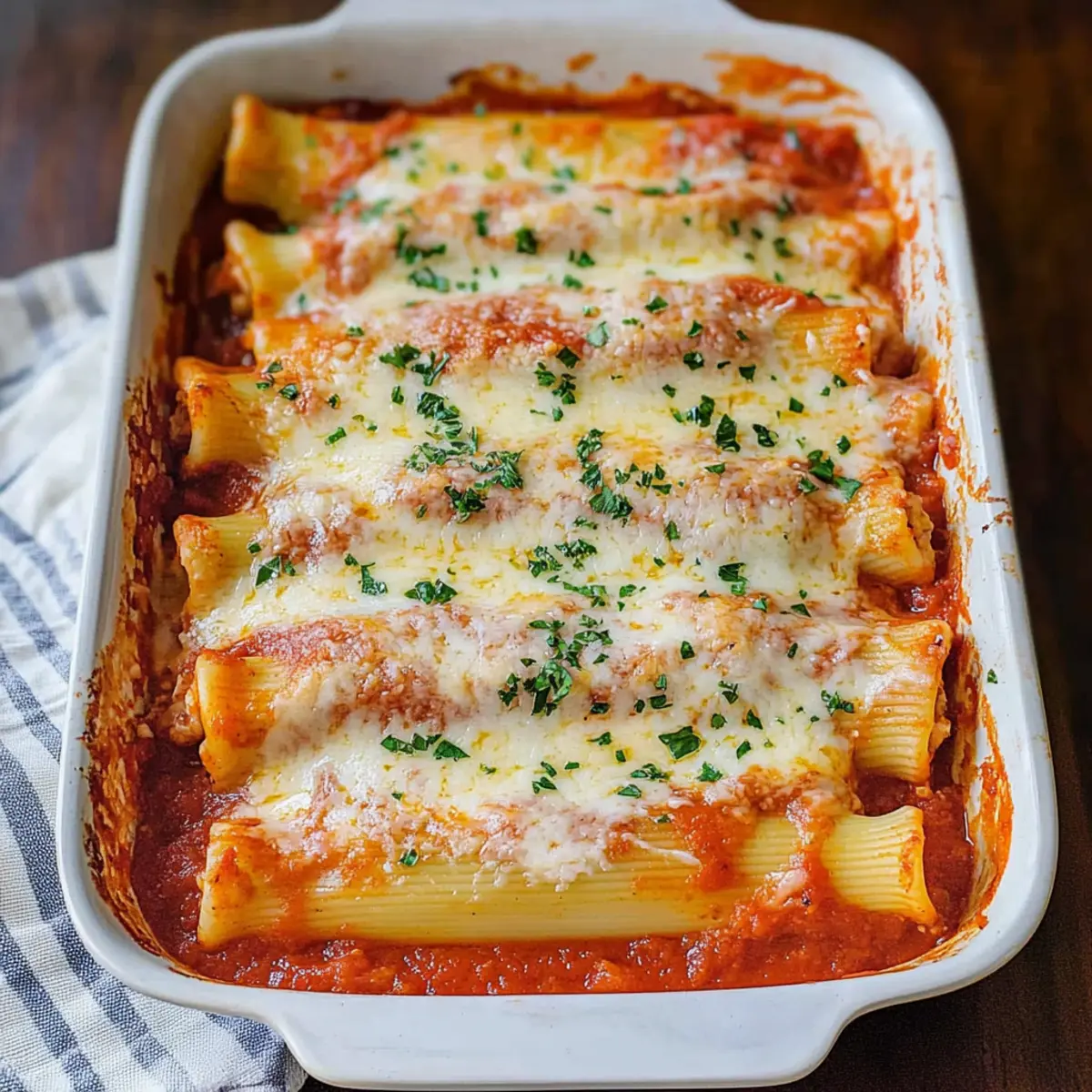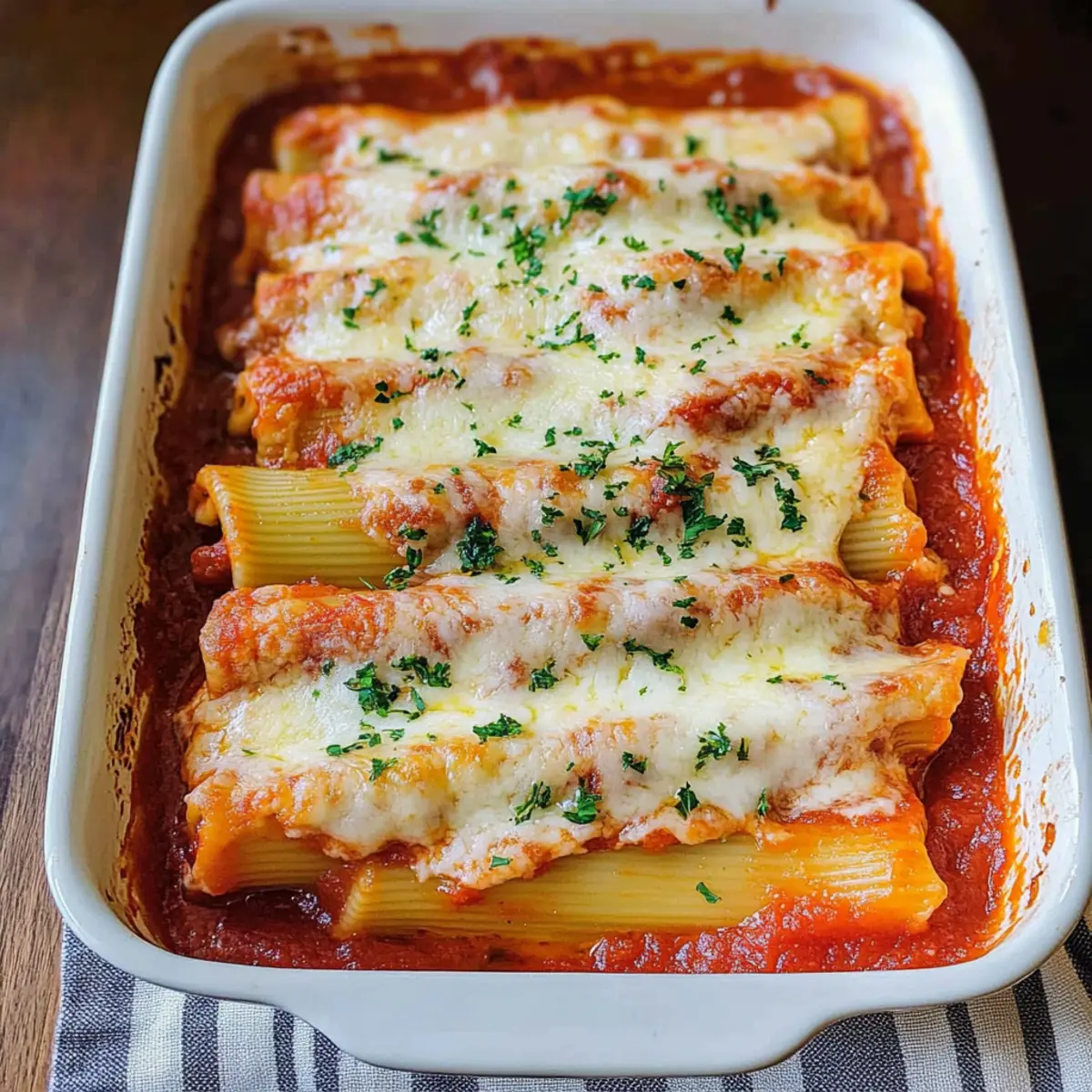 After an exhausting day, picture this: a cozy evening ahead as you pull a bubbly casserole out of the oven, filling your kitchen with the rich aroma of marinara and melted cheese. My Creamy Stuffed Manicotti Recipe is exactly what you need—this Italian-American classic combines three delectable cheeses wrapped in tender manicotti shells, creating a dish that’s as heartwarming as it is satisfying. Whether you’re whipping it up for a comforting weeknight dinner or impressing guests during the holidays, this creamy pasta dish offers the best of both worlds: it’s quick to prepare and perfect for make-ahead meals. Intrigued by the secret to crafting this everyone-will-love-it recipe? Let’s dive in! Why is This Manicotti Recipe a Must-Try? Comforting, this Creamy Stuffed Manicotti brings the warmth of Italian home cooking right to your table. Flavor-packed, the three-cheese filling melts in your mouth, perfectly complemented by rich marinara sauce. Versatile, it’s just as suited for busy weeknight dinners as for special holiday feasts. Easy to prepare, this recipe is designed for cooks of all skill levels. Plus, it’s great for make-ahead meals; simply assemble and bake later! If you’re also looking for delightful side options, consider pairing it with a fresh green salad or some crusty garlic bread for a complete meal. Manicotti Recipe Ingredients • Get ready to indulge in this cheesy delight! For the Pasta Manicotti Pasta – Choose between fresh or dried, but remember not to overcook for perfect filling! For the Cheese Filling Whole Milk Ricotta Cheese – Provides creaminess; replace with cottage cheese for a lighter option. Large Eggs – Binds the filling; you can use a flax egg as an egg-free alternative. Shredded Mozzarella Cheese – Adds gooeyness; fresh mozzarella works great too, just ensure it’s well-drained. Freshly Grated Parmesan Cheese – For that nutty flavor; fresh grating enhances taste over pre-packaged. Garlic Cloves – Adds depth; adjust quantity based on your love for garlic! Fine Sea Salt – A must for flavor enhancement; don’t forget to salt your pasta water. Freshly Ground Black Pepper – A touch of spice; tailor it to your taste. Grated Nutmeg – Adds warmth; fresh nutmeg is preferred for optimal flavor. For the Sauce Marinara Sauce – A rich, flavorful companion for your cheese filling; feel free to use homemade or store-bought. Heavy Cream (optional) – For added creaminess and balance of acidity; skip it for a lighter dish. For Garnish Parsley – Lends a fresh touch; substitute with basil if desired! Step‑by‑Step Instructions for Creamy Stuffed Manicotti Recipe Step 1: Preheat the Oven Begin by preheating your oven to 400°F (200°C). This ensures that your Creamy Stuffed Manicotti will bake evenly and develop a beautiful golden top. While the oven warms, grab your 9×13 casserole dish, as you’ll need it ready for the next steps. Step 2: Cook the Manicotti In a large pot, bring salted water to a boil. Carefully add the manicotti shells and cook for about 5 minutes, ensuring they remain slightly al dente. This prevents sogginess later; the pasta will finish cooking in the oven. Once done, immediately drain and rinse with cold water to halt the cooking process. Step 3: Prepare the Marinara Sauce In a mixing bowl, take your marinara sauce and stir in heavy cream if you choose to use it. This will add a luscious creaminess and balance the acidity. Pour a generous layer of this creamy marinara sauce into the bottom of your casserole dish, creating a flavorful base for the manicotti to rest on. Step 4: Make the Cheese Filling In a large bowl, combine the large eggs, whole milk ricotta cheese, half of the shredded mozzarella cheese, half of the grated parmesan cheese, minced garlic, chopped parsley, sea salt, black pepper, and grated nutmeg. Mix everything together until it forms a cohesive filling that smells utterly delicious and ready to fill your manicotti. Step 5: Fill the Manicotti Using a piping bag or a resealable plastic bag with the corner trimmed, fill each manicotti shell with the cheesy filling. This makes the process quick and minimizes mess. Once filled, gently arrange the manicotti in the prepared casserole dish on top of the marinara sauce, showcasing their creamy goodness. Step 6: Add Sauce and Cheese Topping Pour the remaining creamy marinara sauce over the filled manicotti, ensuring each shell is well-coated. Then, sprinkle the rest of the mozzarella and parmesan cheese evenly over the top. This cheesy layer will melt to create that irresistible bubbly crust you’re aiming for in your Creamy Stuffed Manicotti. Step 7: Bake the Manicotti Cover the casserole dish with aluminum foil to hold in moisture and prevent over-browning. Place in the preheated oven and bake for 25 minutes. After that, remove the foil and bake for an additional 10 minutes until the cheese is bubbly and lightly browned, signaling it’s time to indulge. Step 8: Rest and Serve Once out of the oven, allow your Creamy Stuffed Manicotti to rest for about 5 minutes. This will make serving easier and let the flavors meld beautifully. Garnish with extra parsley to add a fresh touch, and get ready to share this comforting dish with your family and friends! What to Serve with Creamy Stuffed Manicotti? Imagine gathering your loved ones around the table, sharing in a delicious meal that feels inviting and comforting. Garlic Bread: This classic companion helps soak up all that delicious marinara sauce and adds a satisfying crunch to your meal. Bake it until golden and enjoy the aroma wafting through your kitchen! Simple Green Salad: A fresh, crisp salad topped with a light vinaigrette balances the richness of the manicotti. Toss in some cherry tomatoes, cucumbers, and a sprinkle of feta for extra flavor. Roasted Vegetables: A medley of seasonal veggies like zucchini, bell peppers, and eggplant, roasted to perfection, adds vibrant color and a healthy crunch.
