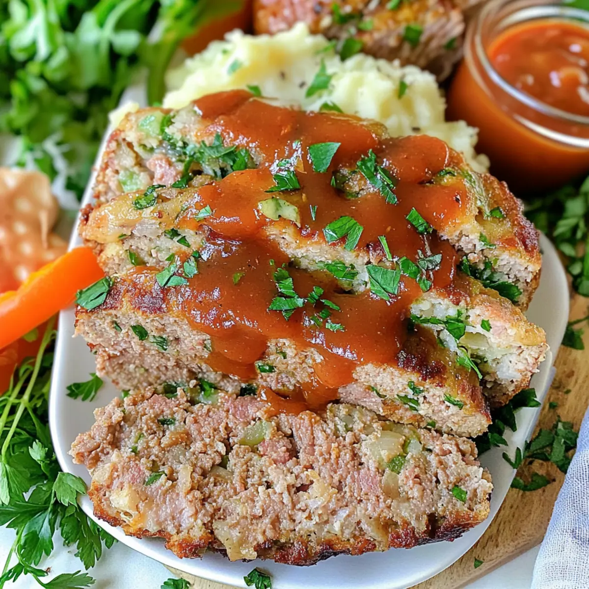 Nothing stirs up nostalgia quite like the aroma of a beloved meatloaf wafting through the kitchen, especially when it finds new life as a hearty sandwich. My Simply The Best Meatloaf Sandwiches From Leftovers take comfort food to the next level, transforming yesterday’s dinner into a quick meal that’s not just delicious but also incredibly satisfying. The delightful combination of savory meatloaf, creamy mashed potatoes, and crispy Caesar salad sandwiched between perfectly toasted sourdough will make you forget you even had leftovers in the first place. In just 20 minutes, you can enjoy a homemade masterpiece that’s perfect for busy weeknights or lazy weekends. Ready to reinvent your leftovers into something extraordinary? Let’s dive in! Why reinvent leftovers into something special? Reinventing Leftovers: This recipe breathes new life into yesterday’s meatloaf, creating something exciting and unexpected. Quick and Easy: With just 20 minutes in the kitchen, you can whip up a delicious meal that even picky eaters will love. Comfort Food Delight: The combination of flavors—savory meatloaf, rich mashed potatoes, and crisp salad—will warm your heart. Versatile Options: Feel free to customize with your favorite sauces or add a spicy twist with hot sauce for extra flavor. Crowd-Pleasing Appeal: Perfect for family dinners or a cozy night in, everyone will be asking for seconds! Transform your leftovers today and make mealtime truly enjoyable. Try these variations to switch things up! Meatloaf Sandwiches From Leftovers Ingredients For the Sandwich • Sourdough Bread – The ideal base for holding all the delicious fillings; feel free to swap for ciabatta or whole grain for a different taste. • Leftover Meatloaf – The star of the dish; you can easily substitute with turkey or veggie meatloaf for a twist. • Leftover Mashed Potatoes – Adds a delightful creaminess; any leftover potatoes will work, or even store-bought mashed. • Chopped Gardenia – Introduces a fresh crunch that balances the richness; any leafy greens or shredded lettuce will do. • Caesar Salad – Brings a burst of flavor and texture; you can replace it with your favorite salad mix or omit it altogether for simplicity. For the Meatloaf Sauce • Homemade Meatloaf Sauce – This delicious mixture enhances the flavor and moisture; swap in your favorite BBQ or steak sauce if you prefer. These meatloaf sandwiches from leftovers are not just a meal; they’re a delightful reinvention that the whole family will adore! Step‑by‑Step Instructions for Simply The Best Meatloaf Sandwiches From Leftovers Step 1: Warm the Meatloaf and Mashed Potatoes Begin by preheating your oven to 350°F (175°C) or use your microwave for quicker results. Slice the leftover meatloaf into thick pieces and place them on a baking sheet. Cover with foil to prevent drying out, and heat for about 10-15 minutes until warmed through. If using mashed potatoes, place them in a microwave-safe bowl and heat for 1-2 minutes until creamy and hot. Step 2: Prepare the Meatloaf Sauce While the meatloaf and potatoes warm, whisk together the ingredients for the meatloaf sauce in a small mixing bowl. This step should take about 2-3 minutes. Look for a smooth, well-combined mixture that enhances the flavors of your meatloaf sandwiches. Set this delicious sauce aside for assembly later. Step 3: Toss the Caesar Salad In a separate bowl, toss together the components of your Caesar salad until evenly mixed. This could take about 2 minutes. Aim for a refreshing blend that balances the rich flavors of your meatloaf. Set aside the salad to keep it crisp and vibrant until you’re ready to layer it on your sandwiches. Step 4: Toast the Sourdough Bread Next, grab your slices of sourdough bread and toast them to your desired crispiness. You can use a toaster, a skillet over medium heat, or even your oven set to broil for about 2-3 minutes. Look for a beautiful golden-brown color that adds texture and holds up against the fillings without becoming soggy. Step 5: Slather on the Meatloaf Sauce Once your sourdough is perfectly toasted, spread a generous layer of the prepared meatloaf sauce on the interior sides of each slice. This should take around 1-2 minutes. The sauce will add moisture and flavor, making your Simply The Best Meatloaf Sandwiches From Leftovers truly delightful. Step 6: Layer the Fillings Now, it’s time to stack your sandwich! On one slice of the sauced bread, layer the warmed meatloaf followed by a hearty scoop of creamy mashed potatoes. Then, pile on the tossed Caesar salad. This assembly should take about 2-3 minutes. Make it plush and don’t hold back on the fillings for that satisfying bite! Step 7: Complete the Sandwich and Serve Finally, place the second slice of helltake sauce side down over your layered fillings. Press down gently to hold everything in place, and your meatloaf sandwich is ready! Cut it in half if desired, and serve warm for the best experience. Enjoy your comforting masterpiece right away! Storage Tips for Meatloaf Sandwiches From Leftovers Fridge: Store leftovers in an airtight container for up to 3 days. This will keep your meatloaf sandwiches fresh and ready to enjoy. Freezer: You can freeze assembled sandwiches by wrapping them tightly in foil or plastic wrap for up to 1 month. Make sure to reheat thoroughly before serving. Reheating: For the best results, reheat in an oven at 350°F (175°C) for 10-15 minutes, or use a microwave, covering with a damp paper towel to maintain moisture. Room Temperature: Serve freshly made sandwiches immediately. If you leave them out for more than 2 hours, it’s best to discard any leftovers to avoid food safety issues. Expert Tips for Meatloaf Sandwiches • Perfectly Toasted Bread: Ensure your sourdough is golden brown to avoid a soggy sandwich. A crisp base keeps the fillings in check! • Layer Generously: Don’t be shy with your filling—more meatloaf and mashed potatoes c
