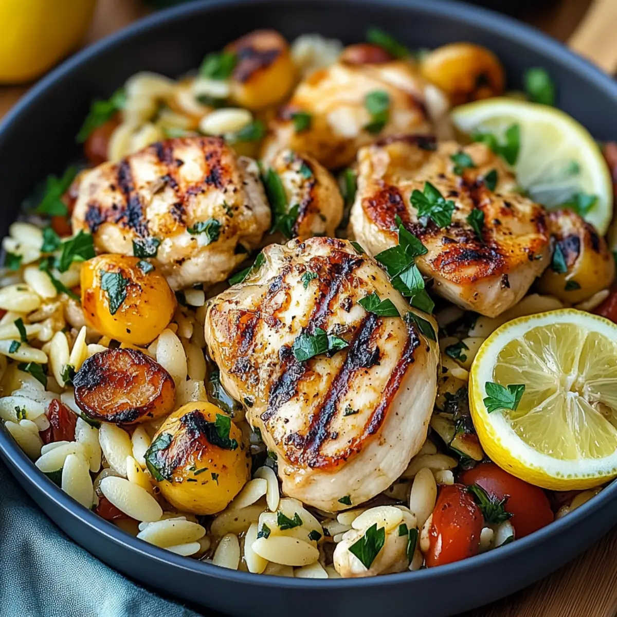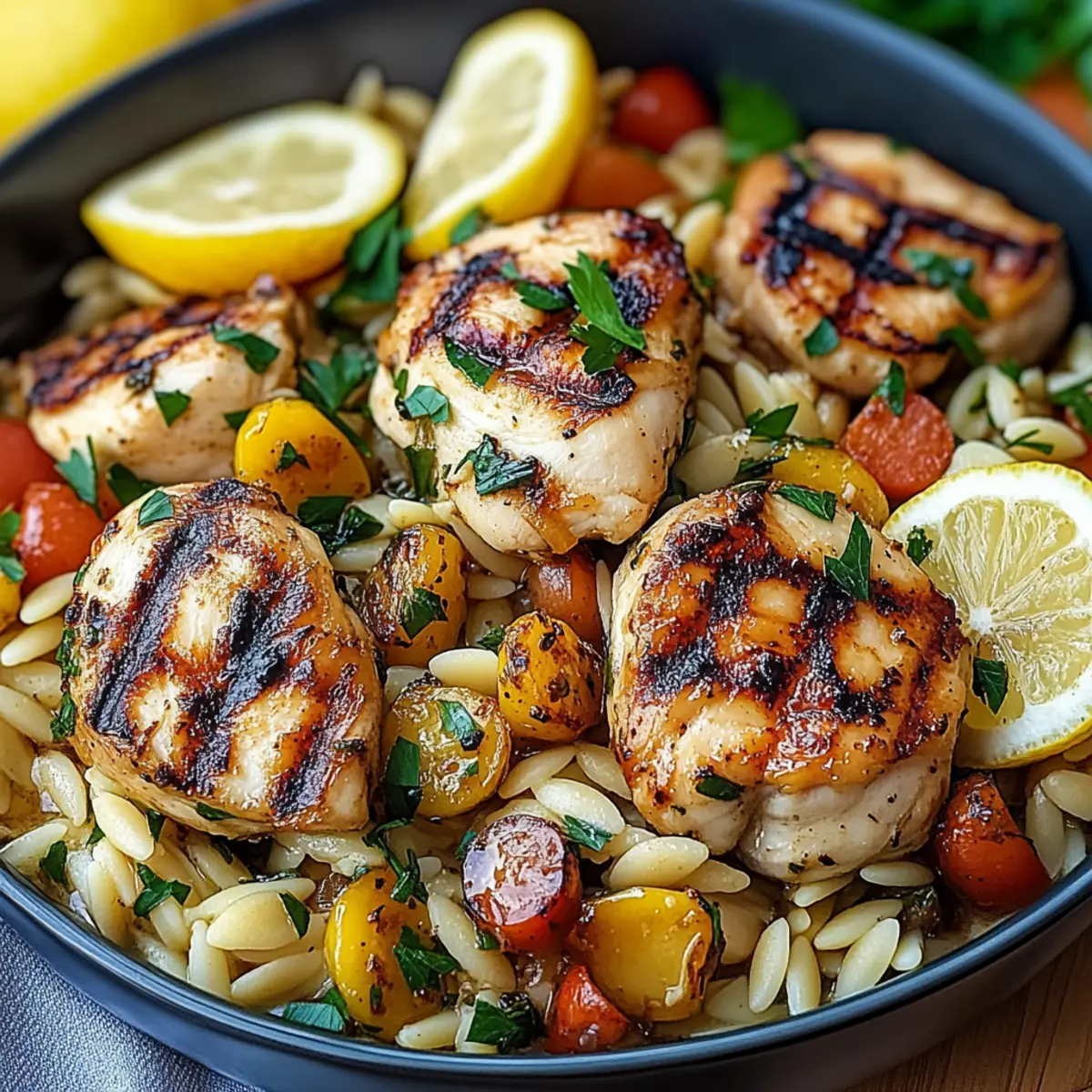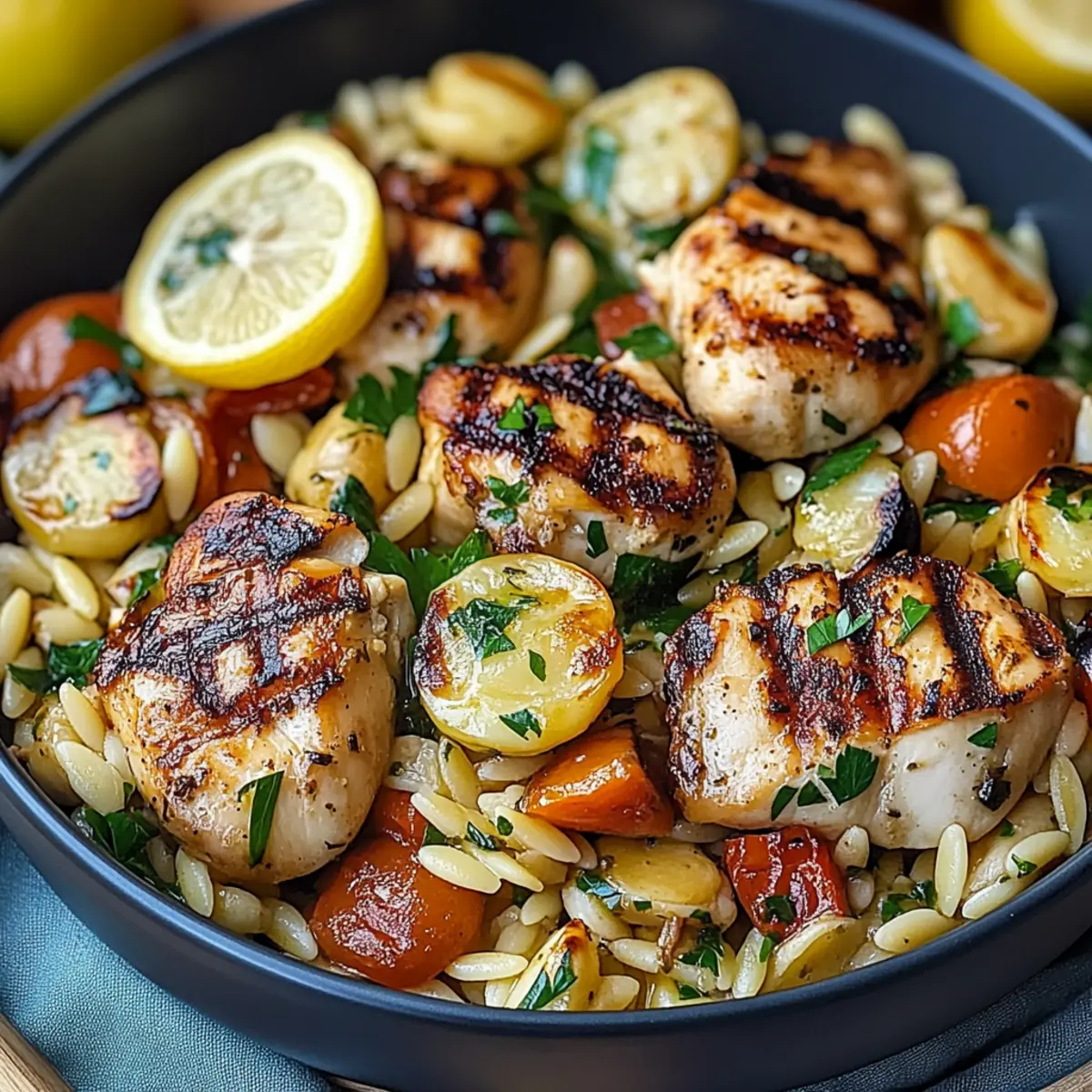 As the fragrant aroma of garlic and sun-dried tomatoes filled my kitchen, I felt an immediate rush of warmth and anticipation. Today, I’m thrilled to share my Mediterranean Chicken Orzo, a delightful dish that captures the essence of the Mediterranean diet. This vibrant, one-pan meal not only promises quick preparation but also serves up a healthful balance of protein and veggies, making it the perfect solution for busy weeknights when you crave something homemade. Each forkful brings tender chicken, colorful vegetables, and a zesty lemon kick that transports me straight to sunny shores. Are you ready to dive into this flavorful culinary journey with me? Why is Mediterranean Chicken Orzo a Must-Try? One-Pan Wonder: Say goodbye to multiple pots and pans! This dish combines everything you need for a delicious meal in just one pan—less mess, more flavor, and quick clean-up. Vibrant Flavors: Each bite bursts with the zesty goodness of lemon, aromatic garlic, and sweet sun-dried tomatoes, delivering a taste explosion that will leave your taste buds dancing. Nutrient-Packed: Loaded with lean chicken and fresh veggies, this recipe aligns perfectly with the principles of the Mediterranean diet, making it a guilt-free indulgence. Versatile Base: Swap chicken for shrimp or chickpeas and experiment with seasonal veggies to cater to your preferences while keeping the essence of this fabulous dish. Quick and Easy: Ready in under 30 minutes, Mediterranean Chicken Orzo is an ideal solution for busy weeknights, fitting seamlessly into your meal-prep routine. Pair it with a refreshing cucumber salad tossed in lemon-dill vinaigrette for a delightful meal! Mediterranean Diet Chicken Orzo Ingredients For the Chicken Chicken Thighs (or Breasts) – Provides protein and rich flavor; turkey can be a leaner alternative. For the Orzo Orzo Pasta – Absorbs flavors beautifully; gluten-free pasta works as a substitute for dietary needs. For the Liquid Chicken Broth – Adds depth and enhances flavor; consider low-sodium options, or use vegetable broth for a vegetarian-friendly twist. For Sautéing Olive Oil – Ideal for flavor and sautéing; extra virgin olive oil gives the best taste. For Flavor Garlic – Boosts aroma and flavor; freshly minced garlic is the best choice. Sun-Dried Tomatoes – Offer a sweet, tangy backdrop; oil-packed is convenient, while dry-packed should be rehydrated first. Dried Oregano – Essential for authentic Mediterranean flavor; you can substitute with thyme or basil as alternatives. For Fresh Ingredients Spinach – Provides freshness and nutrients; feel free to swap it with kale for a different twist. Lemon – Brightens and balances flavors; fresh-squeezed juice is always recommended for optimal taste. Fresh Parsley – Adds a burst of freshness and color; mint can be an exciting replacement. For Heat and Seasoning Red Pepper Flakes – Optional for a kick of heat; adjust according to your personal spice preference. Salt and Black Pepper – Essential for seasoning, helping to bring all the flavors together. As you gather these ingredients, you’ll see how easy it is to create a delicious Mediterranean diet chicken orzo meal, bursting with flavor! Step‑by‑Step Instructions for Mediterranean Diet Chicken Orzo Step 1: Sear Chicken In a large skillet over medium-high heat, warm 2 tablespoons of olive oil. Once shimmering, add 1 pound of chicken thighs or breasts, searing them for about 5-7 minutes until golden brown on all sides. Once browned, remove the chicken from the skillet and set it aside on a plate, keeping the flavorful drippings in the pan. Step 2: Sauté Aromatics In the same skillet, reduce the heat to medium and add 3 minced garlic cloves along with ½ cup of chopped sun-dried tomatoes. Sauté for about 1 minute until fragrant and the garlic starts to soften, stirring frequently to prevent burning. This step will infuse the Mediterranean Chicken Orzo with rich flavors right from the start. Step 3: Prepare Orzo Add 1 cup of orzo pasta into the skillet, toasting it for 1 minute. Pour in 2 cups of low-sodium chicken broth and sprinkle in 1 teaspoon of dried oregano. Increase the heat until the mixture reaches a simmer, stirring occasionally, so the orzo can absorb all the delicious flavors and cook evenly. Step 4: Cook Orzo Allow the orzo to cook uncovered for about 10-12 minutes, stirring occasionally. You’ll know it’s done when most of the liquid is absorbed and the orzo is tender yet still has a slight bite to it. This step creates a creamy consistency, making your Mediterranean Diet Chicken Orzo rich and satisfying. Step 5: Add Spinach Once the orzo reaches the desired tenderness, stir in 2 cups of fresh baby spinach. Cook for an additional 1-2 minutes until the spinach wilts, brightening up the dish and adding nutritional value. The vibrant green color will enhance the visual appeal of your Mediterranean Chicken Orzo. Step 6: Combine Return the seared chicken to the skillet, squeezing the juice of one fresh lemon over everything. Season with salt, black pepper, and red pepper flakes to taste. Gently mix all the ingredients together, heating them through for about 2-3 minutes, ensuring all flavors meld beautifully in this delightful Mediterranean dish. What to Serve with Mediterranean Chicken Orzo? Indulge in a delightful spread that perfectly complements your one-pan Mediterranean feast, enhancing both flavor and presentation. Warm Pita Bread: Soft and fluffy, perfect for scooping up orzo while adding a Mediterranean vibe to your meal. Cucumber Salad: Crisp cucumbers tossed in a lemon-dill vinaigrette offer a refreshing contrast to the warmth of the orzo, balancing flavors beautifully. Pairing these sides with your Mediterranean Diet Chicken Orzo will elevate your dining experience, creating a meal that resonates with both heartiness and brightness. Roasted Vegetables: A mix of seasonal veggies, drizzled with olive oil, enhances the vibrancy and brings out