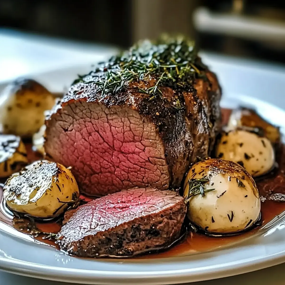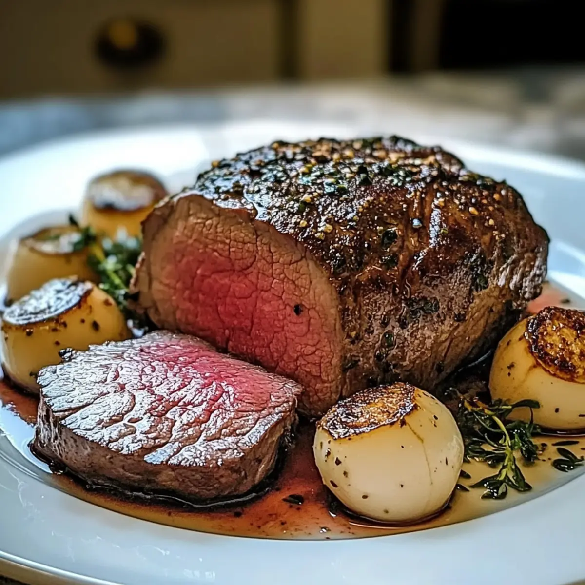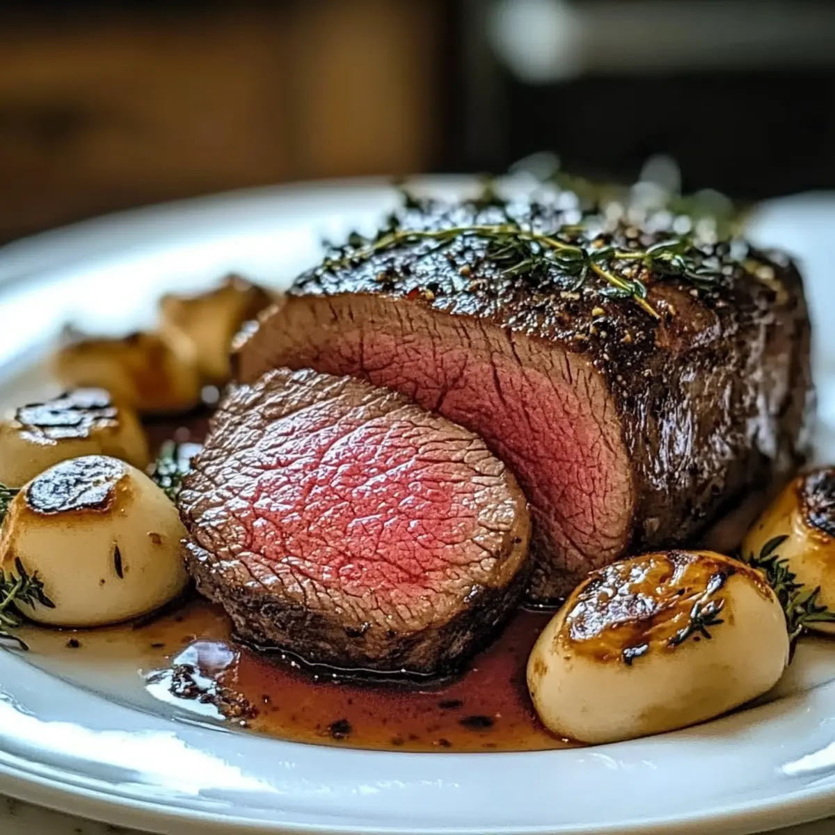 In a world where cooking often feels rushed, I’ve found joy in creating something that not only satisfies the palate but also nourishes the soul. Meet the Million Dollar Roast Beef Tenderloin—an effortless yet elegant main course that transforms any gathering into a special celebration. With straightforward preparation that doesn’t skimp on flavor, this dish embodies the luxury of gourmet dining right at your table. You’ll love how the combination of juicy tenderness and aromatic herbs makes it a show-stopper, perfect for holidays, anniversaries, or simply a cozy dinner at home. It’s a crowd-pleaser that impressively showcases your culinary skills while giving you more time to enjoy with your loved ones. Are you ready to elevate your cooking game? Let’s dive into this masterpiece that promises to be the highlight of your dinner! Why is this roast beef a must-try? Simplicity: With just a few steps, you can create a meal that looks and tastes like a gourmet feast. Crowd-Pleaser: This dish is guaranteed to impress your guests, turning any gathering into a special occasion. Flavor Explosion: The combination of fresh herbs, garlic, and Worcestershire sauce creates a mouthwatering depth of flavor that keeps everyone coming back for seconds. Versatile Pairings: Serve it with creamy mashed potatoes or roasted seasonal vegetables for a complete, satisfying dinner. Make-Ahead Friendly: You can prep the marinade in advance, making it easier to serve on busy nights or for holidays—just like with my Cheesy Ground Beef Melt! Million Dollar Roast Beef Tenderloin Ingredients For the Marinade • Beef Tenderloin – The star of this dish, providing a tender and flavorful base; substitutions like ribeye or sirloin are possible but may adjust cooking times. • Olive Oil – Provides moisture and helps the marinade stick; no direct substitution needed. • Salt – Enhances the flavor of the meat; for best results, use kosher or sea salt. • Black Pepper – Adds a mild heat and complexity; freshly ground is preferable for maximum flavor. • Garlic (minced) – Contributes aromatic depth; garlic powder can be used in a pinch if fresh isn’t available. • Fresh Rosemary – Offers a fragrant herbal note that elevates the dish; dried rosemary can be a substitute (just use less). • Fresh Thyme – Adds a lovely earthy flavor; can be replaced with dried thyme for convenience. • Dijon Mustard – Provides a tangy sharpness that enhances the taste; yellow mustard works as an alternative if needed. • Worcestershire Sauce – Amplifies the umami flavor; soy sauce can be an alternative for a different twist. For Roasting • Beef Broth – Keeps the meat moist while roasting; you can use homemade or low-sodium store-bought options. Enjoy creating this Million Dollar Roast Beef Tenderloin that transforms any dinner into a celebrated occasion! Step‑by‑Step Instructions for Million Dollar Roast Beef Tenderloin Step 1: Preheat the Oven Begin by preheating your oven to 425°F (220°C) to ensure optimal searing for the Million Dollar Roast Beef Tenderloin. This temperature allows the outer crust to develop a beautiful caramelization while keeping the inside tender and juicy. Step 2: Prepare the Marinade In a mixing bowl, combine olive oil, salt, black pepper, minced garlic, fresh rosemary, fresh thyme, Dijon mustard, and Worcestershire sauce. Whisk these ingredients together until well-blended. The marinade will not only flavor the beef but also help create a fabulous crust during roasting. Step 3: Marinate the Beef Take your beef tenderloin and generously coat it with the marinade, ensuring an even cover. Allow the beef to sit at room temperature for about 30 minutes. This resting time allows the flavors to penetrate the meat, enhancing the overall taste when it’s roasted. Step 4: Sear the Beef In an oven-safe skillet, heat a splash of olive oil over medium-high heat. Once hot, add the marinated beef tenderloin and sear it on all sides for approximately 3-4 minutes per side until it develops a rich golden-brown crust. This step locks in moisture and builds flavor for your Million Dollar Roast Beef Tenderloin. Step 5: Add the Broth After searing, carefully pour beef broth around the tenderloin in the skillet. This liquid will keep the meat moist as it roasts. Make sure the broth does not wash away the lovely sear you just created on the beef. Step 6: Roast the Beef Transfer the skillet to your preheated oven and roast the beef for 25-30 minutes. Use a meat thermometer to check for doneness, aiming for 135°F (57°C) for a perfect medium-rare. The beef will be beautifully browned on the outside and delightfully pink on the inside. Step 7: Rest the Meat Once your Million Dollar Roast Beef Tenderloin reaches the desired temperature, remove it from the oven. Transfer the beef to a cutting board and loosely cover it with foil. Let it rest for 10-15 minutes. This resting period allows the juices to redistribute, ensuring every slice is melt-in-your-mouth tender. Step 8: Slice and Serve After resting, slice the tenderloin against the grain to showcase its juicy interior. Serve it alongside your favorite sides, and enjoy the impressive flavors of your deliciously prepared Million Dollar Roast Beef Tenderloin. Million Dollar Roast Beef Tenderloin Variations Feel free to make this dish your own and explore delicious twists that engage your taste buds! Red Wine Swap: Use red wine instead of beef broth for a rich, complex flavor. It deepens the taste, making the dish feel even more gourmet. Herb Medley: Substitute rosemary and thyme with fresh sage or oregano for a unique flavor profile. Each herb brings a new aroma to the table that is simply enchanting. Spicy Kick: Add a pinch of cayenne pepper to the marinade for a mild heat that brings an exciting dimension to your roast. It’s an unexpected twist that will surprise your guests! Garlic Lovers: Throw in roasted garlic cloves instead of minced garlic