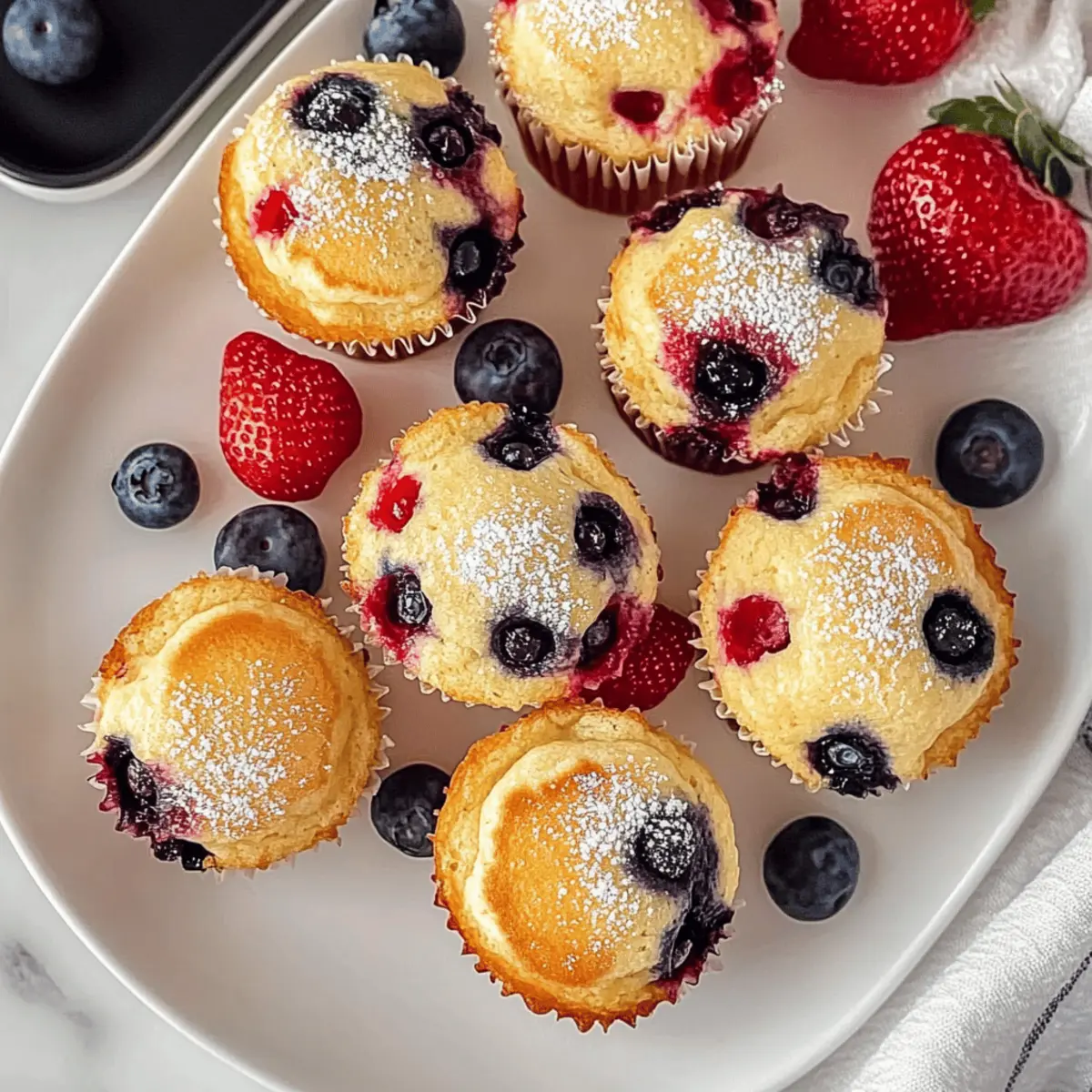 Mini Pancake Muffins are tiny, fluffy morsels that blend the taste of pancakes with the convenience of muffins, perfect for busy mornings.