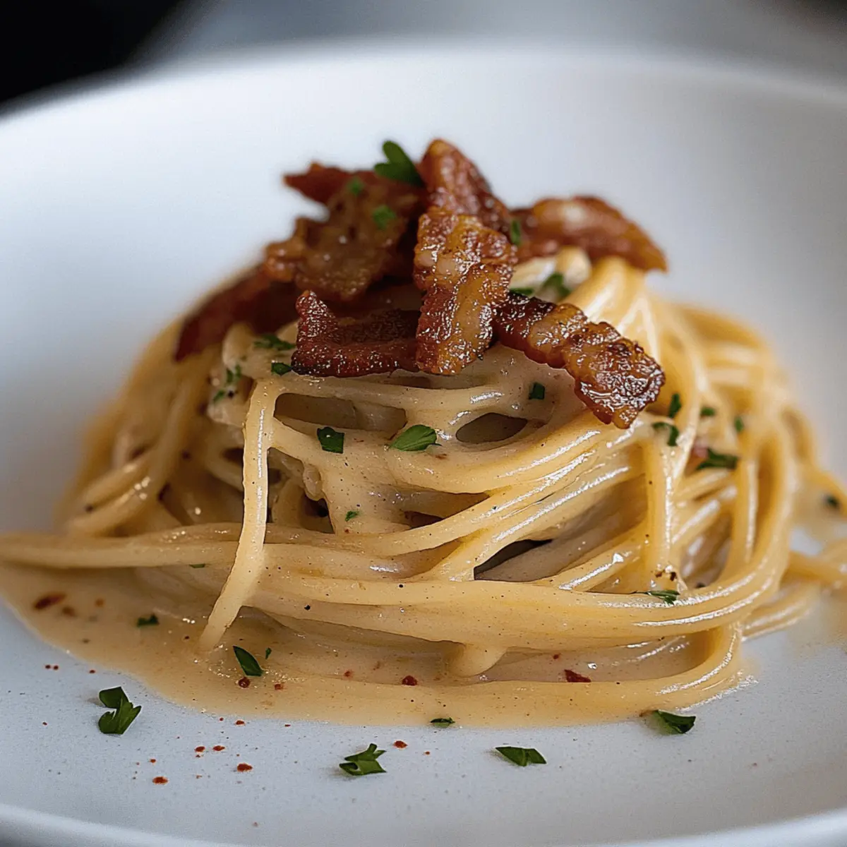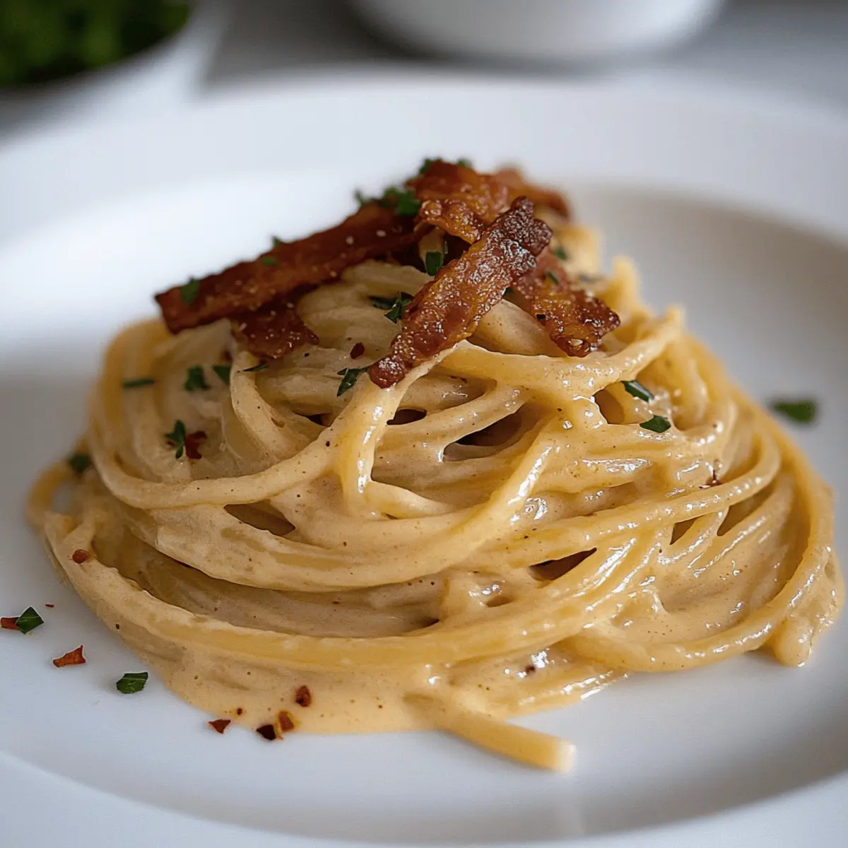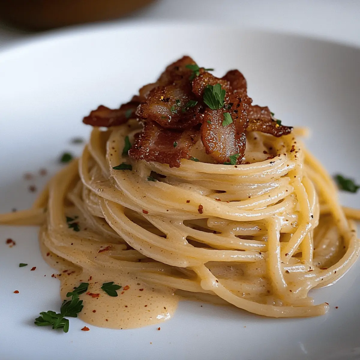 On a chilly evening, when the thought of takeout feels more like a chore than a treat, I found myself craving something cozy yet adventurous. That’s when my Miso Carbonara became the star of the night—a delightful fusion of creamy Italian comfort and the umami punch of miso. This dish marries the traditional velvety texture you love with an unexpected twist, making it perfect for impressing dinner guests or enjoying a casual night in. With its quick prep time, the Miso Carbonara is not only a culinary triumph but also a great way to elevate your weeknight meals with minimal fuss. Curious how a few simple ingredients can change your pasta game? Let’s dive into this savory delight! Why is Miso Carbonara so special? Bold fusion approach: This Miso Carbonara takes the classic Italian dish and infuses it with an exciting umami twist, making it stand out from traditional recipes. Quick and easy: Perfect for busy weeknights, you can whip up this gourmet meal in no time. Crowd-pleaser: Its unique flavor profile and creamy texture will impress your guests at any gathering. Versatile variations: Mix it up by using different types of miso or adding your favorite vegetables for a personalized touch—just like how I recommend trying other amazing dishes like Carbonara Comfort Minutes for endless inspiration. Enjoy this dish as a cozy comfort food that transforms your pasta experience into something extraordinary! Miso Carbonara Ingredients • Discover the essentials for this delightful dish! For the Pasta Spaghetti – The main structure of this dish that perfectly holds the creamy sauce. For the Sauce Miso Paste – Provides a rich umami flavor that elevates traditional carbonara. Eggs and Egg Yolks – Essential for creating the richness and creaminess, they give that authentic carbonara texture. Parmigiano Reggiano Cheese – Adds a sharp, nutty flavor and creaminess; Pecorino Romano can be used as a substitute. Hot Reserved Pasta Water – Crucial for emulsifying the sauce, helping achieve that luscious, creamy finish. For the Bacon Thick Bacon – Adds savory depth and a crispy texture; for a leaner option, try pancetta or turkey bacon. For the Seasoning Red Chili Flakes – Introduces a gentle heat; feel free to adjust to your spice preference. Freshly Ground Black Pepper – Enhances flavor and adds a slight spicy kick. For Garnishing Fresh Parsley – A pop of color and freshness; it complements the dish beautifully. With these ingredients, your Miso Carbonara will be full of umami and sure to impress! Enjoy the cooking adventure! Step‑by‑Step Instructions for Miso Carbonara Step 1: Cook the Pasta Bring a large pot of salted water to a rolling boil over high heat. Add spaghetti and cook according to package instructions until al dente, usually about 8-10 minutes. Stir occasionally to prevent sticking. Once cooked, reserve ½ cup of the hot pasta water before draining the spaghetti in a colander. Step 2: Cook the Bacon While the pasta cooks, heat a skillet over medium heat. Add thick bacon strips and cook until crispy, about 5-7 minutes, turning occasionally. Once done, remove excess fat, leaving about 1 tablespoon in the skillet. Stir in red chili flakes and turn off the heat, allowing the spices to infuse the residual warm fat. Step 3: Prepare the Sauce In a mixing bowl, whisk together miso paste, whole eggs, egg yolks, and freshly grated Parmigiano Reggiano cheese until smooth and well combined. Gradually mix in the reserved hot pasta water, about a tablespoon at a time, creating a creamy sauce. The heat from the pasta water will help to soften the miso and achieve the desired consistency. Step 4: Combine Pasta and Bacon Add the drained spaghetti to the skillet containing the crispy bacon and remnants of bacon fat. Toss the pasta gently to coat it evenly with the flavorful fat, ensuring every strand is enveloped in that savory goodness. The hot skillet will maintain warmth, preparing the pasta for the final saucing. Step 5: Add the Sauce Off the heat, pour the miso sauce over the pasta and quickly toss everything together, ensuring the spaghetti is liberally coated. The residual warmth will gently cook the eggs, creating a rich and creamy texture without scrambling. If the sauce is too thick, incorporate a little more reserved pasta water until desired creaminess is reached. Step 6: Serve and Garnish Plate the Miso Carbonara in warm bowls, ensuring each serving has a generous amount of sauce. Top with additional grated Parmigiano Reggiano and a sprinkle of freshly ground black pepper for an added kick. Finish with chopped fresh parsley for a vibrant pop of color, elevating this delicious fusion dish to a gourmet experience. Make Ahead Options These Miso Carbonara ingredients are perfect for meal prep enthusiasts! You can cook the spaghetti and bacon up to 24 hours in advance. Simply store the pasta in an airtight container and refrigerate, while keeping the bacon crispy by allowing it to cool and storing it separately. Prepare the creamy sauce by mixing miso, eggs, egg yolks, and Parmigiano, and refrigerate this mixture as well. When ready to serve, just reheat the pasta and bacon gently in a skillet, mix in the sauce off the heat, and toss well. This way, you’ll have a quick, gourmet meal with just a few finishing touches—making dinner time effortless yet delicious! Miso Carbonara Variations & Substitutions Feel free to embrace your culinary creativity and make this Miso Carbonara your own! Noodle Swap: Change spaghetti for udon or rice noodles for an exciting texture twist. Udon’s thick, chewy strands create a delightful contrast with the creamy sauce! Miso Variety: Opt for different miso types, like white or yellow, for a gentler, slightly sweet flavor. Each variety offers a unique depth that can really change the dish! Veggie Boost: Toss in sautéed vegetables such as asparagus, zucchini, or mushrooms for added nutrition and color. Their freshness beautifully complemen