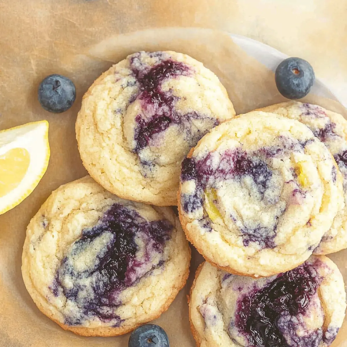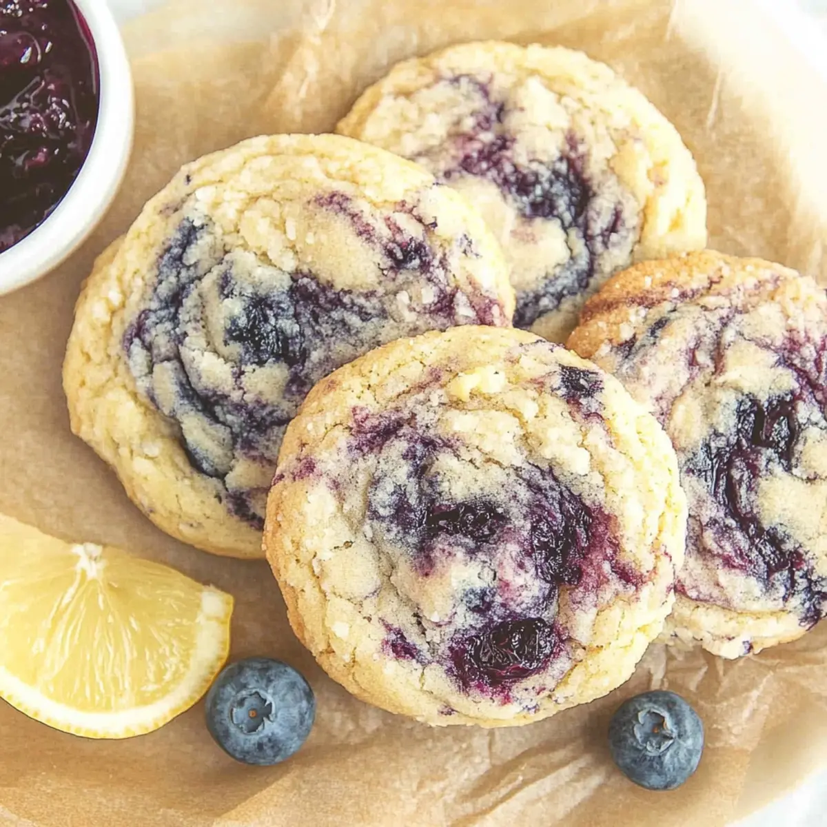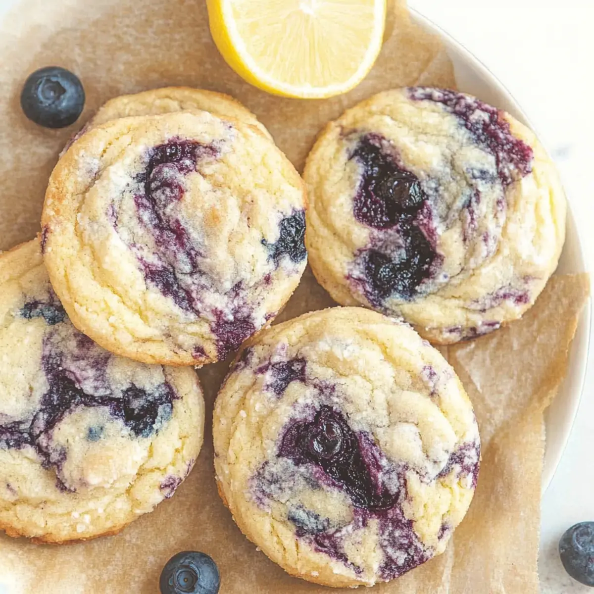 As I pulled the first batch of these Lemon Blueberry Cookies from the oven, the vibrant aroma of citrus danced through my kitchen, instantly brightening my day. These delightful cookies combine the tangy zest of lemons with the sweet burst of blueberries, making them a perfect treat for Mother’s Day or any springtime gathering. What makes them even better is that they’re incredibly easy to whip up—no chilling of the dough required, allowing you to enjoy these beauties in just 37 minutes! Soft, chewy, and full of sunshine, these cookies are not just a feast for the eyes, but they also make any moment feel special. Are you ready to bring a touch of spring into your baking? Why are these cookies a must-try? Quick Preparation: With just 37 minutes from start to finish, you’ll have delicious cookies ready in no time! Vibrant Flavor: The zesty lemon combined with sweet blueberry jam creates an irresistible flavor that sings of spring. No Chilling Required: Skip the waiting game; these cookies are ready to bake straight away! Perfect for Celebrations: They make a delightful treat for Mother’s Day, picnics, or any gathering, bringing smiles to your loved ones. Versatile Fun: Experiment with flavors by swapping lemon zest for orange or trying different jams for unique variations. Enjoy these delightful treats alongside a refreshing glass of homemade lemonade or add a touch of elegance by serving with Lemon Meringue Pie for an unforgettable dessert spread! Mother’s Day Lemon Blueberry Cookies Ingredients For the Cookie Dough Butter – Adds richness and moisture; use unsalted for better control of the salt level. Cold-Pressed Oil (e.g., sunflower, safflower) – Ensures cookies stay soft; avoid industrial seed oils for better health. Granulated Sugar – Provides sweetness and helps structure the cookies perfectly. Egg – Binds all ingredients while adding moisture; room temperature is best for blending. All-Purpose Flour – The essential base that gives the cookies their delightful texture. Baking Powder – Helps the cookies rise, giving them a soft and fluffy bite. Salt – Balances flavors beautifully, enhancing the overall taste. Lemon Zest – Infuses a fresh, bright citrus flavor that elevates the cookie experience. Blueberry Jam – Serves as the vibrant swirl and flavor highlight; feel free to reduce store-bought jam for better consistency. For Serving (Optional) Chilled Lemonade or Iced Tea – Perfect to accompany your cookies, enhancing the springtime vibe. Additional Lemon Zest – Sprinkle on top before serving for an extra citrus punch. Step‑by‑Step Instructions for Mother’s Day Lemon Blueberry Cookies Step 1: Preheat the Oven Begin by preheating your oven to 350°F (175°C) and lining a baking sheet with parchment paper. This is crucial for ensuring that your Mother’s Day Lemon Blueberry Cookies bake evenly and don’t stick. As the oven warms up, you’ll set the stage for delicious, soft cookies that are blissfully easy to make. Step 2: Cream the Wet Ingredients In a large mixing bowl, cream together ½ cup of room temperature unsalted butter, ⅓ cup of cold-pressed oil, and 1 cup of granulated sugar until the mixture is light and fluffy—approximately 2–3 minutes. Next, add in one egg and the zest of one lemon, mixing until fully combined. You’re creating a delightful, rich base that will carry the flavors of your cookies beautifully. Step 3: Mix the Dry Ingredients In another bowl, whisk together 2 cups of all-purpose flour, 1 teaspoon of baking powder, and a pinch of salt. This dry mixture is essential for creating the structure of your cookies. Gradually add the dry ingredients to the wet mixture, stirring gently until just combined. Avoid overmixing to ensure your cookies remain soft and tender. Step 4: Incorporate the Blueberry Jam Using a spatula, gently fold in ⅓ cup of blueberry jam into the cookie dough. Aim for a marbled effect rather than complete integration; this will elevate your Mother’s Day Lemon Blueberry Cookies with beautiful swirls of vibrant berry flavor. The mix of lemon and blueberry will surely evoke a burst of sunshine in every bite. Step 5: Scoop the Dough Grab a cookie scoop or a tablespoon and portion the dough onto the prepared baking sheet, spacing each scoop about 2 inches apart. This spacing will allow your cookies to expand while baking. Aim for a uniform size to ensure even baking for all your delightful cookies. Step 6: Bake the Cookies Carefully transfer the baking sheet to your preheated oven. Bake the cookies for about 10-12 minutes or until they are set but still soft at the center. Keep an eye on them; they should have a lightly golden edge and a paler center, promising a chewy, delicious texture that makes them so irresistible. Step 7: Cool the Cookies Once baked, remove the cookies from the oven and let them cool on the baking sheet for about 5 minutes. This resting time will help them firm up slightly. Then, transfer the cookies to a wire rack to cool completely. This final step allows the cookies to achieve their perfect texture while the delightful smell fills your kitchen. Expert Tips for Mother’s Day Lemon Blueberry Cookies Avoid Overmixing: Gentle mixing helps maintain a tender texture. Overmixing can lead to tough cookies, so mix until just combined. Fresh Ingredients: Using fresh blueberries or homemade blueberry jam enhances flavor and ensures better consistency in your cookies. Experiment with Zest: For a pronounced lemon flavor, feel free to add extra lemon zest. It brightens the taste and makes your cookies truly memorable! Uniform Sizes: Ensure all cookie dough portions are of equal size for even baking. This way, every cookie bakes perfectly for a delightful experience. Cooling Time Matters: Allow cookies to cool completely on a wire rack for the best structure and chewiness. This crucial step helps them set beautifully. Store Wisely: Keep your Mother’s Day Lemon Blueberry Cookies in an a