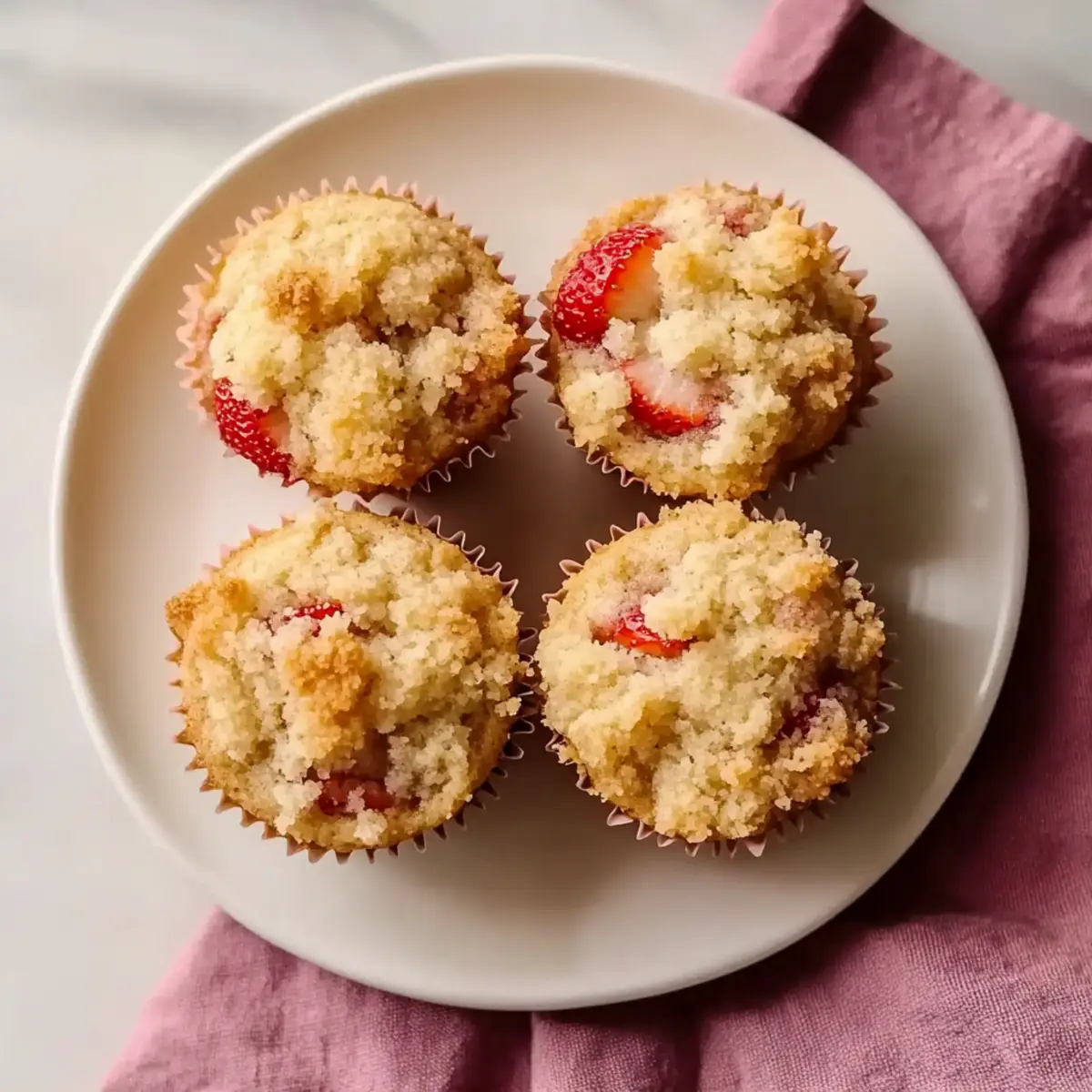 As the oven fills with the sweet, fragrant scent of baking strawberries, it’s like a warm hug for the soul. Today, I’m excited to share my recipe for Quick Strawberry Muffins with Crumble Topping, an ideal treat for Mother’s Day brunch or any leisurely morning. These delightful muffins come together in no time, offering a simple yet impressive way to elevate your breakfast game. The combination of juicy strawberries and a buttery, crispy crumble creates a satisfying contrast that everyone will adore. Plus, they are a guilt-free indulgence, allowing you to enjoy fresh fruit without the overload of sugar. Whether you’re treating yourself or surprising a loved one, don’t you just love the thought of starting the day with these scrumptious bites? Let’s dive into the recipe! Why choose these strawberry muffins? Quick, Easy Preparation: These muffins come together in just a few simple steps, making them a breeze for busy mornings or unexpected guests. Bursting with Freshness: With ripe strawberries as the star ingredient, each bite is juicy and refreshing, perfect for celebrating special occasions like Mother’s Day. Delicious Texture: The contrast between soft, fluffy muffin and a crispy crumble topping creates a delightful eating experience that will impress everyone at your brunch table. Versatile Options: Want more variety? You can easily swap in different fruits or add ingredients like chocolate chips or nuts to customize these muffins to your liking. Guilt-Free Indulgence: Enjoy the flavors without the excessive sugar, allowing you to savor this treat while still feeling good about your choices. You might also love serving them alongside Mofongo Garlic Lime for a delightful brunch spread. Mother’s Day Strawberry Muffin Ingredients • Create a delightful treat for Mother’s Day with these fresh and flavorful muffins! For the Batter Butter – Provides richness and moisture; use unsalted for better control over flavor. Sugar – Sweetens the muffins; feel free to swap for coconut sugar for a healthier twist. Eggs – Acts as a binder and adds leavening; ensure they are at room temperature for optimal mixing. Vanilla – Enhances flavor depth; almond extract can be an exciting alternative if you’re feeling adventurous. Baking Powder – Essential for leavening; don’t substitute with baking soda unless you adjust the acid content. Salt – Balances the sweetness and heightens flavors; it’s a must-have that you shouldn’t skip. Flour – Provides structure; opt for all-purpose or a gluten-free blend for those with dietary needs. Milk – Adds moisture; non-dairy alternatives like almond or oat milk work well too. Strawberries – The star of the show; ensure they’re diced small for even distribution of that vibrant flavor. For the Crumble Topping Melted Butter – Gives the crumble its rich texture; keep it warm to achieve a nice crumbly consistency. Brown Sugar – Adds sweetness and depth; light or dark brown sugar can be used based on preference. Cinnamon – Infuses warm, inviting spices; it’s a classic that complements strawberries beautifully. Nutmeg – Offers a hint of earthy spice; just a pinch can elevate the crumble’s flavor profile. Flour – Binds the crumble together; all-purpose works wonderfully here for that perfect crunch. Embrace the joy of baking these Mother’s Day strawberry muffins with crumble topping and spoil yourself or someone special with a homemade bliss! Step‑by‑Step Instructions for Mother’s Day Strawberry Muffins with Crumble Topping Step 1: Preheat the Oven Begin by preheating your oven to 375°F (190°C). While it’s heating, grease a 12-cup muffin tin with butter or non-stick spray, ensuring easy release later. This will get your kitchen smelling delightful and prepare it for the warmth of those scrumptious strawberry muffins. Step 2: Prepare the Crumble Topping In a mixing bowl, combine melted butter, brown sugar, granulated sugar, cinnamon, nutmeg, and flour. Use a fork or your fingers to mix these ingredients until they reach a crumbly texture. Set this tasty crumble topping aside as you move on to the muffin batter to let those flavors meld beautifully. Step 3: Cream Butter and Sugar In a separate large bowl, cream together your softened butter and granulated sugar using an electric mixer. Beat until the mixture is light and fluffy, which should take about 1 minute. This step is crucial for ensuring your strawberry muffins have a tender, delightful texture once baked. Step 4: Incorporate Eggs and Vanilla Now, add the room-temperature eggs and vanilla extract to your creamed mixture. Beat until fully incorporated and smooth, ensuring the mixture is airy and well blended. This will add depth to the flavor of your Mother’s Day strawberry muffins, enhancing their deliciousness. Step 5: Combine the Dry Ingredients In another bowl, whisk together the flour, baking powder, and salt. Gradually add half of this dry mixture to the wet ingredients, mixing gently until just combined. This layering of ingredients helps maintain the muffins’ light and fluffy texture, key for these delightful treats. Step 6: Add Milk Pour in the milk and mix again, being careful not to overmix. Once combined, add the remaining dry ingredients and fold gently until no dry flour remains. This method keeps your strawberry muffin batter airy, setting up perfectly for the addition of the star ingredient. Step 7: Fold in Strawberries Gently fold the chopped strawberries into the muffin batter using a spatula. Make sure they are evenly distributed for that burst of fruity goodness in every bite. This is the moment where your muffins transform into the delightful Mother’s Day strawberry muffins everyone will adore! Step 8: Fill Muffin Cups Using a spoon or a muffin scoop, divide the batter among the prepared muffin cups, filling each about three-quarters full. This allows room for rising while ensuring they bake evenly. You’ll be greeted with a wo
