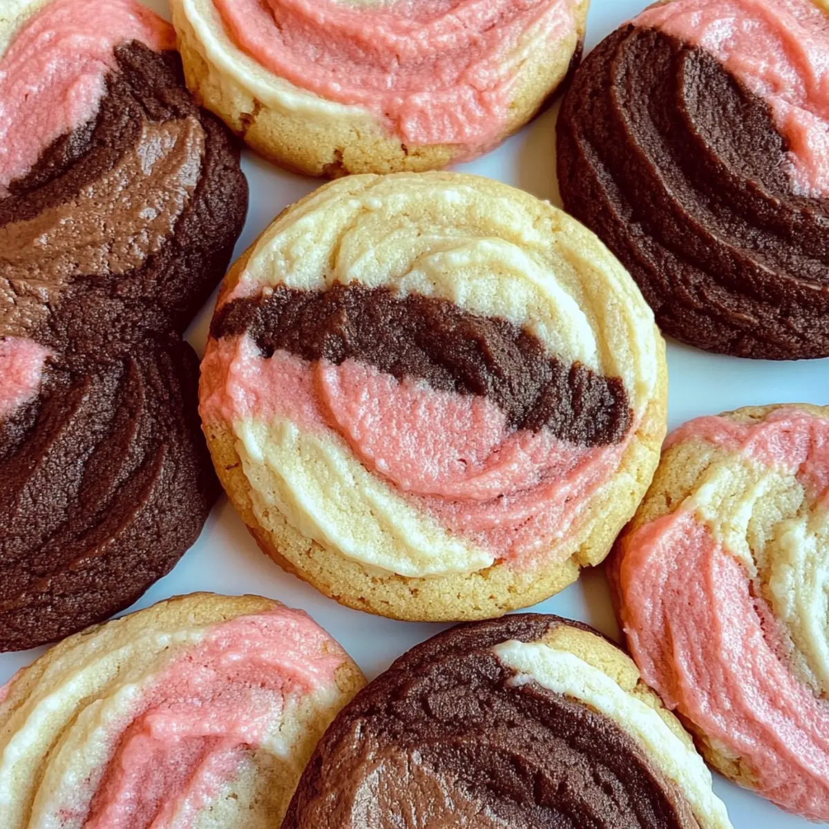 As I stood in my kitchen, a playful dance of chocolate, vanilla, and strawberry aromas filled the air, instantly whisking me back to summer picnics and ice cream trucks. This mouthwatering combination comes to life in my Perfectly Round Neapolitan Cookies! With their delightful texture that strikes a perfect balance between crispiness and chewiness, these cookies are more than just a treat—they’re an easy, crowd-pleasing dessert perfect for any occasion. The sweet-tart bursts of freeze-dried strawberries playfully contrast with rich chocolate and creamy vanilla, making every bite a nostalgic delight. Plus, these cookies are adaptable; with just a few twists, you can experiment with different flavors to suit your taste. Now, aren’t you curious about how to whip up this charming cookie sensation? Let’s dive in! Why are Neapolitan Cookies a must-try? Delectable flavors: Indulge in the classic combination of rich chocolate, creamy vanilla, and sweet-tart strawberry, all in one bite. Easy to make: With straightforward steps and simple ingredients, even beginner bakers can create these delightful cookies. Visually stunning: Their vibrant colors and perfect rounds make these cookies a showstopper at any gathering, reminiscent of your favorite ice cream treats. Versatile options: Try swapping in Gluten Free Cookies for a lighter take or experiment with various freeze-dried fruits for new flavor profiles. Perfect for sharing: Whether for cookie exchanges or family gatherings, they are sure to please everyone’s palate! Neapolitan Cookies Ingredients • Here’s what you’ll need to create these delicious treats! For the Cookie Dough All-purpose flour – Provides structure and stability; can substitute with gluten-free flour for a GF version. Brown sugar – Adds moisture and a hint of caramel flavor; substitute with coconut sugar for a less processed sweetener. Granulated sugar – Enhances sweetness and helps with dough expansion; no direct substitution recommended for optimal texture. Butter – Adds richness and helps in achieving the right texture; use vegan butter for a dairy-free option. Vanilla extract – Adds depth of flavor; substitute with almond extract for a different aromatic profile. Egg – Binds the ingredients together and helps with leavening; for an egg-free option, consider using flaxseed meal (1 tbsp ground flax mixed with 2.5 tbsp water = 1 egg). For the Chocolate Layer Dutch Process Cocoa Powder – Provides a rich chocolate flavor; can use Black Cocoa for a deeper, more intense chocolate taste. For the Strawberry Layer Freeze-dried strawberries – Imparts natural strawberry flavor and color; fresh strawberries will not work; do not substitute without adjusting moisture content. These ingredients combine to make mouthwatering Neapolitan Cookies that everyone will love! Step‑by‑Step Instructions for Neapolitan Cookies Step 1: Prepare the Dough Begin by creaming together 1 cup of softened butter, ½ cup of brown sugar, and ½ cup of granulated sugar in a large mixing bowl. Use an electric mixer on medium speed until the mixture is light and fluffy, about 3-5 minutes. Then, beat in 1 egg and 1 teaspoon of vanilla extract until fully incorporated, creating a smooth and creamy texture. Step 2: Combine Dry Ingredients In a separate bowl, whisk together 2 ½ cups of all-purpose flour, ¾ cup of Dutch Process cocoa powder, and ½ teaspoon of salt to ensure even distribution. Gradually add the dry mixture to the wet ingredients while mixing on low speed until just combined. This will create a rich, thick dough which is essential for making delightful Neapolitan Cookies. Step 3: Add Strawberry Flavor Carefully fold in ½ cup of freeze-dried strawberries, ensuring they are evenly distributed throughout the cookie dough. Mixing gently will help preserve the delicate texture of the strawberries while incorporating their vibrant flavor. The dough should now have beautiful specks of pink mixed with chocolate and vanilla, setting the stage for delicious Neapolitan Cookies. Step 4: Shape Cookies Using a cookie scoop, portion out the dough and begin shaping the cookies. For an inviting layered look, press together alternating sections of chocolate, vanilla, and strawberry dough into round mounds. Each cookie should be about 1.5 inches in diameter, showcasing the bright colors and distinct flavors typical of Neapolitan Cookies. Step 5: Chill Dough Place the shaped cookie dough on a baking sheet lined with parchment paper, ensuring they are spaced apart. Refrigerate for 30 minutes to firm up the dough; this will help cookies maintain their perfectly round shape during baking. The chilling process is essential for achieving that ideal texture as they bake. Step 6: Bake Preheat your oven to 350°F (175°C) while the dough chills. Once ready, bake the cookies on the prepared baking sheets for 12-15 minutes, or until the edges are set but the centers remain slightly soft. You’ll know they’re done when they start to puff up and just lose their shine—this is the perfect moment to pull them out! Step 7: Cool Allow the freshly baked Neapolitan Cookies to cool on the baking sheet for 5 minutes. This resting period will help them firm up a bit more. Carefully transfer the cookies to wire racks to cool completely, allowing them to achieve that delightful chewy texture while the flavors meld beautifully. What to Serve with Perfectly Round Neapolitan Cookies? Nothing pairs better with these delightful treats than a thoughtfully crafted meal that complements their wonderful flavors. Creamy Mashed Potatoes: The buttery, smooth texture of mashed potatoes adds a savory contrast to the sweet cookies, making the flavors balance beautifully. Fresh Fruit Salad: A vibrant mix of berries and citrus fruits enhances the fruity notes of the Neapolitan Cookies, refreshing your palate with every bite. Rich Hot Chocolate: Indulge in a warm cup of hot chocolate to amplify the chocolate flavor of the