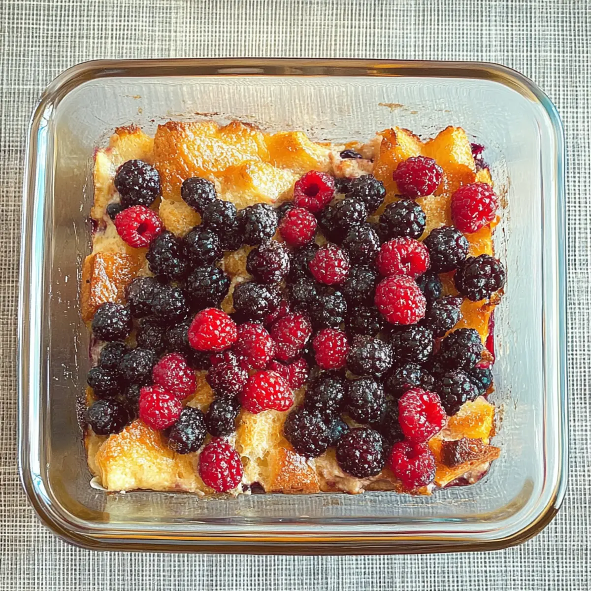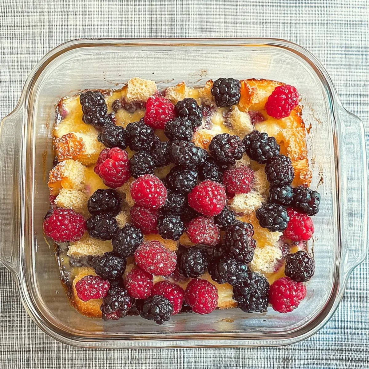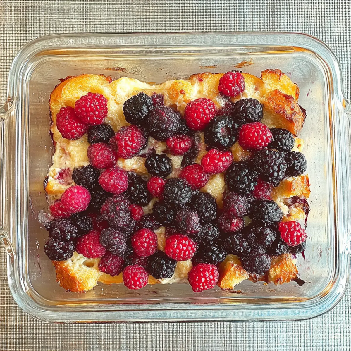 Berry Prep: If using frozen berries, fully thaw and pat them dry to minimize excess moisture during baking, preventing a soggy casserole.