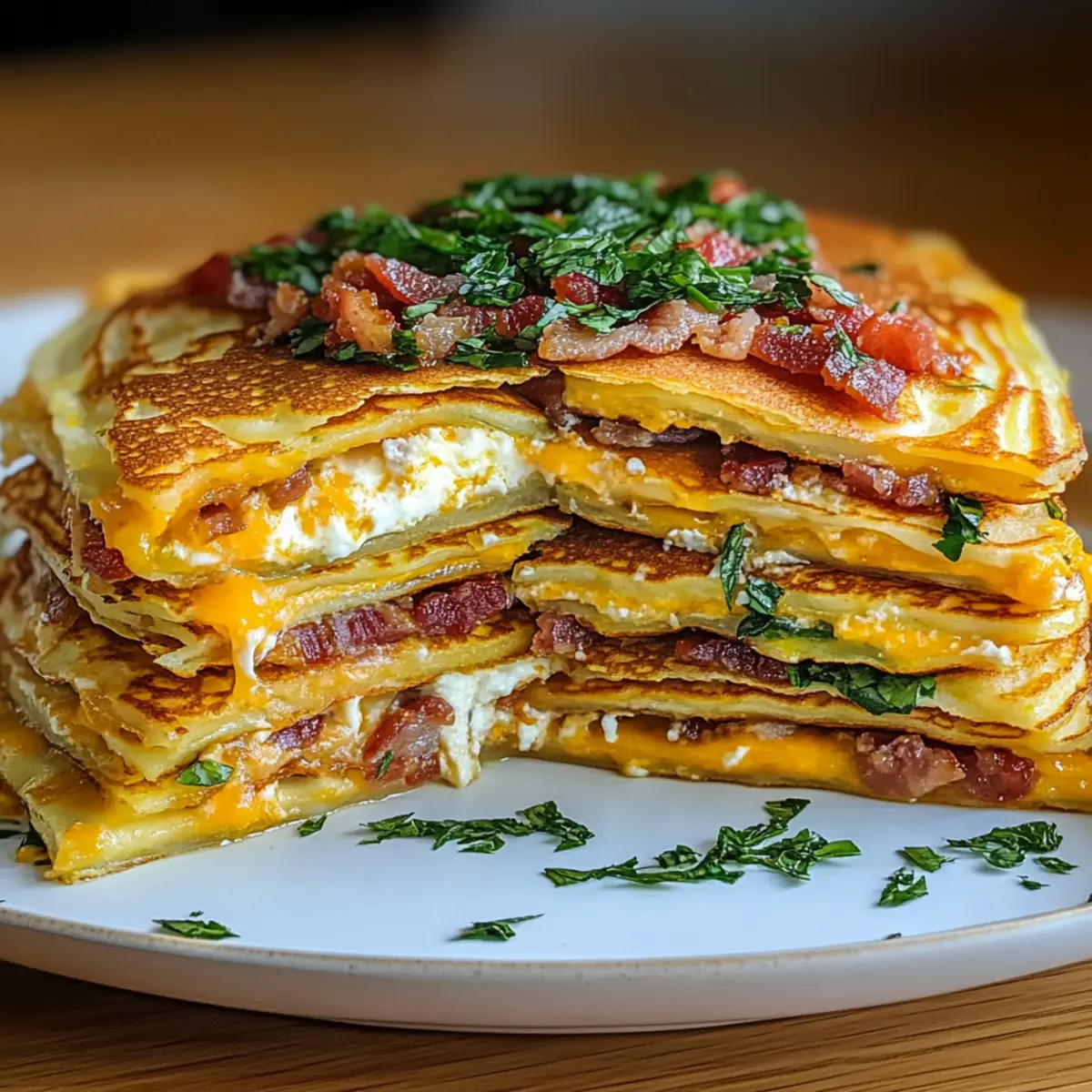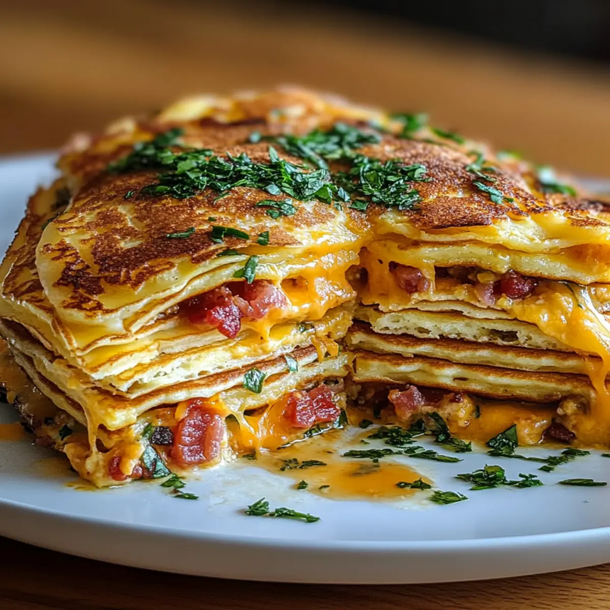 Just picture a lazy Sunday morning, the aroma of freshly cooked pancakes wafting through the kitchen, only to discover that these aren’t your average breakfast fare. We’re taking comfort food to a whole new level with my Savory Pancake Lasagna. This recipe is not just visually stunning; it’s also so easy to pull together, making it a perfect choice for brunch or a quick weeknight dinner. Layers of light, fluffy pancakes intertwine with savory fillings like cheese, bacon, and sautéed veggies, creating a delicious harmony of flavors that your family and friends won’t be able to resist. Plus, it’s versatile enough to switch up the fillings based on what you have on hand. Tempted to dive into this innovative dish? Let’s get cooking! Why Is Pancake Lasagna a Must-Try? Unique Twist: Discover how pancakes can transform into a savory dish that’s both hearty and light. Versatile Fillings: Mix and match your favorite ingredients; from vegetables to cheeses, you can customize this recipe to your liking! Effortless Preparation: With simple steps involved, you can whip this up without the fuss, perfect for busy mornings. Crowd Pleaser: Impress your guests with a dish that looks as beautiful as it tastes—great for brunches or family meals. Elevate your weekend with this delicious Pancake Lasagna and consider pairing it with a refreshing side salad for a delightful brunch experience. If you’re excited to try more creative variations, like this Lasagna Cozy Nights or a seafood option, I’m sure they’ll be just as popular! Pancake Lasagna Ingredients Get ready for a flavor explosion! For the Pancake Base • Pancake Mix – This provides the essential structure and texture; opt for whole wheat or gluten-free for a healthier option. • Eggs – These help bind the ingredients together while adding protein to the dish. For the Filling • Cheddar Cheese – Melts beautifully and adds a rich flavor; you can swap it with Monterey Jack or mozzarella for a new twist. • Bacon – Adds a savory crunch; try turkey bacon or omit altogether for a vegetarian version! • Onion – Sweetens when sautéed, bringing depth to your filling. • Garlic – A flavor enhancer that ties all the savory notes together. • Diced Tomatoes – Infuses moisture and tang; fresh tomatoes work great if canned isn’t handy. • Dried Oregano – Infuses an herby flavor; feel free to experiment with other dried herbs you enjoy! • Salt and Pepper – Essential for seasoning; adjust to your personal taste preference. • Butter – Works for greasing the pan and adds a rich flavor when melted on top. Optional Baking Ingredients • Melted Butter – Pour over the top for a gooey finish just before baking. Step‑by‑Step Instructions for Pancake Lasagna Step 1: Prepare the Pancakes Begin by mixing the pancake batter according to the package directions, adding in the eggs for extra fluffiness. Heat a non-stick skillet over medium heat and lightly grease it with butter. Pour in the batter in small circles, cooking each pancake for about 2-3 minutes until golden brown and bubbles form on the surface, then flip and cook for another 1-2 minutes. Set the pancakes aside to cool slightly. Step 2: Sauté the Veggies In the same skillet, melt 2 tablespoons of butter over medium heat and add diced onions and minced garlic. Sauté for about 5 minutes until the onions are translucent and fragrant. Then, stir in the diced tomatoes and dried oregano, allowing the mixture to simmer for 5-7 minutes, thickening slightly. If the mixture seems too thick, thin it with a splash of water, and season with salt and pepper to taste. Step 3: Assemble the Lasagna Grease a 9×13 inch baking dish to prevent sticking. Start layering your pancake lasagna by placing a pancake at the bottom, followed by a generous sprinkle of cheddar cheese, then half of the tomato mixture, and crumbled bacon. Repeat this process for another layer, finishing with a final pancake layer topped with the remaining cheese. Step 4: Bake (Optional) For an indulgent, gooey finish, preheat your oven to 350°F (175°C). Drizzle melted butter over the top layer of cheese. Bake your pancake lasagna for 15-20 minutes, or until the cheese is bubbling and the edges are slightly golden brown. If you prefer to skip baking, you can serve it right after assembly while everything is still warm. Step 5: Serve and Enjoy Once out of the oven, let your savory pancake lasagna cool for a few minutes before slicing into portions. Serve warm, with a side salad or fresh fruit to balance the rich flavors. The combination of fluffy pancakes, melted cheese, and savory fillings makes this dish a delightful centerpiece for brunch or dinner! Make Ahead Options These Pancake Lasagna layers are a dream for busy home cooks looking to save time during hectic weekdays! You can prep the pancakes and sauté the vegetable mixture up to 24 hours in advance. Simply store the pancakes in an airtight container and refrigerate the tomato filling until you’re ready to assemble. When you’re ready to serve, layer the pancakes, cheese, and filling in your baking dish. Bake at 350°F (175°C) for 15-20 minutes until the cheese is bubbly and golden. This way, you’ll enjoy a delicious homemade Pancake Lasagna with minimal effort, just as delightful as when freshly prepared! What to Serve with Pancake Lasagna Embrace a delightful brunch experience with flavors and textures that complement every layer of this savory masterpiece! Crisp Green Salad: A fresh salad with mixed greens and vinaigrette brightens the dish, adding a lovely crunch and balancing richness. Steamed Asparagus: Tender asparagus brings a delicate, earthy flavor that pairs beautifully with the creaminess of the cheese. Fruit Salad: A vibrant medley of seasonal fruits offers a refreshing sweetness, perfectly offsetting the savory layers of pancake lasagna. Syrup Drizzle: A light drizzle of maple syrup adds an unexpected sweet contrast, enhanci