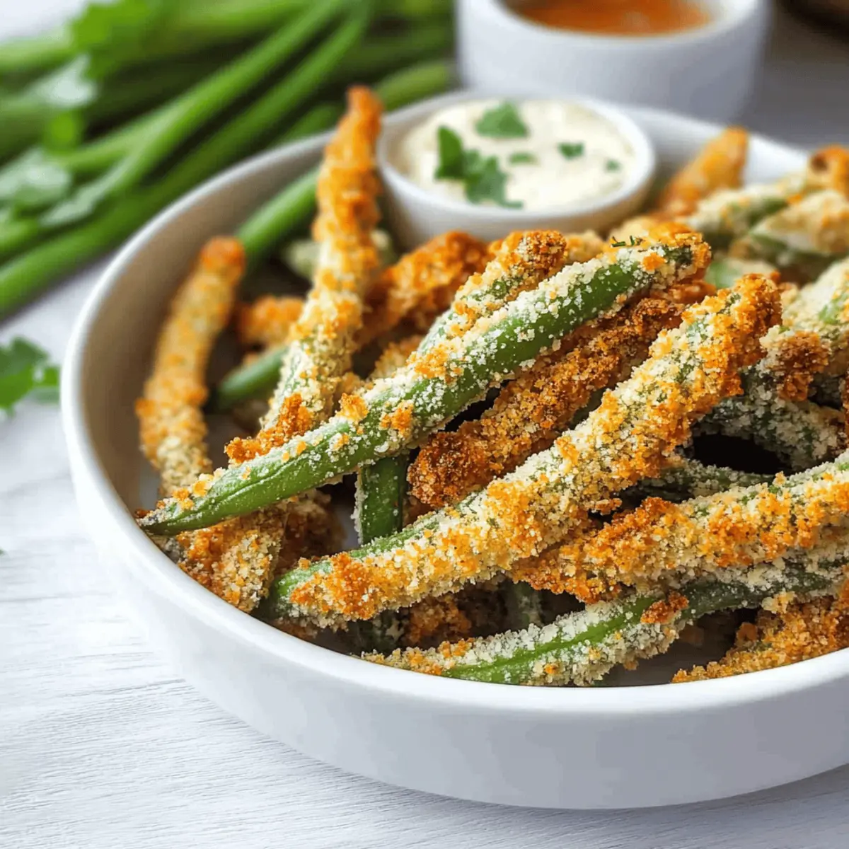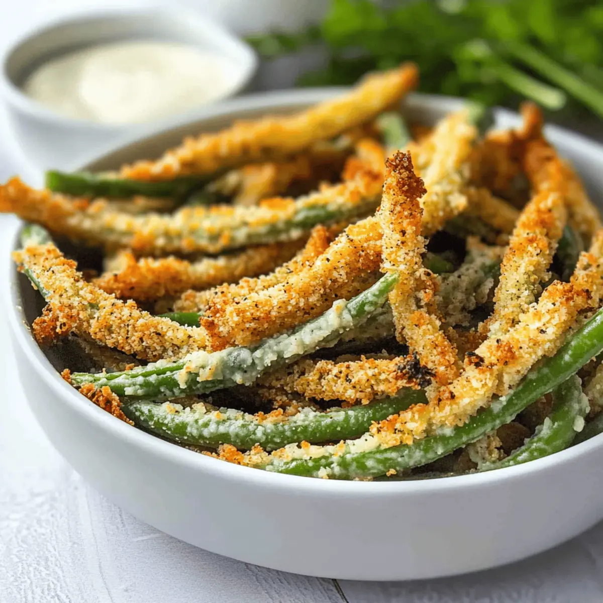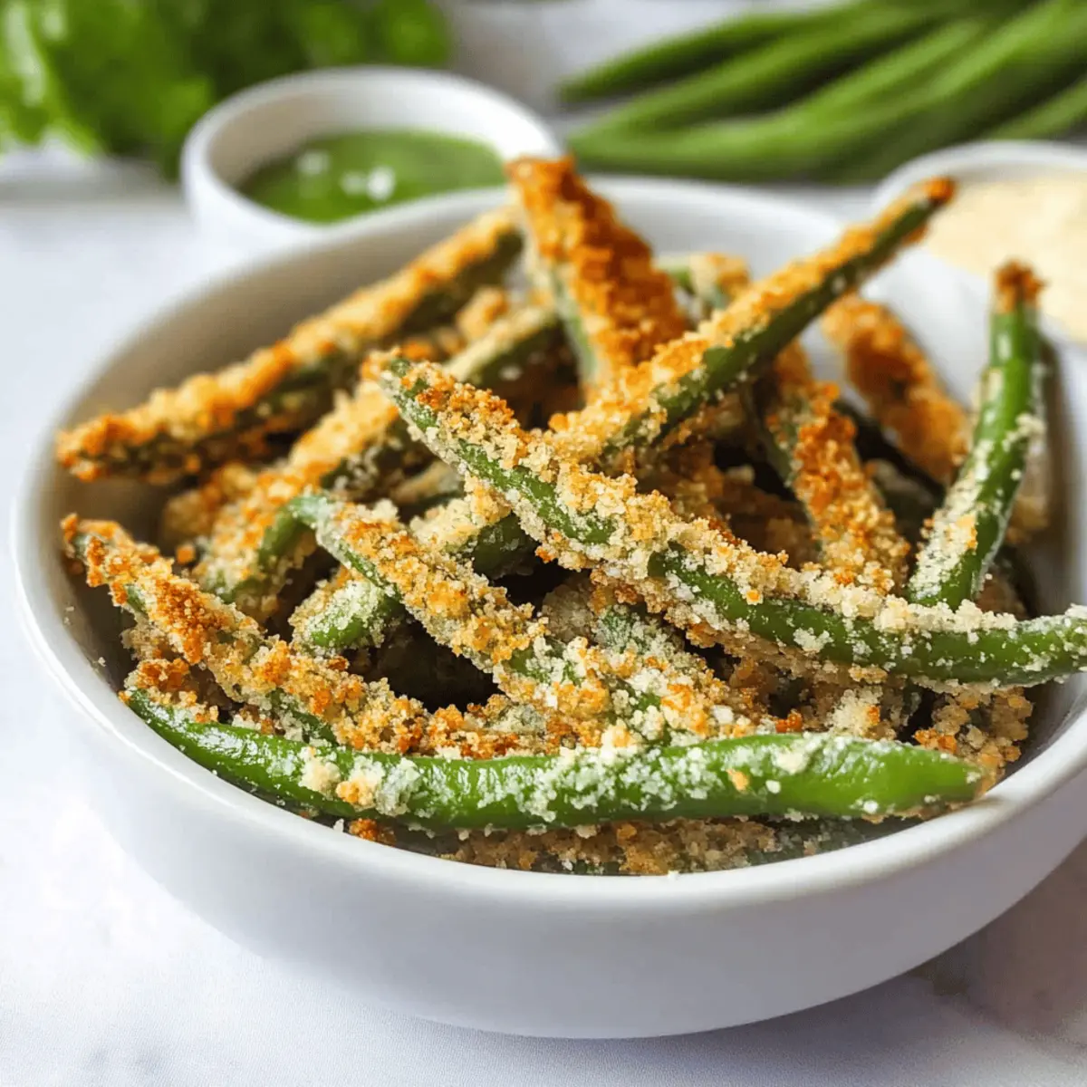 The rich, cheesy aroma wafting from the kitchen can transform an ordinary day into a delightful culinary adventure. Today, I’m excited to share my Crispy Parmesan Air Fryer Green Beans – a healthy snack that can easily replace your go-to fries! What makes this dish a cult favorite is its quick prep time and the joy of munching on something so utterly satisfying without the guilt of excess oil. Whether you’re looking for a vibrant side dish or a fun appetizer for gatherings, these green beans deliver both crunch and flavor in just under 30 minutes. Are you ready to discover the secret to making your snack time irresistibly delicious and healthy? Let’s dive in! Why Are These Green Beans Irresistible? Crispiness in every bite ensures that these green beans satisfy even the most intense fry cravings without the added oil. Quick prep means you can whip this dish up in under 30 minutes, making it ideal for busy weeknights. Versatile as both a snack and a side, they pair perfectly with dishes like grilled chicken or can stand alone. Plus, with easy options for dietary preferences, like using nutritional yeast for a vegan twist, everyone can join in the fun! For more healthful munchies, check out my Mint Cold Brew recipe, perfect for a refreshing sip alongside these crunchy treats. Parmesan Air Fryer Green Beans Ingredients For the Coating Flour – Provides a light coating; can substitute with gluten-free flour for a gluten-free version. Eggs – Acts as a binding agent; use flaxseed meal for a vegan option. Grated Parmesan – Adds savory flavor and crispiness; substitute with nutritional yeast for a vegan option. Panko Bread Crumbs – Creates crunch and texture; regular breadcrumbs can be used if panko is unavailable. For the Green Beans Green and Yellow Beans – The main ingredient providing nutrition and volume; fresh is best, but frozen can be used with cooking adjustments. Salt and Pepper – Enhances flavor; adjust to personal taste. These delightful** Parmesan Air Fryer Green Beans** come together quickly for snacking bliss! Step‑by‑Step Instructions for Crispy Parmesan Air Fryer Green Beans Step 1: Prepare the Green Beans Start by washing the green and yellow beans thoroughly under cool water, then lightly pat them dry with a kitchen towel. This helps the coating adhere better. Next, set up your dredging station by placing three shallow bowls in a row: one filled with flour, the second with beaten eggs, and the third with a mix of panko bread crumbs and grated Parmesan. Step 2: Coat the Green Beans Begin the coating process by taking a green bean and dipping it first into the flour. Shake off any excess before moving it to the egg wash. Coat the bean thoroughly in the egg, allowing any extra to drip off, then roll it in the panko-Parmesan mixture. Ensure each green bean is evenly coated for that irresistible crunch that makes these Parmesan Air Fryer Green Beans so delightful. Step 3: Arrange for Air Frying Place the coated green beans in a single layer in the air fryer basket, making sure they do not overlap for even cooking. This step is crucial for achieving maximum crispiness. Preheat your air fryer to 380°F and arrange the beans inside. Cook them for 10 minutes, shaking the basket halfway through to promote uniform crispiness and ensure every bean gets that perfect golden brown exterior. Step 4: Check for Doneness After the cooking time is up, carefully remove the basket and check the green beans. They should be crispy and golden brown. If you prefer them even crispier, feel free to toss them back in for an additional 1–2 minutes. Keep a close eye during this time to prevent burning, as air fryers can vary in temperature accuracy. Step 5: Serve Immediately Once your crispy Parmesan Air Fryer Green Beans are done, promptly remove them from the air fryer and serve while hot. The best texture is achieved when enjoyed fresh out of the fryer, alongside your favorite dipping sauces like sriracha mayo or ranch dressing. These beans make for a fabulous snack or side dish, bringing joy to every bite without the guilt! How to Store and Freeze Parmesan Air Fryer Green Beans Fridge: Store leftovers in an airtight container in the fridge for up to 4 days. They are best enjoyed fresh to maintain their crispy texture. Freezer: For longer storage, freeze uncooked coated green beans on a baking sheet until firm, then transfer to a freezer-safe bag. They can be stored for up to 2 months. Reheating: To restore the crunchy exterior after freezing or refrigerating, reheat in the air fryer at 350°F for about 3 minutes, checking for crispiness. Room Temperature: If serving at room temperature, keep them covered for no more than 2 hours to avoid sogginess, ensuring your Parmesan Air Fryer Green Beans stay delicious! Parmesan Air Fryer Green Beans Variations Feel free to get creative and customize these delightful green beans to match your mood and dietary preferences! Dairy-Free: Substitute grated Parmesan with nutritional yeast for a vegan-friendly version without sacrificing flavor. Gluten-Free: Use a gluten-free flour blend and substitute panko with crushed gluten-free crackers for that satisfying crunch. Spice it Up: Add a pinch of cayenne pepper or chili powder to the coating for a delightful kick that wakes up your taste buds. Herb-Infused: Mix in dried herbs like oregano or thyme with the panko for an aromatic twist that elevates every bite. Zesty Lemon: Squeeze fresh lemon juice over the cooked beans before serving to brighten the flavors and add a refreshing zing. Veggie Variation: Try this coating on zucchini, asparagus, or even cauliflower for a colorful platter that’s perfect for sharing. Extra Crunch: Toss in some crushed almonds or walnuts to the panko mixture for added texture and a nutty flavor that complements the beans beautifully. Cheesy Zing: For a deeper cheese flavor, mix in some grated Pecorino Romano with the Parmesan for an exciting flavor boost. Remember, coo