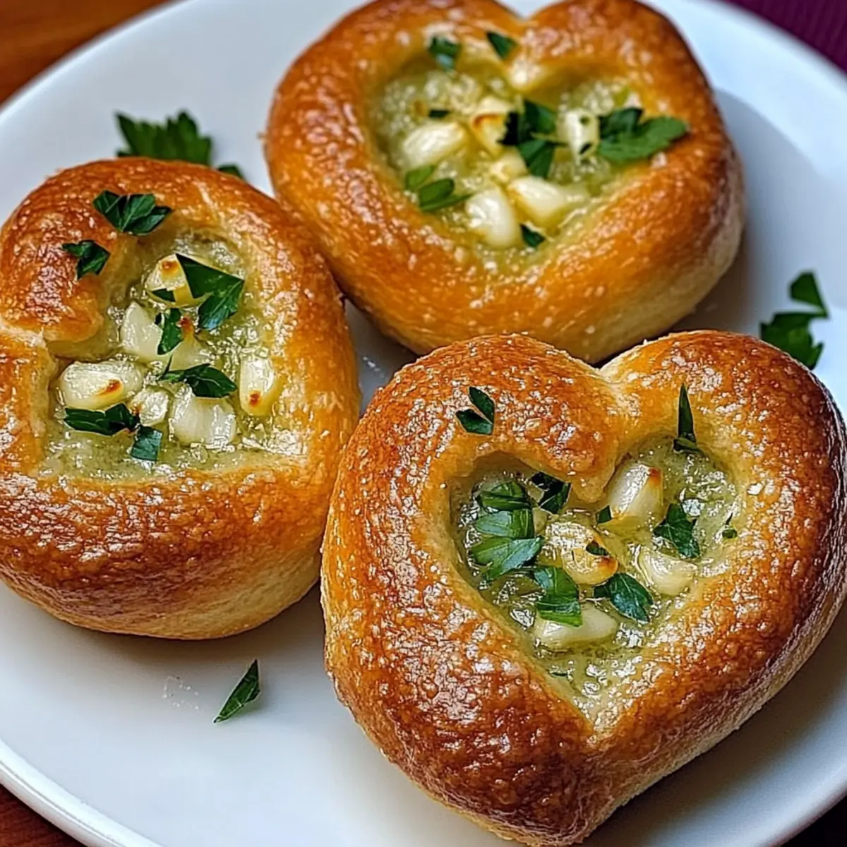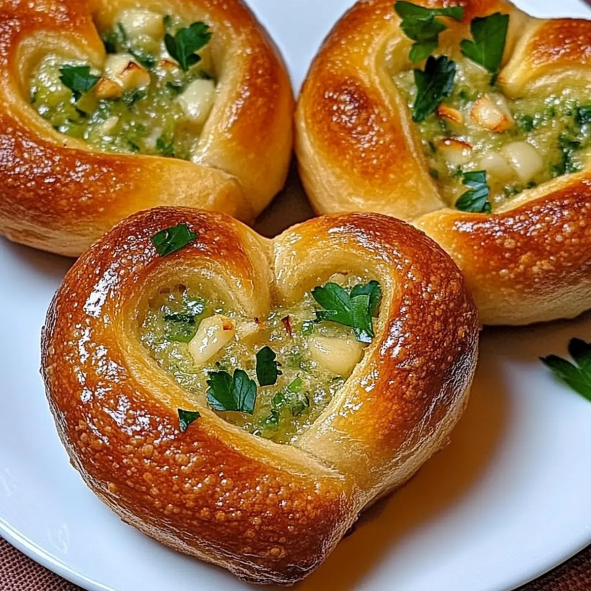As I stood in the kitchen, the potent aroma of garlic sizzling in olive oil enveloped me, a gentle reminder that home-cooked magic often begins with simple ingredients. The recipe for these Easy Parmesan Garlic Knot Hearts has quickly become one of my favorites, charming everyone around the table with their delightful presentation and flavors. These adorable heart-shaped knots are not only perfect for setting a romantic mood but also incredibly easy to whip up in no time. With a crispy exterior and a soft, buttery center, they’re a crowd-pleaser for any occasion. Whether you’re planning a cozy date night or simply want to impress friends at dinner, these knots elevate any meal while keeping preparations quick and straightforward. So, are you ready to bring a sprinkle of love into your kitchen? Why Are These Garlic Knots Special? Delightful shape: Transforming ordinary garlic knots into charming heart shapes makes them a visually appealing addition to your table. Quick preparation: You can whip these up in just 30 minutes, making them a stress-free option for spontaneous dinner plans. Aromatic goodness: The irresistible combination of garlic and Parmesan fills your kitchen with a warmth that’ll make anyone’s mouth water. Versatile pairing: Perfect as a side for pasta or served with marinara sauce, these knots elevate any dish easily. Make sure to also try them with Garlic Butter Steak for a complete meal! Impressive for guests: Your friends will be amazed by both the taste and the adorable presentation, ensuring you’ll be the host of the year! Parmesan Garlic Knot Hearts Ingredients For the Knots All-purpose flour – A key ingredient that gives the knots their structure; use whole wheat flour for a healthier option. Active dry yeast – Essential for the dough to rise; ensure it’s fresh for the best results. Warm water – The warmth activates the yeast; check temperature to avoid killing the yeast. Olive oil – Provides moisture and flavor; substitute with melted butter for a richer taste. Salt – Enhances the overall flavor of the knots; can be reduced in low-sodium diets. Garlic cloves – Fresh garlic infuses the knots with aromatic goodness; consider using garlic powder in a pinch. For the Topping Olive oil – Used for brushing the knots before baking, enhancing flavor and crispness. Italian parsley – Adds fresh flavor and a pop of color; substitute with basil for a different twist. Parmesan cheese – Offers a savory, nutty flavor that enhances the knots; use Pecorino Romano for a sharper taste or a dairy-free cheese alternative. These Parmesan Garlic Knot Hearts will surely elevate your romantic dinner with their delightful flavor and heartwarming shape! Step‑by‑Step Instructions for Parmesan Garlic Knot Hearts Step 1: Preheat the Oven Begin by preheating your oven to 400°F (200°C). This step is crucial as it ensures that the knots bake evenly and develop a beautiful golden brown color. While the oven warms up, gather your baking sheet and line it with parchment paper to prevent sticking. Step 2: Prepare the Dough Next, take your prepared dough and cut it into portions about 1-2 inches wide. Each piece will become a delicious heart knot. Work on a lightly floured surface, which will help you manage the dough more easily as you get ready to shape the Parmesan Garlic Knot Hearts. Step 3: Shape the Knots Now it’s time to shape your dough! Roll the two ends of each dough piece inward toward the center to create a twisted heart shape. This motion not only gives the knots their charming appearance but also helps them hold their shape during baking. Make sure each heart is snug and tightly formed for the best results. Step 4: Brush and Season Prepare to infuse the knots with flavor by brushing them generously with olive oil. This will not only enhance the taste but also promote browning. Then, sprinkle freshly minced garlic over the knots, ensuring an even distribution to embrace the irresistible aroma as they bake. Step 5: Bake the Knots Place the shaped knots on your prepared baking sheet, making sure they have enough space to expand. Bake in the preheated oven for about 15 minutes or until the knots turn golden brown. Keep an eye on them to ensure they reach that perfect crispy exterior, which indicates they’re done. Step 6: Add Finishing Touches Once the Parmesan Garlic Knot Hearts are out of the oven, immediately sprinkle them with freshly chopped parsley and grated Parmesan cheese while they’re still hot. This step allows the cheese to melt slightly, creating a delightful flavor infusion that will make these knots irresistible. Step 7: Serve Warm Finally, serve your heart-shaped garlic knots warm for the best experience. Consider pairing them with marinara sauce for dipping or as a side to your favorite pasta dish. The combination of textures and flavors will surely make your dining experience a memorable one! Parmesan Garlic Knot Hearts Variations Feel free to get creative and customize these delightful knots to suit your taste and dietary needs! Dairy-Free: Substitute Parmesan with a dairy-free cheese alternative to keep the recipe plant-based without sacrificing flavor. Herb-Infused: Add a mix of fresh herbs like rosemary or thyme to the dough for an aromatic flavor explosion. Spicy Kick: Mix in some red pepper flakes with the garlic for a fiery twist that will delight heat lovers. Cheesy Goodness: For a melty surprise, combine mozzarella with Parmesan in the topping to create a gooey center everyone will love. Savory Twist: Sprinkle some Italian seasoning or garlic powder into the dough to enhance the overall flavor profile, giving it an extra layer of depth. If you loved these knots, don’t hesitate to try them with marinara sauce for dipping, or as a side to your favorite pasta dishes. You won’t regret adding these delightful bites to your table! Enjoy experimenting and finding your perfect flavor combination! Storage Tips for Parmesan Garlic K