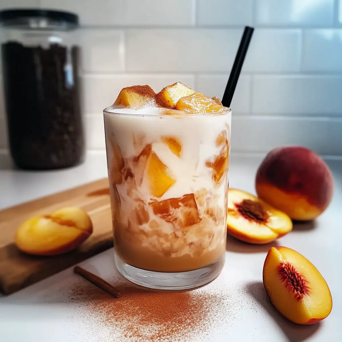 Unique Flavor Fusion: This Iced Peach Cobbler Chai Latte combines sweet peach cobbler with the spiciness of chai, creating a drink experience like no other.