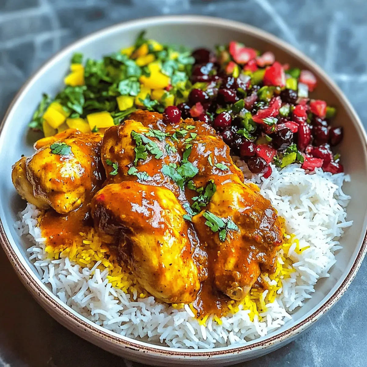 As the intoxicating aroma of saffron fills the air, I’m reminded of special gatherings where food became more than just sustenance—it turned into a celebration of love and tradition. This Persian Saffron Chicken (Zereshk Polo Ba Morgh) is my go-to dish for those cherished moments, featuring tender chicken simmered in a rich saffron-tomato sauce that’s harmonious with fluffy saffron rice and the delightful tartness of barberries. Not only does this recipe make for a stunning centerpiece, but it’s also a high-protein option that’s surprisingly quick to prepare. With aromatic spices dancing throughout each layer, you’ll find it’s a feast for both the eyes and the palate. Got an adventurous spirit in the kitchen? Let’s explore the heartwarming world of Persian cuisine together! Why is Persian Saffron Chicken a must-try? Festive Flavors: Experience the vibrant taste of saffron combined with a medley of aromatic spices that create unforgettable flavor profiles. Crowd-Pleasing Delicacy: This dish shines at gatherings, making it an ideal centerpiece that will impress your guests. Versatile Ingredients: Adapt the recipe with seasonal vegetables or substitute proteins like lamb for a fresh twist on tradition. Easy Preparation: Enjoy this high-protein meal without lengthy prep time, perfect for busy weeknights or weekend feasts. Cultural Heritage: Immerse yourself in Persian culinary traditions while creating lasting memories around the dinner table. Whether you’re pairing it with a refreshing Shirazi salad or some yogurt, each bite promises to transport you straight to a festive Persian gathering! Want to try more flavors? Check out my Honey Bourbon Chicken recipe for another delicious option! Persian Saffron Chicken Ingredients • Elevate your cooking experience with these delightful components! For the Chicken Bone-in Chicken (drumsticks or thighs) – Provides rich flavor and tenderness; substitute with boneless thighs for a lighter option, but they may lose depth. Vegetable Oil – Used for sautéing, adding richness; can substitute with olive oil for a different flavor. Yellow Onion – Adds sweetness and depth to the sauce; use shallots for a milder flavor. Garlic – Infuses the dish with aromatic flavor; fresh garlic is recommended, but powder can be used in a pinch. For the Spice Blend Turmeric – Essential for authenticity, providing warmth and earthy flavor; no substitute recommended. Cinnamon, Nutmeg, Cardamom, Cumin, Coriander – Create a warm, aromatic spice blend; use fresh ground spices for maximum impact. Chili Powder – Adds a hint of heat; omit for a milder dish. For the Sauce Tomato Paste – Provides body and acidity to the sauce; fresh tomatoes can be an alternative but adjust liquid content. Chicken Stock – Adds depth and seasoning; can be replaced with water for simplicity. Saffron – Infuses the dish with floral aroma and color; crucial for authenticity—use ground saffron with ice water for maximum flavor. For the Rice and Barberries Basmati Rice – The base of the dish, yielding a fluffy texture; rinse thoroughly before cooking to remove excess starch. Dried Barberries – Offers a sweet-tart flavor; substitute with dried cranberries for a similar effect, but note they are sweeter. Butter and Sugar (for barberries) – Adds richness and sweetness; can use olive oil instead of butter for a dairy-free option. For the Salad Cucumber, Tomatoes, Red Onion – Ingredients for Shirazi salad, providing freshness; customize with additional herbs if desired. Lemon Juice – Brightens the salad; can substitute with vinegar for a different acidity. Step‑by‑Step Instructions for Persian Saffron Chicken Step 1: Prepare Saffron Water Begin by grinding a small pinch of saffron threads and placing them over an ice cube in a bowl. As the ice melts, it will help release the saffron’s vibrant color and aromatic essence. Let the saffron water sit while you prepare the chicken, ensuring rich flavor infusion for your Persian Saffron Chicken. Step 2: Cook Chicken In a large pot, heat 2 tablespoons of vegetable oil over medium heat until shimmering. Add your bone-in chicken pieces and diced yellow onion, sautéing for about 8-10 minutes until the chicken is browned and the onion is translucent. Incorporate minced garlic, turmeric, and your selected spices, followed by tomato paste and half of the saffron water. Pour in chicken stock and let everything simmer uncovered on low heat for about 40 minutes, allowing the flavors to meld beautifully. Step 3: Cook Rice While the chicken simmers, rinse 2 cups of basmati rice under cold water until the water runs clear, removing excess starch. Cook the rice according to package directions, generally about 15-20 minutes, until fluffy and tender. In a separate pan, sauté dried barberries in 1 tablespoon of butter with a sprinkle of sugar for 2-3 minutes to soften them. Once cooked, fold the barberries into the rice along with the remaining saffron water for added color and flavor. Step 4: Make Shirazi Salad Prepare the refreshing Shirazi salad by dicing cucumber, tomatoes, and red onion into bite-sized pieces. Combine them in a bowl and toss with a generous squeeze of lemon juice, seasoning with salt and pepper to taste. Allow the salad to chill in the refrigerator until you’re ready to serve, as this will enhance the flavors and make a perfect contrast to your savory Persian Saffron Chicken. Step 5: Serve and Enjoy Once the chicken is tender and the sauce has thickened slightly, taste and adjust seasoning if necessary. Serve your Persian Saffron Chicken over a bed of fluffy saffron rice, garnished with the vibrant Shirazi salad alongside. This harmonious combination not only looks stunning but also offers a delightful balance of flavors that will transport you and your guests to a festive Persian gathering. Expert Tips for Persian Saffron Chicken Slow Simmering: Allow the chicken to simmer on low heat for around 40 minute