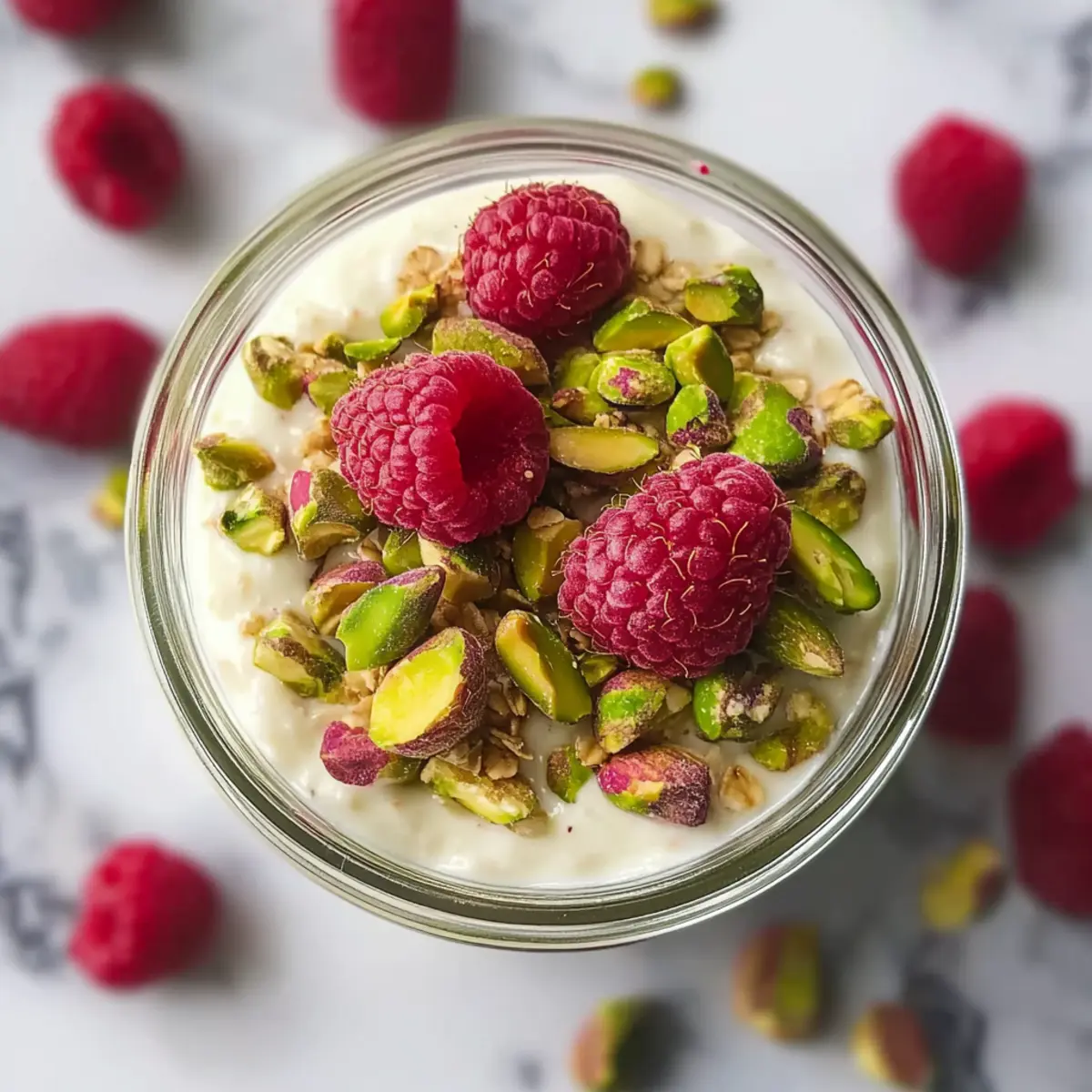 As I poured the creamy mixture into my favorite mason jar, the delightful blend of nutty and sweet aromas filled my kitchen, instantly lifting my spirits. These Pistachio Overnight Oats are not just a meal; they’re a delicious way to kickstart your day without the hassle. This no-cook recipe is perfect for anyone busy in the mornings, allowing you to prepare a nourishing breakfast the night before. With the unique richness of pistachio butter combined with the health benefits of chia seeds, you’re not just satisfying your hunger—you’re treating your body right. Plus, who wouldn’t love waking up to a ready-made, vibrant breakfast topped with fresh raspberries and crunchy pistachios? Curious about how this easy, vegan delight can transform your morning routine? Let’s dive in!