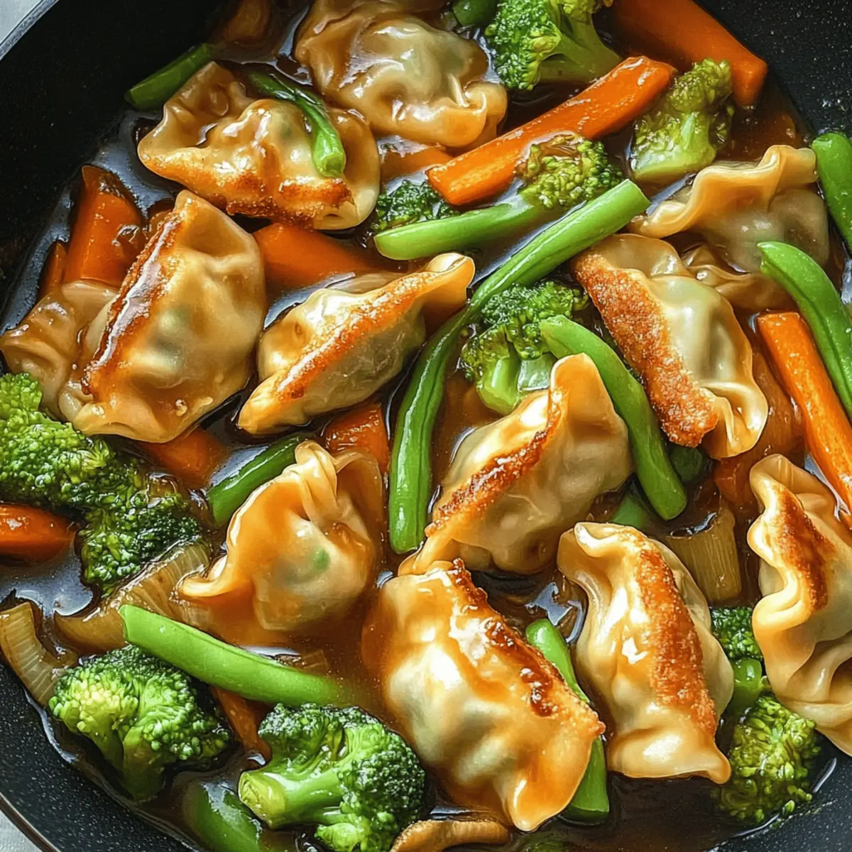 As I rummaged through my freezer one evening, I unearthed a treasure trove of frozen potstickers. It struck me then that a Potsticker Stir Fry could be the perfect solution for a weeknight dinner that was both quick and customizable. This agile dish brings together crisp, savory potstickers and a vibrant medley of fresh vegetables, all enveloped in a rich, umami-packed sauce that sings with flavor. Not only does this stir fry whip up in a flash, but it’s also a wonderful way to clean out your fridge, making it easier than ever to enjoy a healthy homemade meal. Whether you’re a meat lover or a vegetarian, this recipe has you covered. Are you ready to transform those frozen potstickers into an unforgettable dinner? Why is Potsticker Stir Fry a Must-Try? Quick and Easy: This dish comes together in under 30 minutes, making it a lifesaver on busy weeknights. Endless Customization: Whether you prefer pork, chicken, or vegetable potstickers, this recipe adapts to your taste. Feel free to toss in any vegetables you have on hand! Full of Flavor: The combination of garlic, ginger, and soy sauce creates a deliciously rich, umami flavor that will leave your taste buds dancing. Healthy Twist: Packed with fresh vegetables, this stir fry ensures you’re getting plenty of nutrition while enjoying every bite. Perfect Family Meal: This is a crowd-pleaser, making it ideal for family dinners or inviting friends over. Pair it with some steamed rice and you’ve got a complete meal! Give this Potsticker Stir Fry a try and turn those frozen potstickers into something spectacular! Potsticker Stir Fry Ingredients Explore the delightful components of your tasty Potsticker Stir Fry! For the Potstickers Frozen potstickers (10–12) – Choose pork, chicken, or vegetable varieties for a savory base. For the Vegetables White button mushrooms (4-5, sliced) – Adds umami flavor; shiitake or cremini can give a deeper taste. Broccoli florets (1 cup) – Provides crunch and essential nutrients. Green beans (20, sliced into thirds) – Introduces a fresh snap to each bite. Carrot (1 large, sliced thin on a bias) – Offers sweet flavor and beautiful color. Onion (¼ cup, small diced) – Enhances aroma and gives sweet depth. For the Cooking & Flavoring Sesame oil (1 tablespoon) – Infuses a nutty flavor into the dish. Extra virgin olive oil (1 tablespoon) – Ideal for frying; substitute with any neutral oil if needed. Reduced-sodium soy sauce (¼ cup) – Imparts a salty, umami richness to the stir fry. Rice wine vinegar (¼ cup) – Balances flavors with its acidity and brightness. Sugar or honey (1 tablespoon) – Adds sweetness to cut through salty and tangy notes. Grated fresh ginger (1 teaspoon) – Offers a zingy warmth that elevates the dish. Cornstarch (1 tablespoon) – Thickens the sauce beautifully when combined with water. Cold water (1 tablespoon) – Essential for creating the cornstarch slurry to thicken the sauce. For Garnishing Sesame seeds – Adds crunch and visual appeal. Green onions – Enhances flavor and makes for an attractive presentation. With these ingredients, you’re well on your way to whipping up a fantastic Potsticker Stir Fry that’s sure to impress! Step‑by‑Step Instructions for Potsticker Stir Fry Step 1: Prepare the Sauce In a mixing bowl, whisk together 1 tablespoon of cold water and 1 tablespoon of cornstarch until smooth to create a slurry. Then, add ¼ cup of reduced-sodium soy sauce, ¼ cup of rice wine vinegar, 1 tablespoon of sugar or honey, and 1 teaspoon of grated fresh ginger. Mix thoroughly until well combined and set aside for later use in your Potsticker Stir Fry. Step 2: Prepare Vegetables While the sauce rests, slice the mushrooms, broccoli, carrot, green beans, and onion as mentioned in the ingredient list. Aim for uniform sizes to ensure even cooking. Gather all your sliced vegetables in one place so they are ready to be sautéed when it’s time to cook your delicious Potsticker Stir Fry. Step 3: Cook Potstickers In a large skillet or wok, heat 1 tablespoon of olive oil and 1 tablespoon of sesame oil over medium heat. Once the oils shimmer, add the frozen potstickers in a single layer; cook for 3-4 minutes or until the bottoms turn golden brown. Carefully add ¼ cup of water, cover tightly, and steam for an additional 3-4 minutes until the potstickers are heated through. Remove from the skillet and set aside. Step 4: Cook Veggies in Stages Begin by adding the sliced mushrooms and diced onion to the skillet, sautéing for about 3-4 minutes until browned and fragrant. Use a spatula to stir occasionally for even cooking. Once done, remove them from the skillet and set aside. Next, add the broccoli florets to the pan with a drizzle of sesame oil, cooking for about 3-4 minutes until they are tender yet crisp. Step 5: Sauté Remaining Vegetables In the same skillet, add the sliced green beans and carrot. Sauté these for another 3-4 minutes until they’re just tender and vibrant. This step helps to retain their freshness and snap, adding a delightful texture to your Potsticker Stir Fry. Once cooked, remove and set them aside along with the other vegetables. Step 6: Combine & Serve Return all the cooked vegetables to the skillet along with the potstickers. Pour the prepared sauce over everything and stir well to ensure everything is evenly coated. Cook together for another 2-3 minutes, allowing the sauce to thicken and caramelize slightly. Once heated through, serve hot, garnished with sesame seeds and sliced green onions. Enjoy your vibrant Potsticker Stir Fry! Potsticker Stir Fry Variations & Substitutions Feel free to make this dish your own with these exciting twists and swaps that will cater to your taste buds! Vegetarian Potstickers: Use vegetable potstickers and add a colorful mix of bell peppers for a fresh, vibrant touch. The sweetness of bell peppers will enhance your stir fry beautifully. Gluten-Free Option: Swap in gluten-free soy sauce and cornstar