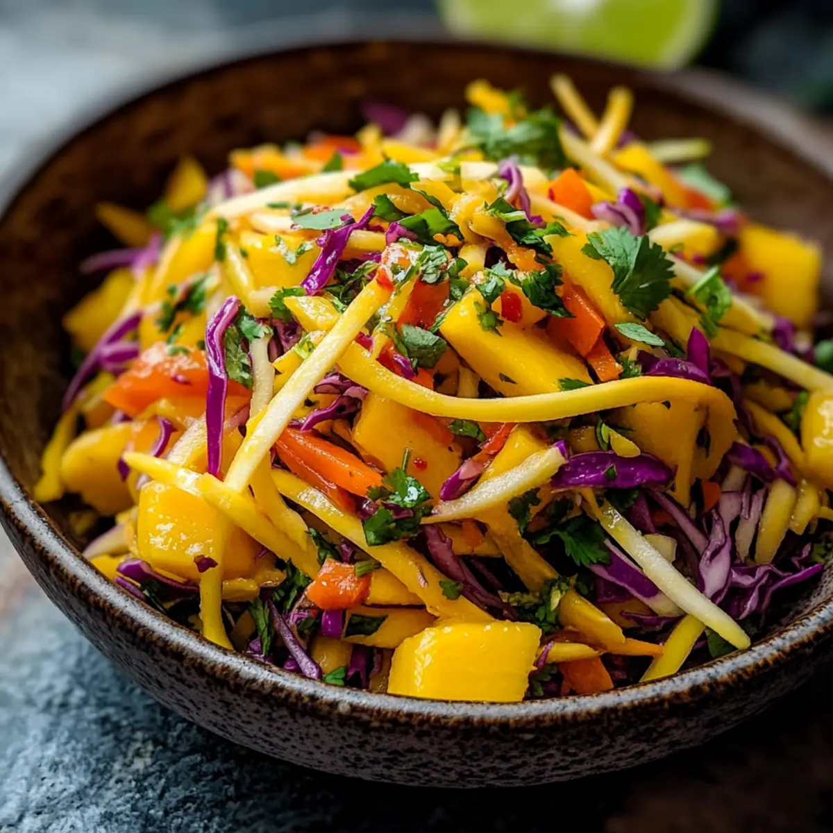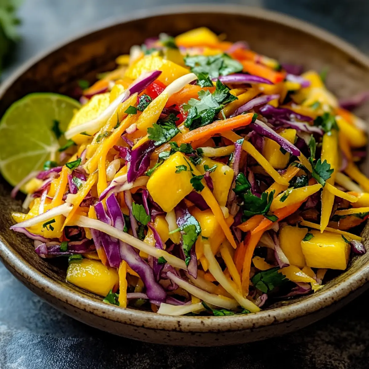 The aroma of fresh mangoes always takes me back to sun-soaked beaches and lazy summer days. Today, I’m excited to share my Quick and Easy Mango Slaw, a vibrant side dish that captures that carefree essence while being remarkably simple to whip up. In under 15 minutes, you can transform ripe mangoes and crunchy vegetables into a refreshing salad, perfect for busy weeknight dinners or your next barbecue gathering. What’s more, this slaw is fully customizable—you can add your favorite veggies or proteins for an extra tweak! With its crisp texture and zesty lime dressing, this Mango Slaw is not just a healthy accompaniment, but also a crowd-pleaser that will brighten any meal. What flavor combinations will you try to make it your own? Why Is Mango Slaw So Amazing? Freshness on a Plate: The combination of sweet mangoes and crunchy veggies creates an explosion of flavor in every bite. Quick to Prepare: This slaw comes together in under 15 minutes, making it an ideal choice for those busy weeknights or last-minute gatherings. Customizable Delight: Feel free to mix and match ingredients, from adding avocado for creaminess to incorporating nuts for extra crunch. Mix it into some warm tortillas or pair it with grilled meats for a satisfying meal. Light and Healthy: With only about 120 calories per serving, this slaw is not just delicious but also a nutritious addition to your table. Vibrant Color: The beautiful hues of mango, bell pepper, and cabbage make this dish as visually appealing as it is tasty! Elevate your meals with this delightful Mango Slaw, and if you enjoy vibrant flavors, check out my mouthwatering Coconut Mango Popsicles for a refreshing treat! Quick And Easy Mango Slaw Ingredients For the Slaw • Ripe Mangoes – Adds sweetness and juiciness; choose firm but ripe mangoes for the best flavor. • Green Cabbage – Provides crunch and structure; can be substituted with savoy cabbage for a different texture. • Carrot – Adds color and slight sweetness; grate before adding for a finer texture. • Red Bell Pepper – Offers sweetness and a pop of color; substitute with yellow bell pepper if desired. • Red Onion – Enhances flavor with a mild bite; alternatively, use green onions for a milder taste. • Fresh Cilantro – Contributes freshness and a herbal note; can be omitted if cilantro is not preferred. For the Dressing • Lime Juice – Provides acidity to brighten flavors; substitute with lemon juice if preferred. • Honey or Maple Syrup – Adds sweetness to balance flavors; use agave syrup for a vegan option. • Sesame Oil – Adds depth and a nutty flavor; can be replaced with olive oil for a lighter taste. • Salt and Pepper – Season to taste; adjust based on dietary preferences. Add these delightful ingredients to your grocery list and get ready to whip up a Quick and Easy Mango Slaw that’s sure to impress! Step‑by‑Step Instructions for Quick And Easy Mango Slaw Step 1: Prepare the Vegetables Begin by washing and peeling your ripe mangoes, then dicing them into bite-sized pieces. Next, take a head of green cabbage and slice it thinly, ensuring you retain its crunch. Grate one carrot and chop the red bell pepper into small strips too. In a large mixing bowl, combine all these vibrant ingredients, creating a colorful base for your Quick and Easy Mango Slaw. Step 2: Mix the Dressing In a separate bowl, whisk together the freshly squeezed lime juice, a touch of honey or maple syrup, and a splash of sesame oil. Add salt and pepper to taste, ensuring the dressing is well balanced. This zesty mixture will elevate the flavors of your slaw. Aim for a consistent blend that is both sweet and tangy, perfect for drenching your mango slaw. Step 3: Combine the Ingredients Pour the dressing over the mango mixture in the large bowl. Gently toss everything together using salad tongs or two wooden spoons, ensuring each piece of vegetable is well-coated. The vibrant colors of the mangoes, cabbage, and peppers will beautifully meld with the dressing, enhancing the visual appeal of your Quick and Easy Mango Slaw. Step 4: Let It Rest Once mixed, allow the slaw to rest for about 5–10 minutes at room temperature. This short time will let the flavors meld together, contributing to a more delicious taste. As the slaw rests, the vegetables will absorb some of the dressing while maintaining their crispness, preparing them for serving. Step 5: Serve and Enjoy Finally, serve the Quick and Easy Mango Slaw chilled or at room temperature, garnished with extra cilantro or lime wedges if desired. This refreshing side dish complements grilled meats nicely or can be enjoyed as a light meal on its own. Enjoy the crunch and sweetness in every bite, perfect for your next gathering! What to Serve with Quick and Easy Mango Slaw Brighten your meals with complementary dishes that enhance the fresh flavors of this vibrant slaw. Grilled Chicken: Tender and juicy, grilled chicken pairs beautifully with the sweet and tangy notes of the slaw, making every bite delightful. A charred exterior adds depth to the dish, while the juicy interior keeps it succulent. Fish Tacos: The lightness of flaky fish wrapped in warm tortillas alongside the crunchy mango slaw creates a perfect flavor harmony, elevating the dining experience. A squeeze of lime on top brings everything together beautifully. Coconut Rice: Creamy and subtly sweet, coconut rice provides a soft counterpoint to the crunchy slaw, adding a tropical flair to your plate. It’s an ideal base that allows the slaw to shine as a refreshing garnish. Teriyaki Grilled Salmon: This savory dish combines flavors remarkably well with the freshness of the slaw. The rich, sweet glaze on the salmon complements the fruity notes in the slaw, making each bite a taste sensation. Fresh Spring Rolls: These light and healthy rolls stuffed with shrimp and veggies complement the slaw’s texture and offer a refreshing, chilled contrast. Serve with a spicy dipping sauc