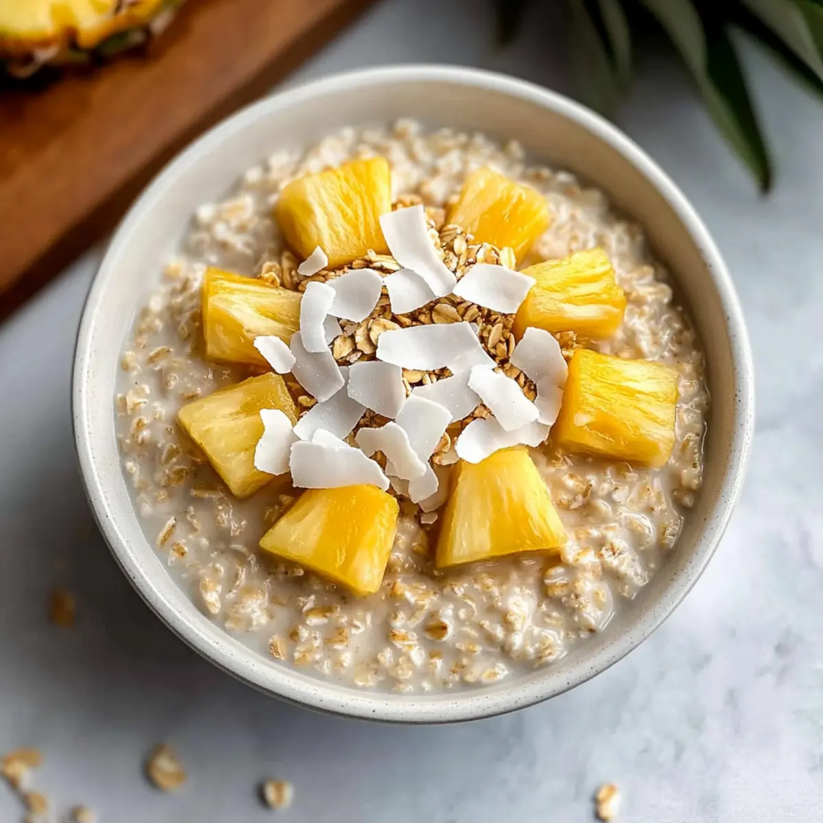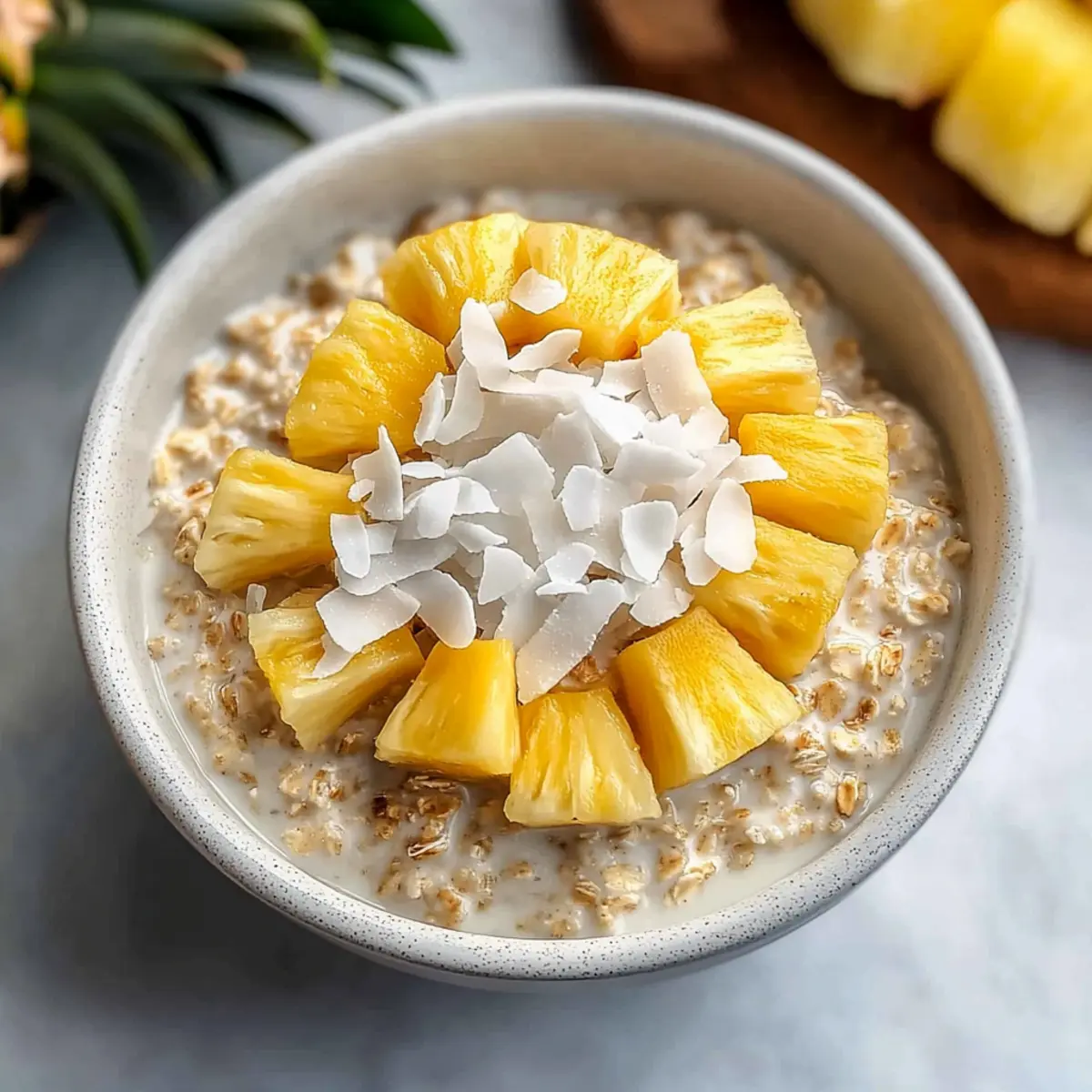 Imagine waking up to the refreshing taste of summer, no matter what the season. My Quick Tropical Pineapple Overnight Oats will whisk you away to sandy beaches with just one spoonful. This simple yet satisfying recipe combines the creamy goodness of oats with sweet, juicy pineapple, making it an energizing start to your day. Not only is it a fantastic meal prep option for busy mornings, but it also offers endless customization—switch out the toppings or fruits based on your cravings! Whether you’re looking to delight your taste buds or create a wholesome breakfast that keeps you fueled, these oats are your new go-to. Ready to transform your mornings? Let’s dive into this tropical delight! Why Are These Overnight Oats Irresistible? Convenience: These Quick Pineapple Overnight Oats are perfect for busy mornings, allowing you to prepare everything the night before! Tropical Flavor: The sweet, juicy pineapple mixed with creamy coconut milk transports your taste buds to a sunny beach getaway! Customizable: You can easily swap ingredients; try adding different fruits or toppings like nuts and seeds to keep things exciting. Healthy and Nutritious: Packed with fiber and omega-3s from chia seeds, they’ll keep you feeling full and energized all morning long! Meal Prep Friendly: Make a big batch at the beginning of the week, and enjoy quick breakfasts for days! Ready to expand your breakfast repertoire? Check out these Fried Pineapple Rings for a delightful treat! Quick Pineapple Overnight Oats Ingredients For the Base Rolled Oats – Provides structure and texture; can substitute with quick oats for a softer bite. Coconut Milk – Adds creaminess and tropical flair; swap for almond or dairy milk for a unique twist. Water – Used to adjust consistency; helps keep the oats fluffy. For Thickeners Chia Seeds – Thickens the mixture while boosting fiber and omega-3s; ensure they are evenly mixed to avoid clumping. For Sweetness Pineapple (fresh or frozen) – Infuses natural sweetness and vibrant flavor; if using frozen, thaw and drain for the best results. Honey or Maple Syrup – Enhances overall taste; agave nectar works as a sugar substitute if desired. For Flavor Balance Lime Juice – Adds acidity to counterbalance sweetness; feel free to leave it out if you prefer a simpler taste. Salt – Elevates and enhances all flavors; don’t skip it even in small amounts. Indulge in these Quick Pineapple Overnight Oats and discover a tropical morning delight that you and your family will love! Step‑by‑Step Instructions for Quick Pineapple Overnight Oats Step 1: Prepare Pineapple Milk Begin by adding your fresh or thawed pineapple chunks, coconut milk, water, lime juice, honey or maple syrup, and a pinch of salt to a high-speed blender. Blend the mixture on high for about 45 to 60 seconds until it reaches a smooth, vibrant consistency that looks inviting and creamy. This luscious pineapple milk will serve as the base for your Quick Pineapple Overnight Oats. Step 2: Combine Dry Ingredients In a large mixing bowl, combine rolled oats and chia seeds. Stir them together with a wooden spoon or spatula, ensuring that the chia seeds are evenly distributed among the oats. This mixture will provide the perfect texture for your overnight oats, so take a moment to thoroughly blend them before moving on to the next step. Step 3: Mix Wet and Dry Ingredients Carefully pour the smooth pineapple milk over your dry oat and chia seed mixture. Next, add in any additional chopped pineapple if desired. With a gentle but thorough motion, stir everything together until all dry ingredients are well-coated in the creamy mixture. Ensure no dry oats remain visible, as even distribution is key to a delightful cereal. Step 4: Rest Mixture Allow the combined mixture to sit for about 5 minutes. This short rest period will let the chia seeds start to swell, thickening your oats. After the time has passed, give the mixture another good stir to achieve that wonderfully creamy consistency. The oats and chia seeds should be evenly absorbed, creating a perfect base for your overnight delight. Step 5: Refrigerate Transfer your delicious mixture into individual jars or containers. Cover them tightly with lids or plastic wrap and place them in the refrigerator. For the best results, allow your Quick Pineapple Overnight Oats to chill for at least 4 hours or preferably overnight. This time will give the oats a chance to soften and absorb the flavors, making your breakfast truly delightful. Step 6: Serve When you’re ready to enjoy your Quick Pineapple Overnight Oats, take them from the fridge and give them a good stir. If they have thickened too much, add a splash of coconut milk to loosen the mixture. Top with your favorite additional toppings, such as nuts, seeds, or a sprinkle of shredded coconut for that extra tropical twist before digging in and savoring your refreshing meal! Expert Tips for Quick Pineapple Overnight Oats Perfect Ratio: Always aim for a liquid-to-oat ratio of 2:1; this ensures your Quick Pineapple Overnight Oats are creamy and not too dry. Chia Clumping: Mix chia seeds thoroughly with oats before adding wet ingredients to avoid clumping and achieve a smooth texture. Consistency Check: If the oats thicken too much overnight, simply stir in a splash of coconut milk to bring back that delicious creaminess. Flavor Boost: Don’t forget the salt! A small pinch elevates the sweetness and flavor in your Quick Pineapple Overnight Oats. Freshness Reminder: Store your oats in airtight containers and consume them within 5 days to enjoy optimal freshness and taste. What to Serve with Quick Pineapple Overnight Oats Start your day with a tropical breakfast spread that beautifully complements the flavors of your overnight oats! Tropical Smoothie: A chilled smoothie made with mango and banana will enhance the fruity theme, providing a refreshing and nutritious addition to your meal. Picture sipping this alongside your oats, fe