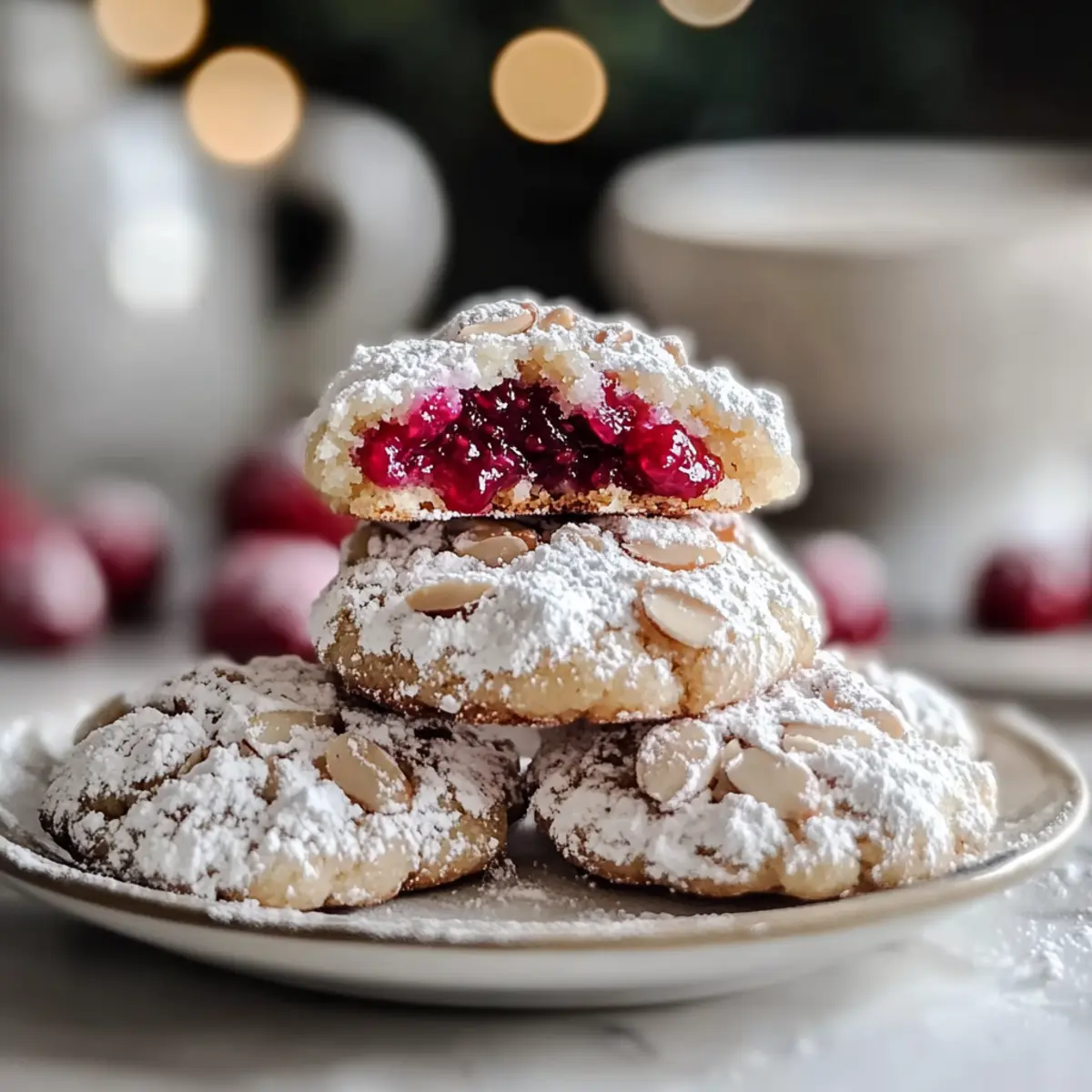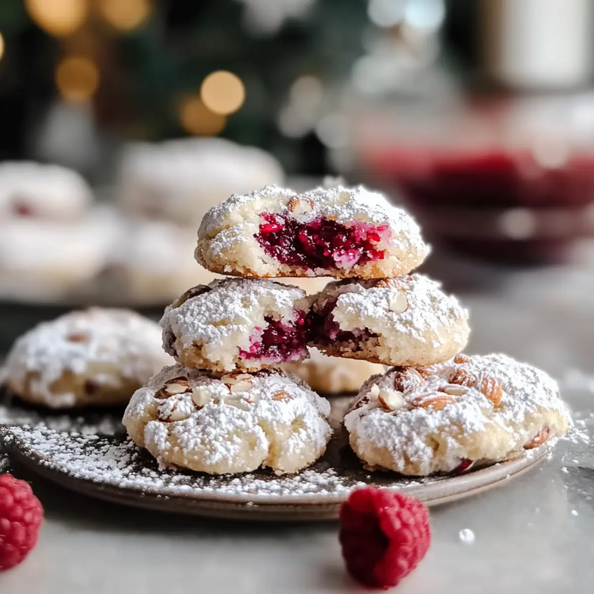 As I sifted through my pantry, I stumbled upon a jar of vibrant raspberry jam that seemed to whisper holiday memories. That’s when I realized it was time to whip up a batch of Raspberry Almond Snow Cookies, a delightful twist on classic winter treats. Not only are these cookies incredibly easy to prepare, but they also bring a festive flair to any gathering, making them a perfect addition to your cookie platter or a cozy evening at home. The combination of tart raspberry and crunchy almonds creates a flavor harmony that’s simply irresistible. Whether you’re sharing them with family or indulging solo, these cookies promise a melt-in-your-mouth experience that captures the essence of the season. Curious to learn how to make these delightful bites? Let’s dive into the recipe! Why Are These Cookies So Irresistible? Melt-in-your-mouth texture: The Raspberry Almond Snow Cookies combine a delicate softness with a crisp exterior, making every bite a delightful experience. Easy to make: With just a few simple ingredients, anyone can whip these up, perfect for those who love homemade treats without fuss. Festive flavor twist: The unique pairing of tart raspberry jam and nutty almonds brightens any holiday spread or everyday tea time. Crowd-pleaser: Their charming look and delicious taste ensure they’ll be the center of attention, making them a must-have for gatherings. Versatile variations: Feel free to get creative! Swap in your favorite jam or sprinkle on some festive sugars from my recipes for Cotton Candy Cookies or Meringue Pie Cookies. Perfect for gifting: These cookies make fantastic gifts, wrapped in beautiful packaging that will surely bring joy to friends and family during the holidays! Raspberry Almond Snow Cookies Ingredients • Here’s everything you need to create these melt-in-your-mouth delights! For the Cookies Unsalted Butter – Provides richness and moisture; using salted butter? Simply omit any extra salt. Powdered Sugar – Sweetens the cookies and gives a lovely dusting for presentation; in a pinch, granulated sugar can work, but it won’t be as smooth. Vanilla Extract – Adds warmth and enhances flavor; opt for pure vanilla for the best taste. All-Purpose Flour – The backbone of the cookie dough; swap with a gluten-free flour blend if needed. Almond Flour – Infuses the cookies with a nutty flavor and tenderness; ground sunflower seeds are a nut-free alternative. Salt – Balances sweetness; skip it if you’re using salted butter. Raspberry Jam – Adds a fruity burst of flavor and moisture; homemade or high-quality jam works best! Sliced Almonds – Offers crunch and visual appeal; consider chopped hazelnuts for a delightful substitution or leave them out for nut-free cookies. For Dusting Powdered Sugar – A dusting on cooled cookies adds a snowy finish, enhancing their festive look! Step‑by‑Step Instructions for Raspberry Almond Snow Cookies Step 1: Preheat & Prepare Baking Sheet Begin by preheating your oven to 350°F (175°C). While the oven is heating up, take a baking sheet and line it with parchment paper. This will prevent the Raspberry Almond Snow Cookies from sticking and ensure an easy cleanup after baking. Step 2: Cream Butter & Sugar In a large mixing bowl, use an electric mixer to cream together 1 cup of softened unsalted butter and 1 cup of powdered sugar. Beat this mixture on medium speed for about 3-4 minutes, until it becomes light and fluffy. This crucial step adds air into the batter, creating that melt-in-your-mouth texture we love in cookies. Step 3: Combine Ingredients Now, mix in 1 teaspoon of vanilla extract to the butter and sugar mixture for added flavor. In a separate bowl, whisk together 1 cup of all-purpose flour, ½ cup of almond flour, and a pinch of salt. Gradually incorporate the dry ingredients into the butter mixture, stirring gently until just combined to maintain a light texture in your Raspberry Almond Snow Cookies. Step 4: Form Cookies Using a tablespoon, scoop portions of the dough and flatten them slightly in your palm. Place a teaspoon of raspberry jam in the center and shape the dough around the jam, sealing it inside. This will create a delightful surprise of fruity flavor as you bite into the cookies. Repeat this process until all the dough is shaped. Step 5: Add Toppings Place the formed cookie balls onto the prepared baking sheet, leaving some space between each cookie. Sprinkle a handful of sliced almonds on top of each cookie to add a delightful crunch and enhance their visual appeal. This step contributes to the festive look of your Raspberry Almond Snow Cookies. Step 6: Bake the Cookies Slide the baking sheet into the preheated oven and bake the cookies for 15-20 minutes. Keep an eye on them; they should be lightly golden around the edges while remaining soft in the middle. This contrast in texture is what makes the Raspberry Almond Snow Cookies so special. Step 7: Cool & Dust Once baked, remove the cookies from the oven and let them cool on the baking sheet for about 5 minutes. This allows them to set before transferring to a wire rack. After they have cooled completely, dust them with additional powdered sugar for that snowy finish, creating a festive look that’s sure to impress. What to Serve with Raspberry Almond Snow Cookies Indulge in a cozy collection of delightful pairings that elevate your cookie experience. Warm Milk: A classic choice, warm milk enhances the cookies’ rich flavors while providing a comforting touch. Honey Almond Tea: The subtle sweetness and nutty notes of this tea complement the almond flavor in the cookies perfectly. Fresh Berries: Serve alongside a medley of fresh raspberries and blueberries for a refreshing contrast to the cookies’ sweetness. Creamy Vanilla Ice Cream: A scoop of creamy vanilla ice cream melts beautifully over the warm cookies, creating a decadent dessert. Spiced Chai Latte: The aromatic spices in a chai latte bring out the festive spirit, providing