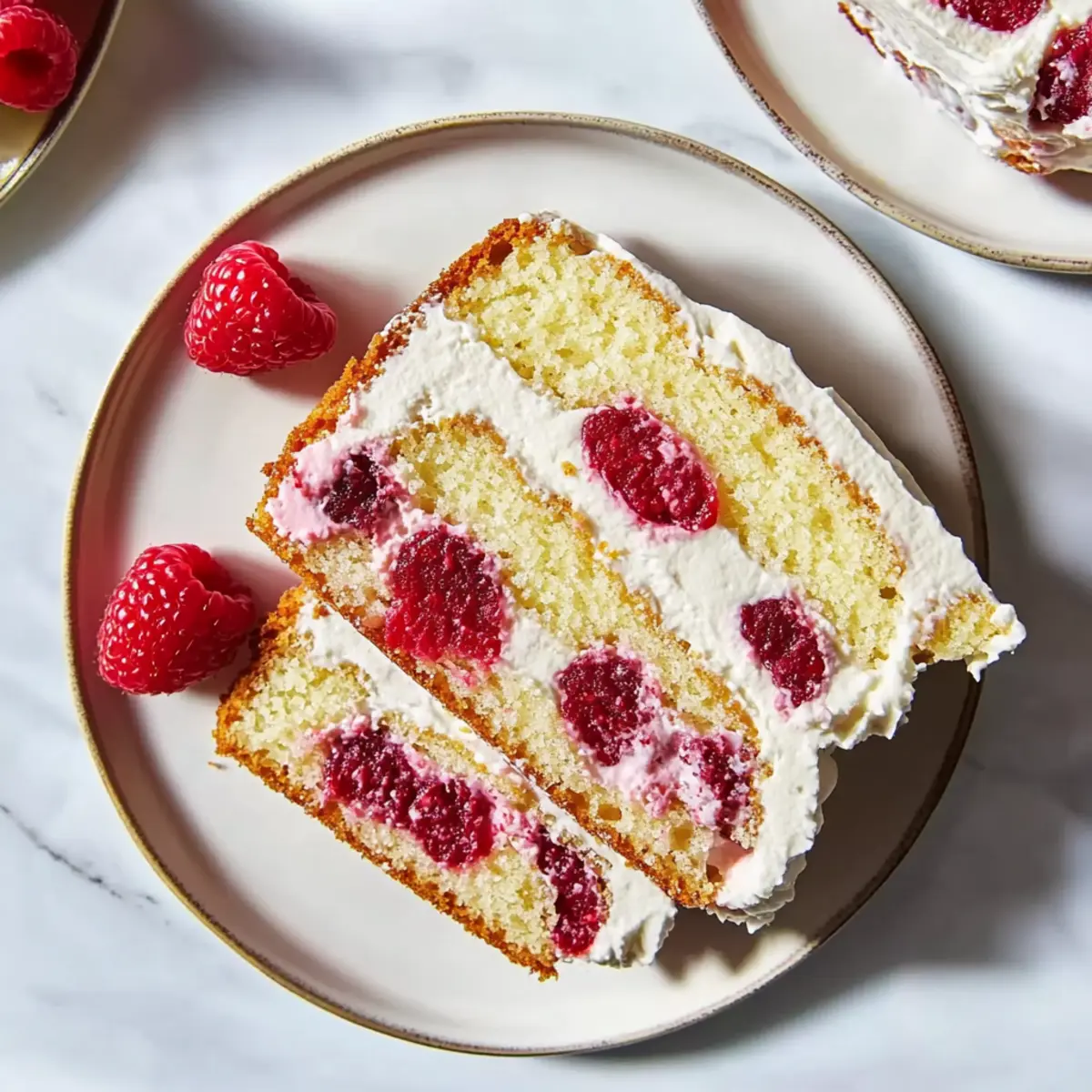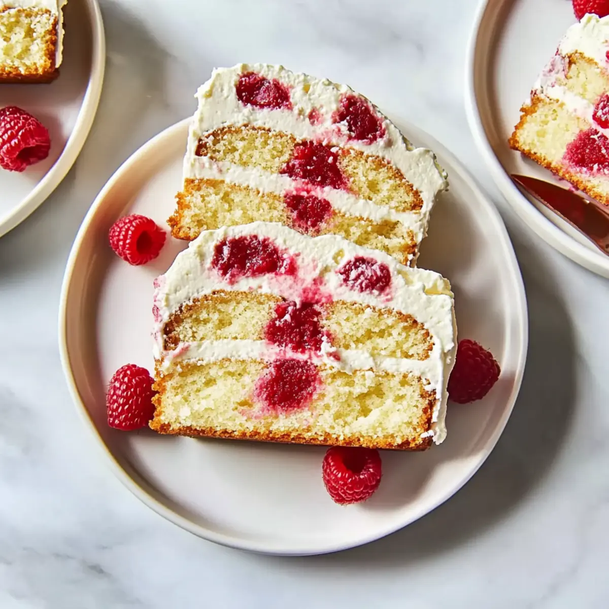 “Can you believe how easy it is to transform a simple tea party into a culinary delight?” That’s exactly what I thought when I first baked this irresistible Raspberry Tea Cake with Mascarpone Cream Filling. It combines tangy raspberries with a luxurious cream filling that takes just a little bit of effort but delivers big on flavor and presentation. Perfect for any gathering, this cake not only showcases your baking skills but also serves as a delightful way to impress your guests—or just indulge on a cozy afternoon. With its quick prep time and light texture, this dessert is sure to become a favorite in your recipe collection. Are you ready to dive into the world of homemade sweetness? Let’s get baking! Why is this Raspberry Tea Cake special? Irresistible Flavor: The combination of tangy raspberries and creamy mascarpone creates a symphony of taste that will leave everyone asking for the recipe. Quick and Easy: This delightful treat comes together with minimal effort, making it perfect for busy bakers or last-minute gatherings. Versatile Delight: Enjoy this cake as a light dessert or at your afternoon tea, and feel free to swap raspberries for strawberries or blueberries for a fresh twist! Impressive Presentation: The elegant layers and vibrant colors make for a stunning centerpiece that’s sure to impress guests at any occasion. Make-Ahead Convenience: Prep ahead of time and refrigerate; this cake holds its shape beautifully until it’s time to serve. Don’t miss pairing it with a delicious Coconut Cream Pie for a complete treat! Raspberry Tea Cake Ingredients For the Cake • All-Purpose Flour – Provides structure to the cake; substitute with a gluten-free flour blend if needed. • Baking Powder – A leavening agent that helps the cake rise; always check for freshness. • Baking Soda – Reacts with acidic ingredients for added lift. • Salt – Enhances the overall flavor of the cake. • Butter – Adds richness and moisture; unsalted butter can be used as an alternative. • Sugar – Sweetness and structure development; granulated sugar is best. • Eggs – Provides moisture and binds the ingredients together; for a vegan twist, consider flax eggs. • Almond Extract – Infuses a lovely nutty flavor; substitute with vanilla extract if preferred. • Sour Cream – Adds moisture and tang; plain yogurt works well as a substitute. • Raspberries – The star of the show, offering vibrant flavor and texture; feel free to use fresh or frozen. For the Cream Filling • Heavy Whipping Cream – Essential for creating a fluffy and rich cream filling. • Mascarpone Cheese – Adds creaminess and luxurious texture; mix with cream cheese and sour cream for a substitute. • Chambord (optional) – A raspberry liqueur that elevates the flavor; omit if you prefer a non-alcoholic version. • Vanilla Extract – Complements the mascarpone cream beautifully. Embrace the joy of baking with this Raspberry Tea Cake with Mascarpone Cream Filling, and transform any occasion into a memorable culinary experience! Step‑by‑Step Instructions for Raspberry Tea Cake with Mascarpone Cream Filling Step 1: Preheat and Prepare Begin by preheating your oven to 350°F (175°C). Grease a 12″ x 4″ x 2 ½” tea loaf pan with butter or cooking spray to ensure easy release of the Raspberry Tea Cake later. As the oven heats up, gather your mixing bowls and whisk so you’re fully prepared for the next steps. Step 2: Combine Dry Ingredients In a large mixing bowl, sift together 2 cups of all-purpose flour, 2 teaspoons of baking powder, ½ teaspoon of baking soda, and ½ teaspoon of salt. Whisk these ingredients until evenly combined, ensuring the baking powder and baking soda are well distributed. This is crucial for a light, airy texture in your cake. Step 3: Cream Butter and Sugar In another bowl, beat together ½ cup of softened butter and 1 cup of granulated sugar using a hand mixer on medium speed until the mixture becomes light and fluffy, about 3-5 minutes. You’ll notice the color change from yellow to a pale cream. Add in 2 large eggs one at a time, along with 1 teaspoon of almond extract, mixing until fully incorporated after each addition. Step 4: Incorporate Wet Ingredients Next, gradually add the dry mixture to the butter-sugar blend, alternating with ½ cup of sour cream. Start with the dry mix and end with it, mixing gently until just combined. Be careful not to over-mix; you want your Raspberry Tea Cake to remain tender. Finally, gently fold in 1 cup of fresh or frozen raspberries until evenly distributed throughout the batter. Step 5: Bake the Cake Pour the batter into the prepared tea loaf pan and smooth the top with a spatula. Place it in the preheated oven and bake for 50 to 60 minutes. The cake is done when a toothpick inserted into the center comes out clean, and the top is lightly golden. Remove the pan from the oven and allow the cake to cool for 10 minutes before transferring it to a wire rack. Step 6: Whip the Cream Filling While the cake cools, prepare the mascarpone cream filling. In a clean bowl, whip 1 cup of heavy cream with 2 tablespoons of sugar until stiff peaks form. Mix in 1 cup of mascarpone cheese, 1 teaspoon of vanilla extract, and 2 tablespoons of Chambord if desired. Blend until the mixture is smooth and creamy, ensuring it maintains a thick consistency suitable for filling. Step 7: Assemble the Cake Once the cake has completely cooled, use a serrated knife to carefully slice it into layers. Spread a generous layer of the mascarpone cream filling between each layer as you stack them, creating a beautiful multi-layered Raspberry Tea Cake. Refrigerate the assembled cake for at least 30 minutes to allow it to set and hold its shape before slicing. Step 8: Serve the Delight When you’re ready to serve, slice the cake crosswise into 1-inch pieces. Display your gorgeous Raspberry Tea Cake with Mascarpone Cream Filling on a beautiful platter, and perhap