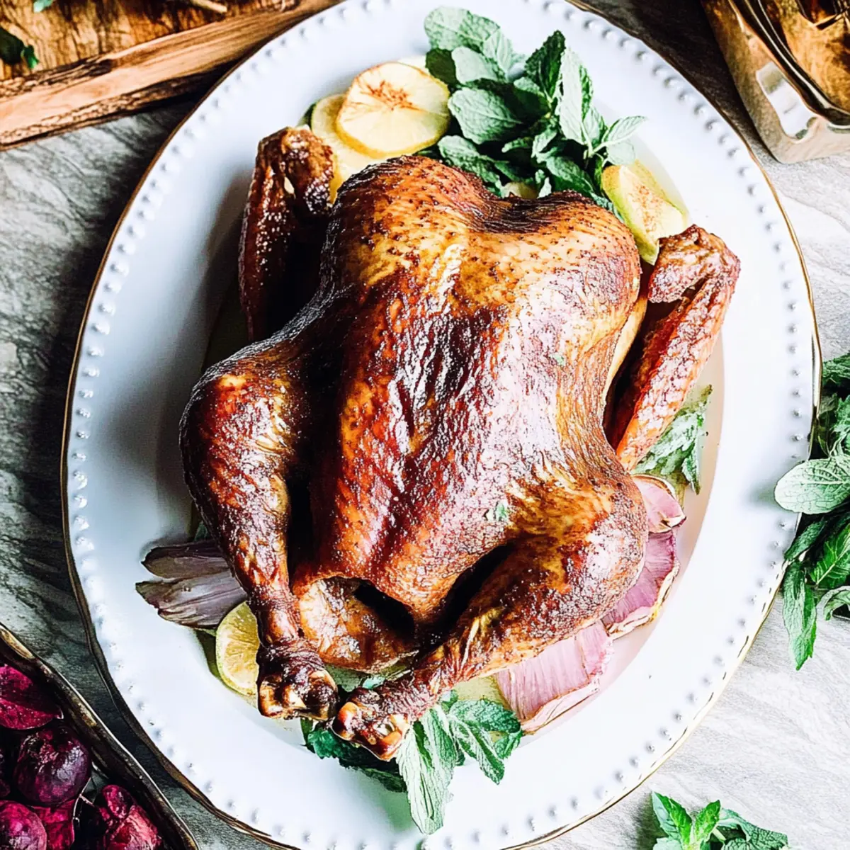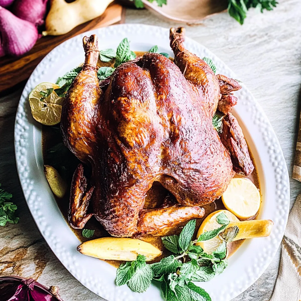 As I prepped for our family Thanksgiving, a thought struck me—what if I transformed our traditional turkey into something unexpectedly vibrant? Enter Roast Tandoori Turkey, a delightful fusion that elevates the classic holiday centerpiece with aromatic spice and savory depth. This dish not only offers a unique take on turkey, but it also comes with the dual benefits of being irresistibly flavorful and surprisingly simple to whip up! Whether you’re hosting a gathering or just looking to spice up your dinner routine, this roast creates an unforgettable experience that will leave your loved ones raving. Ready to embark on this culinary adventure? Let’s dive into the world of bold flavors together! Why is Tandoori Turkey a Must-Try? Bold flavors: This Roast Tandoori Turkey is a game-changer, infusing your holiday table with aromatic spices that awaken the senses. Simplicity reigns: With easy-to-follow instructions, you can impress your guests without feeling overwhelmed. Unique twist: Transition from ordinary to extraordinary, making your Thanksgiving unforgettable! Versatile sides: Serve with traditional dishes like mashed potatoes or consider pairing with cucumber raita for an exciting fusion. From festive gatherings to family dinners, this recipe is sure to keep everyone coming back for more! Want another crowd-pleaser? Check out my Cranberry Turkey Stuffing for a delightful side option. Tandoori Turkey Ingredients Dive into the flavorful world of Tandoori Turkey with these essential ingredients that will transform your turkey into a spicy feast! For the Marinade Plain Full-fat Yogurt – Provides moisture and acts as a marinade base to tenderize the turkey. Substitution: Use Greek yogurt for slightly thicker consistency. Lemon Juice – Adds acidity and brightness, enhancing flavor. No direct substitutes; fresh is recommended for best taste. Oil – Helps to achieve crispy skin when roasting. Any neutral oil works, but olive oil adds richness. Garlic (8 cloves) – Contributes aromatic depth and savory flavor. Use garlic powder in a pinch (1 tsp per clove). Fresh Ginger (1 piece, 2 oz) – Adds warmth and a bit of spiciness. Substitution: Ground ginger (1 tsp) can be used but will alter the freshness. Sweet Paprika (3 tbsp) – Imparts color and mild flavor. Substitution: Smoked paprika for a more intense smokiness. Kosher Salt (2 tbsp) – Essential for seasoning. Use table salt, but reduce the amount by half due to potency. Ground Cayenne (2 tsp) – Provides heat; adjust to taste. Leave out for a milder flavor. Ground Coriander (2 tsp) – Contributes citrus and herbal notes. Substitution: Ground cumin can be used but will alter the flavor profile. Ground Cumin (2 tsp) – Adds earthiness to the spice mix. No direct substitute; essential for flavor. Ground Cinnamon (1½ tsp) – Adds warmth and sweetness. Do not substitute; it’s integral to the flavor. Ground Cloves (1 tsp) – Offers a sharp, aromatic flavor. Use nutmeg or allspice as an alternative if needed. For the Turkey Fresh Whole Turkey (9 kg/20 lb) – The star of the dish; choose a fresh one for best results. Thaw completely if using frozen. Freshly Ground Black Pepper – Enhances overall flavor. Use ground pepper or adjust for preference. Medium Onion (1) – Added to the turkey cavity for moisture and flavor during roasting. No direct substitutes; enhances aroma. For the Gravy All-purpose Flour (⅓ cup) – Thickens the gravy. Substitution: Cornstarch can be used, but adjust quantities. Unsalted Chicken Broth (1 litre) – Forms the base for the gravy. Use vegetable broth for a non-meat option. Butter (3 tbsp) – Adds richness and a finishing touch to the gravy. Substitute with a non-dairy butter for a dairy-free option. With these ingredients in hand, you’re well on your way to preparing a dazzling Roast Tandoori Turkey that will amaze your family and friends! Enjoy the journey of flavors! Step‑by‑Step Instructions for Roast Tandoori Turkey Step 1: Prepare Marinade In a blender, combine the plain full-fat yogurt, lemon juice, oil, garlic, ginger, sweet paprika, and spices including cayenne, coriander, cumin, cinnamon, cloves, and kosher salt. Blend until a smooth marinade forms, ensuring all ingredients are thoroughly mixed. This flavorful base will create a lovely glow on your Roast Tandoori Turkey. Step 2: Prepare Turkey Take your fresh turkey, remove any packaging, and rinse it under cold water. Pat the turkey dry with paper towels and place it in a large roasting pan. Generously slather the marinade all over the turkey, making sure to coat every nook and cranny for maximum flavor. Season the turkey with freshly ground black pepper and let it sit at room temperature for 1 hour while you prepare the oven, inserting halved onions into the cavity. Step 3: Roast Turkey Preheat your oven to 325ºF (163ºC). Place the turkey breast-side up on a rack in the roasting pan, ensuring it is elevated to allow hot air to circulate. Roast the turkey for approximately 4 hours, until the internal temperature reaches 180°F (82°C) in the thickest part of the thigh, ensuring a beautifully golden-brown skin. If the skin darkens too much before it’s done, tent it loosely with foil to prevent burning. Step 4: Rest Turkey Once the turkey is perfectly roasted, carefully transfer it to a cutting board. Allow the Roast Tandoori Turkey to rest for 20 minutes; this resting period is vital for the juices to redistribute, ensuring tender and juicy meat when it’s time to carve. Step 5: Make Gravy Using the drippings in the roasting pan, bring the pan over medium heat on your stovetop. Whisk together the all-purpose flour with a small amount of the unsalted chicken broth until smooth, then gradually mix in the remaining broth. Bring the mixture to a simmer, stirring frequently until thickened. For a silky texture, strain the gravy before serving it alongside your delicious Roast Tandoori Turkey. Tandoori Turkey Variations & Subs