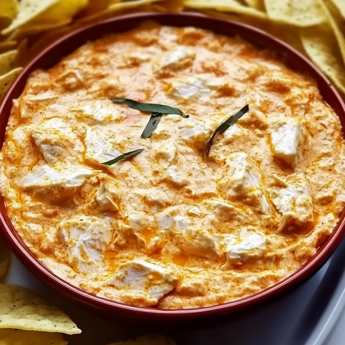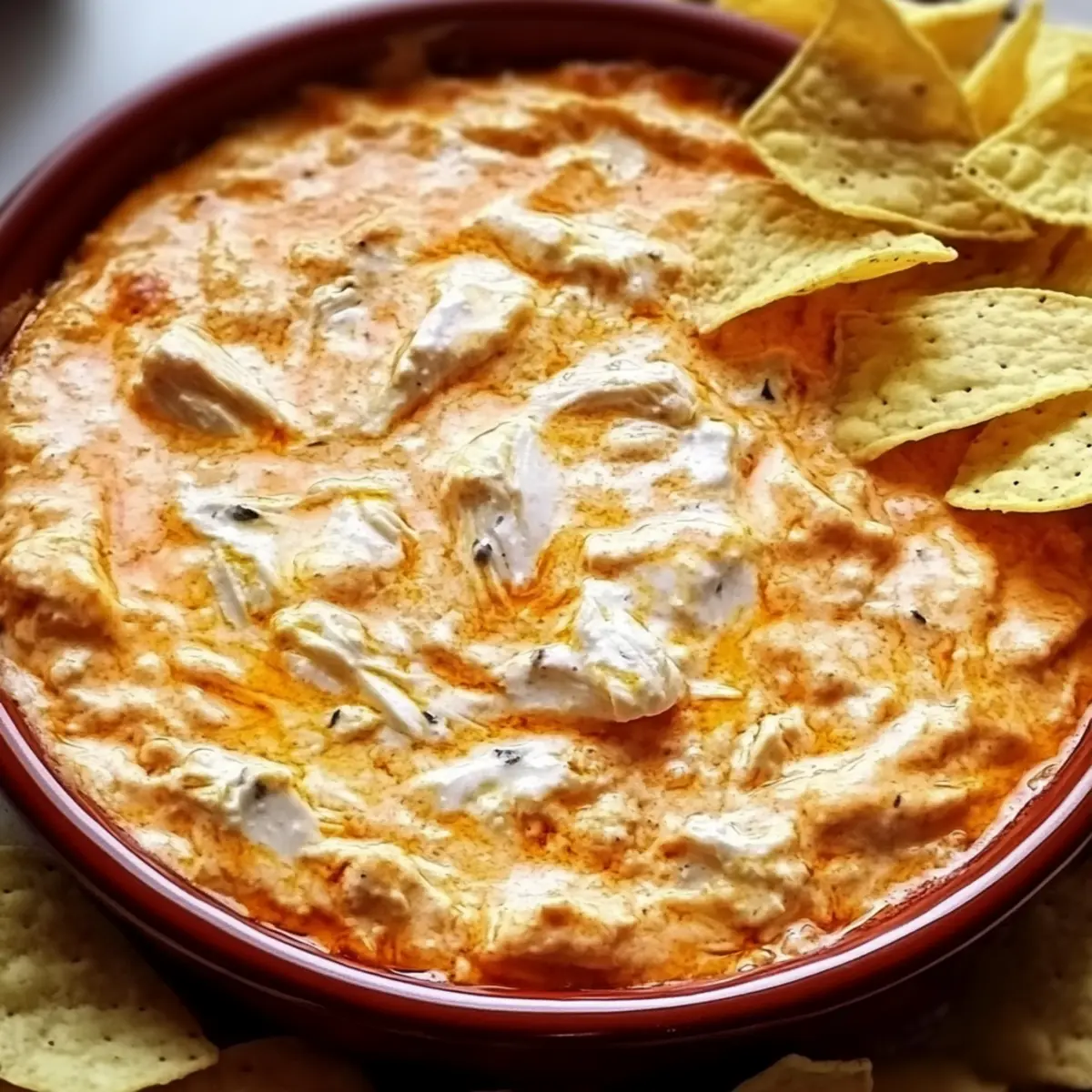 As I reached for the last bite of that irresistible dip at a friend’s game day gathering, I realized I had to recreate the magic of that Creamy Rotisserie Chicken Buffalo Dip at home. The balance of spicy buffalo sauce and creamy goodness not only warms the heart but also transforms any casual get-together into an unforgettable feast. The beauty of this delectable dip lies in its quick preparation—ready in just 30 minutes—and its ability to cater to everyone, with vegetarian and dairy-free options that leave no one out. Picture friends gathered around, chips in hand, eagerly dipping into this crowd-pleaser that packs a punch of flavor. Are you ready to bring this comforting experience to your kitchen? Why is this dip a must-try? Quick and Easy Prep: In just 30 minutes, you can whip up a dip that will steal the show at any gathering. Versatile Options: With vegetarian and dairy-free alternatives available, everyone can join in on the deliciousness. Rich and Creamy: The combination of cream cheese and shredded chicken creates a luscious texture you’ll crave. Crowd-Pleasing Flavor: The spicy buffalo sauce paired with ranch dressing ensures this dip is a favorite among friends and family alike. Perfect for Any Occasion: Whether it’s game day or a cozy movie night, this dip adapts to every setting. Grab some crispy tortilla chips and experience the magic of this Creamy Rotisserie Chicken Buffalo Dip that everyone will love! Rotisserie Chicken Buffalo Dip Ingredients • For the Dip Base Shredded Rotisserie Chicken – Provides protein and flavor; swap with canned jackfruit for a vegetarian option. Cream Cheese – Adds creaminess and richness; make sure it’s softened for easy mixing. Shredded Cheddar Cheese – Offers additional creaminess and flavor; consider dairy-free cheese for a lactose-free version. Buffalo Sauce – Delivers the heat; mix hot sauce, melted butter, and vinegar for a personalized spin. Ranch Dressing – Enhances the overall creaminess; use vegan ranch for a dairy-free alternative. Salt and Pepper – Balances the flavors; adjust to taste for your perfect dip. • For the Seasoning Garlic Powder – Imparts aromatic flavor; a staple for tasteful seasoning. Paprika – Adds color and a mild flavor accent; perfect for a touch of warmth. Step‑by‑Step Instructions for Creamy Rotisserie Chicken Buffalo Dip Step 1: Preheat the Oven Begin your dip adventure by preheating your oven to 400ºF (204ºC). While the oven works its magic, grab a greased 8×8″ or 9×7″ baking dish to prepare for your creamy concoction. This step ensures that you have the perfect vessel ready for the Rotisserie Chicken Buffalo Dip as the oven heats up. Step 2: Combine Ingredients In a large mixing bowl, blend together shredded rotisserie chicken, softened cream cheese, shredded cheddar cheese, buffalo sauce, ranch dressing, garlic powder, paprika, and a pinch of salt and pepper. Use a sturdy spatula or mixer to whip the mixture until it achieves a creamy and cohesive texture. This delightful blend sets the stage for the star of your game day spread. Step 3: Transfer Mixture Once your ingredients are well incorporated, transfer the creamy mixture into your pre-greased baking dish. Use a spatula to spread it evenly, ensuring every corner is filled with this rich and flavorful Rotisserie Chicken Buffalo Dip. A smooth surface will help create that enticing golden edge as it bakes. Step 4: Bake Dip Place the dish in the preheated oven and let it bake for about 20 minutes. You’ll know it’s ready when the edges are bubbly and the cheese is perfectly melted. This baking time allows all those beautiful flavors to meld together, creating a comforting dip that your guests will love. Step 5: Broil for Crispiness To achieve a golden, slightly crispy top, switch to the broiler setting for 2-5 minutes. Keep a close eye on the dip during this stage to prevent burning. This final touch adds a delicious texture contrast and enhances the overall appeal of your Creamy Rotisserie Chicken Buffalo Dip. Step 6: Cool and Serve Once broiled to perfection, remove the dip from the oven and let it cool for a few minutes. This brief cooling period ensures it’s safe to eat while still serving warm. Pair your delightful dip with crispy tortilla chips, fresh veggie sticks, or sliced baguette, and watch as everyone eagerly digs in! Rotisserie Chicken Buffalo Dip Variations Feel free to get creative with these exciting twists on your dip to suit your taste and dietary needs! Vegetarian: Replace shredded chicken with canned jackfruit or mashed chickpeas. This hearty swap keeps all the creamy goodness intact while catering to plant-based diets. Dairy-Free: Use dairy-free cream cheese and cheese alternatives to maintain that rich texture without any dairy. It’s a tasty option for those avoiding lactose but still craving creaminess. Flavor Enhancements: Add cooked bacon bits for smoky richness or diced jalapeños for a spicy kick. Fresh herbs like cilantro or chives can add brightness and elevate the dip’s flavor profile. Nutty Twist: Stir in a spoonful of peanut butter for a unique depth of flavor. It may sound surprising, but the nutty essence beautifully complements the spice of the buffalo sauce. Creamy Spinach: Incorporate sautéed spinach or artichokes for added texture and nutrients. This sweet and savory combination makes the dip even more delightful and nutritious. Buffalo Chicken Substitute: If you’ve got some rotisserie chicken leftovers, you can use that instead! The blend of flavors will be incredible, especially if you’ve applied your favorite spices. Heat Level: Love the heat? Toss in some crushed red pepper flakes or hot sauce to kick it up a notch. Tailor the spice to your crowd and enjoy the thrill of flavorful heat. These variations not only offer something for everyone but also make your Creamy Rotisserie Chicken Buffalo Dip uniquely yours. Want more delicious chicken recipes? Check out o