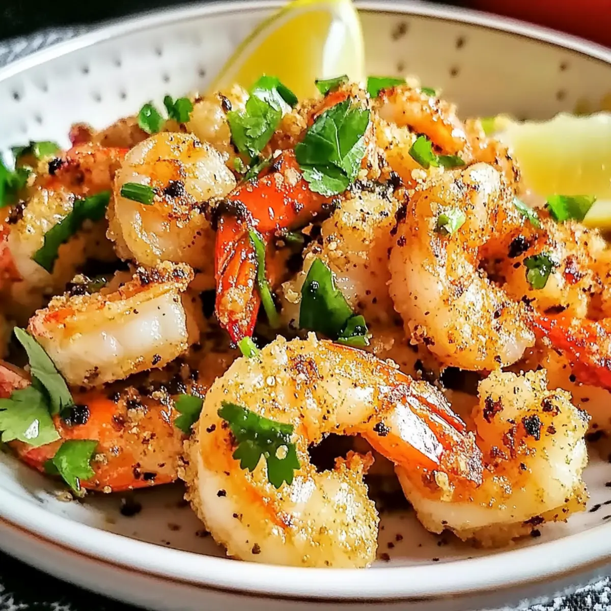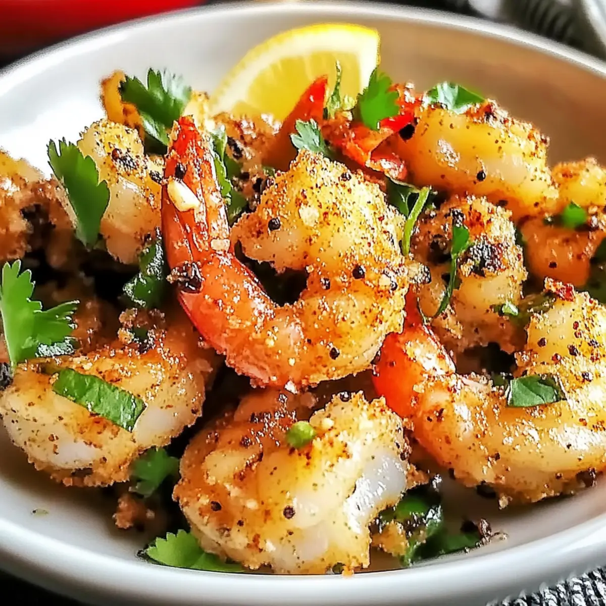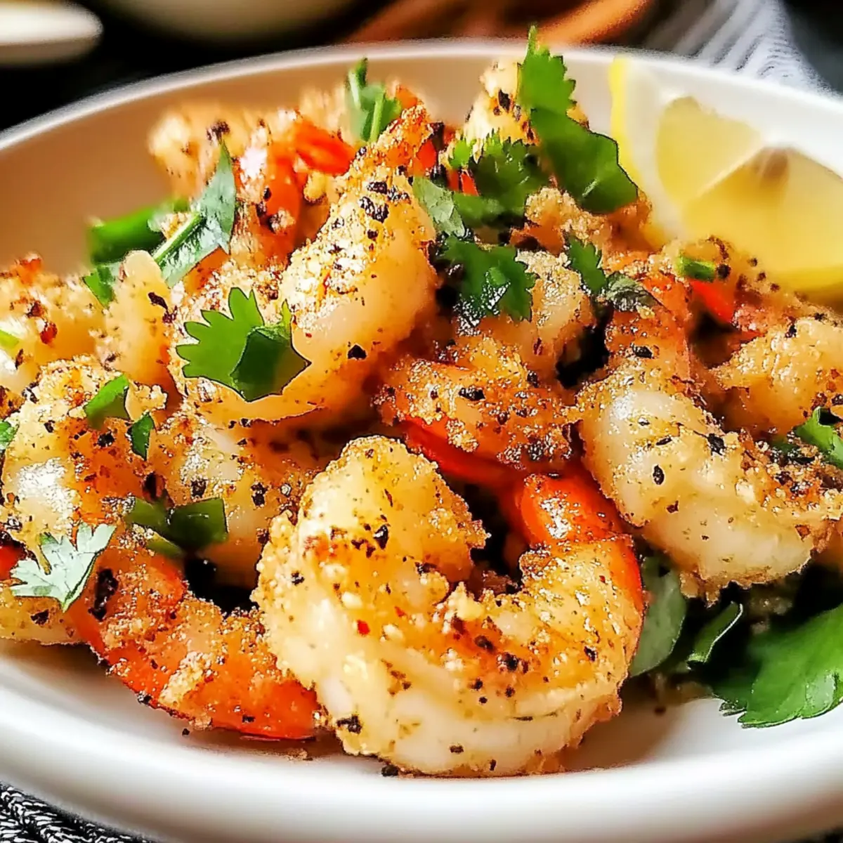 As I glanced at the clock and felt that familiar pang of hunger settle in, I knew it was time to whip up something quick yet delicious. Enter the Salt and Pepper Crispy Shrimp—my go-to dish when I crave a seafood treat that’s as easy to make as it is impressive to serve. With its satisfying crunch and savory flavors, this recipe has become a favorite in my kitchen, perfect for bustling weeknights or casual gatherings. It requires minimal ingredients and prepares in just minutes, ensuring you spend less time cooking and more time enjoying the company of friends or family. Are you ready to dive into this delightful culinary adventure? Let’s get started on turning ordinary shrimp into a crispy, flavor-packed masterpiece! Why is Crispy Shrimp So Irresistible? Ease of Preparation: This Salt and Pepper Crispy Shrimp recipe is a breeze, making it ideal for even the busiest home chefs. Crispy Perfection: The unique combination of cornstarch and flour gives the shrimp an outstanding crunch, turning each bite into a delightful experience. Flavor Versatility: With options for spicy twists or a garlic lovers’ version, there’s something for everyone. You can even try serving it with a side of Pineapple Salsa to elevate the dish. Crowd-Pleaser: Whether for a laid-back family dinner or a lively gathering, this dish always wins raves from guests. Healthy Choice: Shrimp is a low-calorie protein option, making this recipe a guilt-free indulgence that doesn’t skimp on flavor. Salt and Pepper Crispy Shrimp Ingredients • Whip up this quick treat! For the Coating Large Shrimp – Fresh or high-quality frozen shrimp ensures the best taste for your Salt and Pepper Crispy Shrimp. Cornstarch – This coating agent provides crunch; use gluten-free flour for a gluten-free option. All-purpose Flour – Helps create a batter-like coating; almond flour is a great gluten-free substitute. Salt – Enhances flavor; adjust according to taste preferences. Black Pepper – Adds spiciness; white pepper can be used for a milder flavor. Garlic Powder – Provides savoriness; fresh minced garlic can add a stronger bite. Onion Powder – Adds depth to the seasoning; feel free to skip if not preferred. Cayenne Pepper – Optional for added heat; increase for spicier shrimp. For Frying Vegetable Oil – Ideal for frying; pick an oil with a high smoke point, like canola or peanut oil. For Serving Fresh Cilantro – An optional garnish that enhances presentation. Lemon Wedges – Brightens the dish, bringing out the flavors beautifully. Step‑by‑Step Instructions for Salt and Pepper Crispy Shrimp Step 1: Prepare the Shrimp Begin by rinsing the large shrimp under cold water to remove any debris, then pat them dry thoroughly with paper towels. This is crucial for achieving that crispy texture in the Salt and Pepper Crispy Shrimp. Any excess moisture can prevent the coating from adhering properly, so take a moment to ensure they are completely dry. Step 2: Mix the Coating In a medium bowl, combine cornstarch, all-purpose flour, salt, black pepper, garlic powder, onion powder, and cayenne pepper if you enjoy a kick of heat. Stir the dry ingredients well until they are evenly blended, creating a flavorful coating that will envelop the shrimp. Set this mixture aside as it will be integral for that crunchy outer layer. Step 3: Coat the Shrimp Take the prepared shrimp and toss them in the dry mixture, ensuring each piece is evenly coated. Use your hands to press the coating onto the shrimp lightly for optimal adhesion. The coated shrimp should have a thick layer of the mixture, making them ready for frying. This step is essential for getting that delectable crunch in your Salt and Pepper Crispy Shrimp. Step 4: Heat the Oil In a large skillet or wok, pour in enough vegetable oil to cover about half an inch of the bottom. Heat the oil over medium-high heat until it shimmers, indicating it’s ready for frying. To test the oil, drop a small bit of the coating mixture into the oil; if it sizzles immediately, the temperature is perfect for frying shrimp to golden perfection. Step 5: Fry the Shrimp Carefully add the coated shrimp to the hot oil in batches, making sure not to overcrowd the pan. Fry each batch for about 2-3 minutes on one side, or until they turn golden brown and crispy. After that, flip the shrimp with tongs and cook for an additional 2-3 minutes on the other side. The visual cue of a rich, golden color means the shrimp are perfectly cooked. Step 6: Drain the Oil Once your shrimp have reached that delicious crispy state, use a slotted spoon to transfer them to a paper towel-lined plate. This will help absorb any excess oil, keeping your Salt and Pepper Crispy Shrimp light and crispy. Allow them to rest for a couple of minutes to keep the crunchy texture intact before serving. Step 7: Serve Hot Transfer the crispy shrimp to a large serving platter and sprinkle with freshly chopped cilantro for a pop of color. Serve immediately with lemon wedges on the side, allowing everyone to squeeze the fresh juice over the shrimp for an added burst of flavor. Enjoy your homemade Salt and Pepper Crispy Shrimp as a delightful treat that’s sure to impress! How to Store and Freeze Salt and Pepper Crispy Shrimp Fridge: Store leftover Salt and Pepper Crispy Shrimp in an airtight container in the refrigerator for up to 2 days. This helps keep the shrimp fresh while maintaining flavor. Freezer: For longer storage, place cooled shrimp in a single layer on a baking sheet and freeze until solid. Then transfer to a freezer-safe bag or container for up to 2 months. Reheating: To reheat, place shrimp on a baking sheet and warm in a preheated oven at 350°F (175°C) for about 10-15 minutes. This helps restore the crispy texture. Serving Suggestions: If you plan to serve later, consider storing with a side of dipping sauce separately to retain the shrimp’s crunchy coating. What to Serve with Salt and Pepper Crispy Shrimp? Dive into a delig