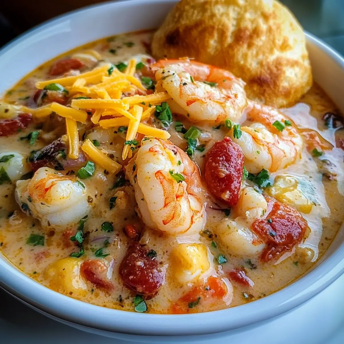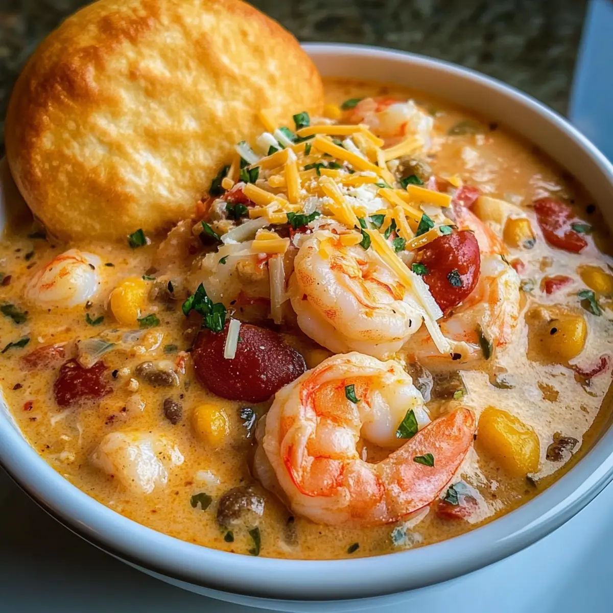 Caught in the hustle of daily life, I often find myself craving something both comforting and exciting. That’s where my Easy Creamy Seafood and Shrimp Chili comes into play! This delightful dish, packed with both succulent seafood and a rich, velvety broth, is a true lifesaver. Ready in just 40 minutes, it’s perfect for busy weeknights or casual gatherings, and it delivers an impressive dose of protein and fiber to keep you feeling nourished. The best part? You can easily customize the heat level to suit every palate, making it a dish that everyone will love. Are you ready to dive into a bowl of this creamy goodness? Let’s get cooking! Why is this Seafood and Shrimp Chili Amazing? Quick Preparation: This dish comes together in just 40 minutes, making it perfect for busy evenings or unexpected guests. Nutritious Comfort: Packed with protein and fiber, it’s a nutritious option that doesn’t skimp on flavor—ideal for health-conscious food lovers. Customizable Heat: Whether you prefer a mild warmth or a spicy kick, the adjustable spices ensure everyone at your table can enjoy it! Versatile Ingredients: Feel free to swap out seafood or add more veggies; this recipe adapts to what you have on hand, as seen in my Bang Bang Shrimp or Garlic Butter Shrimp for inspiration. Crowd-Pleaser: With its creamy, comforting nature, this chili is sure to impress family and friends, making it perfect for gatherings or cozy nights in. Hearty Texture: Experience the blend of tender seafood and a rich, velvety broth that brings satisfaction in every bite! Seafood and Shrimp Chili Ingredients • Dive into the deliciousness with these essential ingredients! For the Chili Base Shrimp – Provides protein and essential nutrients; substitute with scallops or other seafood for variety. Seafood Stock or Broth – The base for the chili, adding depth of flavor; use vegetable broth for a vegetarian alternative. Cream Cheese – Adds a rich, creamy texture; can be swapped with sour cream for a tangier taste. Cayenne Pepper – For heat; start with a small pinch for a milder flavor, adjusting as desired. For the Add-Ins Shredded Cheese – Enhances flavor and creaminess; use Monterey Jack or cheddar based on preference. Beans (optional) – Adds fiber and substance; any variety works or can be omitted for a lower-carb option. Optional Flavor Boosters Vegetables (e.g., bell peppers, corn) – Enhance nutrition and color; feel free to toss in what you have! Seasoning Adjustments – Don’t forget to taste and modify spice levels to find your perfect balance! Bring on the flavors with this Seafood and Shrimp Chili that’s not only quick to make but also a joy to savor! Step‑by‑Step Instructions for Easy Creamy Seafood and Shrimp Chili Step 1: Preparation Start by gathering all your ingredients for the Easy Creamy Seafood and Shrimp Chili. Ensure your seafood is thawed and chopped into bite-sized pieces if needed. Prepare your cooking tools, including a large pot, stirring spoon, and measuring cups to make the process smooth and organized. Step 2: Sauté Seafood In a large pot, heat a splash of oil over medium heat. Add the shrimp and any additional seafood you’re using. Sauté for about 3–5 minutes, stirring occasionally, until the shrimp turns pink and slightly curled. This will enhance the flavors, providing a delightful base for your chili. Step 3: Combine Ingredients Lower the heat and add the cream cheese to the pot, stirring until it melts and becomes creamy. Gradually incorporate shredded cheese, seafood stock, and beans if you choose to use them. Mix well until everything is combined, and the creamy texture begins to form, making your Easy Creamy Seafood and Shrimp Chili rich and satisfying. Step 4: Simmer Allow the blended mixture to come to a gentle simmer, adjusting heat to maintain a low boil. Cover and let it cook for about 25 minutes, stirring occasionally. This will give the chili time to thicken and allow the flavors to meld beautifully, resulting in a comforting and hearty dish. Step 5: Adjust Seasoning After simmering, taste your Easy Creamy Seafood and Shrimp Chili and adjust the seasoning. Add cayenne pepper for extra heat, or more shredded cheese for creaminess as desired. Stir well and let it cook for another few minutes to incorporate the additional flavors, ensuring it suits your preference. Expert Tips for Seafood and Shrimp Chili Thickening Power: For a thicker chili, let it simmer longer or stir in a cornstarch slurry (1 tablespoon cornstarch with 2 tablespoons water) to achieve perfect consistency. Cook Seafood Right: Avoid overcooking the seafood; it should turn pink and be just cooked through to maintain tenderness—this keeps your Seafood and Shrimp Chili flavorful. Thaw Properly: If using frozen seafood, ensure it is fully thawed and pat it dry to avoid excess water diluting your chili’s rich flavors. Taste and Adjust: Always taste your chili before serving; tweak spice levels for your preferred heat by adding more cayenne slowly until it matches your family’s taste. Substitution Smart: Don’t hesitate to swap seafood types based on what’s fresh or available; scallops or tilapia work beautifully and maintain the spirit of this versatile dish! How to Store and Freeze Seafood and Shrimp Chili Fridge: Store leftovers in an airtight container in the refrigerator for up to 3 days to keep it fresh and flavorful. Freezer: For longer storage, freeze the chili in an airtight container or freezer bags for up to 3 months. Make sure to leave some space for expansion. Reheating: Thaw overnight in the fridge when ready to enjoy again. Reheat gently on the stovetop or in the microwave until heated through, avoiding overcooking the seafood. Wrapping: If freezing in a container, press a layer of plastic wrap directly onto the surface of the chili before sealing to reduce freezer burn. What to Serve with Easy Creamy Seafood and Shrimp Chili Every bite of this flavorful chili opens 