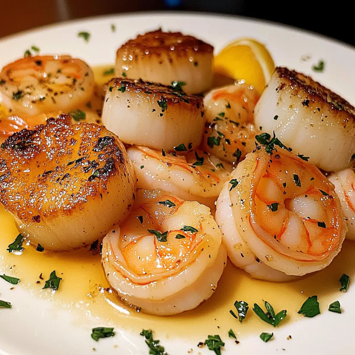 The aroma of sizzling garlic butter filled the air, and I couldn’t resist stealing a quick taste. There’s something enchanting about the combination of shrimp and scallops that evokes feelings of seaside charm right in your kitchen. This 25-Minute Garlic Butter Shrimp and Scallops recipe transforms a simple weeknight meal into an elegant dining experience, making it perfect for impressing guests or just treating yourself to something special. In under 30 minutes, you can indulge in juicy shrimp and tender scallops slathered in a rich garlic butter sauce—an irresistible perk for those busy nights when cooking feels like a chore. Plus, this dish is gluten-free, making it a guilt-free option for anyone looking to ditch fast food in favor of clean, homemade delights. Ready to discover how easy it is to elevate your dinner routine with this savory seafood delight? Let’s dive in! Why is this dish a must-try? Quick and Easy: With just 25 minutes, you can whip up a restaurant-worthy meal at home, perfect for busy weeknights! Decadent Flavor: The rich garlic butter sauce envelops the seafood, ensuring each bite is bursting with mouthwatering goodness. Versatile Serving Options: Pair it with fluffy rice, creamy risotto, or a fresh salad for a complete meal that caters to your cravings! Crowd-Pleaser: Impress your guests without the stress; this dish is sure to be a hit at any gathering! Gluten-Free Delight: Enjoy a guilt-free indulgence that satisfies your seafood cravings while skipping out on fast food. If you love this garlic butter flavor, be sure to check out my Garlic Butter Shrimp for another delightful twist! Shrimp And Scallops Ingredients • To create this delicious dish, gather these essential ingredients for Shrimp And Scallops. For the Seafood • Shrimp – Use deveined and peeled shrimp for a sweet, mild flavor; prawns can be a good substitute. • Scallops – Opt for fresh or thoroughly thawed frozen scallops to provide delicate texture and sweetness. For the Sauce • Olive Oil – Adds richness; feel free to substitute with a neutral oil if desired. • Unsalted Butter – Forms the buttery base of the sauce; use salted butter if that’s what you prefer, just reduce additional salt. • Garlic – Fresh garlic is recommended for maximum flavor infusion; consider bottled minced garlic as an easy alternative. • Paprika – Use regular or smoked paprika to add a warm, colorful touch to the dish. For Seasoning • Salt & Pepper – Essential for enhancing the dish’s overall flavor; adjust to your personal preference. • Lemon Juice – Brightens and complements the seafood; feel free to swap with white wine for a different twist. For Garnish • Fresh Parsley – Adds a dash of freshness and vibrant color; you can also substitute it with herbs like cilantro or chives. Step‑by‑Step Instructions for Shrimp And Scallops Step 1: Season the Seafood Start by combining the shrimp and scallops in a mixing bowl. Sprinkle them generously with salt, pepper, and paprika, tossing everything well to evenly coat the seafood. Let it marinate for about 10 minutes at room temperature, allowing the flavors to meld beautifully, while you prepare your cooking station. Step 2: Sear the Scallops Heat a large skillet over medium-high heat and add 2 tablespoons of olive oil along with 2 tablespoons of unsalted butter. Once the butter is melted and bubbling, carefully place the scallops in the skillet, ensuring they are not crowded. Sear the scallops for 2-3 minutes on each side until they develop a golden-brown crust. Once cooked, transfer them to a plate and set aside for later. Step 3: Cook the Shrimp In the same skillet, add the remaining 2 tablespoons of unsalted butter and finely minced garlic. Sauté the garlic for about 1 minute, just until fragrant, taking care not to let it burn. Add the seasoned shrimp to the skillet, cooking for 2-3 minutes until they turn pink and opaque, stirring occasionally to ensure even cooking throughout. Step 4: Combine and Finish Return the seared scallops back into the skillet with the shrimp. Drizzle the mixture with fresh lemon juice, and gently toss everything together for about 1 minute over the heat, allowing the seafood to warm through and absorb all those delicious garlic butter flavors. Step 5: Serve Once everything is heated and well combined, transfer the Shrimp And Scallops to a serving platter. Garnish with freshly chopped parsley for a burst of color and added freshness. Serve immediately, allowing the heavenly aroma of the dish to entice everyone to the table! Shrimp And Scallops Customizations Feel free to personalize your dish with these delightful variations that allow you to enjoy every bite to the fullest! Spicy Kick: Add cayenne pepper for a zesty heat that wakes up your taste buds. Even just a pinch can elevate the dish to exciting new heights! Fresh Herbs: Toss in basil or dill to infuse a fragrant twist that complements the garlic butter beautifully. These herbs add a delightful freshness that makes each bite special. Zucchini Noodles: For a lighter version, serve your shrimp and scallops over zucchini noodles instead of traditional pasta or rice. It’s a great way to sneak in some veggies! Creamy Addition: Stir in a splash of heavy cream for a luscious, creamy garlic sauce that envelops the seafood in pure decadence. This twist makes the dish feel even more indulgent. Lemon Zest: Enhance the sauce with a bit of zest from the lemon to deepen the citrus flavor. It adds brightness, making the dish even more refreshing. Coconut Milk: Swap in coconut milk instead of butter for a creamy, tropical twist that pairs beautifully with the seafood. It adds a unique flavor profile that transports you straight to the beach. Crispy Topping: For added texture, sprinkle on panko breadcrumbs mixed with herbs and roast in the oven until golden. It adds a delightful crunch to every delicious bite! Different Proteins: Substitute the shrimp and sca