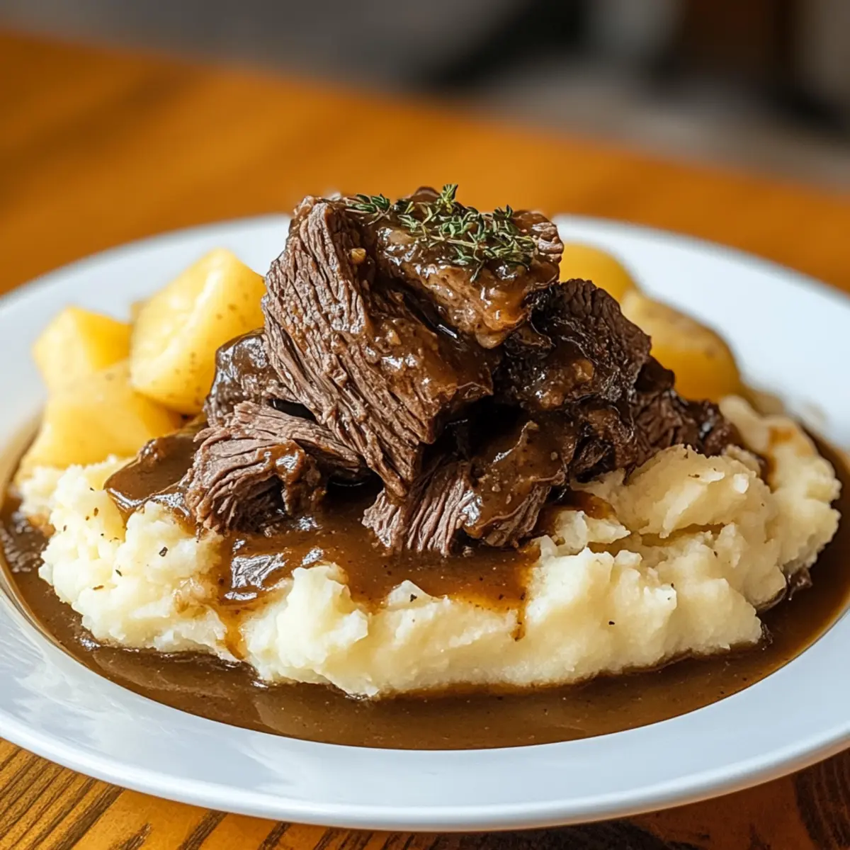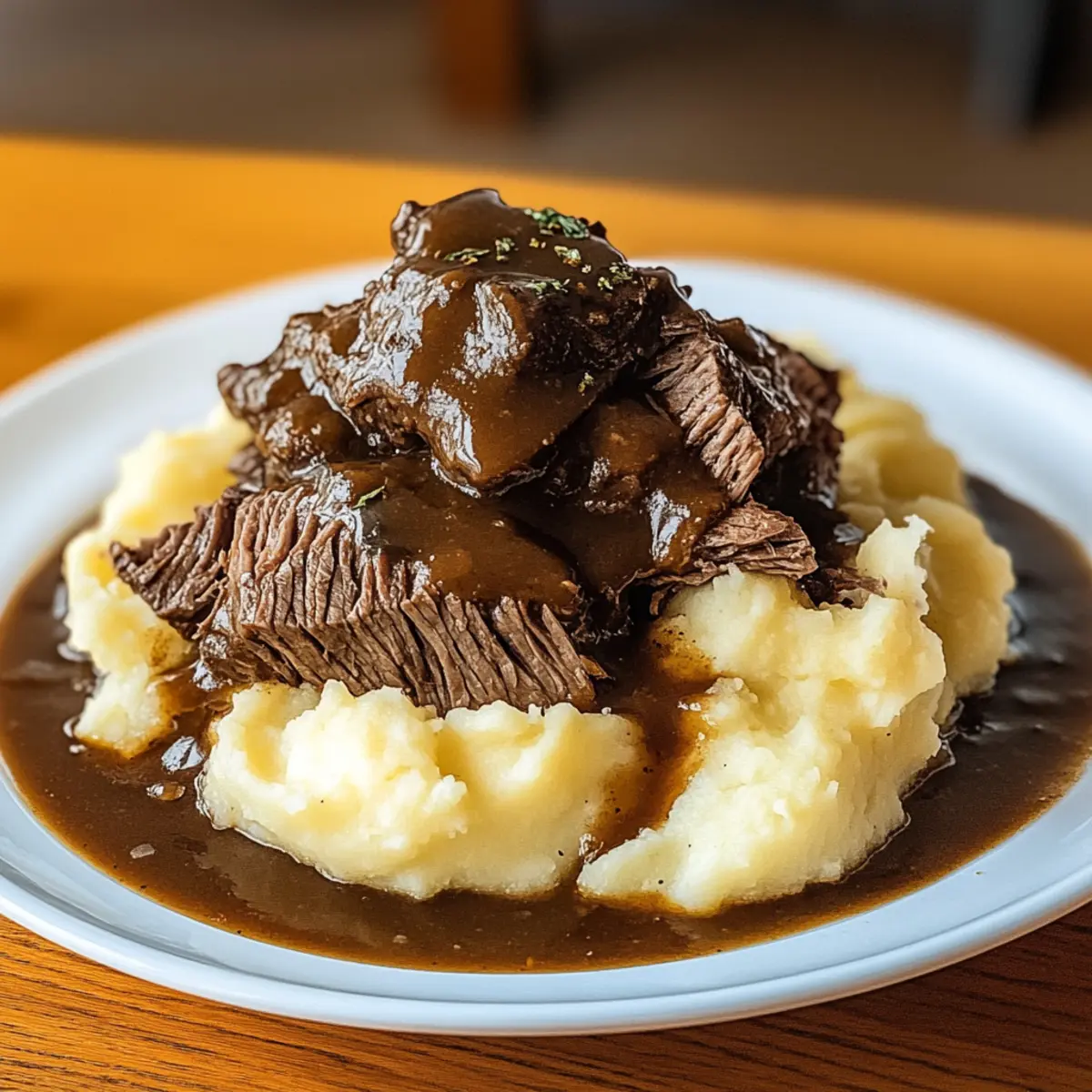There’s something profoundly comforting about a plate of Slow Cooker Beef Manhattan, one that whisks you away to simpler times with every bite. Imagine tender roast beef, nestled between soft, robust white bread, layered with creamy mashed potatoes, and all drenched in luscious gravy. This masterpiece not only transforms those weekend leftovers into an unforgettable dinner but also is an effortless solution for a busy weeknight family meal. One of my favorite aspects of this dish is how it brings everyone to the table, sparking conversations and smiles all around. Plus, it’s an easy way to indulge our cravings for hearty comfort food without spending hours in the kitchen. Are you ready to create a flavor-packed experience that warms both hearts and bellies? Let’s dive into this delightful recipe! Why is Slow Cooker Beef Manhattan a Must-Try? Simplicity: The slow cooker does all the heavy lifting, making it a breeze to prepare. Just set it and forget it! Rich, Hearty Flavor: With tender beef and a savory gravy, each bite delivers comfort and satisfaction that’s hard to resist. Versatile: Perfect for using up leftovers or experimenting with different gravies, like adding sautéed mushrooms for an extra twist. Crowd-Pleasing Appeal: This dish is sure to bring family and friends to the table, making it ideal for gatherings or weeknight dinners. Quick Assembly: Once cooked, it takes minutes to plate up, allowing you to enjoy more time with loved ones. Check out related dishes like Cheesy Ground Beef for more family-friendly options. Slow Cooker Beef Manhattan Ingredients Transform your meal with tender, comforting flavors! For the Sandwich Base Robust White Bread – Choose hearty white bread for ideal texture and support for the toppings. For the Beef Chuck Roast or Brisket – Opt for these cuts to ensure tenderness and rich flavors in your Slow Cooker Beef Manhattan. For the Mashed Potatoes Floury Potatoes – These potatoes are perfect for achieving that creamy consistency in your mashed potatoes. For the Gravy Homemade Beef Gravy – Make your gravy from scratch to boost flavor; it beautifully complements the beef and adds depth to the dish. For Garnishing Fresh Parsley – A sprinkle of fresh parsley adds a pop of color and freshness to your final presentation! Each of these ingredients plays a vital role in creating a dish that’s not just filling but absolutely soul-soothing—a must-try for all comfort food lovers. Step‑by‑Step Instructions for Slow Cooker Beef Manhattan Step 1: Prepare the Beef Begin by placing a rough cut of chuck roast or brisket into your slow cooker. Add diced onions, minced garlic, and a good amount of beef stock to enhance the flavors. Set the slow cooker to low and let it work its magic, cooking for 6 to 8 hours until the beef is fork-tender and infused with savory goodness. Step 2: Make the Mashed Potatoes While your slow cooker beef is reaching perfection, peel and quarter floury potatoes. Boil them in salted water for about 15-20 minutes, or until fork-tender. Once cooked, drain and return them to the pot for a minute to steam off excess moisture. Mash the potatoes with warm milk or cream, stirring until smooth and creamy for a delightful topping. Step 3: Prepare the Gravy In a saucepan, melt a couple of tablespoons of butter over medium heat, then whisk in an equal amount of flour to create a roux. Cook this mixture for about 2 minutes until golden and fragrant, then gradually whisk in reserved beef stock from the slow cooker. Cook until the gravy thickens, around 5-7 minutes, stirring constantly to prevent lumps. Step 4: Assemble the Beef Manhattan Once everything is prepared, it’s time to assemble your Slow Cooker Beef Manhattan. Start by placing a slice of robust white bread on each plate as the base. Next, generously layer the tender beef on top, followed by a hearty scoop of creamy mashed potatoes. Finish it off with an ample drizzle of the homemade gravy, ensuring every bite is bursting with flavor. Expert Tips for Slow Cooker Beef Manhattan Quality Matters: Use high-quality chuck roast or brisket to ensure a tender, flavorful beef in your Slow Cooker Beef Manhattan. A good cut makes all the difference. Lump-Free Gravy: To avoid a lumpy gravy, whisk your roux thoroughly and gradually incorporate the beef stock. Strain the gravy if needed for a smooth finish. Perfect Mashed Potatoes: Remember to warm your milk or cream before adding it to your mashed potatoes. This helps achieve that creamy texture, steering clear of a gluey consistency. Make-Ahead Friendly: You can prepare the beef and gravy ahead of time! Store them in the fridge and reheat before serving for a quick weeknight dinner. Vegetable Add-Ins: Consider adding steamed vegetables like green beans or peas to your plate for added nutrition and color, balancing out the richness of the dish. Make Ahead Options Preparing your Slow Cooker Beef Manhattan in advance is a fantastic way to save time on busy weeknights! You can make the roast beef and gravy up to 3 days ahead of serving. Simply cook the chuck roast and prepare the gravy, then let them cool before storing them in airtight containers in the refrigerator. For best results, keep the mashed potatoes separate, and they can be made up to 24 hours in advance. When you’re ready to enjoy, reheat everything on the stovetop or in the microwave, and assemble your sandwiches with fresh, toasted white bread for a delightful meal that tastes just as delicious as when freshly prepared. Slow Cooker Beef Manhattan Variations Feel free to take this dish and make it your own; there’s always room for creativity in the kitchen! Leftover Roast: Swap out the chuck roast for leftovers from your pot roast or prime rib for an effortless twist. Combining flavors saves time and adds a new layer of comfort! Mushroom Gravy: Experiment with sautéed mushrooms to create a hearty, umami-rich gravy. It adds depth and a satisfying texture that elevates