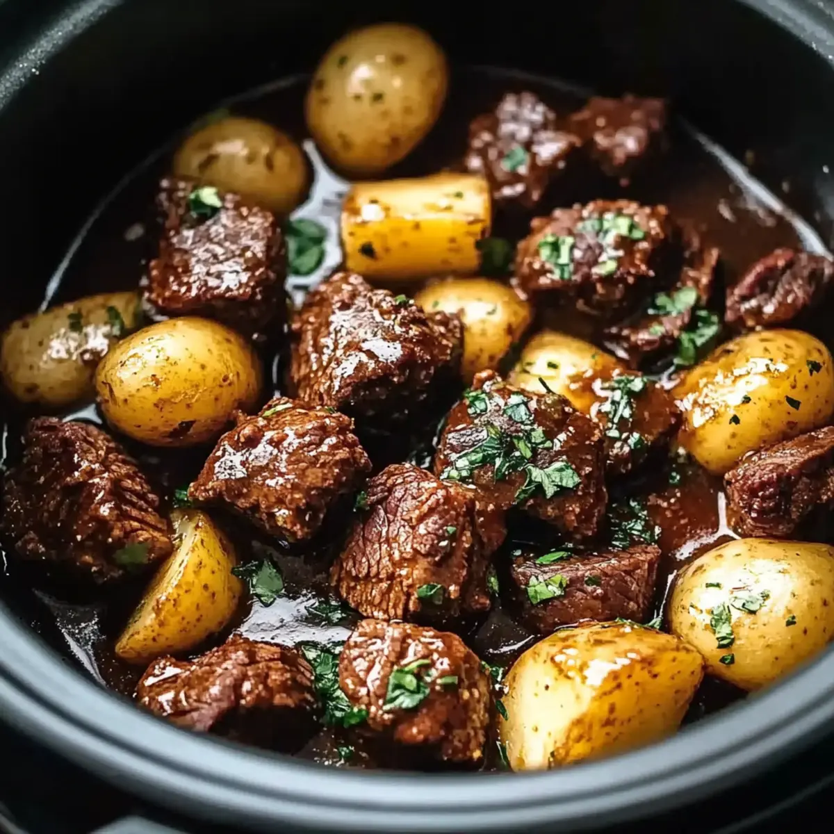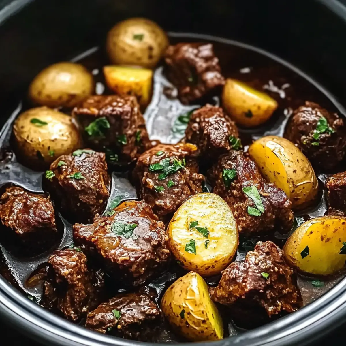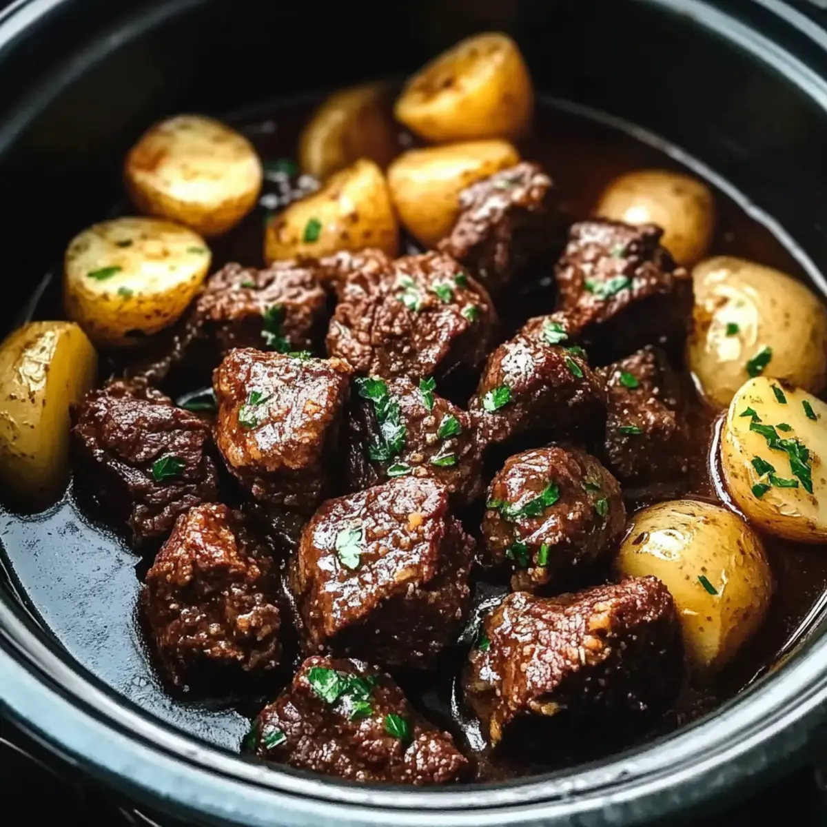 As the sun begins to set and a hint of chill fills the air, I often find myself craving the indulgent comfort of a hearty meal. That’s when I turn to my Slow Cooker Garlic Butter Beef Bites with Potatoes—a dish that fills my kitchen with the most inviting aroma and promises a melt-in-your-mouth experience. This one-pot wonder not only simplifies dinner prep with minimal fuss, but it also delivers true comfort food bliss, perfect for those busy weeknights when you just want to unwind and savor every bite. With tender pieces of beef swimming in rich, buttery garlic sauce alongside creamy potatoes, it’s a meal the whole family will cherish. Are you ready to create a dish that will warm your heart and fill your home with delicious scents? Let’s dive into this cozy recipe! Why Are Slow Cooker Meals So Amazing? Simplicity and Convenience: This recipe requires minimal effort and virtually no experience in the kitchen. Just toss everything into the slow cooker and let it work its magic! Melt-in-Your-Mouth Goodness: Expect tender beef that practically melts in your mouth, perfectly paired with creamy potatoes drenched in a luscious garlic butter sauce. Savory Aroma: Your kitchen will fill with the enticing fragrance of garlic cooking slowly, making it hard to resist sneaking a taste before it’s even time to serve! Family-Friendly Comfort: This one-pot meal is sure to please everyone at the table, making it a go-to option for family dinners or meal prep for the week ahead. Try pairing it with a crisp side salad or even some Garlic Butter Pasta for a delightful complete dinner! Time-Saving Delight: With just a few hours in the slow cooker, you can walk away and come back to a delicious dinner, freeing you up to focus on other plans or simply relax at home. Versatile Flavor: You can customize ingredients to suit your taste, adding in veggies like carrots or mushrooms for added nutrition and flavor. Slow Cooker Garlic Butter Beef Bites Ingredients For the Beef • Chuck Roast or Sirloin Tips – Provides tender, juicy beef bites; avoid lean cuts that dry out. For the Potatoes • Baby Yukon Gold or Red Potatoes – Creamy centers are ideal for slow cooking; cut into halves or quarters for even cooking. For the Flavor Base • Fresh Garlic Cloves – Deepens flavor when sautéed before adding to the slow cooker. • Salt & Pepper – Basic seasoning to enhance the overall dish flavor. • Butter – Forms the base of the garlicky sauce, adding richness. • Smoked Paprika – Adds depth and smokiness to the dish. • Worcestershire or Soy Sauce – Provides savory notes and umami flavor. • Dijon Mustard (optional) – Adds a subtle tang and helps garlic butter adhere to the beef. For Added Moisture • Beef Broth (optional) – Enhances moisture and flavor depth. For Garnishing • Fresh Herbs (Rosemary, Parsley) – Adds aromatic freshness to the finished dish before serving. Now that you have all the ingredients ready, let’s savor the joy of cooking! The Slow Cooker Garlic Butter Beef Bites are not just food; they’re a warm hug for your senses. Step‑by‑Step Instructions for Slow Cooker Garlic Butter Beef Bites Step 1: Sear the Beef In a large skillet over medium-high heat, melt 2 tablespoons of butter until bubbly. Add the cubed chuck roast or sirloin tips, searing the beef for about 5 minutes until each piece is browned on all sides. This step enhances the flavor of your Slow Cooker Garlic Butter Beef Bites, so don’t rush and let them develop a nice crust. Step 2: Prep the Potatoes While the beef is searing, rinse and halve or quarter the baby Yukon Gold or red potatoes to ensure even cooking. Place all the potato pieces into the bottom of your slow cooker. This will create a cozy bed for the beef to rest on, absorbing the delicious garlic butter sauce as it cooks. Step 3: Combine Ingredients Once the beef is nicely browned, transfer it to the slow cooker, placing it directly on top of the prepared potatoes. In the same skillet, add minced fresh garlic and sauté for 1-2 minutes until fragrant, then pour in Worcestershire or soy sauce for umami depth along with the remaining butter. Drizzle this mixture over the meat and potatoes, ensuring everything is well coated. Step 4: Cook Cover the slow cooker and set it on low for 7-8 hours or high for 4 hours. As it cooks, the beef will become fork-tender and the potatoes perfectly creamy. Make sure to check the doneness; you’re looking for that melt-in-your-mouth texture characteristic of the Slow Cooker Garlic Butter Beef Bites. Step 5: Finishing Touches About halfway through the cooking time, give everything a gentle stir to redistribute the flavors. Before serving, garnish with freshly chopped herbs like rosemary or parsley. This adds a burst of color and fresh aroma, enhancing the overall presentation of your heartwarming dish. How to Store and Freeze Slow Cooker Garlic Butter Beef Bites Fridge: Store leftovers in an airtight container for up to 4 days; ensure it’s completely cooled before sealing to maintain freshness. Freezer: Freeze your Slow Cooker Garlic Butter Beef Bites in portion-sized airtight containers for up to 3 months. Label with the date for easy tracking. Reheating: To refresh the dish, reheat in the microwave or on the stovetop with a splash of broth or butter for added moisture and flavor. Thawing: Always thaw in the fridge overnight before reheating, ensuring your meal remains tender and delicious. What to Serve with Slow Cooker Garlic Butter Beef Bites Creating a meal can be a delightful adventure when you pair your comforting dishes with the right accompaniments. Creamy Mashed Potatoes: This classic side brings an extra layer of creaminess that beautifully complements the rich garlic butter sauce of the beef bites. Fresh Garden Salad: Crisp greens topped with a tangy vinaigrette add brightness and balance to this hearty dish. The crunchiness will elevate the mealtime experience. Steamed Green Beans: Their
