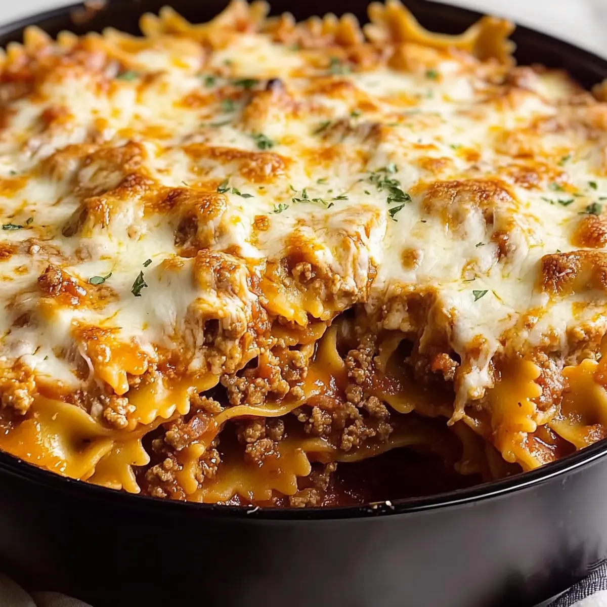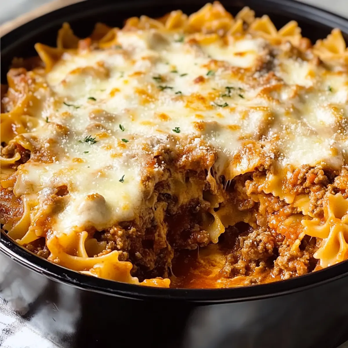 As the rich aroma of savory beef and bubbling cheese drifts through my kitchen, I can’t help but think of the love that went into this Slow Cooker Million Dollar Pasta. It’s not just a meal; it’s a moment of comfort that brings family and friends together. With its creamy layers of seasoned ground beef, velvety cheese blend, and zesty marinara enveloping perfectly tender bowtie pasta, this dish transforms a hectic evening into a cozy gathering. What’s even better? It takes minimal prep time, allowing you to enjoy an effortless, hands-off cooking experience that makes weeknight dinners a breeze. Ready to indulge in a bowl of warmth and happiness? Let’s dive into this delicious recipe! Why is Slow Cooker Million Dollar Pasta Perfect? Comfort Food Bliss: Enjoy the ultimate cozy meal that brings warmth to your table. Effortless Preparation: With just a few steps, you can set it and forget it, making it ideal for busy days. Creamy, Cheesy Goodness: A luxurious blend of cheeses melds beautifully for rich flavor. Crowd-Pleasing Delight: This dish is sure to impress family and friends, making it perfect for gatherings or cozy nights in. Versatile and Customizable: Add in your favorite veggies or swap pasta shapes to keep things exciting! Try pairing it with a fresh salad or some Garlic Butter Pasta on the side for a complete meal! Slow Cooker Million Dollar Pasta Ingredients For the Meat Mixture Lean Ground Beef – Provides savory richness without excess grease. Substitution: Ground turkey or chicken for a lighter option. Garlic Powder – Enhances flavor quickly without fresh garlic prep. Use fresh garlic if preferred; adjust quantity to taste. Italian Seasoning – Infuses classic herb flavors to complement the dish. Can substitute with individual dried herbs like basil and oregano. For the Cheese Blend Cream Cheese – Adds a luxurious creaminess that binds the sauce and pasta together. Preparation: Soften before mixing for smooth texture. Sour Cream – Introduces tang and silky texture for balance. Substitution: Greek yogurt for a healthier twist. Ricotta Cheese – Lightens the sauce and enhances creaminess. Optional: Cottage cheese can be used but will alter texture. Shredded Mozzarella – Melts to create a gooey topping. Optional: Use a blend of Italian cheeses for varied flavors. For the Pasta and Sauce Marinara Sauce – Provides the vibrant tomato base for the dish. Note: Use high-quality marinara; consider homemade for robust flavor. Water – Ensures even cooking of pasta in the slow cooker. Tip: Use empty marinara jar to measure. Bowtie Pasta – Holds sauce well and cooks evenly. Substitution: Penne or rotini works well too; adjust cooking times accordingly. This Slow Cooker Million Dollar Pasta is your ticket to a cozy family dinner, blending comfort and richness in every delightful bite! Step‑by‑Step Instructions for Slow Cooker Million Dollar Pasta Step 1: Brown Ground Beef In a large skillet over medium-high heat, add 1 pound of lean ground beef, cooking for about 5-7 minutes or until it’s browned and no longer pink. Stir occasionally to ensure even cooking and break apart the meat. Once done, drain any excess grease to keep the overall dish light and flavorful, then set the beef aside to cool slightly. Step 2: Mix Cheese Blend In a mixing bowl, combine 8 ounces of softened cream cheese, 1 cup of sour cream, and 1 cup of ricotta cheese. Sprinkle in 2 teaspoons of Italian seasoning and 1 teaspoon of garlic powder, then mix with a hand mixer or spatula until the mixture is smooth and creamy. This rich cheese blend will be the creamy heart of your Slow Cooker Million Dollar Pasta. Step 3: Layer Ingredients in Slow Cooker Begin layering your Slow Cooker Million Dollar Pasta by spreading half of a 24-ounce jar of marinara sauce at the bottom of the slow cooker. Sprinkle half of the uncooked bowtie pasta (8 ounces) over the sauce, followed by half of the remaining marinara. Pour in half a cup of water, then add half of the cooked ground beef along with half of the cheese mixture. Repeat the layering process with the remaining ingredients. Step 4: Cook Cover your slow cooker and set it to low. Let the Slow Cooker Million Dollar Pasta cook for 2.5 to 3 hours. Around the 2.5-hour mark, check for pasta tenderness—it should be soft and fully cooked. This slow cooking lets the flavors meld beautifully, creating a hearty, comforting dish. Step 5: Add Topping Once the pasta is tender, uncover the slow cooker and evenly sprinkle 1.5 cups of shredded mozzarella cheese on top. Cover again and let cook for an additional 20 minutes on low until the cheese is melted and bubbly, turning golden in spots. This will give your dish that irresistible cheesy finish that everyone loves. Step 6: Serve Using a large spoon, gently scoop out portions of the Slow Cooker Million Dollar Pasta, ensuring each serving has a delightful mix of pasta, beef, and creamy cheese. Serve warm, garnished with fresh basil or parsley if desired, and enjoy the cozy comfort in every bite! How to Store and Freeze Slow Cooker Million Dollar Pasta Fridge: Store leftovers in an airtight container for up to 3 days. This allows the flavors to meld, enhancing the overall taste of your Slow Cooker Million Dollar Pasta. Freezer: For longer storage, freeze portions in freezer-safe containers for up to 3 months. Make sure to label and date each container for easy identification later. Reheating: Thaw overnight in the fridge before reheating. For best results, reheat on the stovetop or microwave until heated through, adding a splash of water if the pasta seems dry. Avoiding Texture Changes: When stored, the pasta may absorb sauce; adding a touch of extra marinara while reheating will help restore its original creamy texture. Slow Cooker Million Dollar Pasta Pairings Experience the full comfort of your Slow Cooker Million Dollar Pasta by pairing it with delicious sides and accompaniments that elevate your meal to new hei