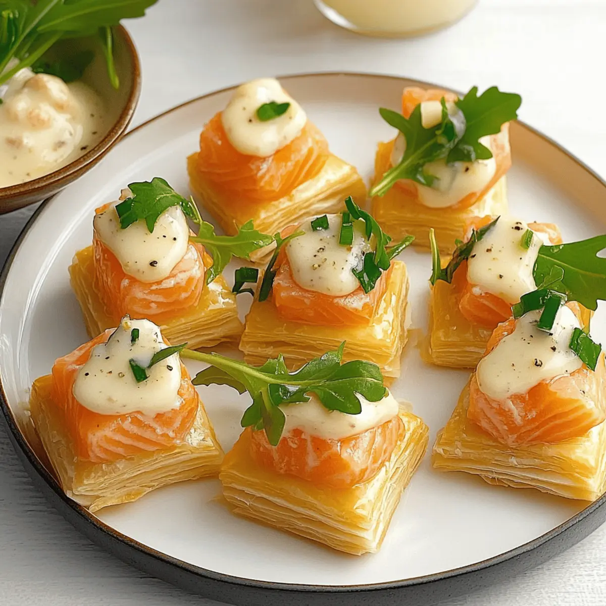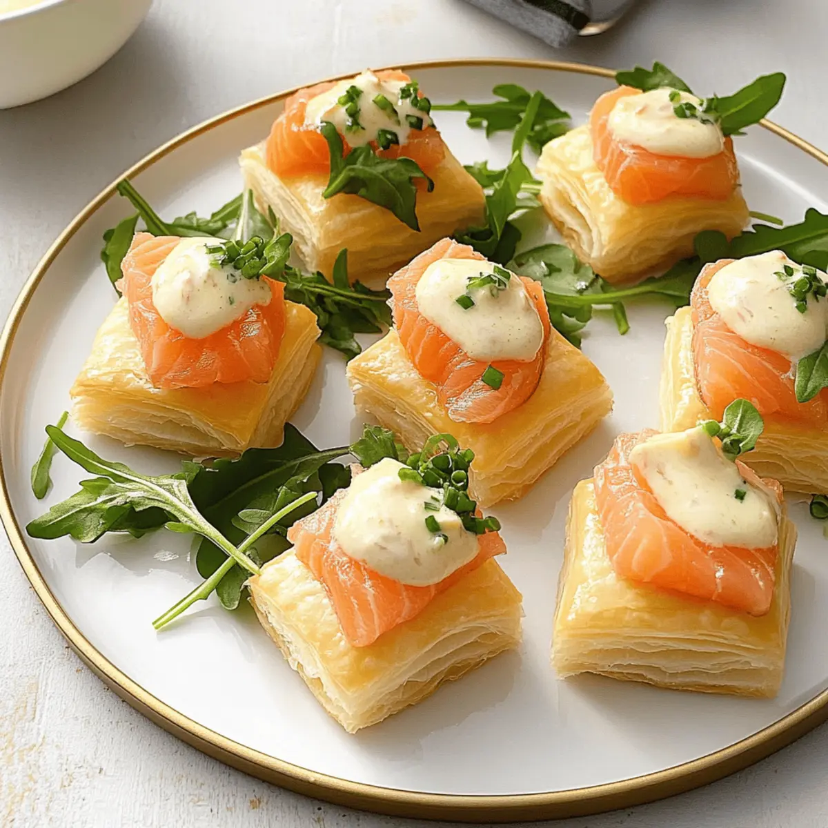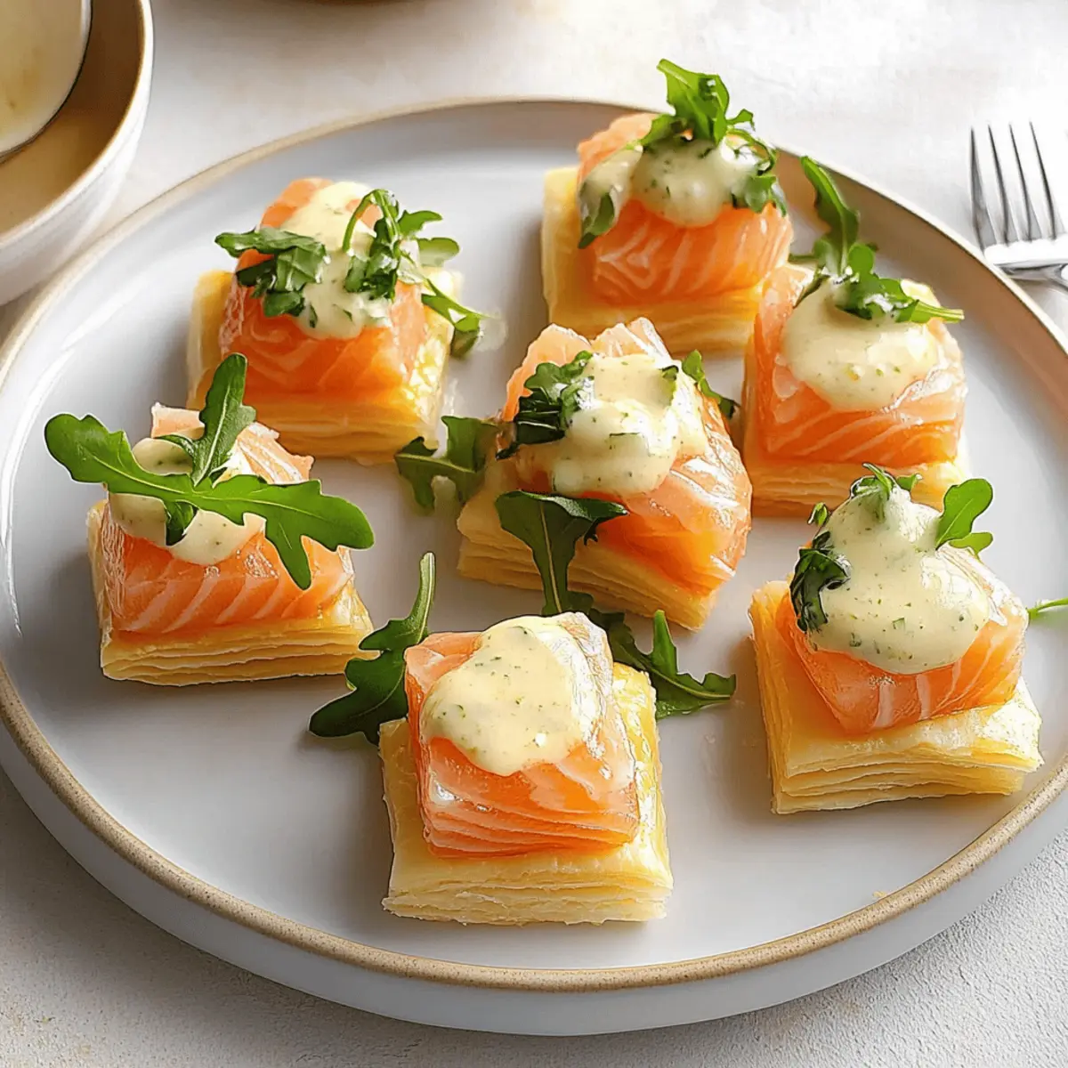 As I whisked together the creamy shallot sauce, the aroma wafted through my kitchen, awakening my senses and sparking a hunger for something delightful. Enter the Smoked Salmon Bites with Shallot Sauce, an appetizer that’s a true showstopper at any gathering. These little wonders not only come together in a flash, perfect for those last-minute get-togethers, but they also embody an elegance that will impress even the pickiest of party guests. The flaky puff pastry forms a delectable base, while the tangy sauce and vibrant toppings of fresh arugula and smoked salmon create a symphony of flavors that feels both gourmet and comforting. Fancy a taste of culinary sophistication without the fuss? Let’s dive into this easy recipe that transforms simple ingredients into a stunning treat! What’s your favorite way to elevate a party dish? What makes these bites a party favorite? Quick preparation: These Smoked Salmon Bites with Shallot Sauce are crafted in no time, making them ideal for impromptu gatherings or busy weekdays. Gourmet touch: With their elegant presentation, you’ll impress guests without breaking a sweat, serving up sophisticated flavors that rival any restaurant appetizer. Versatile options: Feel free to substitute the smoked salmon with cooked shrimp or even fresh crab for a unique twist on this classic dish. Gluten-free friendly: Swap in gluten-free puff pastry to cater to dietary preferences, ensuring everyone can enjoy these delectable bites. Crowd-pleasing flavors: The combination of tangy shallot sauce and rich asiago cheese creates a mouthwatering balance that will leave your party guests clamoring for more! Want to amp up your next gathering? Pair these bites with a side of lemon wedges or a light salad for a refreshing contrast! Smoked Salmon Bites Ingredients • Perfect for creating a quick appetizer that dazzles! For the Puff Pastry Base Frozen Puff Pastry – Ensure it’s fully thawed for easy handling. For the Shallot Sauce Shallots – Use one for a milder flavor, as some reviews suggest. Dijon Mustard – Start with one tablespoon for a subtle tang. Mayonnaise – Adds creaminess to balance the sauce. Red Wine Vinegar – Brightens the flavor with a hint of acidity. Olive Oil – Drizzle in extra virgin for richer taste. For the Toppings Fresh Arugula or Baby Spinach – Provides a fresh peppery crunch; feel free to use your favorite greens. Smoked Salmon or Lox – The star ingredient, delivering a briny depth that defines the bites. Shaved Asiago Cheese – Offers a nutty finish; Parmesan can be a great alternative. Step‑by‑Step Instructions for Smoked Salmon Bites with Shallot Sauce Step 1: Preheat the Oven Begin by preheating your oven to 400°F (200°C). This essential first step ensures that your puff pastry will puff up beautifully and bake evenly, creating those delightful golden bites. While the oven is heating, you can prepare your pastry and sauce without any rush. Step 2: Prepare the Puff Pastry Unfold the thawed frozen puff pastry on a clean, lightly floured surface. Carefully cut the pastry into 25 equal squares, ensuring they are uniform for even baking. Place each square on greased baking sheets, leaving enough space between them for expansion during baking. Step 3: Bake the Pastry Slide the baking sheets into your preheated oven and bake the puff pastry squares for 11 to 13 minutes. Keep an eye on them; you want the tops to be golden brown and puffed up, signaling they’re ready to come out. Once done, remove them from the oven and set aside to cool slightly. Step 4: Prepare the Shallots While the pastry cools, take one shallot and grate it, then finely chop another for the sauce. The combination of textures in the shallots will enhance your Smoked Salmon Bites with Shallot Sauce, adding depth to the flavor profile of the dish. Step 5: Make the Shallot Sauce In a small bowl, combine the grated and chopped shallots with Dijon mustard, mayonnaise, and red wine vinegar. Use a whisk to blend the ingredients together smoothly. As you whisk, gradually drizzle in the olive oil until the sauce is emulsified and creamy, creating a luscious base for the bites. Step 6: Assemble the Bites Once the puff pastry has cooled slightly, spoon a small amount of the freshly made shallot sauce onto each pastry square. Layer each bite with fresh arugula and a generous slice of smoked salmon, ensuring the ingredients are vibrant and appealing. Step 7: Finish with Cheese and Sauce To add the final touch, drizzle any remaining shallot sauce over the assembled bites, and sprinkle shaved Asiago cheese on top. This will not only enhance the visual presentation of your Smoked Salmon Bites with Shallot Sauce but also add a delightful nutty flavor that complements the other ingredients beautifully. Smoked Salmon Bites with Shallot Sauce Variations Feel free to personalize these delightful bites with your unique twists and flavor preferences! Seafood Switch: Swap the smoked salmon for cooked shrimp or crab for a seafood medley that’s just as tasty. Cheese Alternatives: Try using feta or goat cheese in place of Asiago for a creamier, tangier profile that elevates the bites. Gluten-Free Option: Use gluten-free puff pastry instead to ensure everyone at your gathering can enjoy these scrumptious treats. Spicy Kick: Add a pinch of cayenne pepper or a drizzle of sriracha to the shallot sauce for an extra fiery touch that awakens the palate. Herb Infusion: Enhance the flavor by incorporating fresh dill or chives into your shallot sauce, bringing a refreshing herbaceous note that complements the salmon beautifully. Vegetarian Delight: Replace the smoked salmon with roasted vegetables like bell peppers or zucchini for a delicious vegetarian variation that doesn’t skimp on flavor. Crispy Texture: For a bit of crunch, top the bites with crispy fried onions or shallots instead of cheese, adding a new layer of texture and flavor. Lemon Zest Brightness: Incorporate freshly grate